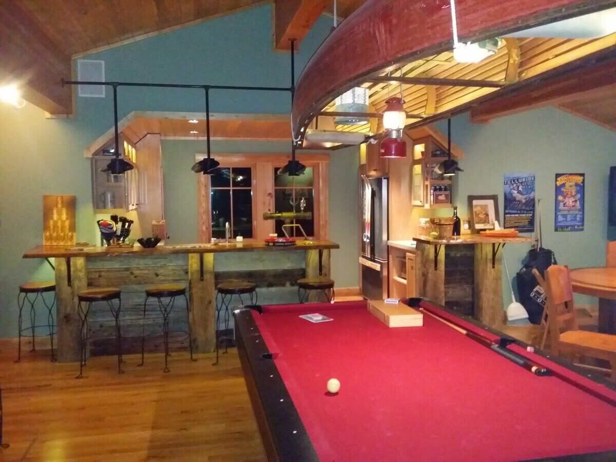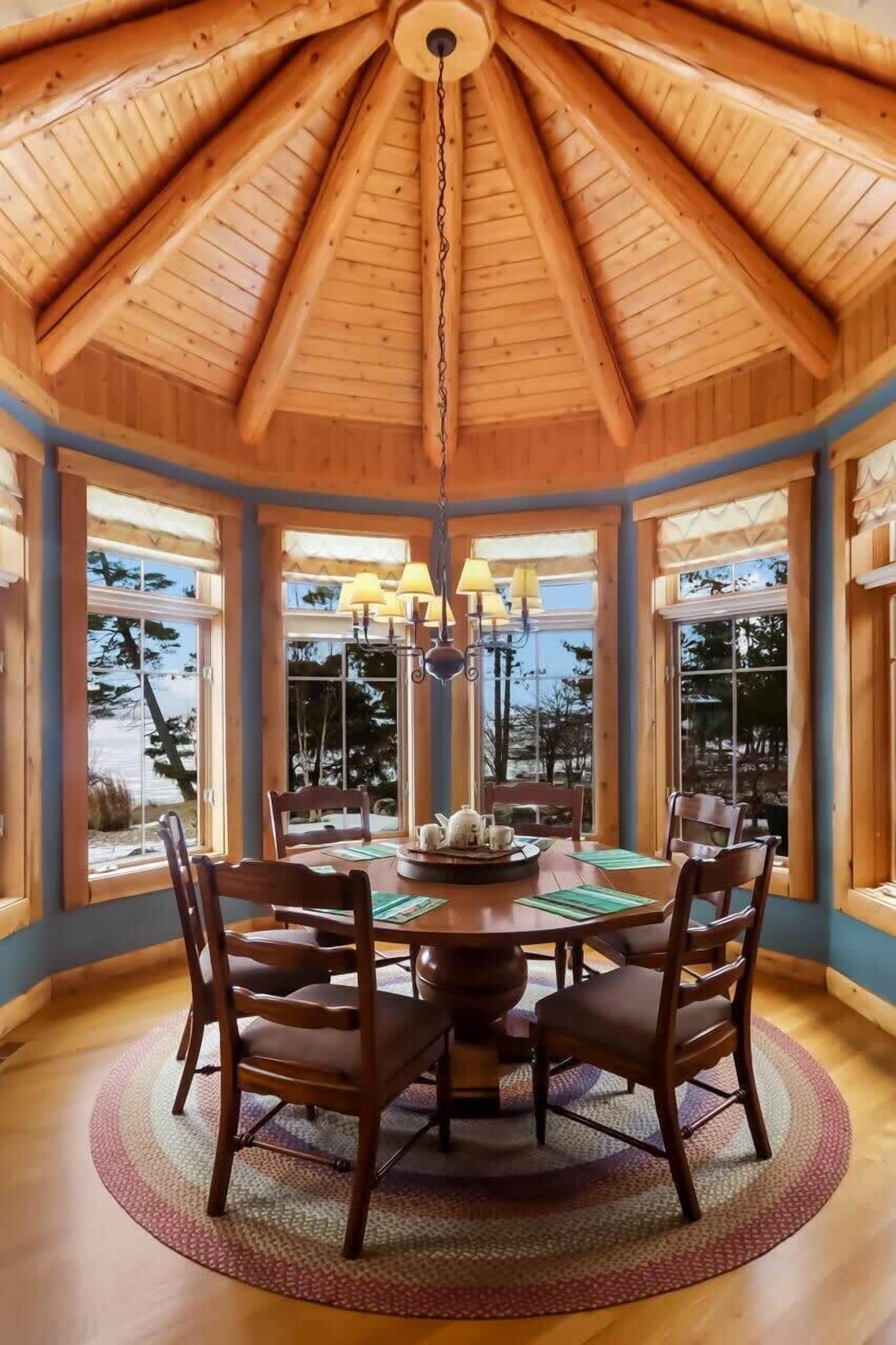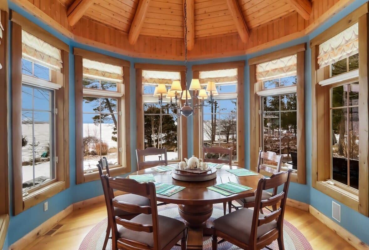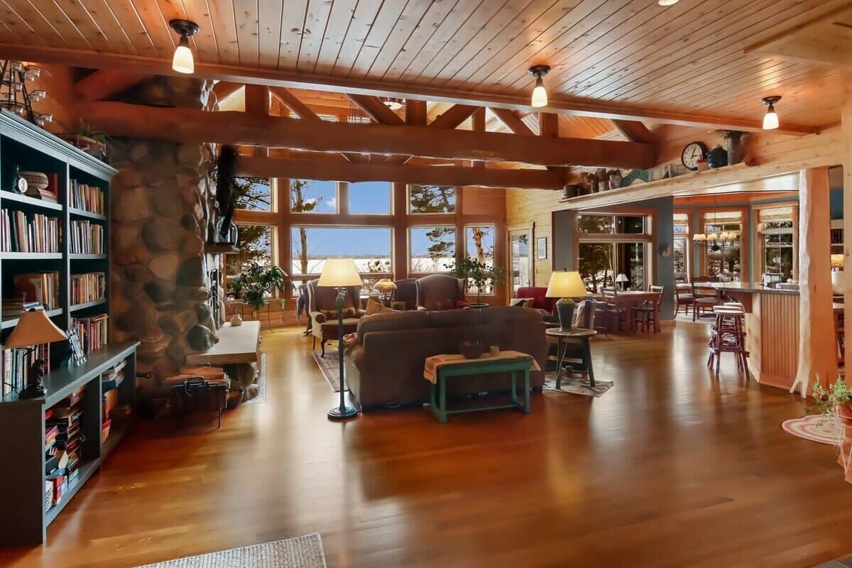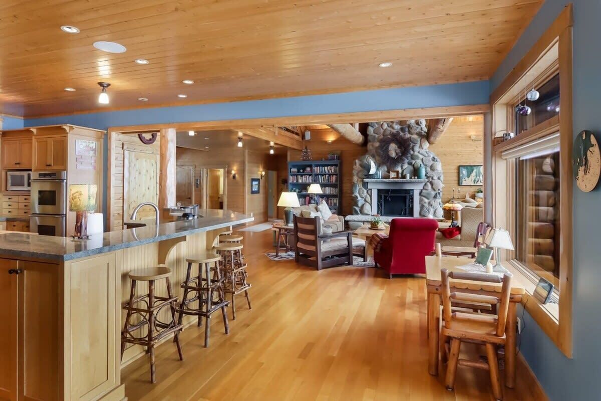Elk Lake Lodge Summar Summary:Available for stays of 30 days or more! An extraordinarily unique property with 300 feet of Elk Lake frontage, an abundance of beautifully landscaped flowering gardens, a natural stone hot tub, a pond, fire pit, and a stream that circles the exquisite 7,000 sq. ft. log home that welcomes your pups. The architecture and features of this property are straight out of an Up North Michigan magazine. *All guests must be 25+ unless accompanied by a parent/guardian*See Pet Info Below*The Space:Main Floor-Half - Bathroom in main entryLiving room, enormous open kitchen, home officeFamily room/dining area with a half bathroom that can be accessed from the garageScreened in sun roomPrimary Bedroom with King Bed and connected full bathroom with tub and shower.2nd Floor- Bedroom areaLoft seating area Bedroom 2 - Queen Bed and a Twin BedBedroom 3 - Queen BedBathroom between bedrooms 2 and 3, shower and tubBedroom 4 - Full Bed with DeskBedroom 5 - Queen Bed and a Twin BedBathroom between bedrooms 4 and 5, shower only2nd Floor Game Room:1200 sq. ft. space above the garage; includes 86 inch TV, Roland electronic drum set with headphones, Yamaha digital piano, pinball machine, darts, table tennis, foosball table, pool table, card table, and misc. board gamesAlso includes bar with full size refrigerator, bar size Bosch dishwasher and kegerator (choice of beer upon request). This room is the highlight for many guests!There is an attached bathroom with a shower. Other features in the home-Attached 3 car garageWood burning fireplace Heated floors 1GB internet Outside-Large in-ground stone and boulder hot tub open all year round! Includes a smaller heated pool above the hot tub that is able to become waterfall into lower tub.Outdoor firepit Outdoor showerPropane GrillDock and mooring ball available Memorial - Labor Day Pond in front of the house leads into a stream around the house and out to the lake.Extensive landscaping and mature trees on very large lot makes the property feel secluded and very private. This alone makes this property very unique.300 feet of lake frontage and acreage to enjoy. East side of lake provides fantastic sunset viewing.Other Things to Note:Please Note: All guests staying at this property must be 25 or older unless accompanied by a parent or guardian. This will be verified after booking confirmation. A damage waiver fee is required by Golden Swan for each stay. For this property, the fee is $129 and provides our guests with accidental damage coverage up to $2000. If the amount of damage exceeds this, or if the damage is found to have occurred with malicious intent, Golden Swan retains the right to seek damages beyond that amount.High chair and pack n play available upon request for an additional charge.There is a 3% non-refundable credit card processing fee applied to all reservations. Mid-stay cleans will be required at least every 14 days. Please let us know if you would like to schedule any extra cleanings in addition to this at time of booking.Dogs are allowed with an additional fee, with a maximum of 2 dogs. Please be advised that it is absolutely imperative for all renters to keep their dogs on a leash at all times. While we truly appreciate and value pets, ensuring that our furry friends are leashed or properly secured is of utmost importance to us. Please take your pup with you or kennel them when you leave the home. We cannot have lonely barking dogs left at our property. Please be considerate and clean up after your pet.DOCK: You can expect the dock to be available for use Memorial Weekend through Labor Day Weekend. Please only use the dock for 15-minute loading and unloading of passengers. A mooring ball just beyond it is available for mooring between boat rides. Winds and waves pick up super-quick and can cause damage to boats and docks. There are no protective dock bumpers to prevent potential boat-docking issues.