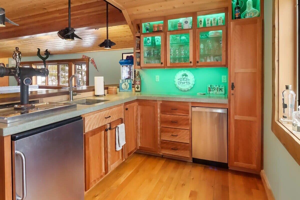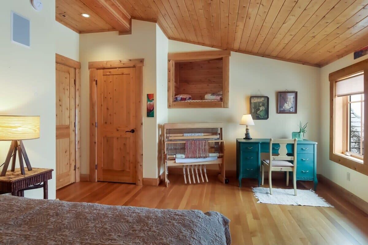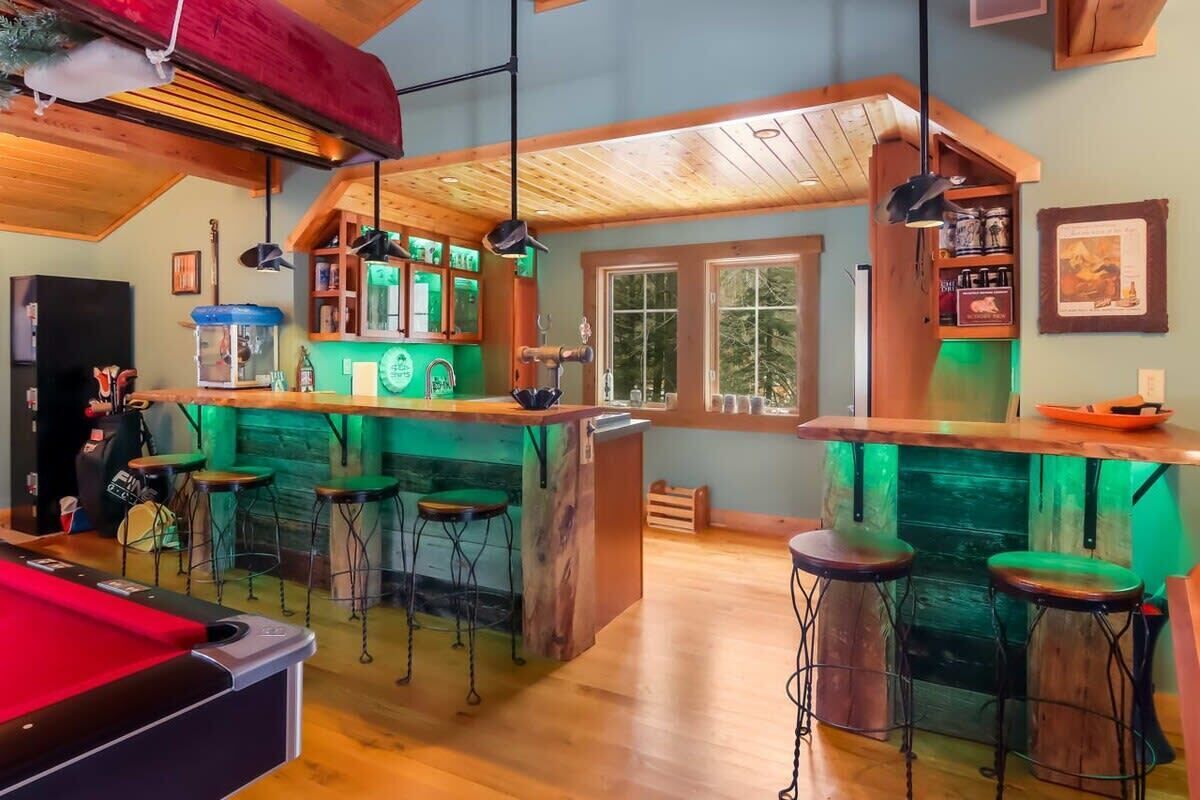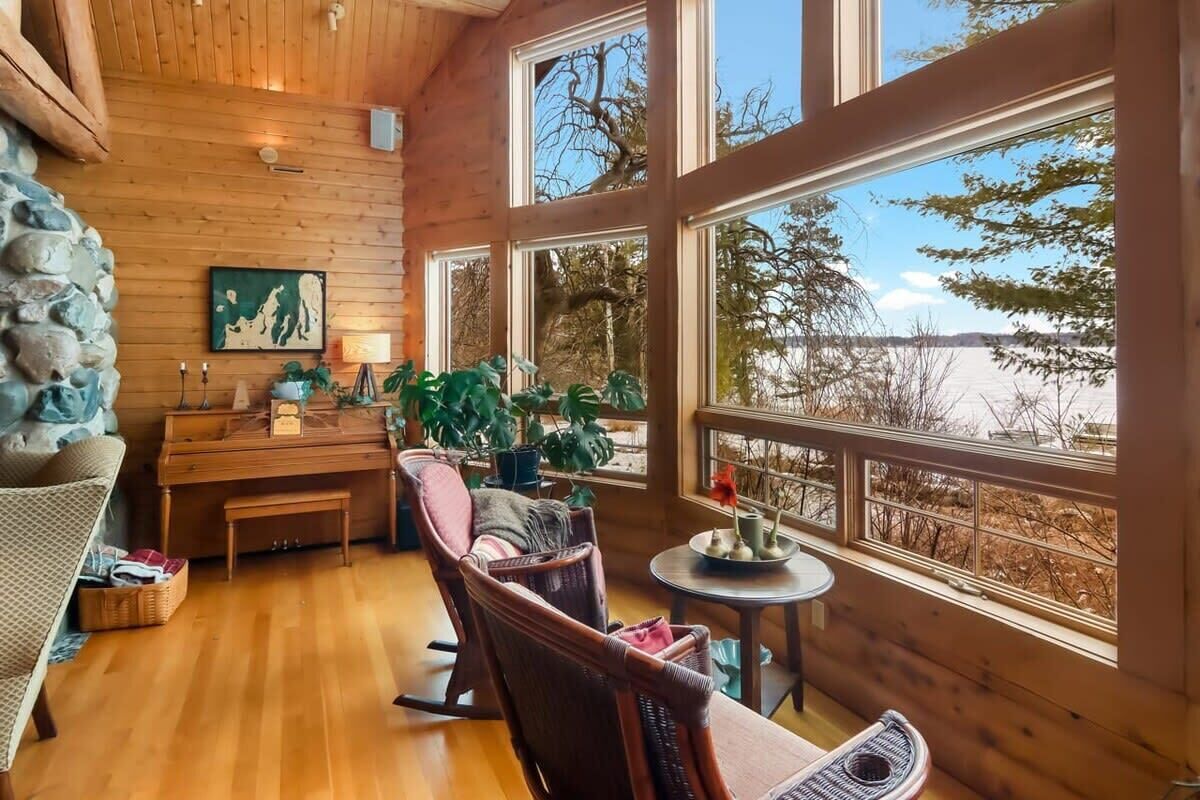 Elk Lake Lodge Summar Summary:Available for stays of 30 days or more! An extraordinarily unique property with 300 feet of Elk Lake frontage, an abundance of beautifully landscaped flowering gardens, a natural stone hot tub, a pond, fire pit, and a stream that circles the exquisite 7,000 sq. ft. log home that welcomes your pups. The architecture and features of this property are straight out of an Up North Michigan magazine. *All guests must be 25+ unless accompanied by a parent/guardian*See Pet Info Below*The Space:Main Floor-Half - Bathroom in main entryLiving room, enormous open kitchen, home officeFamily room/dining area with a half bathroom that can be accessed from the garageScreened in sun roomPrimary Bedroom with King Bed and connected full bathroom with tub and shower.2nd Floor- Bedroom areaLoft seating area Bedroom 2 - Queen Bed and a Twin BedBedroom 3 - Queen BedBathroom between bedrooms 2 and 3, shower and tubBedroom 4 - Full Bed with DeskBedroom 5 - Queen Bed and a Twin BedBathroom between bedrooms 4 and 5, shower only2nd Floor Game Room:1200 sq. ft. space above the garage; includes 86 inch TV, Roland electronic drum set with headphones, Yamaha digital piano, pinball machine, darts, table tennis, foosball table, pool table, card table, and misc. board gamesAlso includes bar with full size refrigerator, bar size Bosch dishwasher and kegerator (choice of beer upon request). This room is the highlight for many guests!There is an attached bathroom with a shower. Other features in the home-Attached 3 car garageWood burning fireplace Heated floors 1GB internet Outside-Large in-ground stone and boulder hot tub open all year round! Includes a smaller heated pool above the hot tub that is able to become waterfall into lower tub.Outdoor firepit Outdoor showerPropane GrillDock and mooring ball available Memorial - Labor Day Pond in front of the house leads into a stream around the house and out to the lake.Extensive landscaping and mature trees on very large lot makes the property feel secluded and very private. This alone makes this property very unique.300 feet of lake frontage and acreage to enjoy. East side of lake provides fantastic sunset viewing.Other Things to Note:Please Note: All guests staying at this property must be 25 or older unless accompanied by a parent or guardian. This will be verified after booking confirmation. A damage waiver fee is required by Golden Swan for each stay. For this property, the fee is $129 and provides our guests with accidental damage coverage up to $2000. If the amount of damage exceeds this, or if the damage is found to have occurred with malicious intent, Golden Swan retains the right to seek damages beyond that amount.High chair and pack n play available upon request for an additional charge.There is a 3% non-refundable credit card processing fee applied to all reservations. Mid-stay cleans will be required at least every 14 days. Please let us know if you would like to schedule any extra cleanings in addition to this at time of booking.Dogs are allowed with an additional fee, with a maximum of 2 dogs. Please be advised that it is absolutely imperative for all renters to keep their dogs on a leash at all times. While we truly appreciate and value pets, ensuring that our furry friends are leashed or properly secured is of utmost importance to us. Please take your pup with you or kennel them when you leave the home. We cannot have lonely barking dogs left at our property. Please be considerate and clean up after your pet.DOCK: You can expect the dock to be available for use Memorial Weekend through Labor Day Weekend. Please only use the dock for 15-minute loading and unloading of passengers. A mooring ball just beyond it is available for mooring between boat rides. Winds and waves pick up super-quick and can cause damage to boats and docks. There are no protective dock bumpers to prevent potential boat-docking issues.