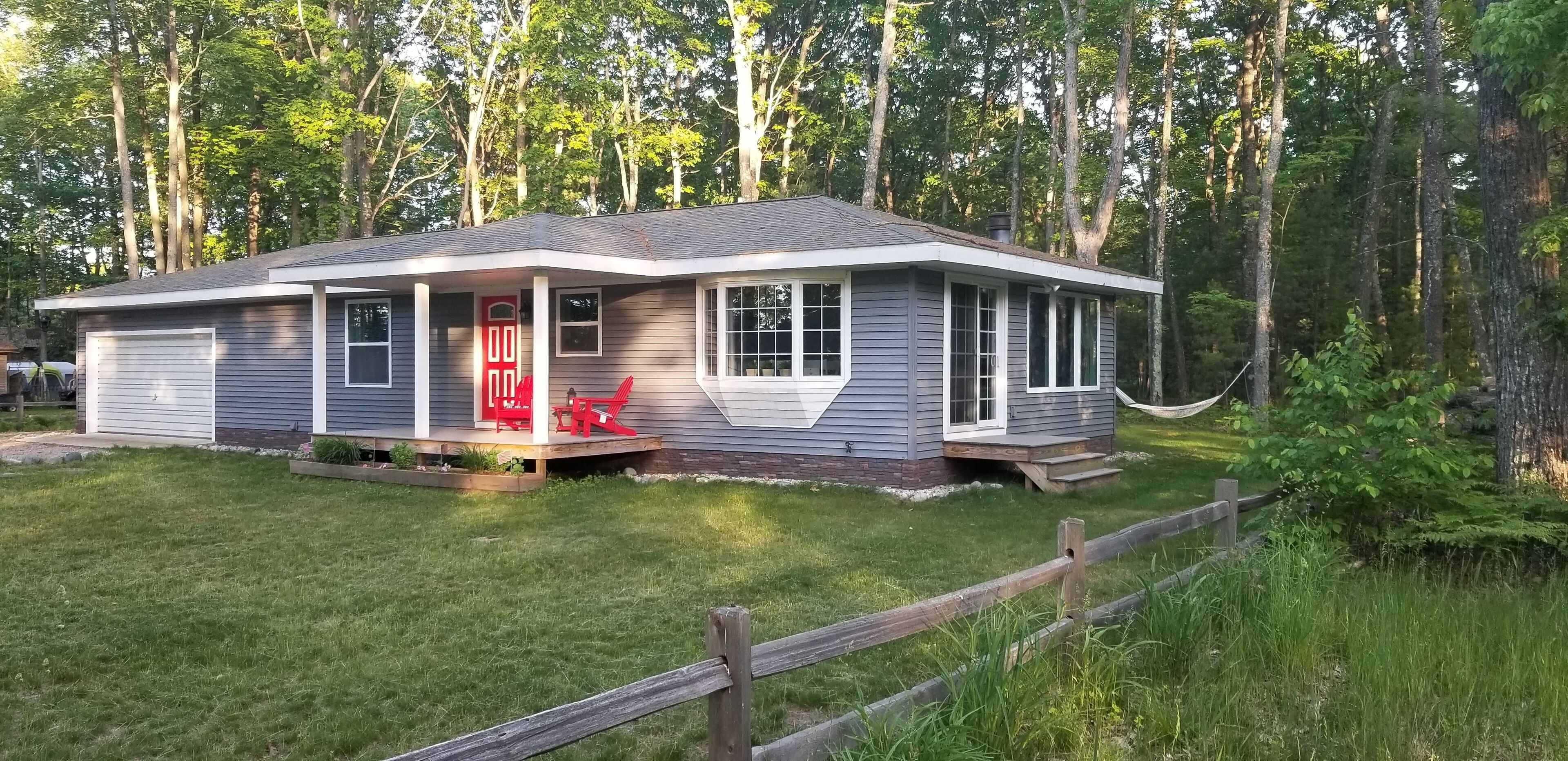 Walk to Torch Lake / Sandbar in under 2 Minutes!! Situated across the road from Torch Lake, this house offers the perfect getaway with a public Torch Lake/sandbar access conveniently located less than a 2 minute walk down the road. It is also just minutes away from downtown Alden (2.2 miles) and Elk Rapids (13 miles).The house was remodeled in the spring of 2015 and now includes a full kitchen with stainless steel appliances: a stove, oven, dishwasher, and microwave. Located next to the kitchen is a dining area that seats up to 6 people. The living room, adjacent to the dining table, offers comfortable seating for family game nights and is also great for just relaxing. The master bedroom includes a queen sized bed as well as an attached walk-in closet and master bathroom. A second bedroom offers another queen sized bed and a third bedroom provides a full sized bed. There is also a washer and dryer located in the basement, right beside a foosball and ping pong table which are great for rainy days.Perhaps the best part of the house is out back. There is a romantic fire pit and lots of firewood for our guests. The fire pit is the perfect place for s'mores, camp songs, and ghost stories. A grill is provided for cookouts. The backyard leads right into the forest which offers miles of hiking trails to explore. Please note that this house is located in a residential neighborhood and we want to be respectful of our neighbors. The vacation home is intended for families who want to make life-long memories and not meant for loud parties.