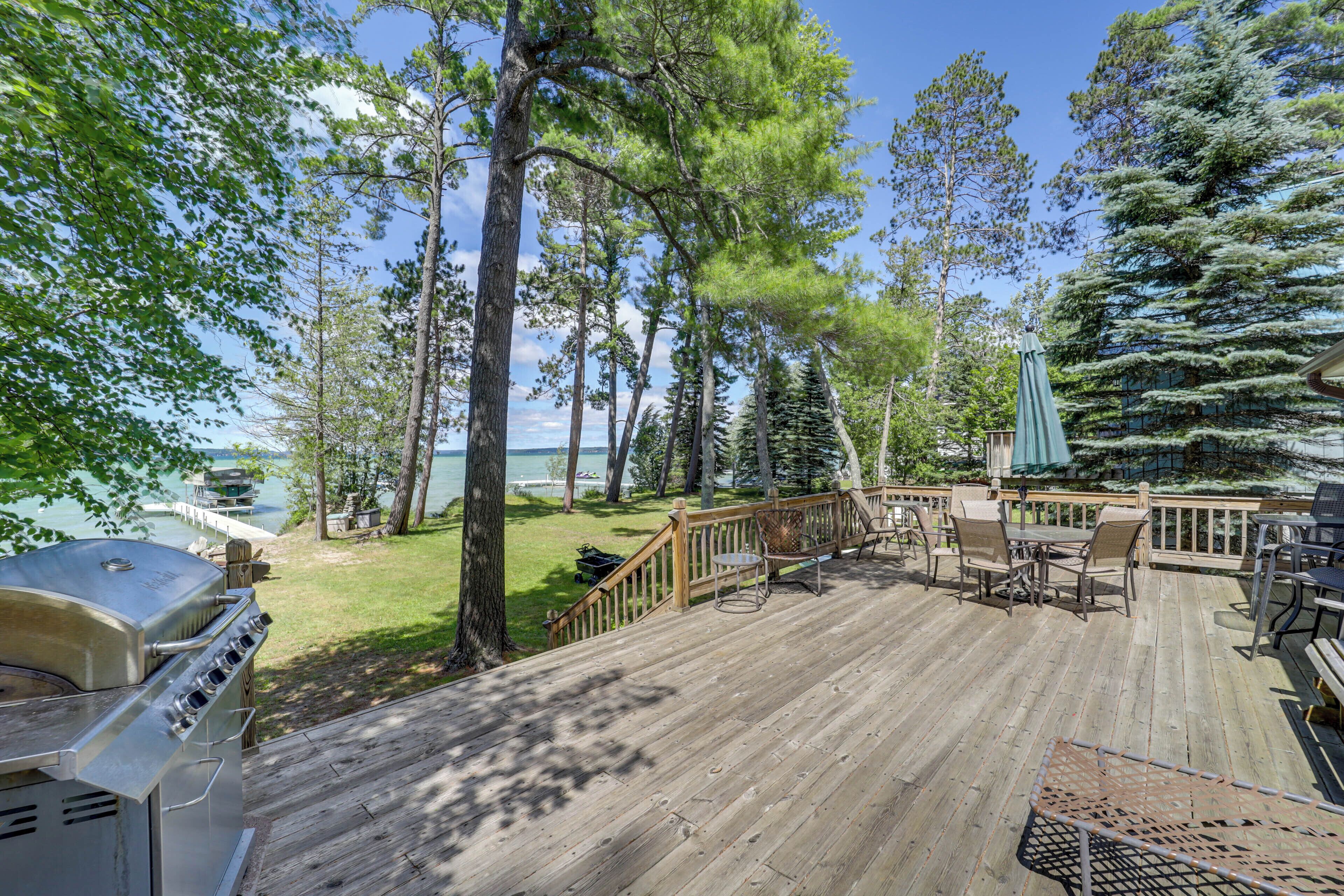 Waterfront Torch Lake Cottage w/ Private Beach! Escape to the serene shores of Torch Lake and experience the ultimate waterfront getaway when you stay at this 3-bedroom, 1.5-bathroom Rapid City cottage. Featuring a private dock and fire pit, this spacious vacation rental is ideal for families or groups of friends looking to unwind outdoors. Spend your days swimming, boating, or simply relaxing on...