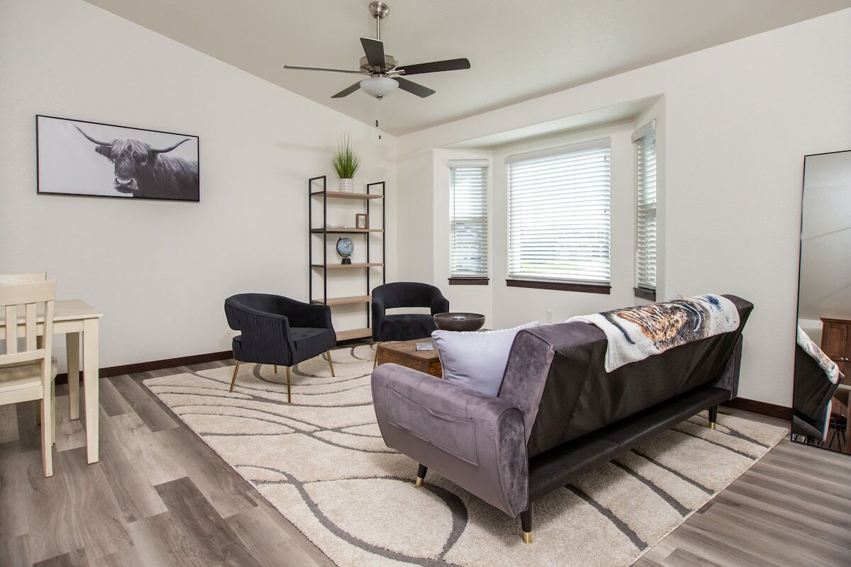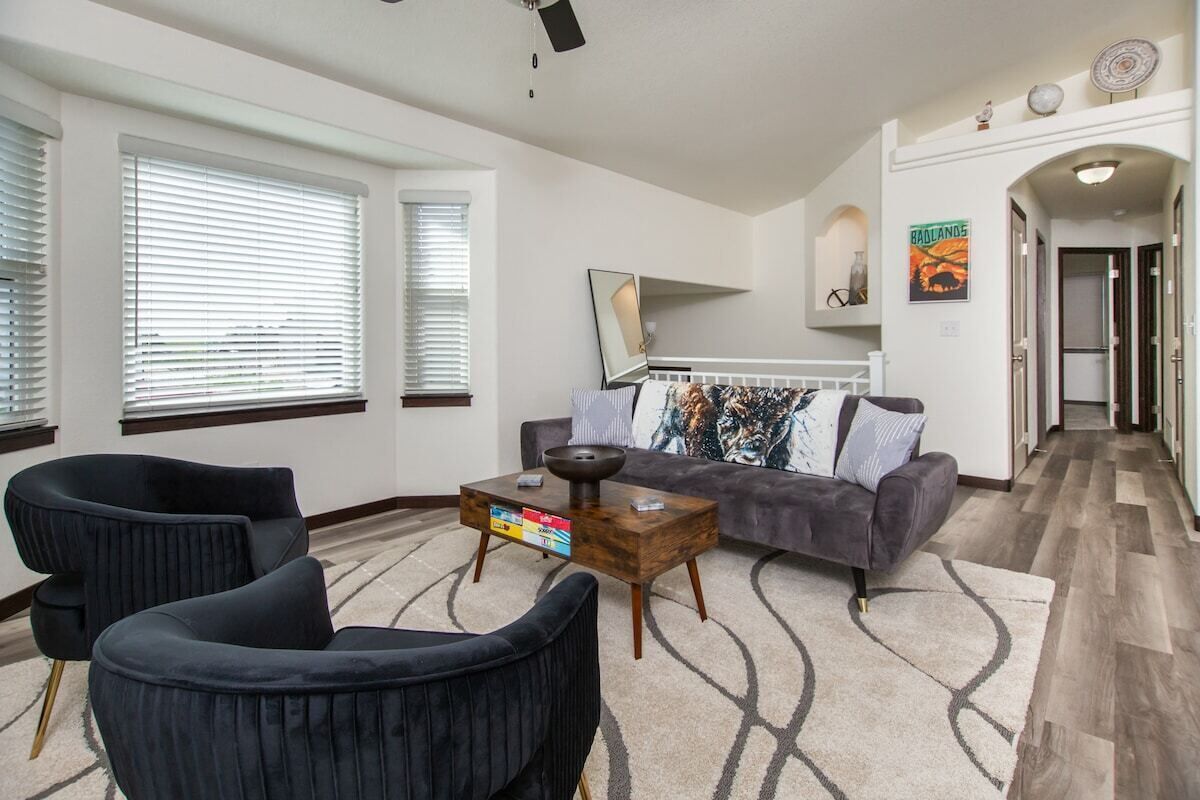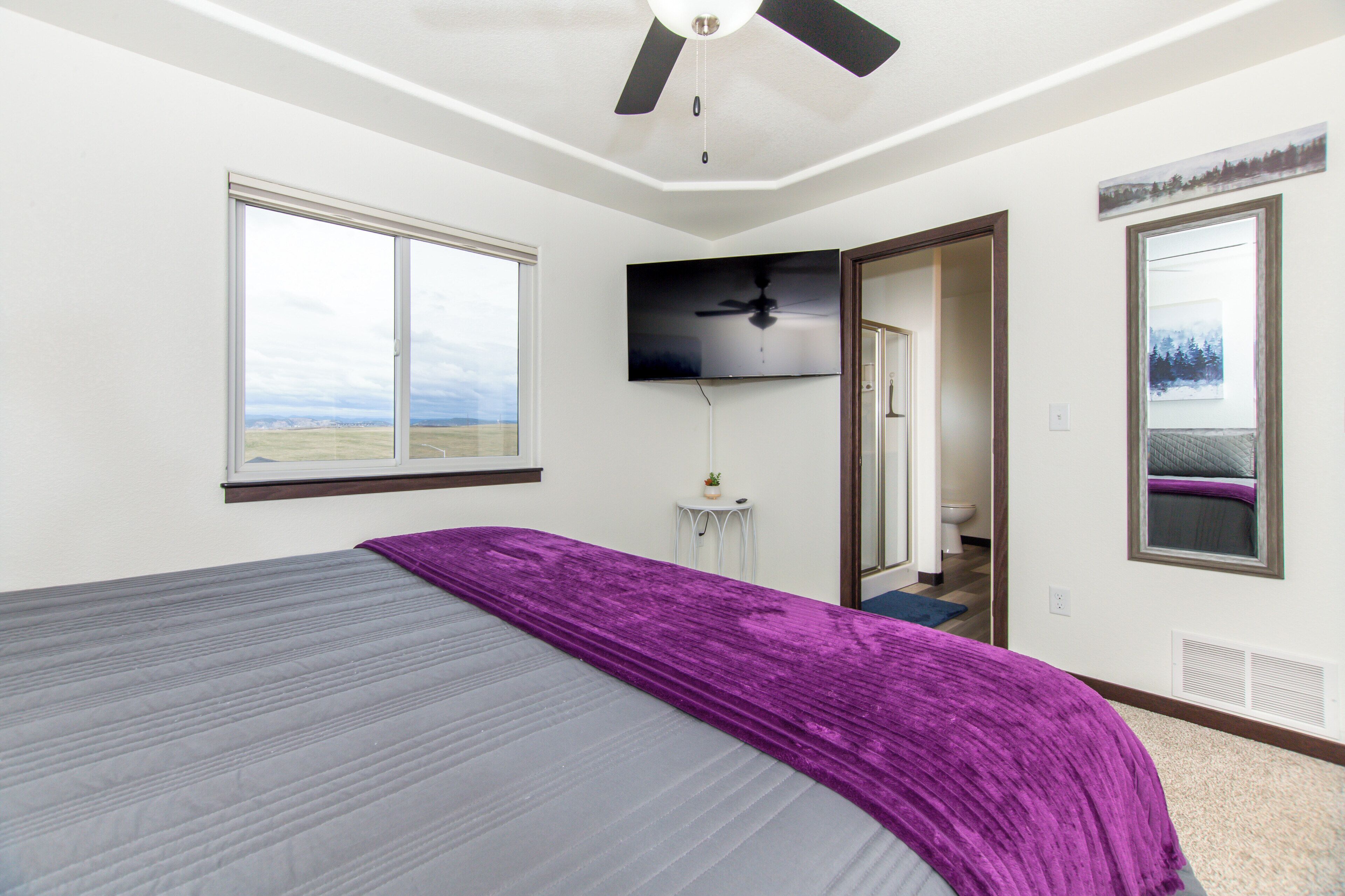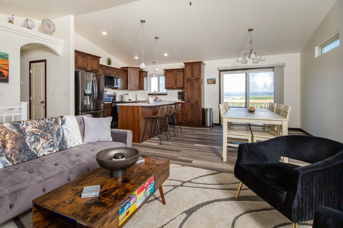 ⁑Hot Tub⁑Fire Pits⁑Great Views⁑New Construction⁑ Welcome to Buffalo Ranch (minus the actual buffalo and ranch part)! While we may not have any majestic bison roaming around, we do offer an inviting home for your ultimate getaway. Indulge in the tranquil ambiance, unwind in the hot tub, and gather around the crackling fire pits under the starry night sky.✔Hot tub✔Gas firepits✔King bed in master w/attached bath✔Brand new-2200 sq ft✔40 minutes to Mt Rushmore✔1 hr to Badlands National Park & Custer State Park✔Self check-in via door codeAbout the property:The house is located on the east side of Rapid City in Rapid Valley. It is a brand new home with lots of amenities.What guests love about our listing: ➥Hot tub and multiple gas fire pits➥Its brand new - be among the first to stay➥You'll have access to two parking spaces in the garage as well as multiple parking spots in the driveway or on the street➥Furnished with modern décor and furnishings➥Centrally located between Mt. Rushmore, Badlands National Park, Custer State Park, Wind Cave National Park, Sturgis, Deadwood, and all the other attractions in the area➥Professionally cleaned and sanitized between each guest ➥Free in-suite laundry➥Off street parking➥Easy self check-in via secure door keypad➥Fast WifiWhat some guests don't love about our listing:➥Its a brand new home in a new development. There are other new homes in the area so some daytime construction noise and construction traffic is possible. ➥Because the home is new, it does not yet show up on GPS or online maps. We provide detailed instructions on how to get to the home so you shouldn't have any issues finding it.Our home sleeps eights guests with one king bed, two queen beds, and two single beds.➥All beds have extra pillows and blanketsComplimentary Wi-Fi, tea, and coffee. The kitchen is stocked with plates, glasses, silverware, cooking utensils, basic cookware, and all the standard kitchen appliances. Enjoy your stay, we hope it feels like home!Other details to note: -Self check-in/keyless entry. Easily check yourself in with an electronic lock. Your code will be provided prior to your check-in time. -Please remember that you’re staying in a house, not a hotel. Please treat the house with respect. If any problems arise, we will do our best to take action ASAP, but there is no one living on-site 24/7.-The house has a three car garage. The owner parks a truck in one of the spots farthest from the entrance. The other two garage parking spots are available for your use.-Sprinkler system: The house has a sprinkler system that runs on a preset schedule. It runs on even numbered days and has two cycles. The morning cycle begins at 6:00 am and the evening cycle begins at 11:45 pm. Each cycle runs for approximately 2 hours and 20 minutes. Each zone runs for about 20 minutes so the sprinklers near the hot tub and outdoor seating area will run from approximately 12:45 am until 1:05 am. - This is NOT A PARTY HOME, any reservation found to have unregistered overnight guests in the home will be escorted off the property and the booking will immediately be cancelled with no refund. - Quiet time hours between 11 PM and 7 AM.- No smoking of any kind (cigarette, marijuana or vaping) - a $250 fee will be charged if the property smells of smoke, or any evidence is found that smoking occurred inside the property.- The maximum occupancy on this property is 8 people. Additional friends/family are allowed at the property during your stay but please make sure that all overnight guests are declared on the reservation. - Additional cleaning fees may be applied if the house is left messy and unorderly. Please follow check out procedures prior to departure.- Late check-out fee of $50 per hour will be applied if you have not vacated the property by the 10 AM check out unless prior permission is granted from the host. If check out is more than 2 hours late, you will be charged for an additional day and will be charged at our base nightly rate of $500, but this does not award you to stay for the additional day as this could impact other reservations.- Any violation of the house rules could be grounds for immediate termination and removal from the property without a refund.