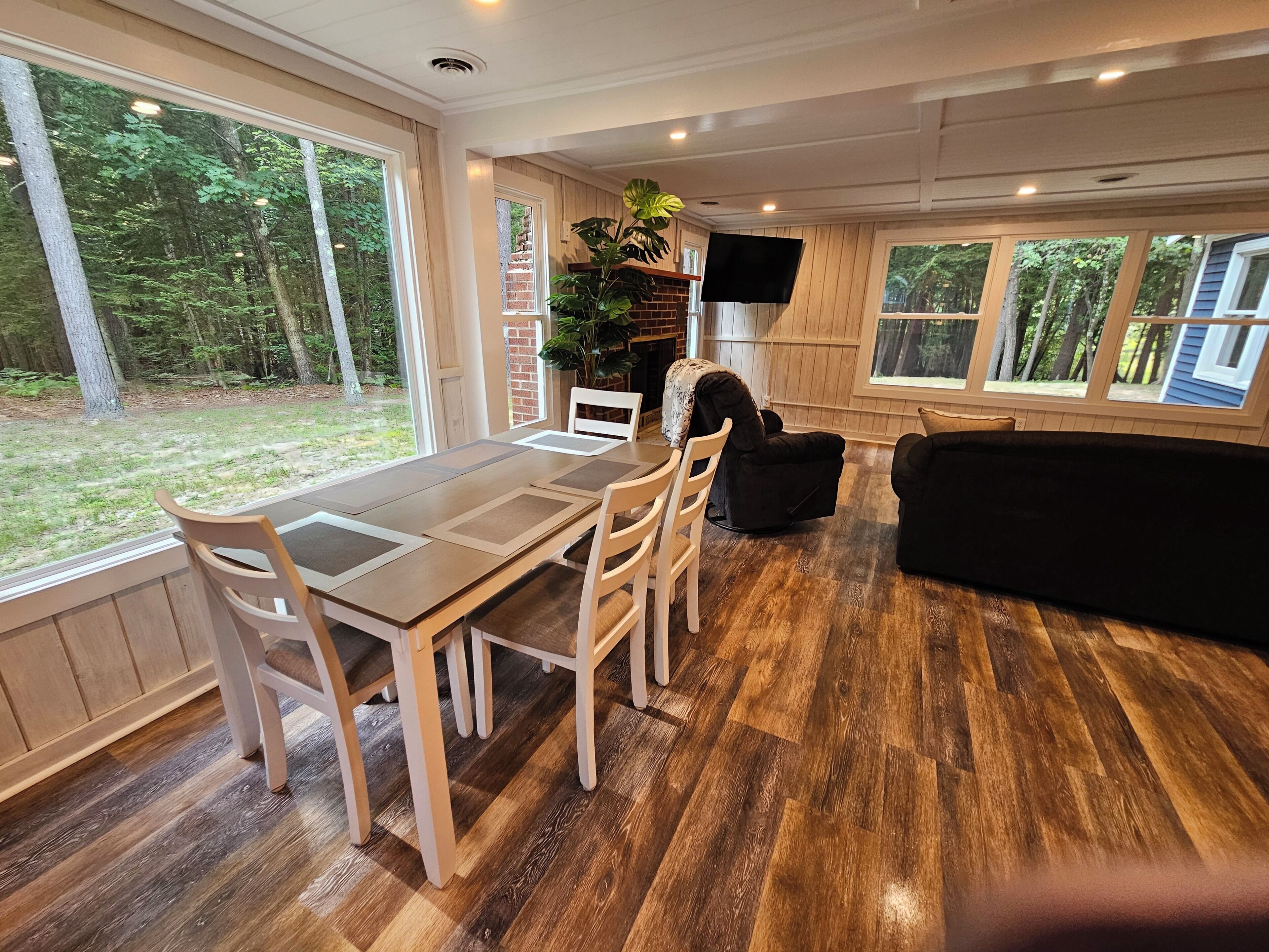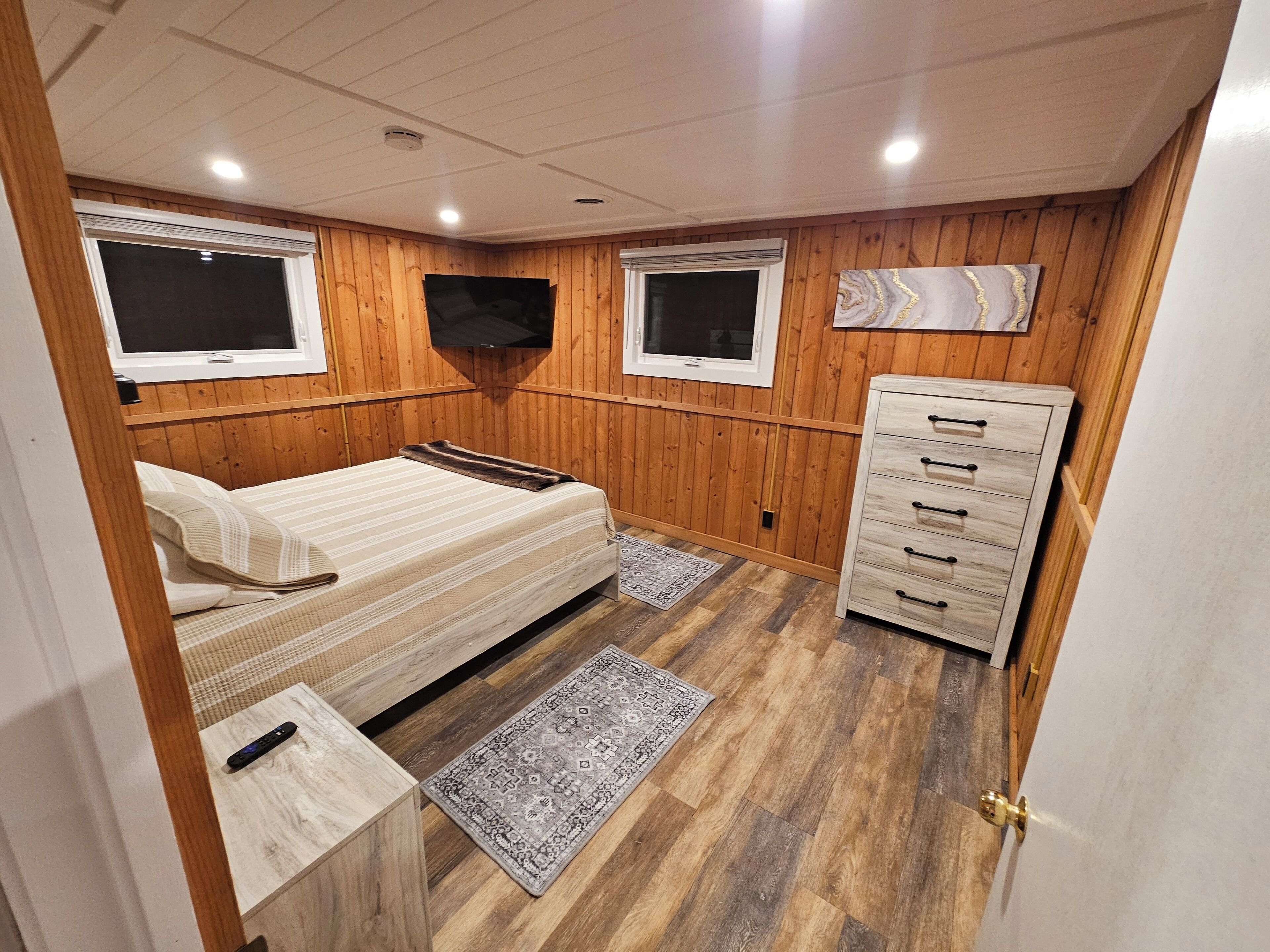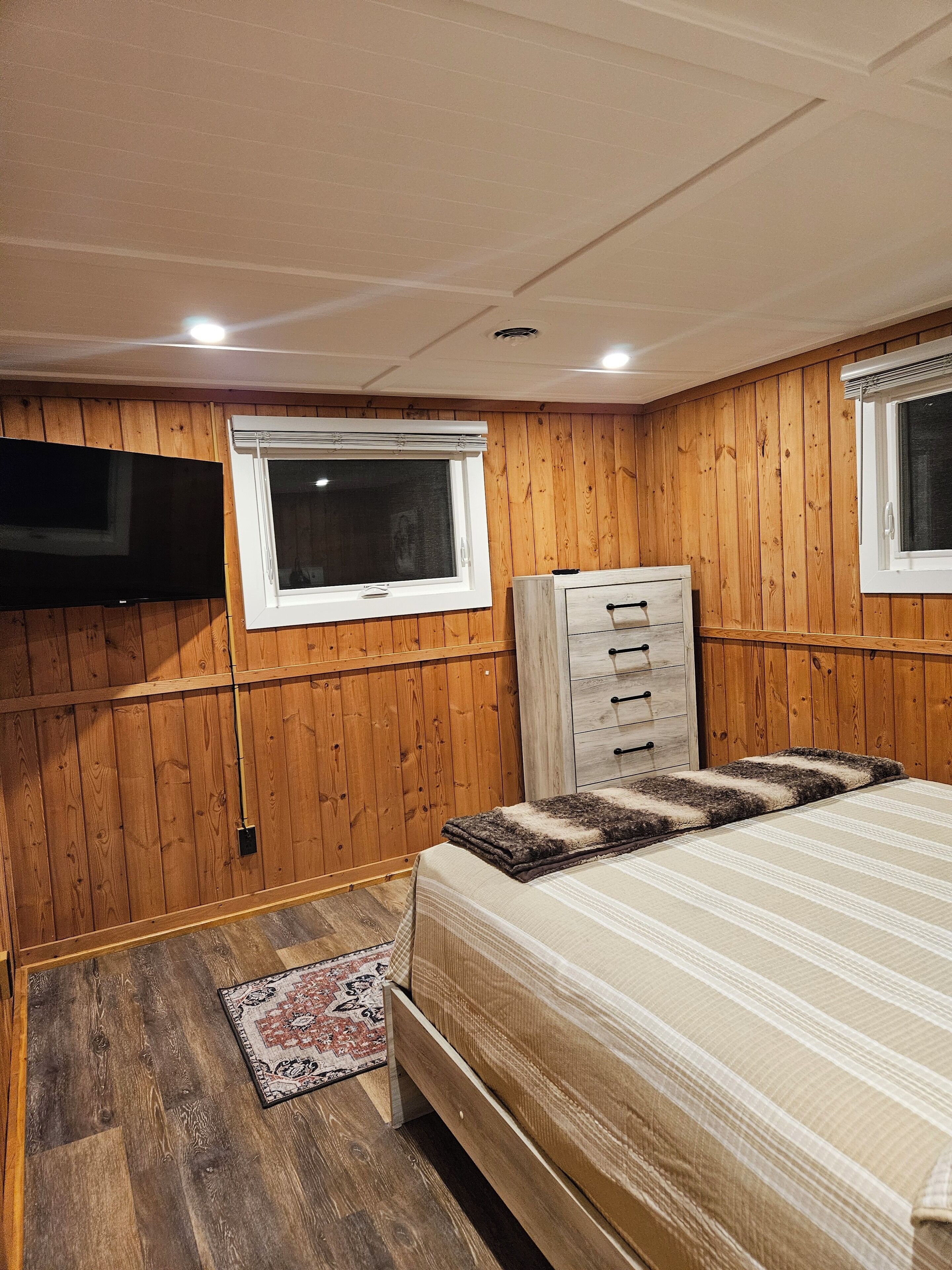 Cozy 2-bedroom cabin on Rapid River right down the road from Torch Lake -- SUMMARY --Escape to this cabin in Rapid City, MI located right down the road from Torch lake and on the banks of beautiful Rapid River. Enjoy Sunset views on the private dock, and-or take a Kayak down the river and into Torch Lake. This cozy retreat features 2 bedrooms, a peaceful living room with a sofa bed, and all the essentials like AC, WiFi, and a washing machine. Guests can unwind in the nice ambiance of this excellent property, making it the perfect home away from home. Enjoy your time in Rapid City at our cabin.- THE PROPERTY --The Cabin is recently newly renovated and its located on the banks of Rapid River. Torch Lake and Skegemog Lake are accessible with Paddle board, Kayak or Canoe. The River right at the dock is slow, shallow and has a sandy bottom. Take a lawn chair and just sit and refresh with nature as the river cools your feet. The kitchen is stocked with everything you may need, including silverware, cookware, and dinnerware. Coffee Maker, Toaster, and other kitchen appliances are included. Living Room and Bedrooms all have Smart Roku TV's. The cabin sleeps up to 6, with each of the 2 bedrooms having 1 Queen bed, and the living room having a pullout queen bed. -- THINGS TO DO --Torch Lake is less then 1 mile away - Swim, boat, enjoy the sunshine on one of the most beautiful lakes in the world. Use Kayak, canoe, tube, or standup paddle board to float down the river to Torch Lake or Lake Skegemog. Fish or Fly Fish right off the dock, or give it a go on many of the Lakes and Rivers around. Hiking trails, Mountain bike trails, road cycling, 4-wheeling, two tracking are popular activates in the area. Many restaurants and winery options in the area as well as many enchanting small towns. -- OTHER IMPORTANT INFORMATION --Extra-person charges after the first two, may apply and vary depending on property policySpecial requests are subject to availability upon check-in and may incur additional charges; special requests cannot be guaranteedOnsite parties or group events are strictly prohibitedAbsolutely NO SMOKING or VAPING in the Cabin. Its Strictly ProhibitedThere is a single camera on the property, its mounted on the outside of the cabin facing the driveway entrance. This is used to ensure the safety of the guests and the owner.Guest are not to use the cabin wood fireplace.We are located right across the road from the cabin.