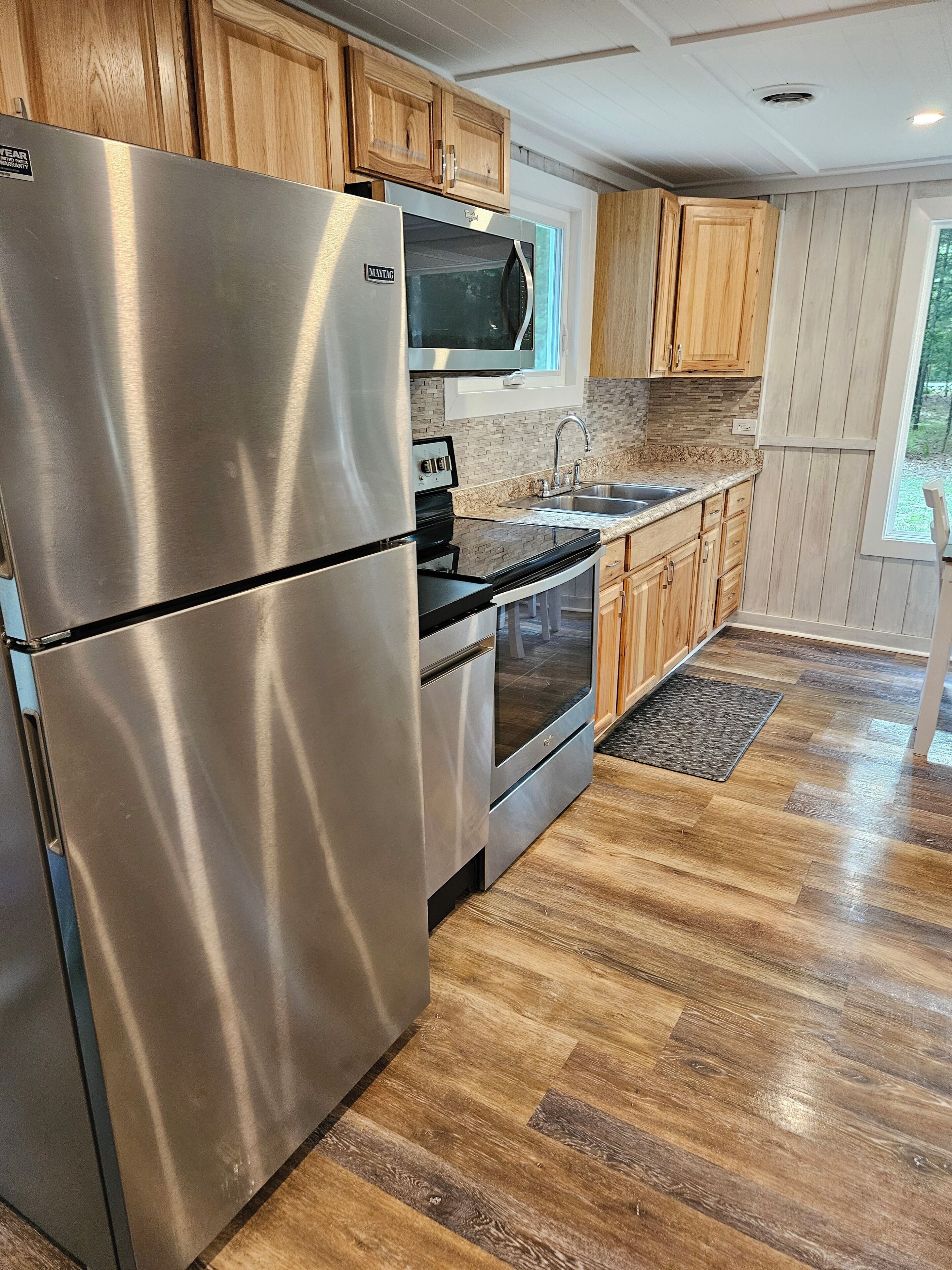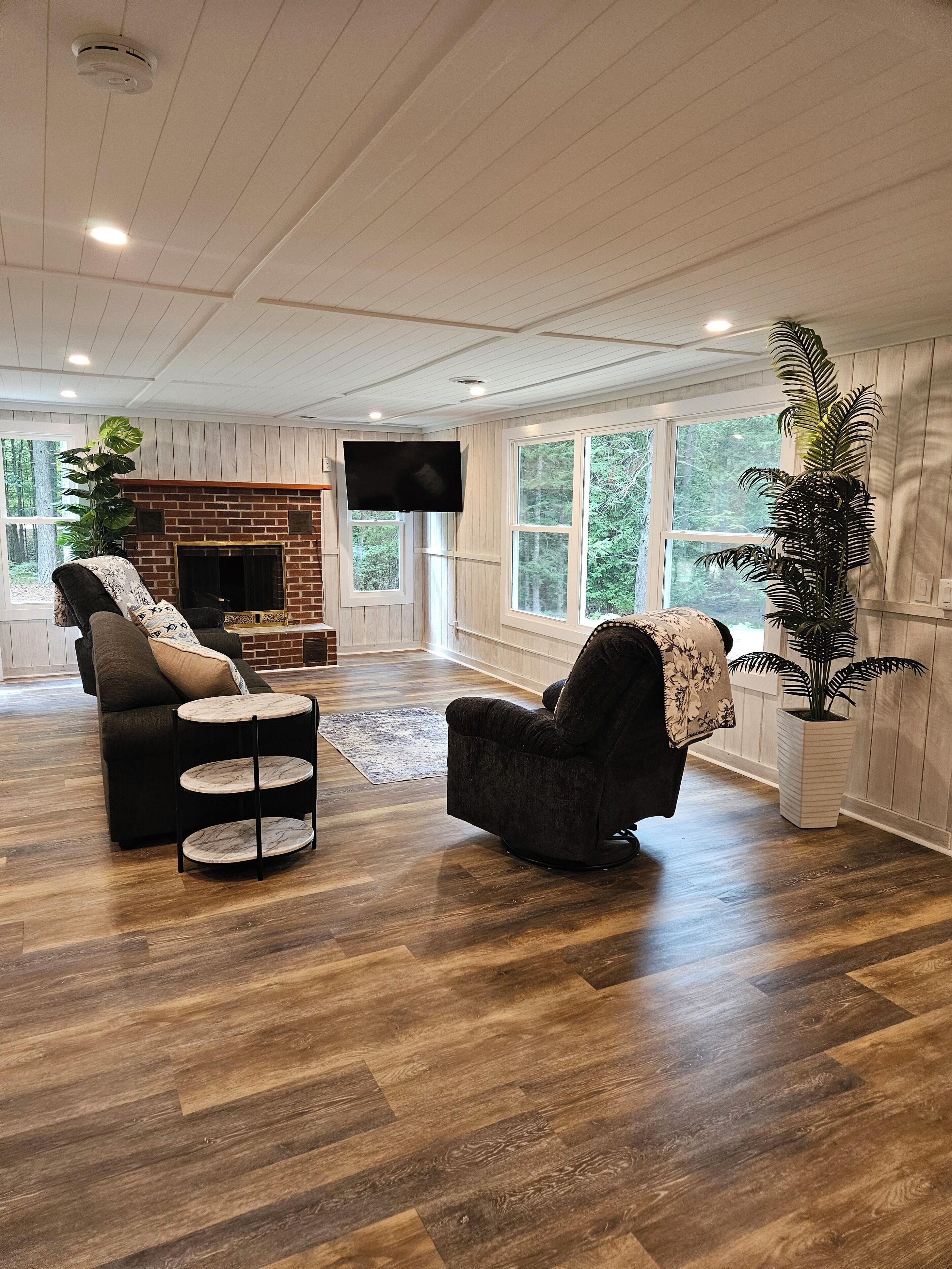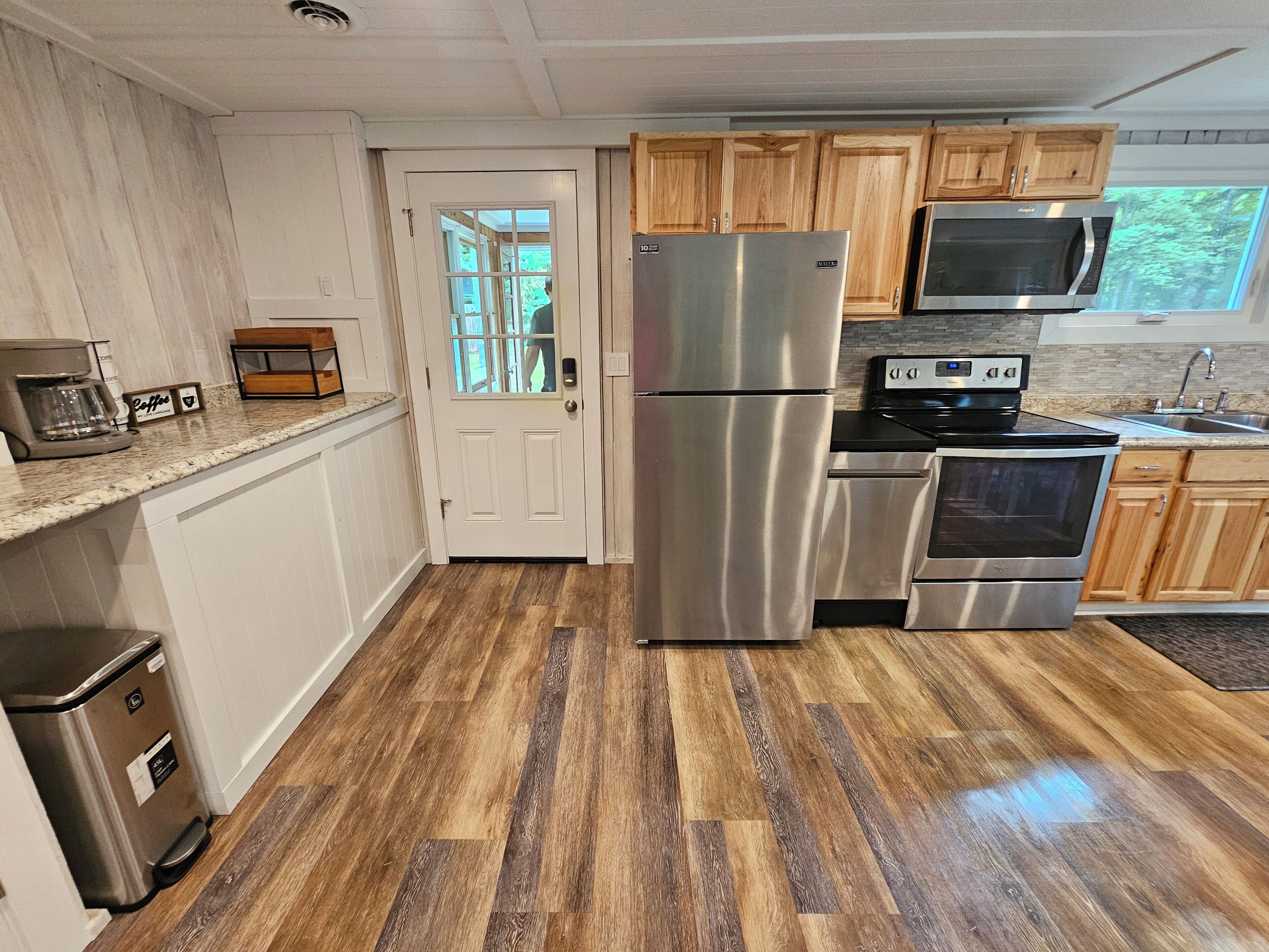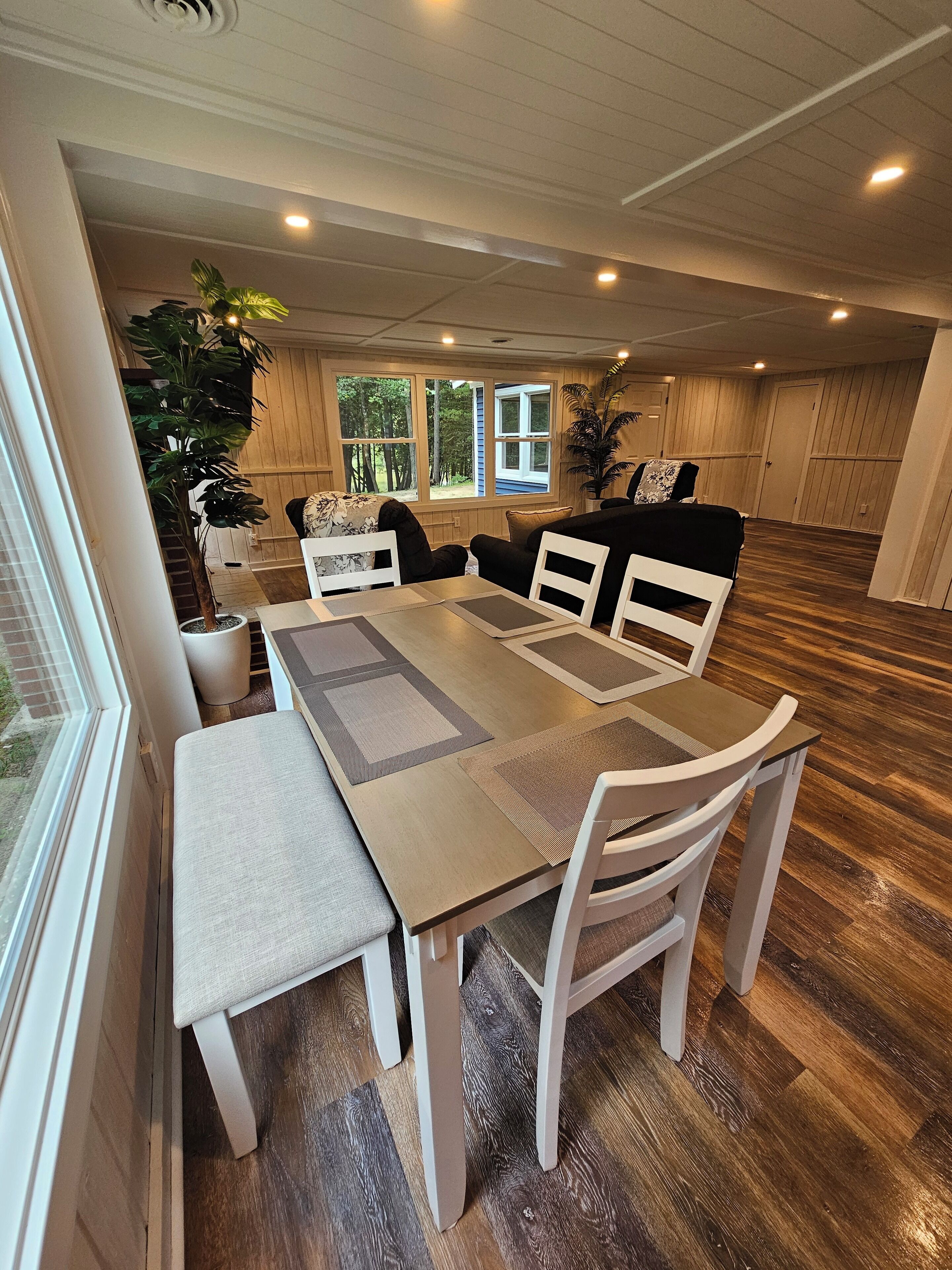 Cozy 2-bedroom cabin on Rapid River right down the road from Torch Lake -- SUMMARY --Escape to this cabin in Rapid City, MI located right down the road from Torch lake and on the banks of beautiful Rapid River. Enjoy Sunset views on the private dock, and-or take a Kayak down the river and into Torch Lake. This cozy retreat features 2 bedrooms, a peaceful living room with a sofa bed, and all the essentials like AC, WiFi, and a washing machine. Guests can unwind in the nice ambiance of this excellent property, making it the perfect home away from home. Enjoy your time in Rapid City at our cabin.- THE PROPERTY --The Cabin is recently newly renovated and its located on the banks of Rapid River. Torch Lake and Skegemog Lake are accessible with Paddle board, Kayak or Canoe. The River right at the dock is slow, shallow and has a sandy bottom. Take a lawn chair and just sit and refresh with nature as the river cools your feet. The kitchen is stocked with everything you may need, including silverware, cookware, and dinnerware. Coffee Maker, Toaster, and other kitchen appliances are included. Living Room and Bedrooms all have Smart Roku TV's. The cabin sleeps up to 6, with each of the 2 bedrooms having 1 Queen bed, and the living room having a pullout queen bed. -- THINGS TO DO --Torch Lake is less then 1 mile away - Swim, boat, enjoy the sunshine on one of the most beautiful lakes in the world. Use Kayak, canoe, tube, or standup paddle board to float down the river to Torch Lake or Lake Skegemog. Fish or Fly Fish right off the dock, or give it a go on many of the Lakes and Rivers around. Hiking trails, Mountain bike trails, road cycling, 4-wheeling, two tracking are popular activates in the area. Many restaurants and winery options in the area as well as many enchanting small towns. -- OTHER IMPORTANT INFORMATION --Extra-person charges after the first two, may apply and vary depending on property policySpecial requests are subject to availability upon check-in and may incur additional charges; special requests cannot be guaranteedOnsite parties or group events are strictly prohibitedAbsolutely NO SMOKING or VAPING in the Cabin. Its Strictly ProhibitedThere is a single camera on the property, its mounted on the outside of the cabin facing the driveway entrance. This is used to ensure the safety of the guests and the owner.Guest are not to use the cabin wood fireplace.We are located right across the road from the cabin.