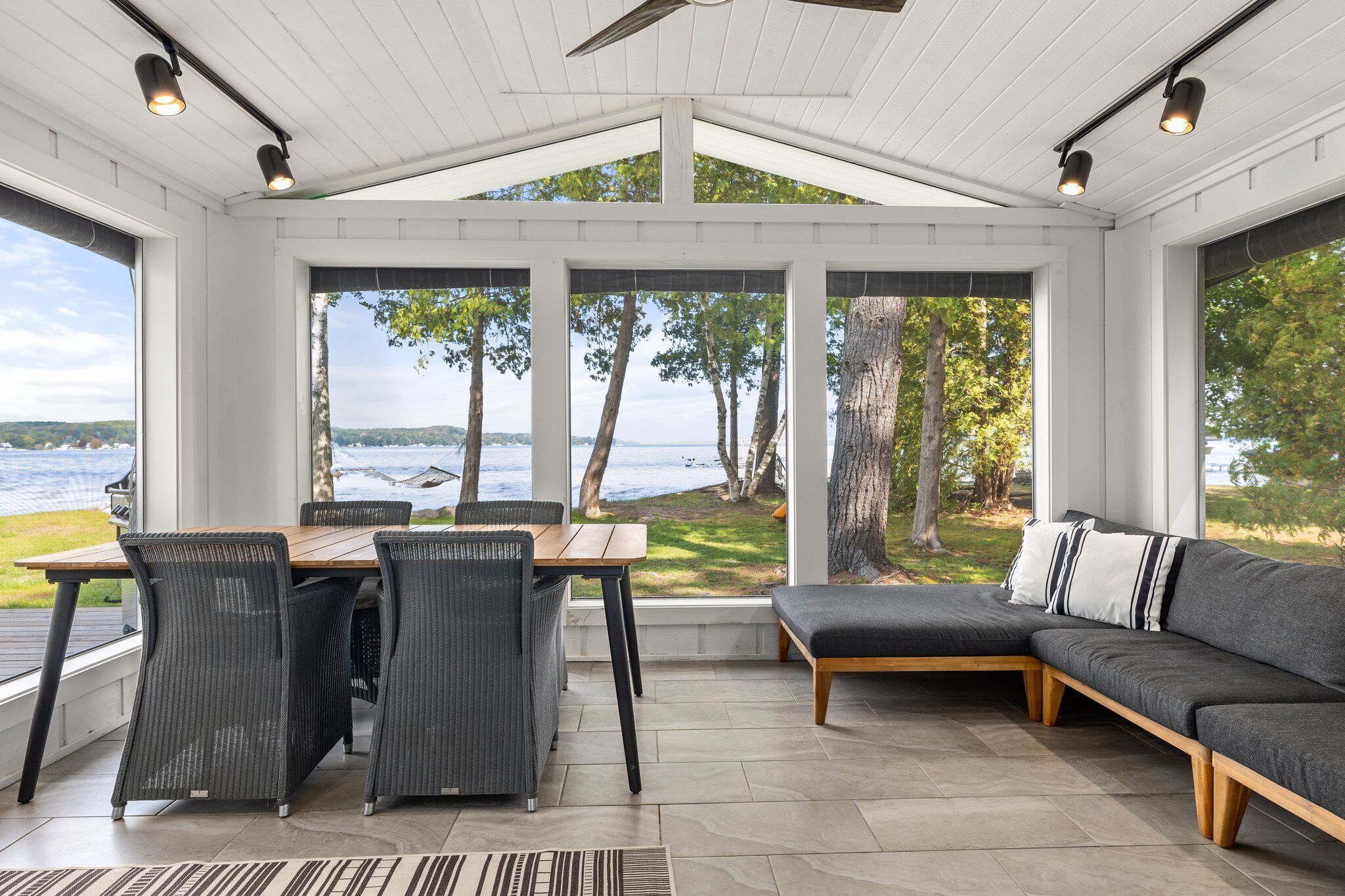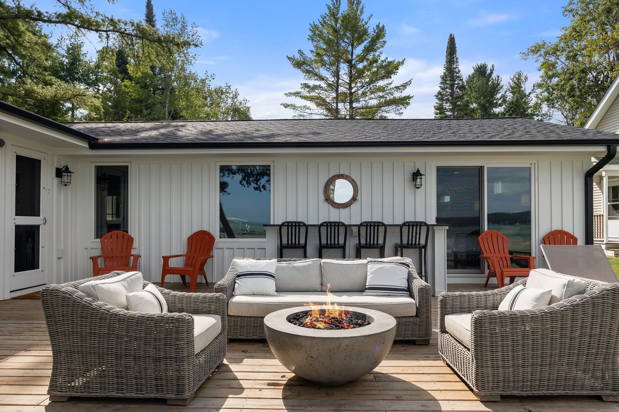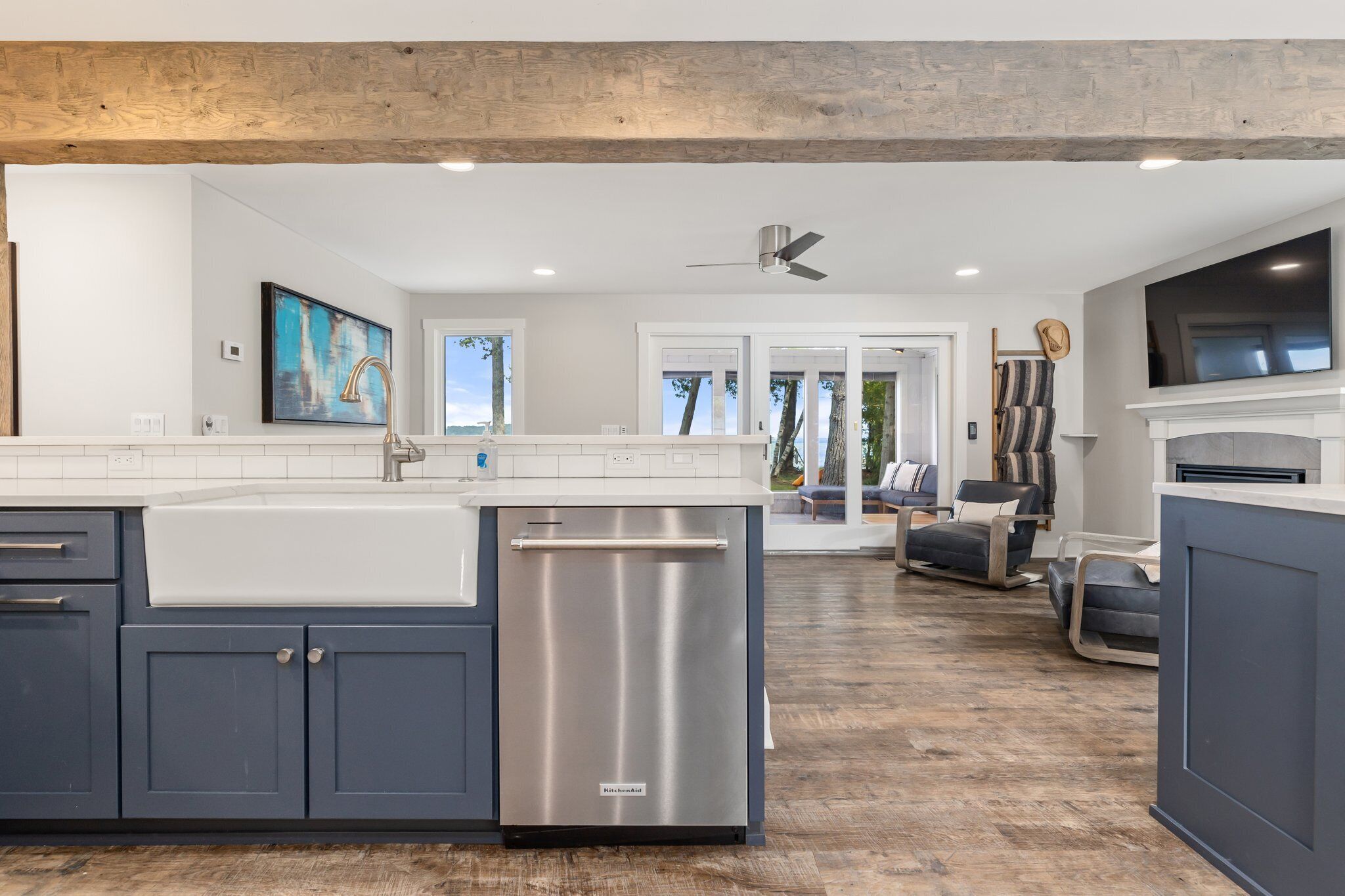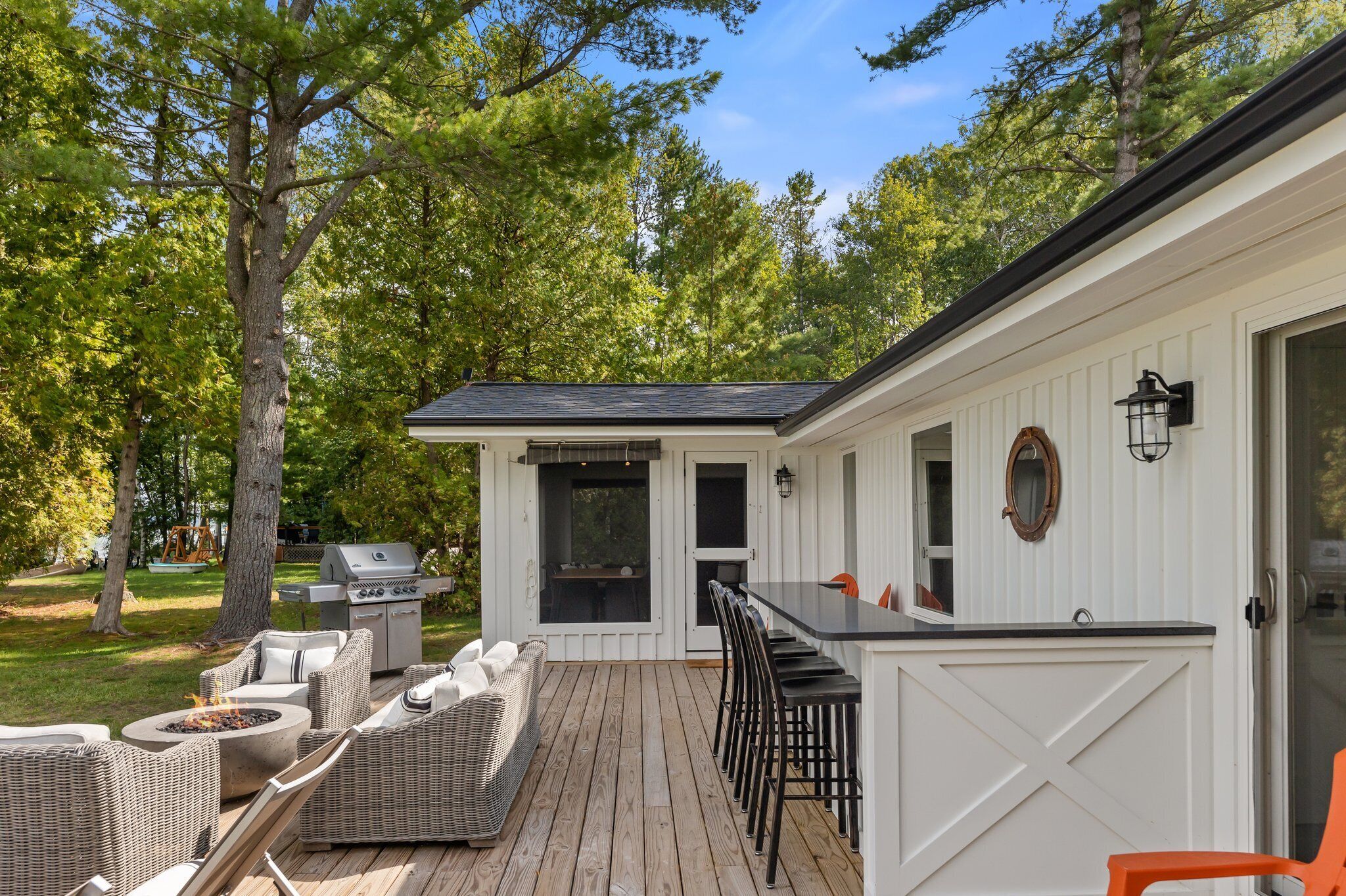 TORCH LAKE SOUTH END - COMPLETELY REMODELED - 6 BEDROOMS - SLEEPS 14 SANDY BOTTOMS COTTAGE AND APARTMENT. Completely remodeled! This high-end lake front cottage offers 4 large bedrooms, 2 baths, a huge open kitchen with attached living room, screened porch and large lakeside deck allowing for outdoor living at the lake! Nice sandy beach area on beautiful Torch Lake. The back apartment above the garage offers an additional large outdoor deck, 2 bedrooms and 1 bath, living room and kitchen. Sleeps 14 max combined. Located on the south end of Torch Lake, this is the place to be. There is much to see and do in the surrounding areas. The town of Alden is just a short drive or Bellaire, Elk Rapids, or Traverse City. But really, once you get to the house, you most likely will not want to leave!!! Bring a boat or rent one here and spend your time out on Torch Lake and enjoy exploring the 19 miles of turquoise blue water. Or boat the many other connecting lakes .... and then, of course, you can just anchor at the Sand Bar and soak up some sun and enjoy the day. So many things to choose from, it's up to you which direction you want to go!! So, book this house now for a great summer vacation. We are looking for respectful renters that will respect the property as well as the nearby neighbors.NO SMOKINGRenters must be 25 years of age or older.If you find this home is not available for the week you want, we do have other rentals that might be open for the dates you are looking for at!http://mytorchlake.com**