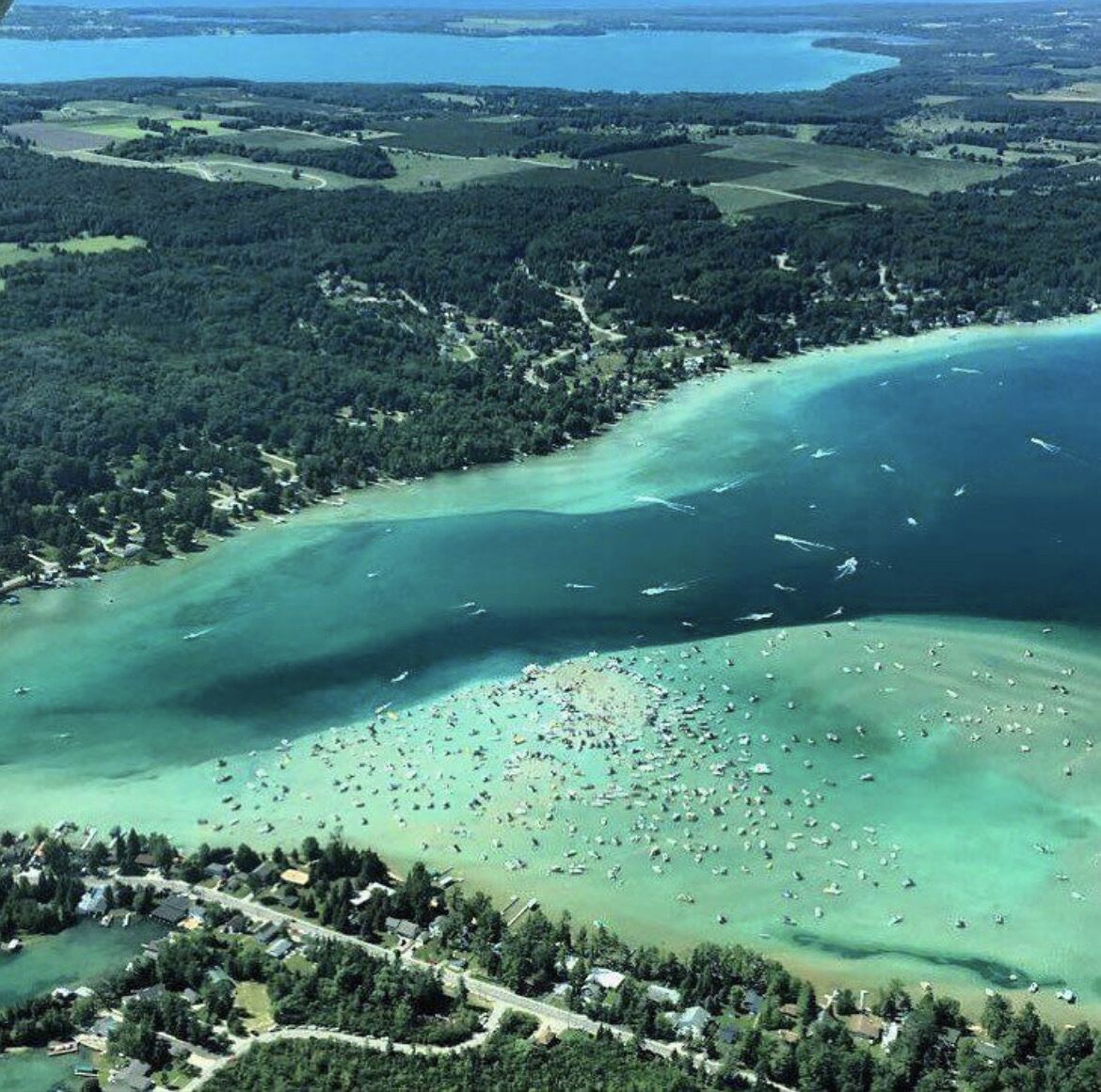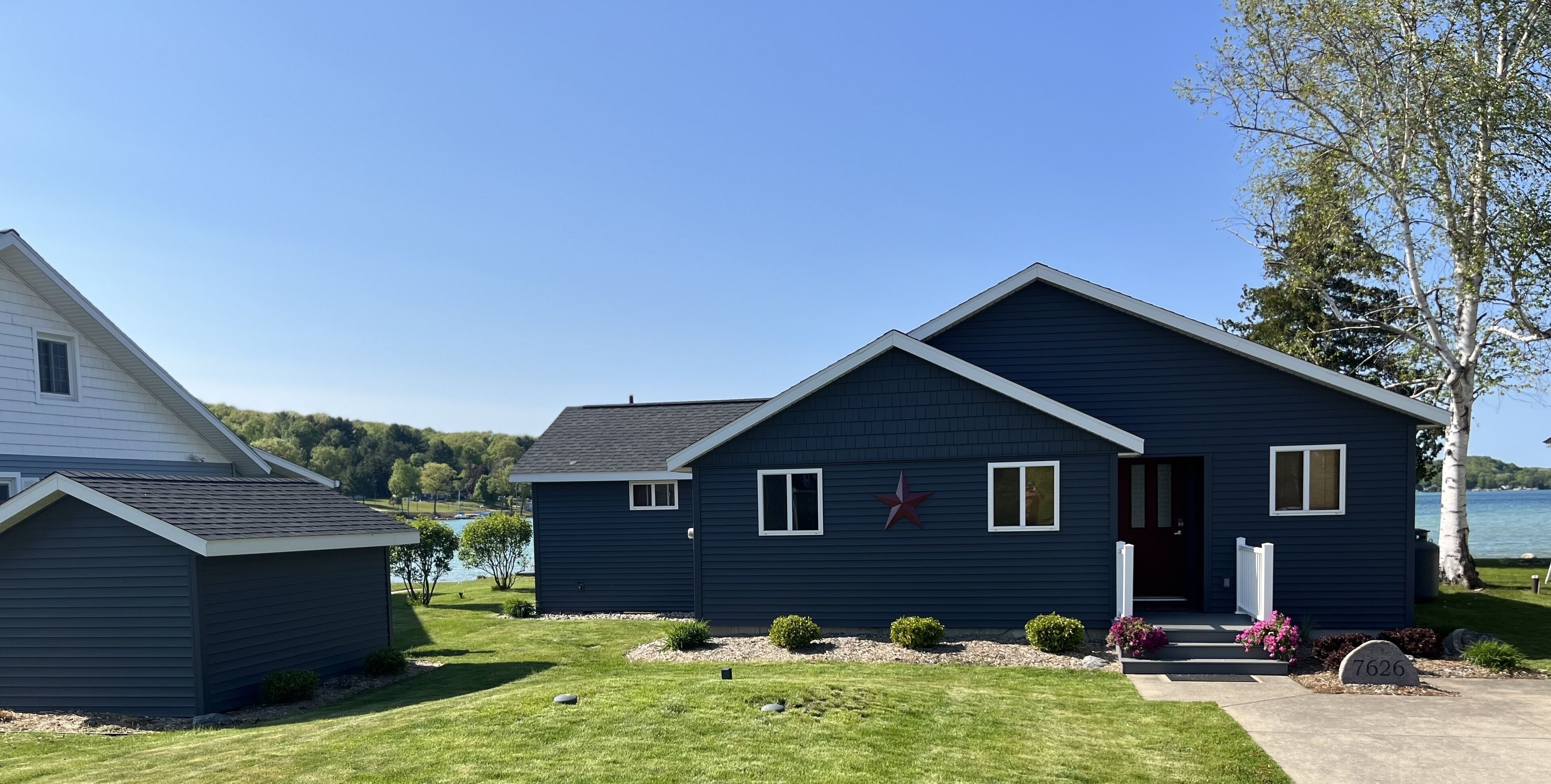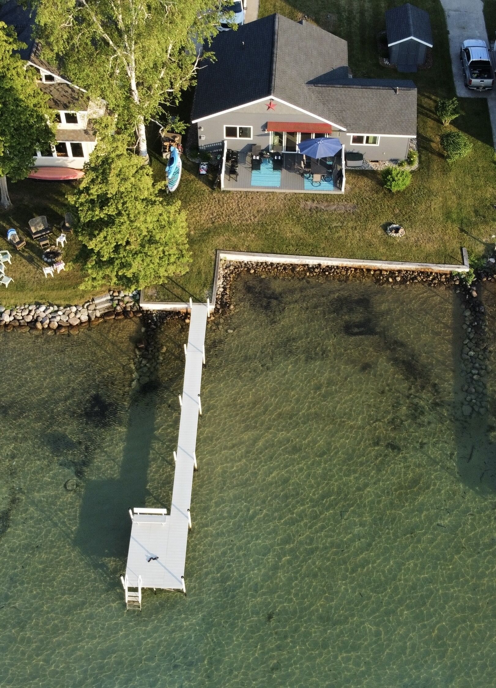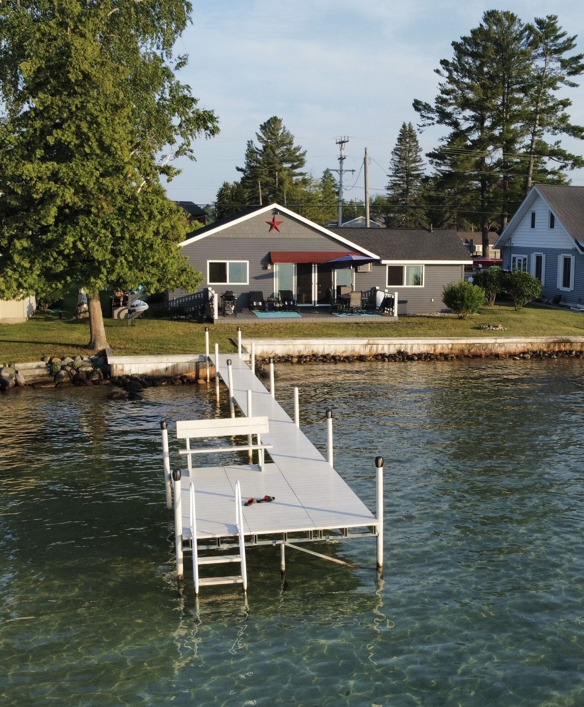 Torch Lake Sandbar Escape Four seasons of fun on one of the world's most beautiful lakes. Lakefront property located within walking distance to the famous Torch Lake sandbar. Wineries, breweries, skiing, fishing, and golf nearby! Come to the ultimate family vacation destination.Master suite overlooking the water has a king bed, large closet, and private half bathroom. Another bedroom has a twin bunk bed with festive up north decor. The third bedroom has a twin daybed with a trundle, as well as a full size bed. The living room and dining areas have gorgeous water views with large windows and walk out doors to the patio. It's a great place to play games and watch the sunrise. There is a natural stone fireplace (gas operated) for cool nights in the Fall, Winter, and Spring. The new patio has comfortable lounge chairs and a dining table with umbrella. There is also a gas grill and Blackstone flat top grill available. Kayaks are available for rent for an additional fee. There is a dock available Memorial Day weekend until October 1st. The dock extend about 40 feet and has a swim platform. You can tie a boat at the end. The boat launch and marina are a 5 minute walk from the property. Crystal clear water off the house is also accessible from the seawall steps of off the end of the swimming platform on the dock. Due to the close proximity to the Torch Lake Sandbar, you can walk to the Sandbar from the end of the dock.