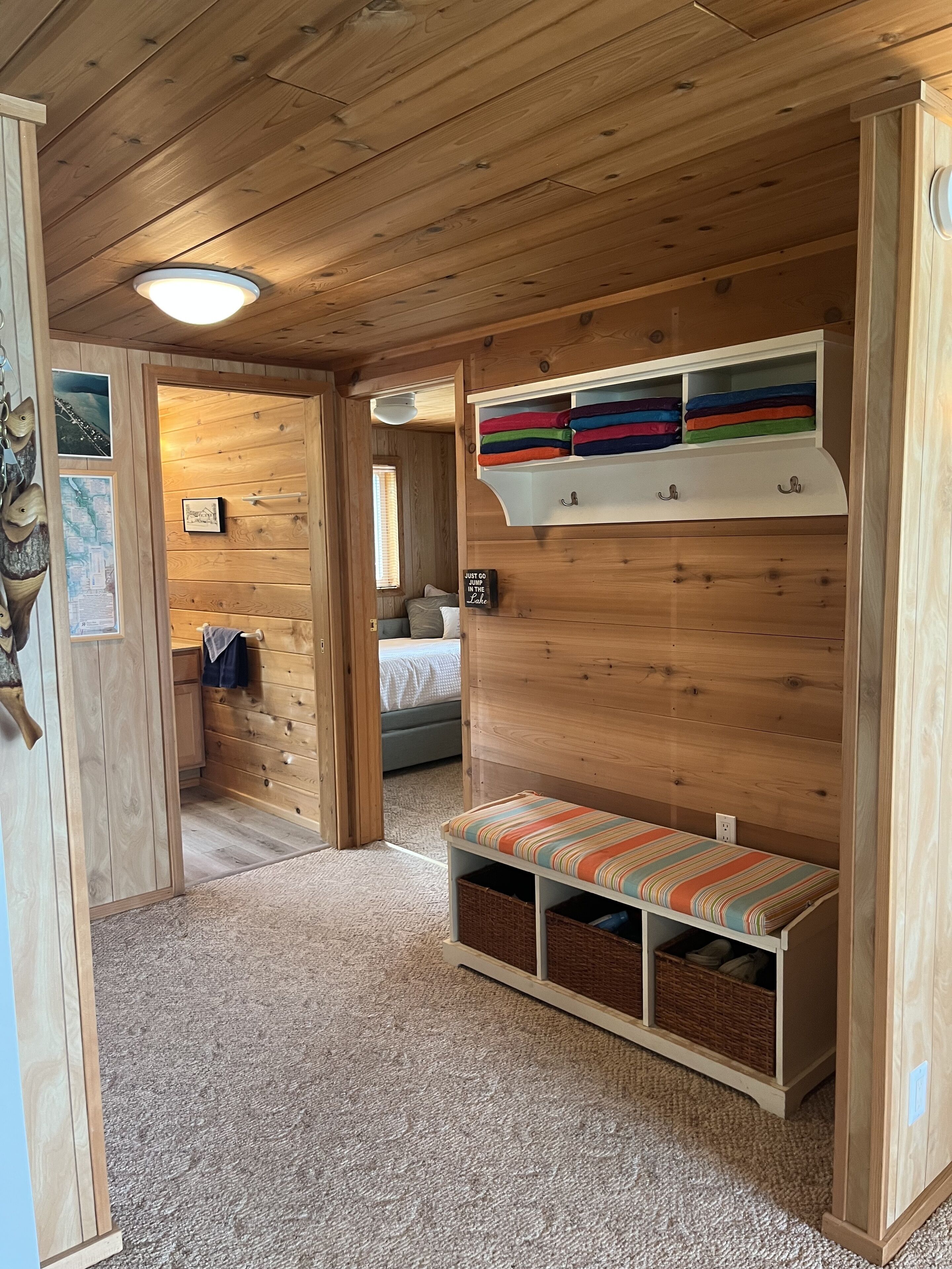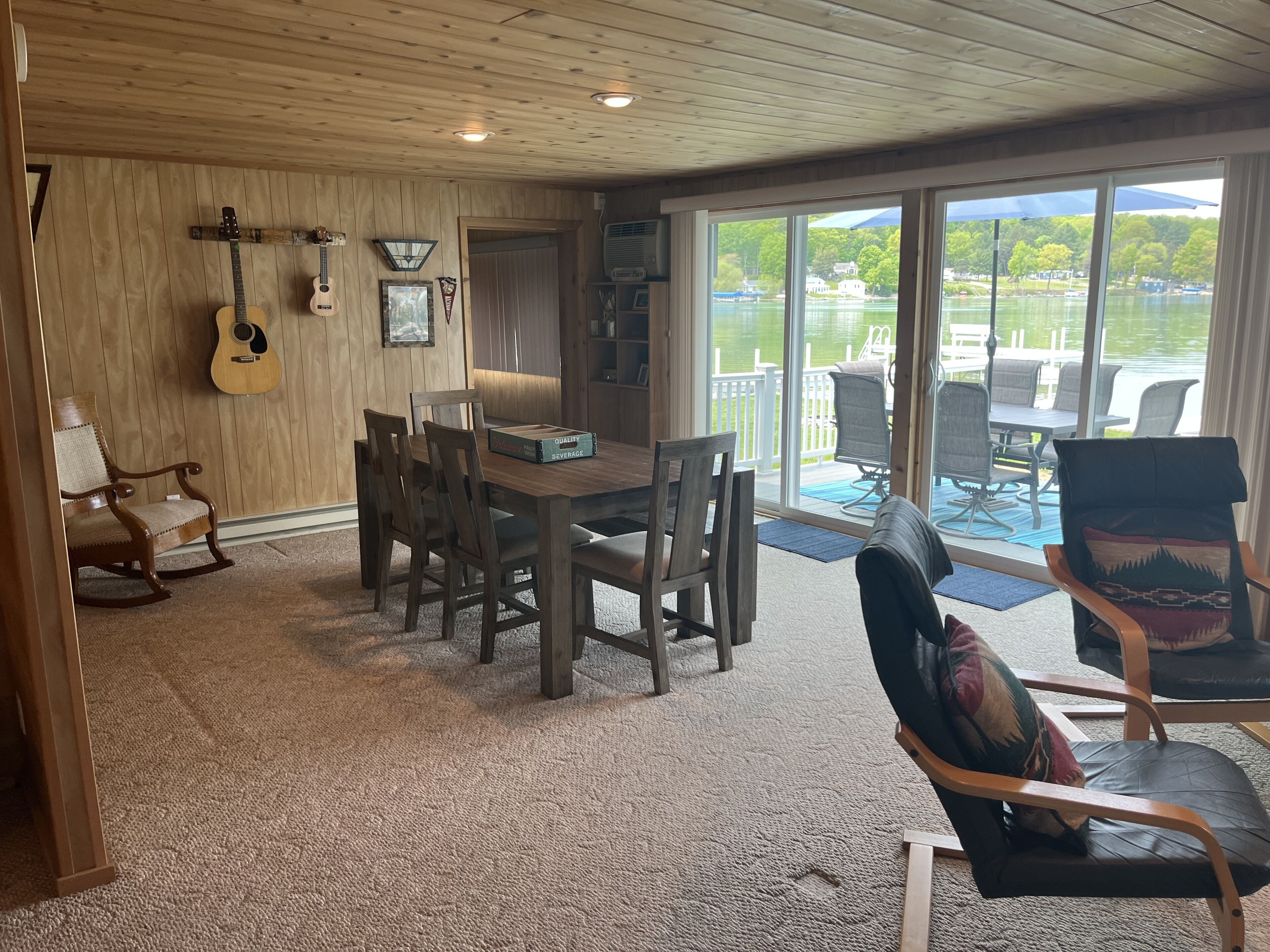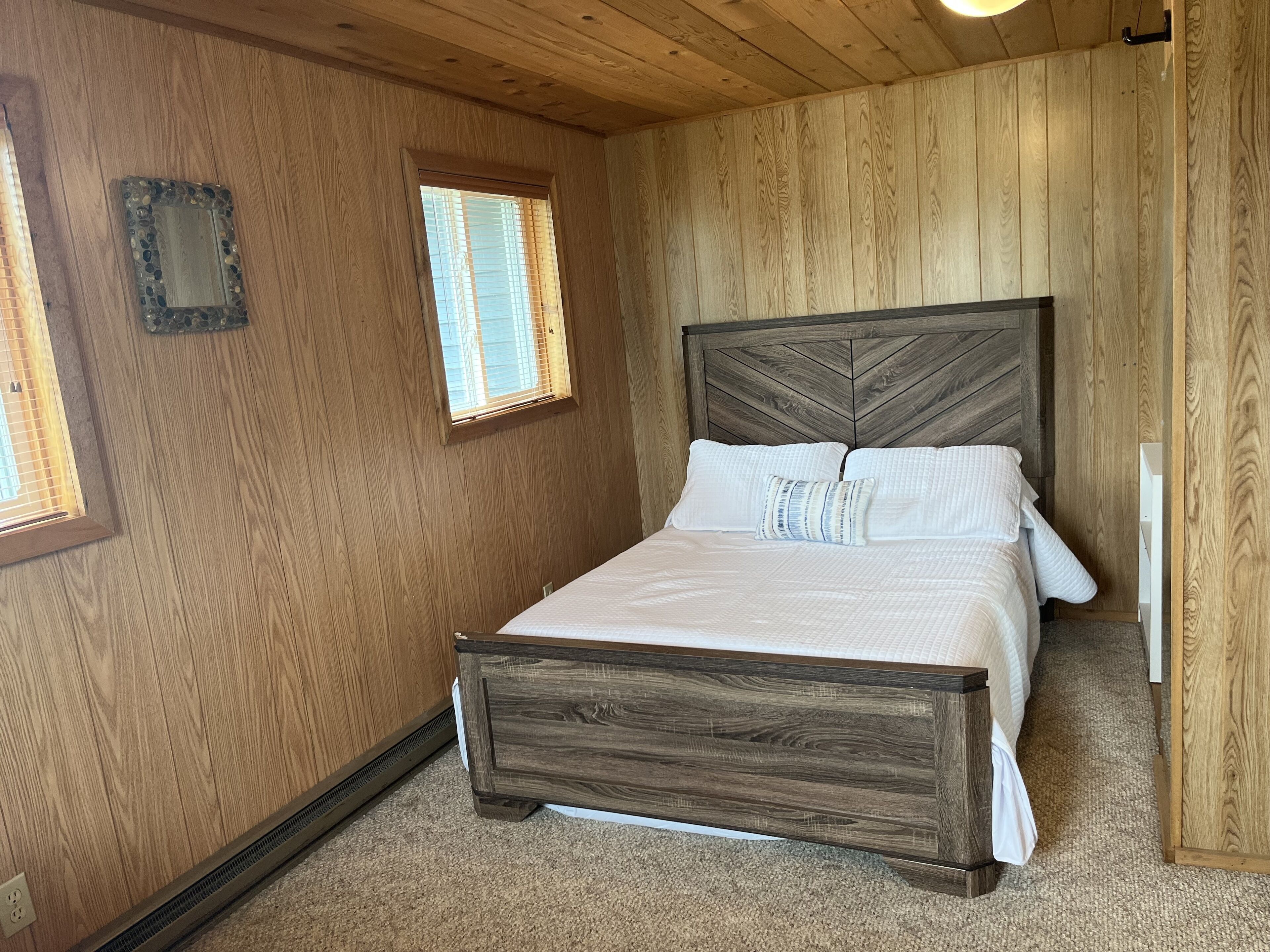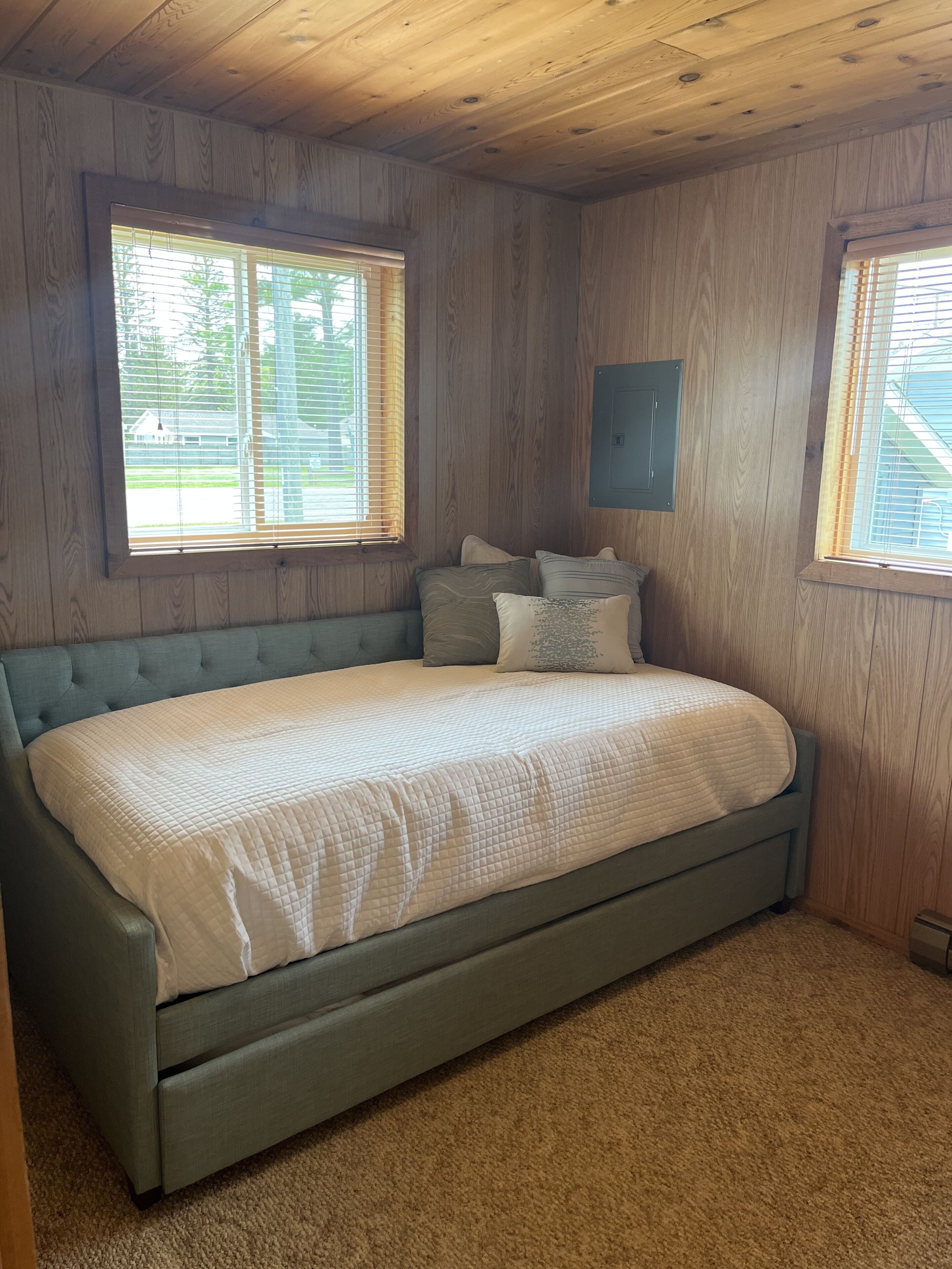 Torch Lake Sandbar Escape Four seasons of fun on one of the world's most beautiful lakes. Lakefront property located within walking distance to the famous Torch Lake sandbar. Wineries, breweries, skiing, fishing, and golf nearby! Come to the ultimate family vacation destination.Master suite overlooking the water has a king bed, large closet, and private half bathroom. Another bedroom has a twin bunk bed with festive up north decor. The third bedroom has a twin daybed with a trundle, as well as a full size bed. The living room and dining areas have gorgeous water views with large windows and walk out doors to the patio. It's a great place to play games and watch the sunrise. There is a natural stone fireplace (gas operated) for cool nights in the Fall, Winter, and Spring. The new patio has comfortable lounge chairs and a dining table with umbrella. There is also a gas grill and Blackstone flat top grill available. Kayaks are available for rent for an additional fee. There is a dock available Memorial Day weekend until October 1st. The dock extend about 40 feet and has a swim platform. You can tie a boat at the end. The boat launch and marina are a 5 minute walk from the property. Crystal clear water off the house is also accessible from the seawall steps of off the end of the swimming platform on the dock. Due to the close proximity to the Torch Lake Sandbar, you can walk to the Sandbar from the end of the dock.