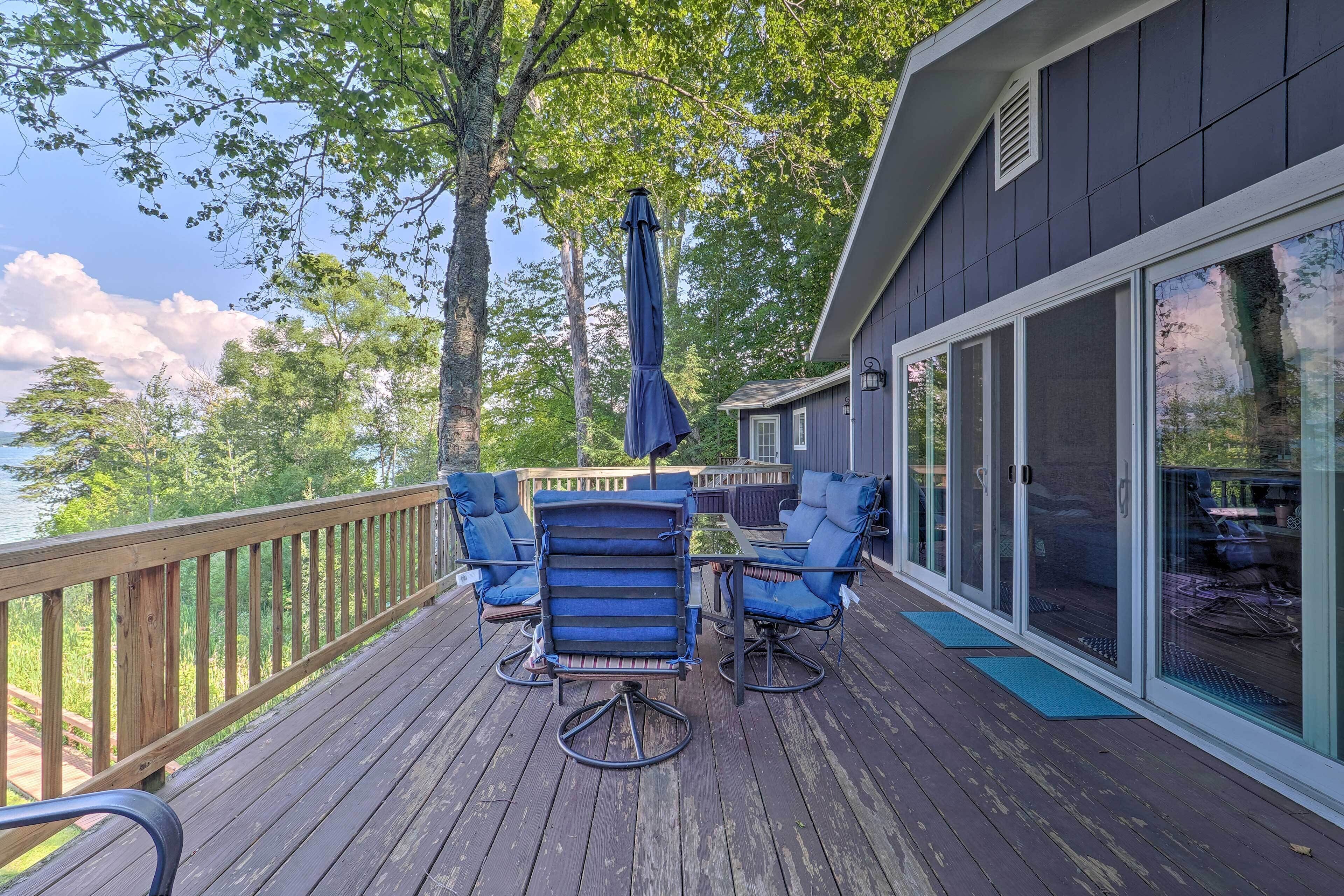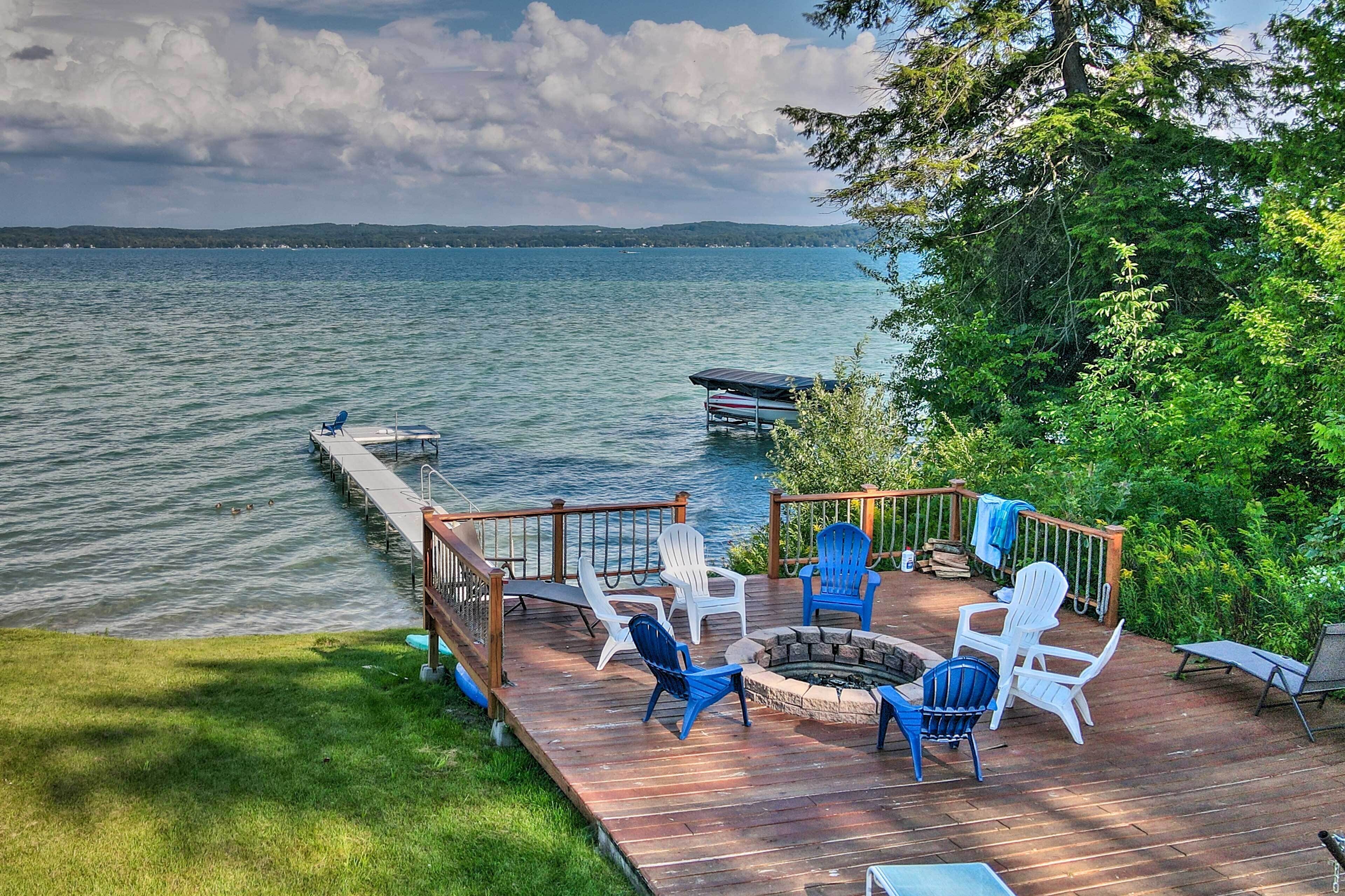 Rapid City Home on Torch Lake w/ Dock + Fire Pit! Warm summer nights and teal waters collide at this unbeatable vacation rental home with over 100 feet of water frontage. With 4 bedrooms and 3 bathrooms, this spacious Rapid City retreat makes your lake life dreams a reality. Take in the stunning views from the deck, then scour for fish from the boat dock. For more fun, venture to nearby cherry vin...
