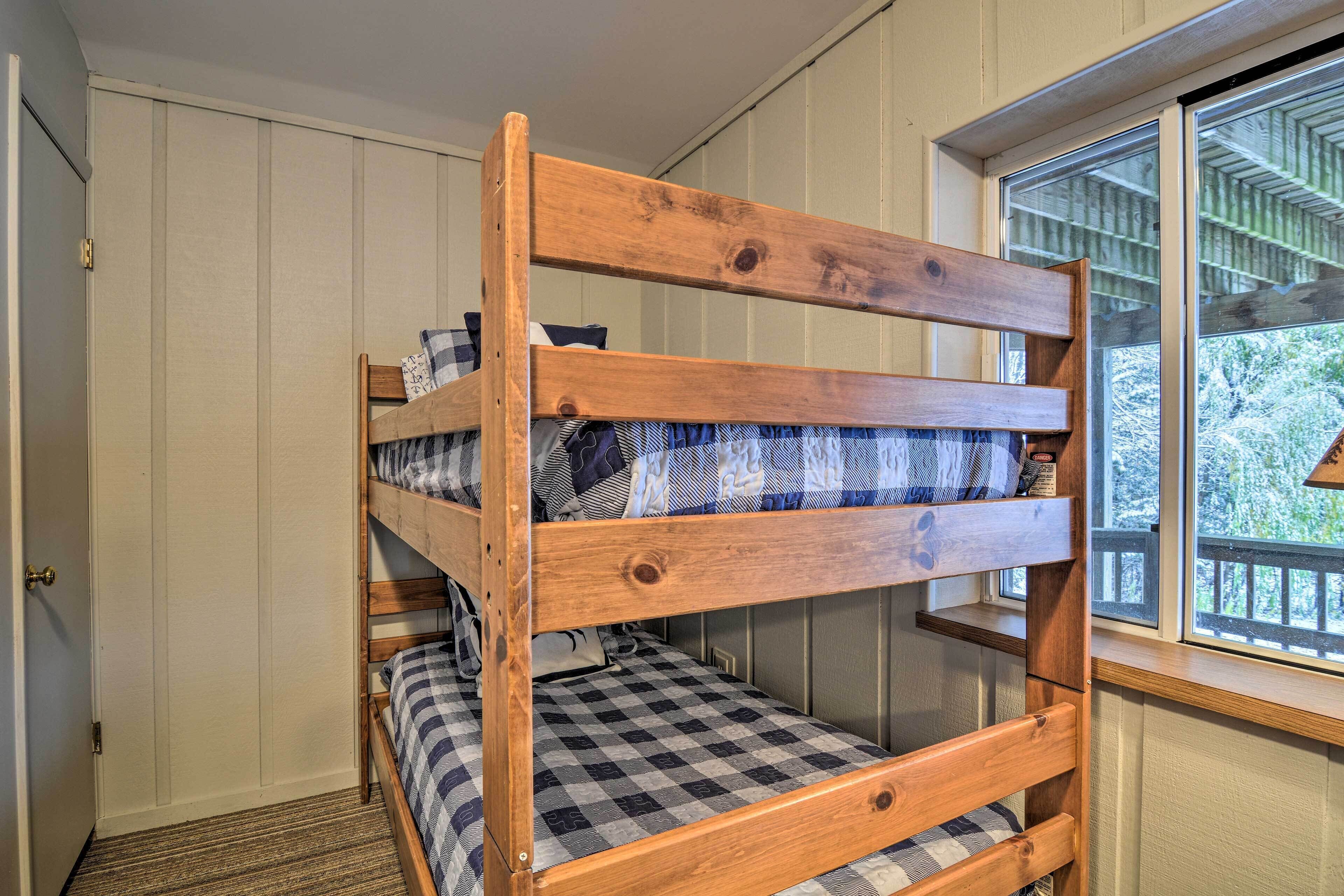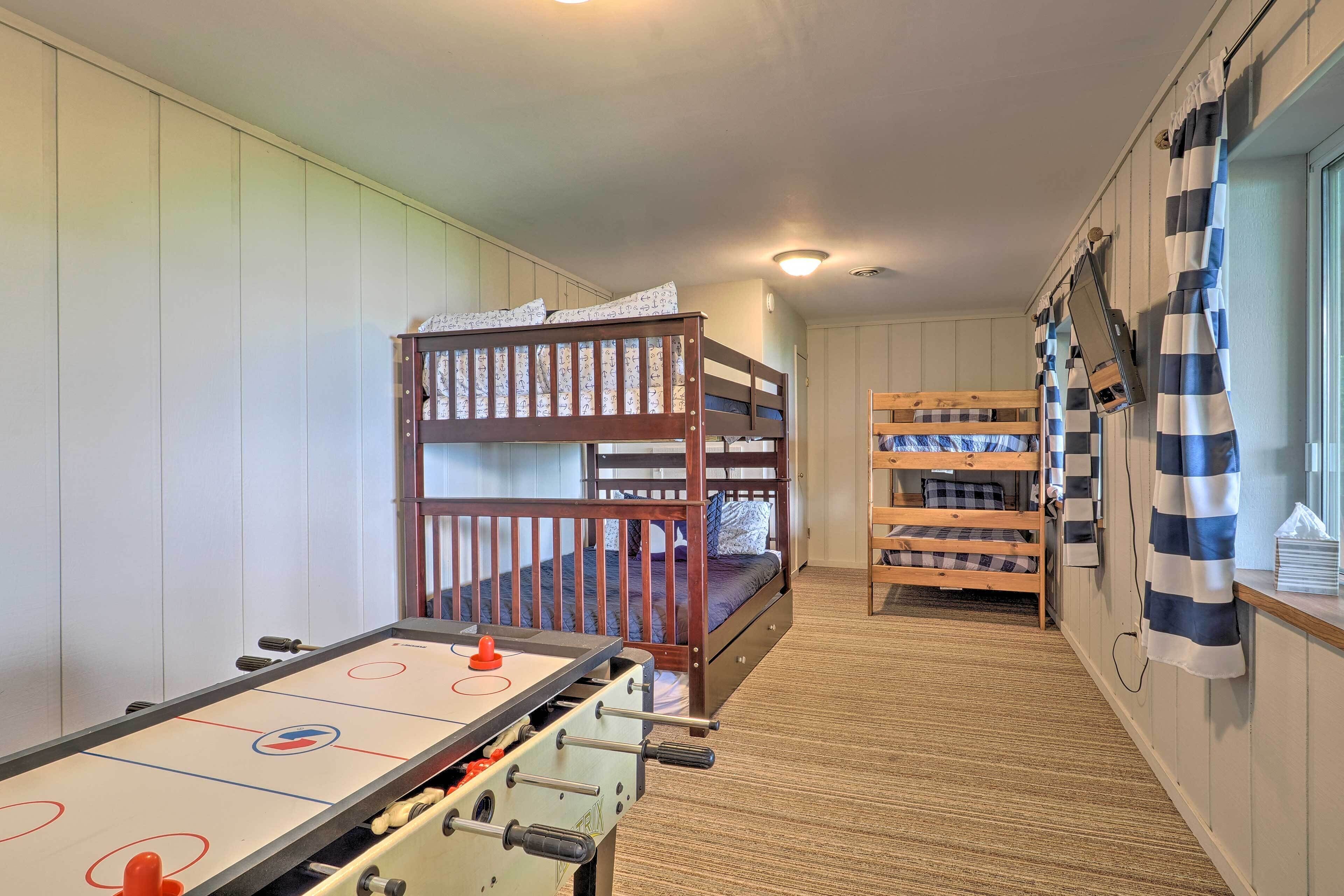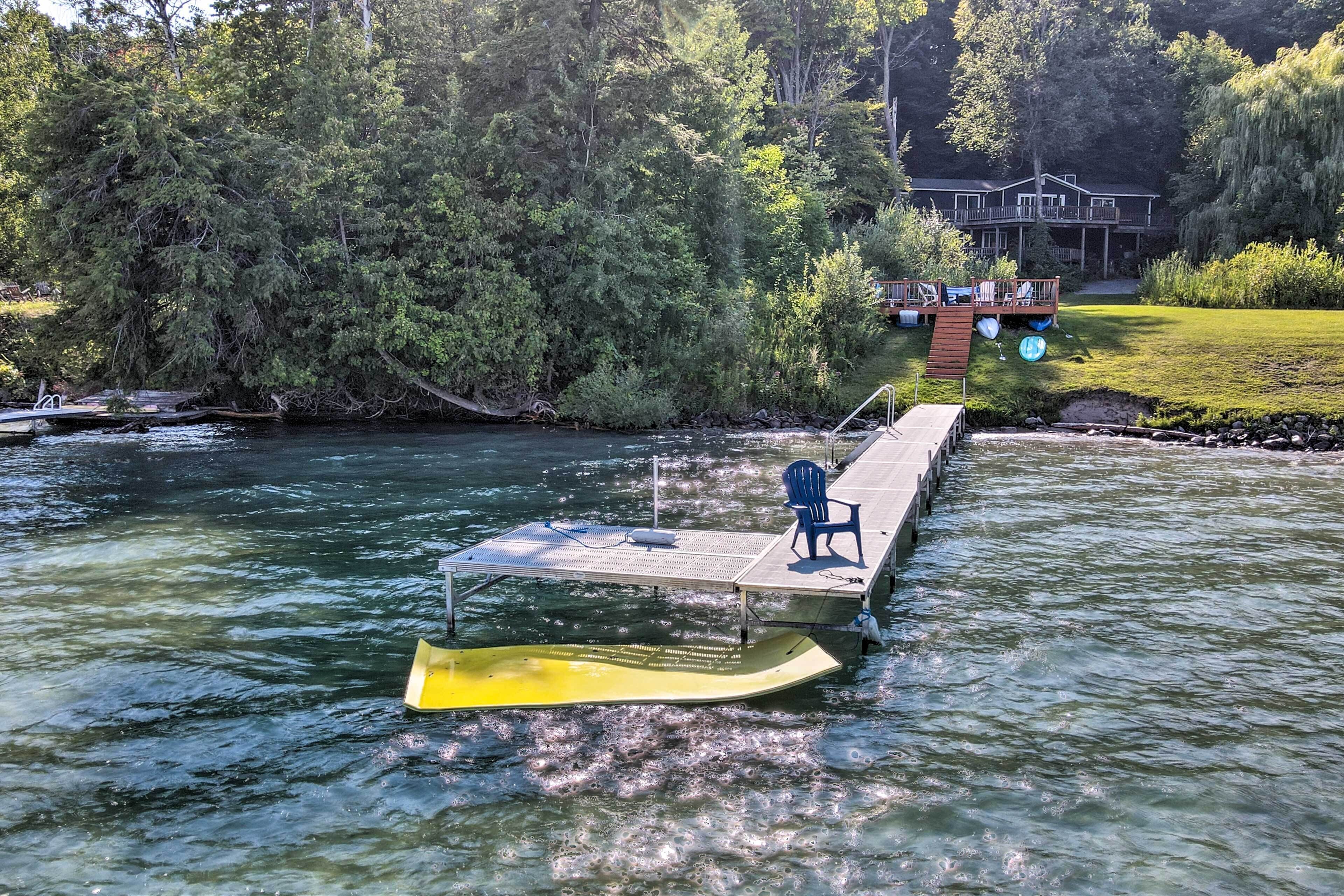 Rapid City Home on Torch Lake w/ Dock + Fire Pit! Warm summer nights and teal waters collide at this unbeatable vacation rental home with over 100 feet of water frontage. With 4 bedrooms and 3 bathrooms, this spacious Rapid City retreat makes your lake life dreams a reality. Take in the stunning views from the deck, then scour for fish from the boat dock. For more fun, venture to nearby cherry vineyards or climb the sandy dunes at Sleeping Bear Dunes National Park. Experience the ultimate 'Up North' getaway at this Torch Lake oasis!-- THE PROPERTY --Direct Lake Access | 2,260 Sq Ft | Furnished Deck | Kayaks & RaftsSpend time enjoying Caribbean-blue lakeside leisure and stunning fall colors at this inviting home set on the third-most beautiful lake in the world - perfect for families, couples, or group of friends looking for some lakefront R&R!Bedroom 1: King Bed | Bedroom 2: Queen Bed | Bedroom 3: Queen Bed | Bedroom 4: Full Bunk Bed, Twin Bunk BedOUTDOOR LIVING: Weber gas and charcoal grill, large yard, spacious deck w/ outdoor dining table, private dock (unloading/offloading), waterfront deck w/ seating, kayaks, rafts, water toys, yard games, bags, bocce, ladder golf, hammock, fire pit, lawn chairs, loungersINDOOR LIVING: 2 flat-screen Smart TVs, 2 fireplaces, hardwood floors, dining table KITCHEN: Fully equipped w/ cooking basics & spices, Keurig coffee maker, island bar, Crock-Pot, full knife set, toaster, ice maker, additional fridge available for use in the garageGENERAL: Free WiFi, central air conditioning and heat, ceiling fans, complimentary toiletries, towels & linens PARKING: Driveway (6 vehicles), free street parking, RV parking-- THE LOCATION --OUTDOOR RECREATION: Torch Lake (on-site), Chain of Lakes Water Trail System (Torch Lake access), Torch Lake Sandbar (3.2 miles), Seven Bridges Nature Area (9.2 miles), Bayside Park (18.4 miles), Sand Lakes Quiet Area (19.0 miles)WINTER REC: Shanty Creek Resort (18.1 miles), Mt. Holiday Ski and Recreational Area (21.0 miles), Hickory Hills Ski Area (28.0 miles), Crystal Mountain (55.6 miles), Boyne Highlands (61.1 miles), snowmobiling (on-site & nearby), cross-country skiingVINEYARDS: WaterFire Vineyards - Torch Lake Winery (9.2 miles), Mari Vineyards (27.7 miles), Hawthorne Vineyards (29.1 miles), Brys Estate Vineyard & Winery (34.3 miles) ATTRACTIONS: Guntzviller’s Spirit of the Woods Museum (10.3 miles), Whitewater Township Park and Campground (14.8 miles), Music House Museum (16.8 miles), Turtle Creek Casino & Hotel (17.4 miles), Sleeping Bear Dunes National Lakeshore (53.3 miles)NEARBY TOWNS: Alden (7.0 miles), Elk Rapids (8.7 miles), Bellaire (18.0 miles), Traverse City (25.7 miles), Charlevoix (34.3 miles), Petoskey (51.2 miles), Mackinac Bridge-Mackinaw City (101 miles)RESTAURANTS: Blue Bistro & Pizzeria - Torch Lake Pizza (5.4 miles), Pearl’s New Orleans Kitchen (7.1 miles), Dockside Torch Lake (11.9 miles)AIRPORT: Cherry Capital Airport (24.5 miles)-- REST EASY WITH US --Evolve makes it easy to find and book properties you'll never want to leave. You can relax knowing that our properties will always be ready for you and that we'll answer the phone 24/7. Even better, if anything is off about your stay, we'll make it right. You can count on our homes and our people to make you feel welcome — because we know what vacation means to you.-- POLICIES --- No smoking- No pets allowed- No events, parties, or large gatherings- Must be at least 25 years old to book- Additional fees and taxes may apply- Photo ID may be required upon check-in- NOTE: The dock is used for unloading, offloading, and temporary docking only. Please do not leave boats at the dock when not in use, and no overnight docking is allowed