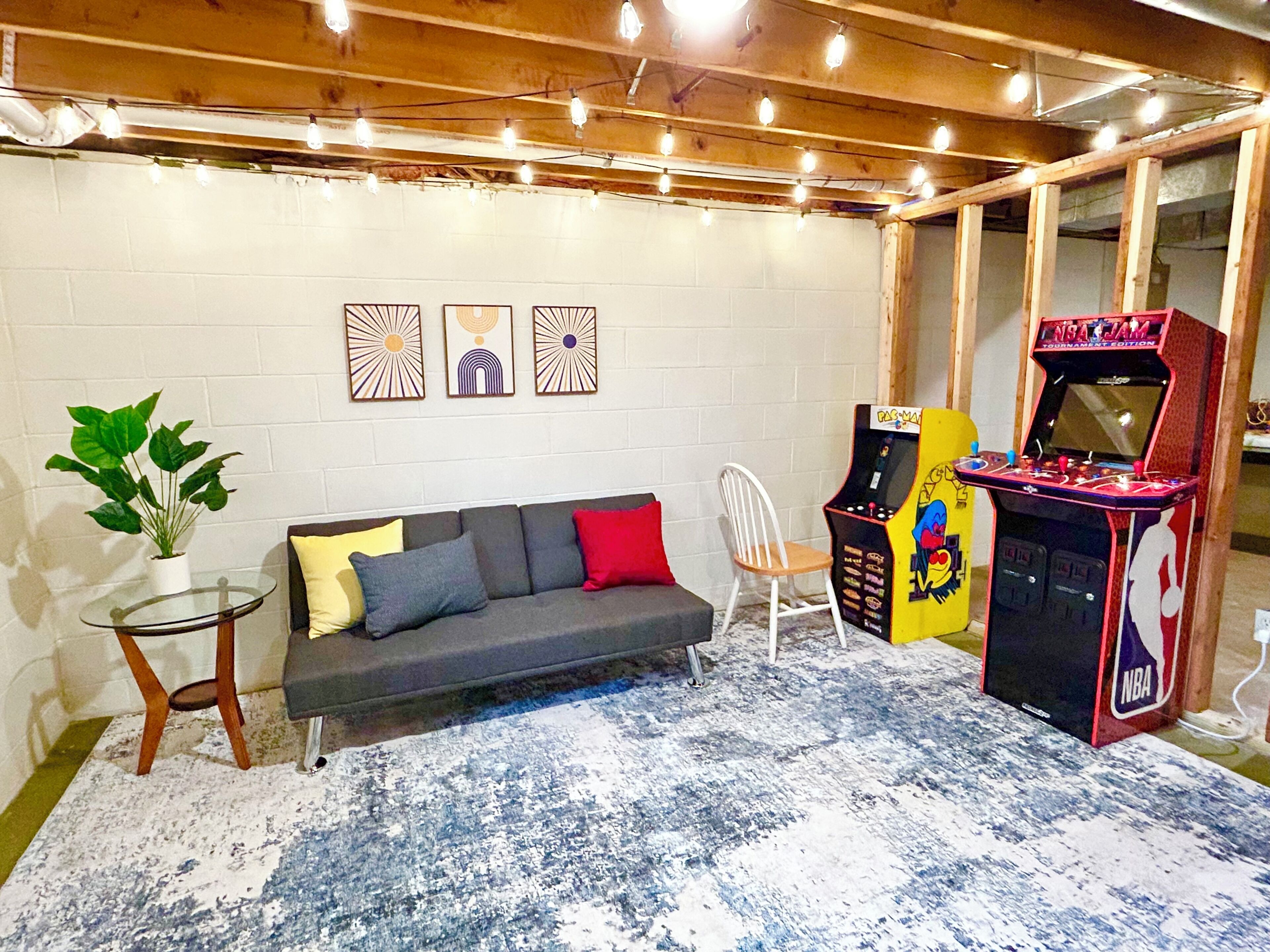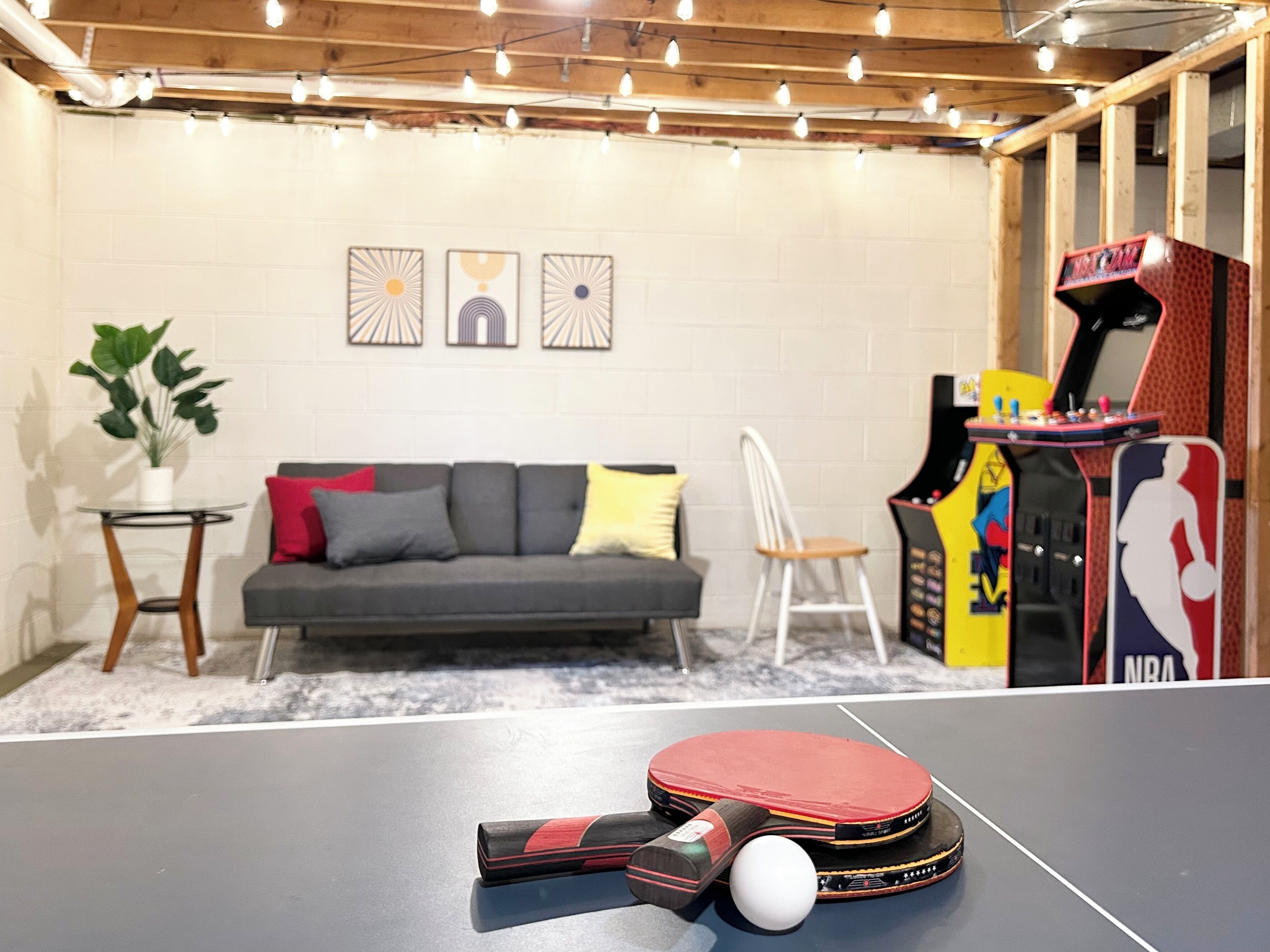 Torch Lake Home | AC | Arcades | Game Room | Yard| A wonderfully family-friendly modern home super close to the amazingly beautiful Torch Lake. Your comfort is a priority so in the bedrooms you will find memory foam mattresses, sound machines, and room-darkening curtains for a good night's sleep. Enjoy our amenities such as the fire pit, fenced yard, swingset, sand box, fireplace, ping-pong, arcades, and more. Centrally located for you to explore Torch Lake, Traverse City, and all the nearby charming Northern Michigan towns. Come visit further up north.