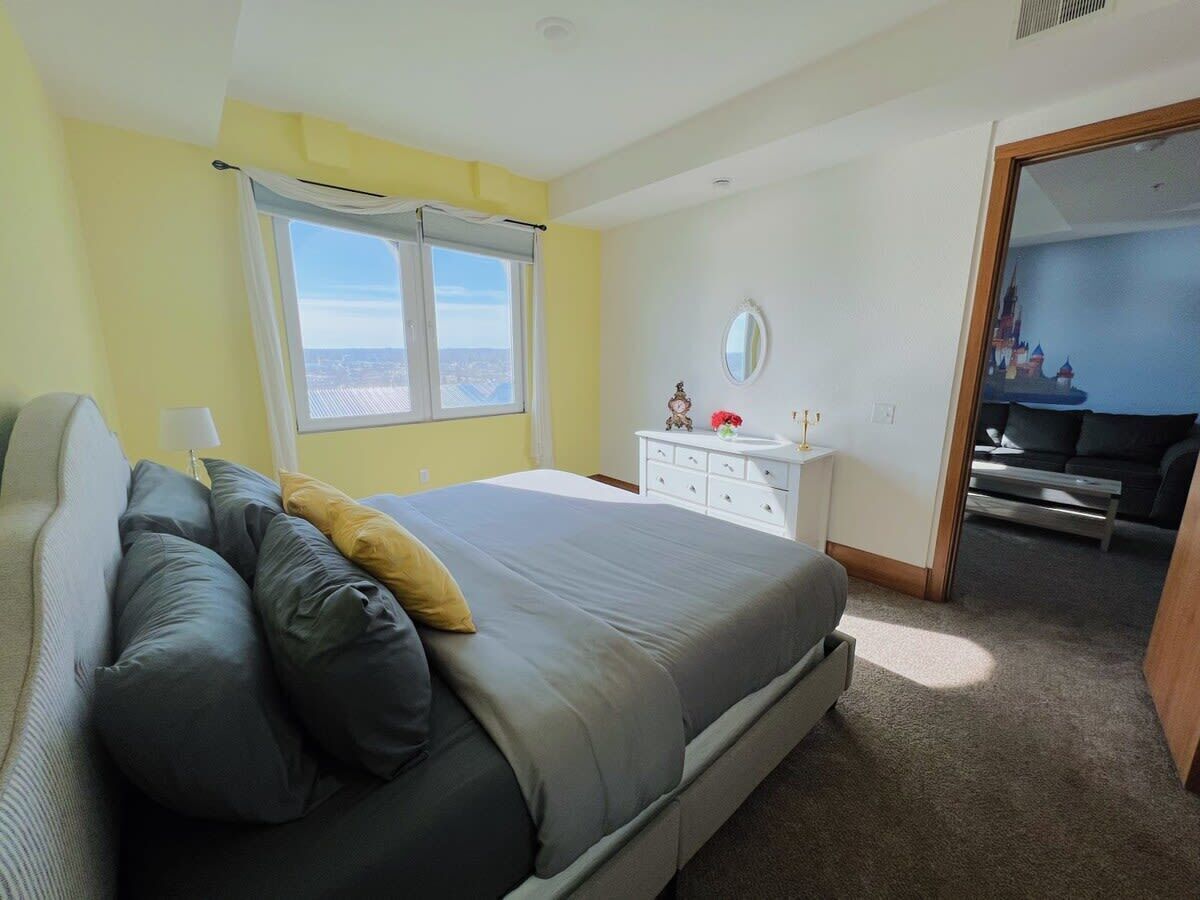 Disney themed castle apartment Summary:Experience comfort and convenience at The Grand Castle apartments, just 10 mins from downtown Grand Rapids, MI. Enjoy fully furnished units with fast WiFi, smart TVs, in-unit laundry, and access to fantastic community amenities including an outdoor pool during Summer months, game room, fitness center, theater room, and a whimsical Beauty & the Beast library f...