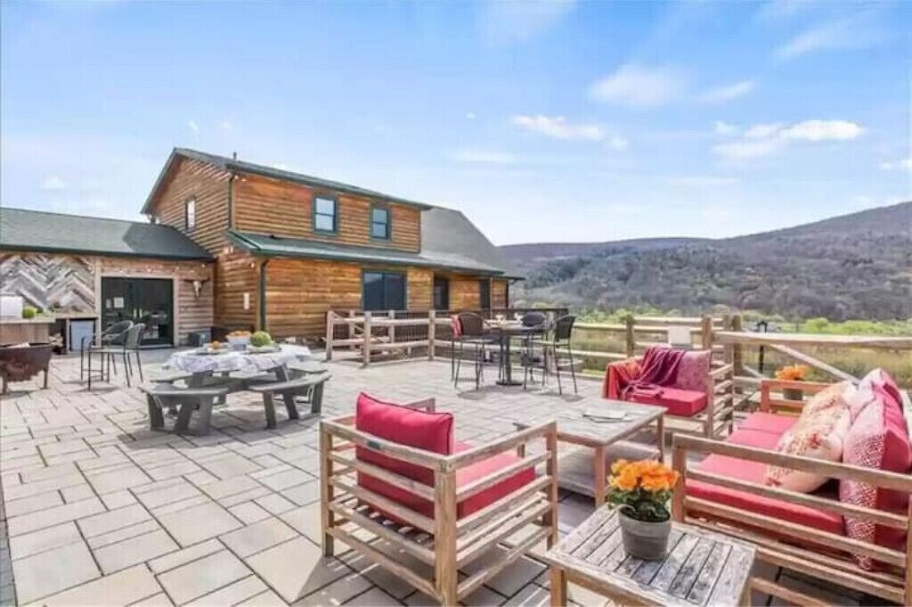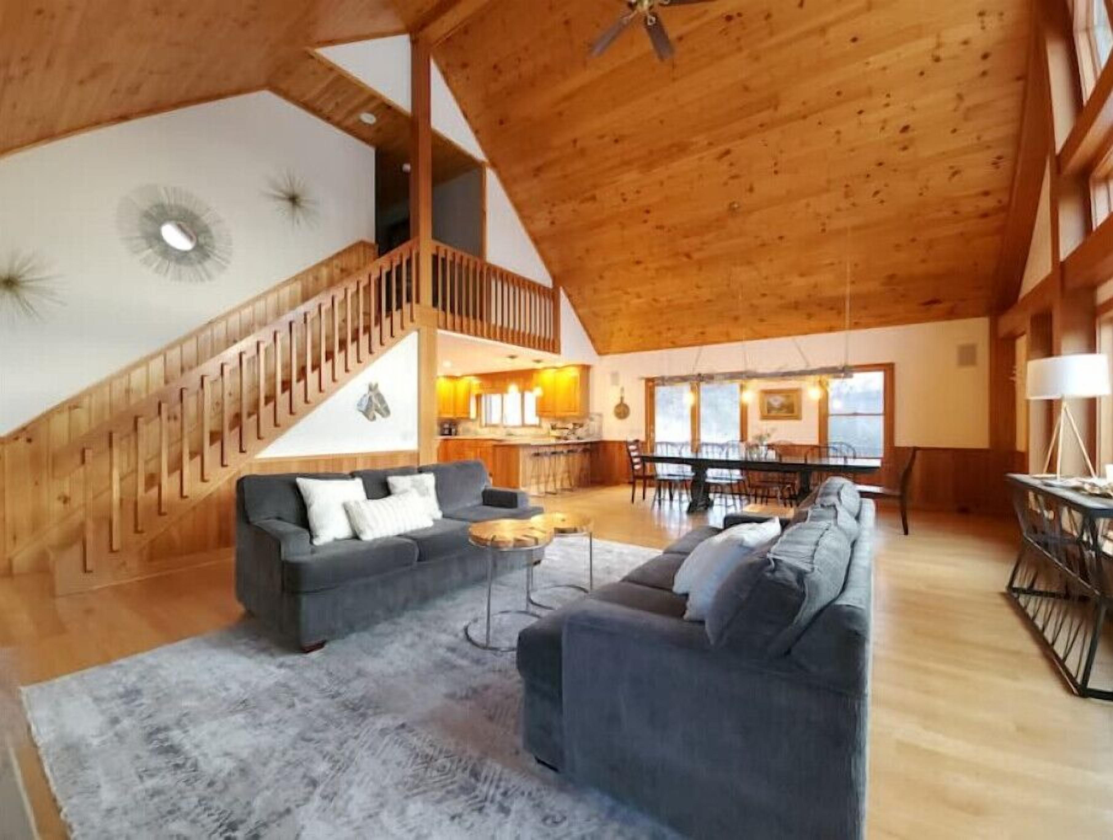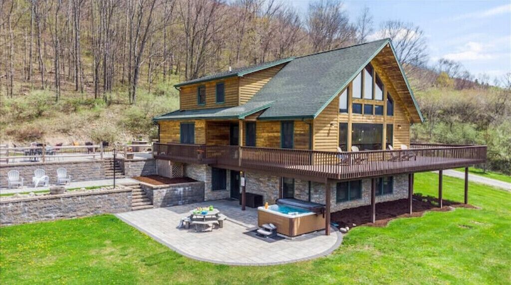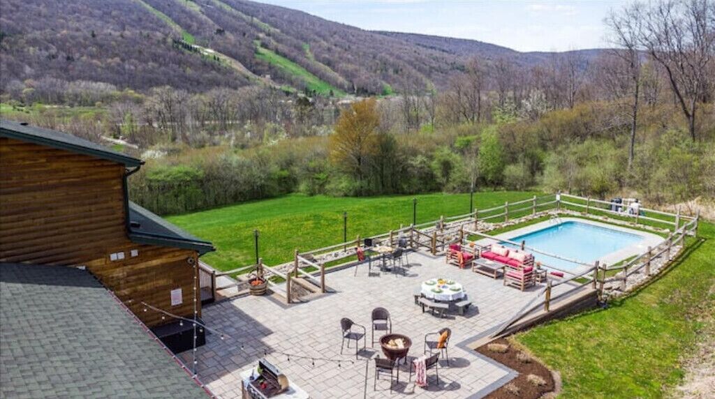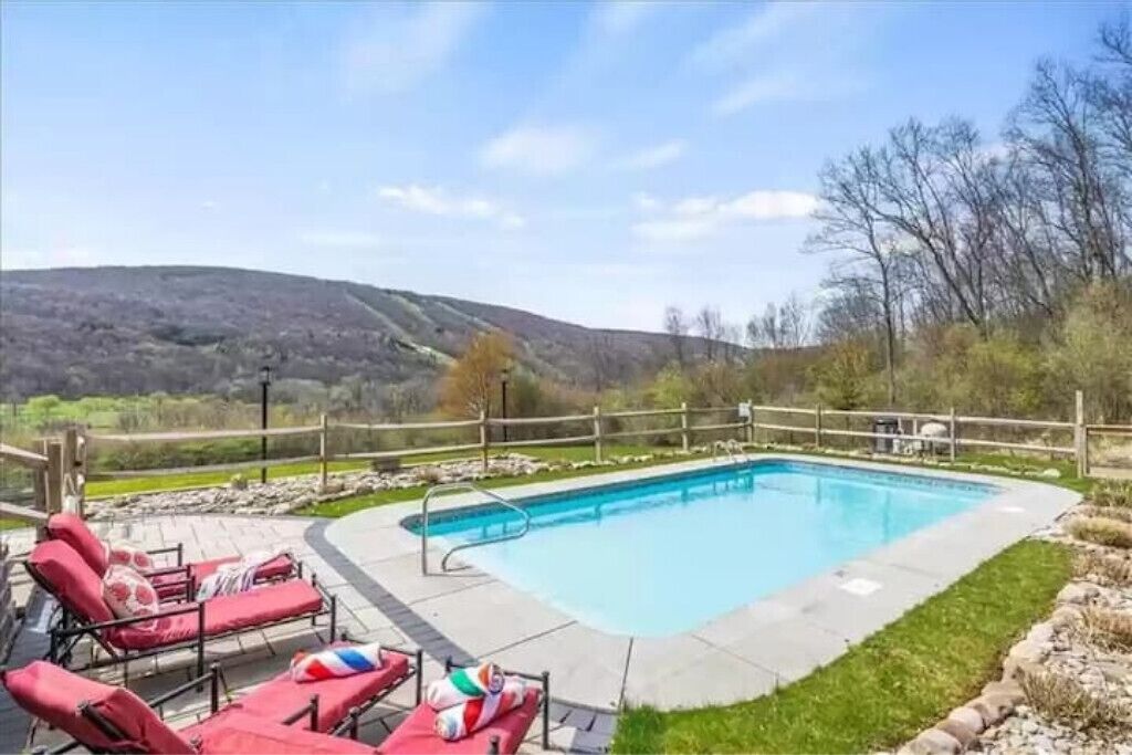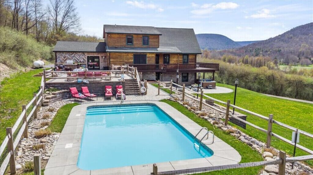 Chalet Overlooking Bristol Mountain Spectacular 6 bedroom Chalet with heated outdoor Pool, 6 person Hot Tub, giant Game Room, and convenient Home Office. Just 3 minutes from Bristol Mountain Ski Resort, there’s so much to enjoy all year round- skiing, fall foliage hikes, local bakery and restaurants, Finger Lakes wine tasting, and Canandaigua Lake. At Bristol View Chalet you’ll love the Finger Lakes region!The spaceThe Chalet is the mountain getaway you’ve been looking for- expansive windows (Leaf-peep from the living room!), vaulted ceilings, and natural wood paneling throughout. Entertaining naturally flows from the wrap around deck, living / dining (10 person dining table), kitchen, game room (pool table, ping pong, darts, hockey table, Pac-Man, TV, bar and refrigerator), and outdoor patio (built in grill, fire pit, pool, hot tub, and lounge seating). Refresh after a full day- all bedrooms have foam mattress toppers, quality bedding, double pillows, down-alternative duvets, and dimmable lights. With king-sized beds on all 3 levels of the house, there are many options to suit families of all sizes as well as groups of individuals.Other things to noteAlong with the natural beauty comes nature itself. We have seen deer, owls, eagles, foxes, and ladybugs, just to name a few. Depending on the season, you may see other wildlife who also call this home.Please be considerate of our neighbors as sound does travel in the valley. To ensure all can enjoy the peaceful character of the area, quiet hours are from 9 pm - 9 am.South Bristol Short Term Rental Permit #2022-0050
