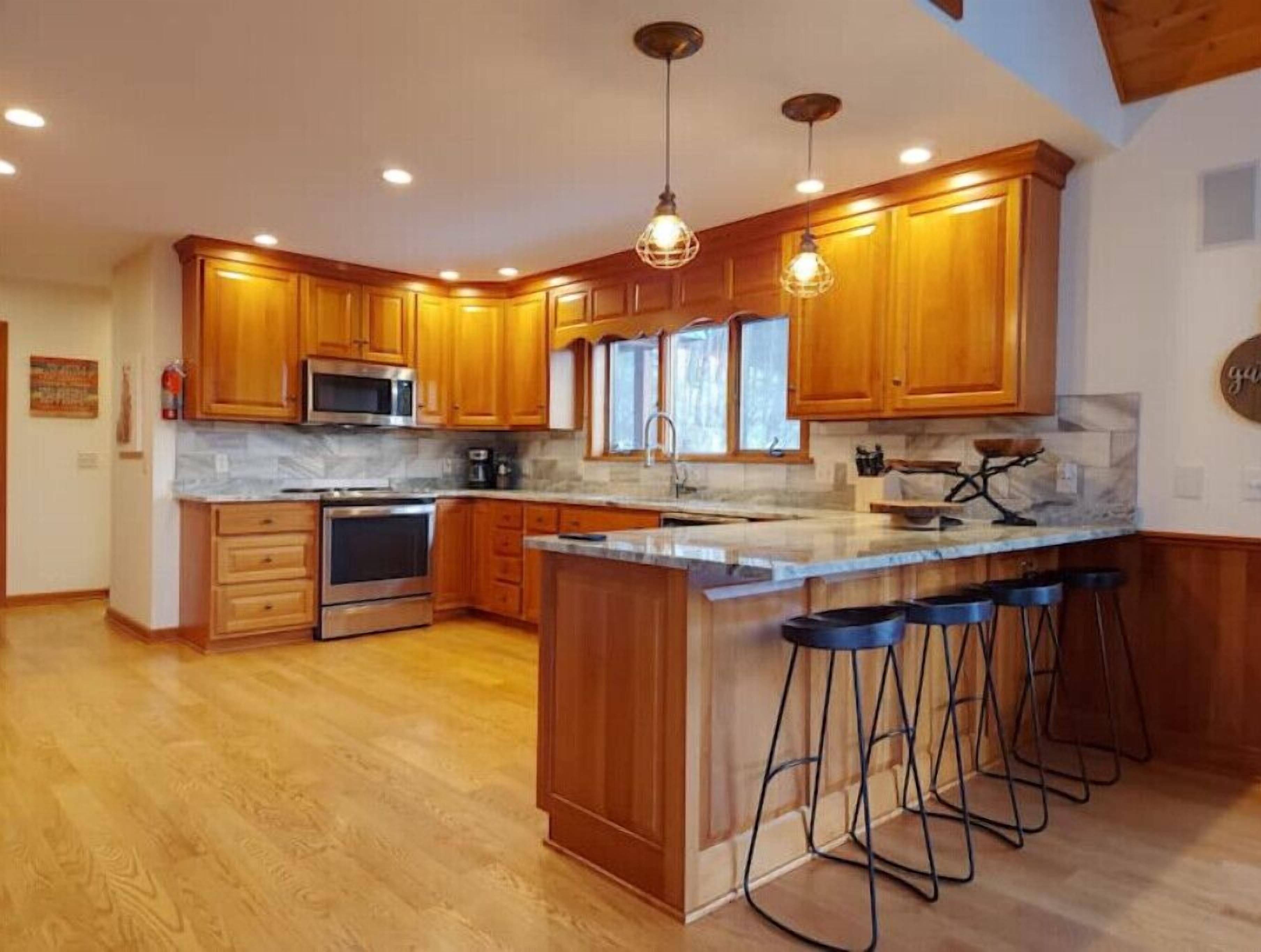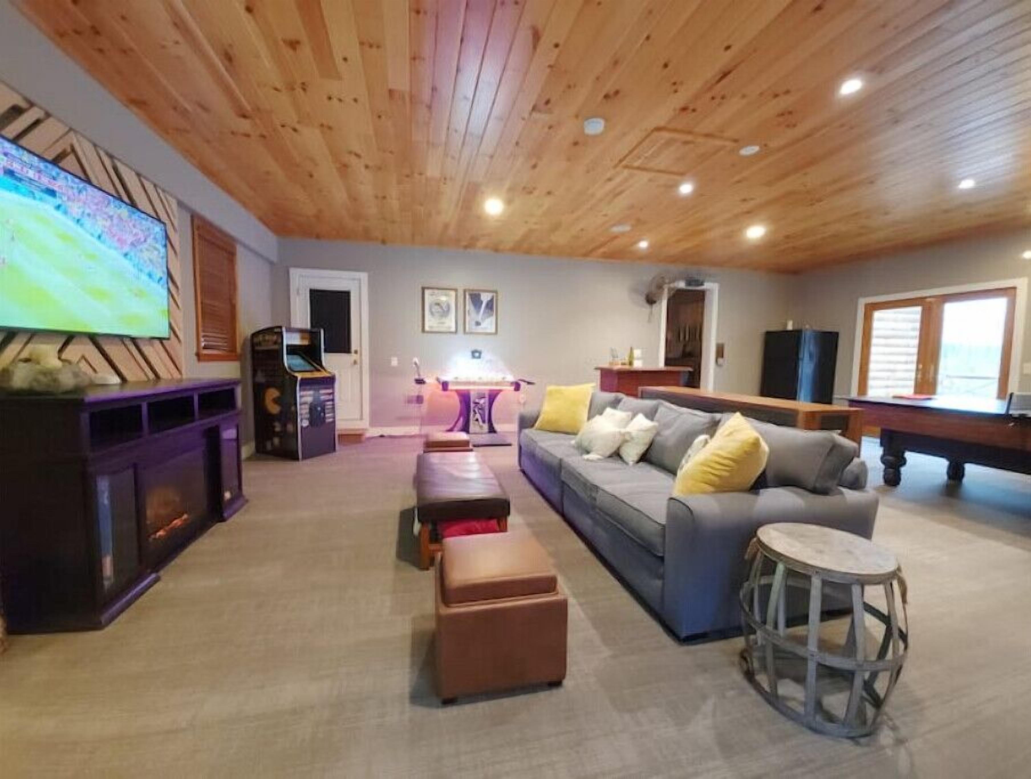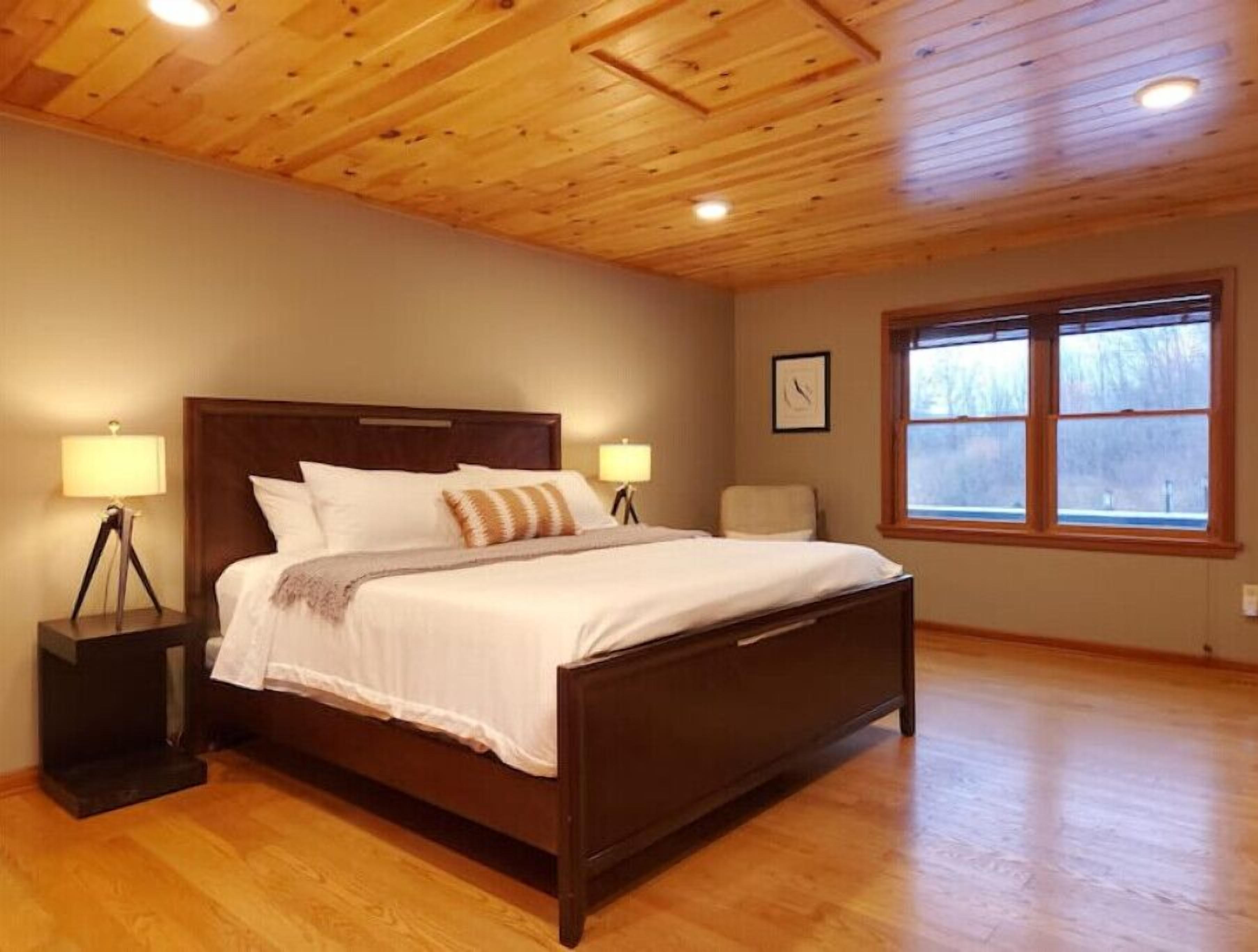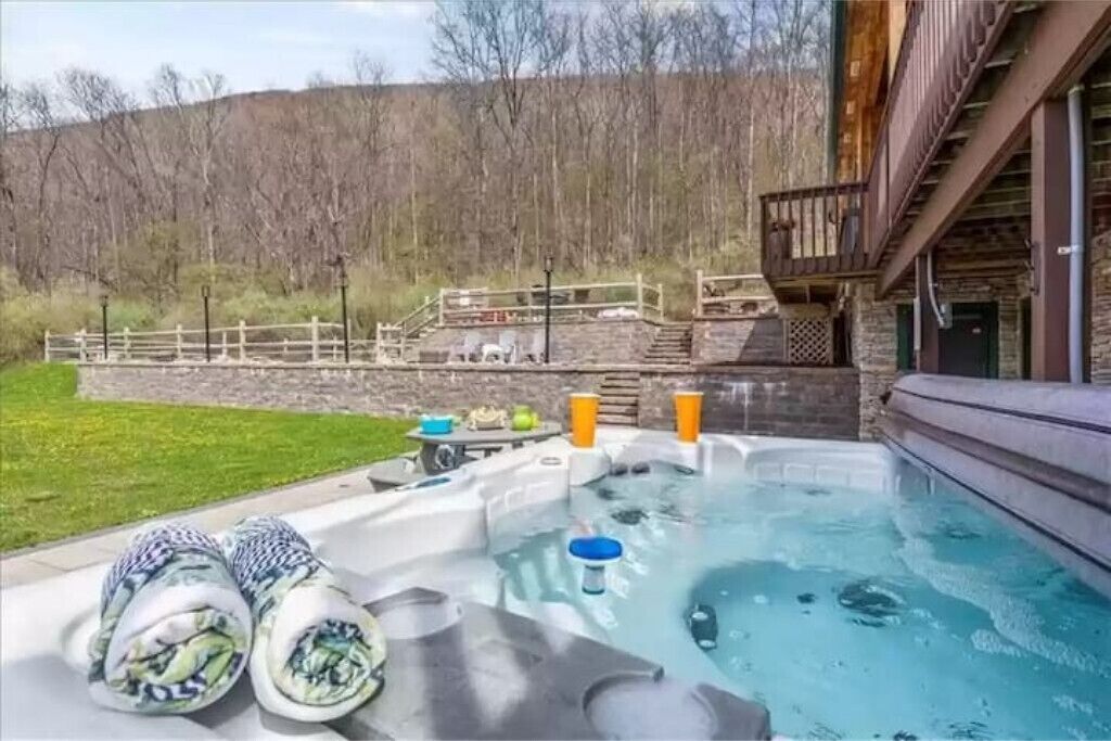Chalet Overlooking Bristol Mountain Spectacular 6 bedroom Chalet with heated outdoor Pool, 6 person Hot Tub, giant Game Room, and convenient Home Office. Just 3 minutes from Bristol Mountain Ski Resort, there’s so much to enjoy all year round- skiing, fall foliage hikes, local bakery and restaurants, Finger Lakes wine tasting, and Canandaigua Lake. At Bristol View Chalet you’ll love the Finger Lakes region!The spaceThe Chalet is the mountain getaway you’ve been looking for- expansive windows (Leaf-peep from the living room!), vaulted ceilings, and natural wood paneling throughout. Entertaining naturally flows from the wrap around deck, living / dining (10 person dining table), kitchen, game room (pool table, ping pong, darts, hockey table, Pac-Man, TV, bar and refrigerator), and outdoor patio (built in grill, fire pit, pool, hot tub, and lounge seating). Refresh after a full day- all bedrooms have foam mattress toppers, quality bedding, double pillows, down-alternative duvets, and dimmable lights. With king-sized beds on all 3 levels of the house, there are many options to suit families of all sizes as well as groups of individuals.Other things to noteAlong with the natural beauty comes nature itself. We have seen deer, owls, eagles, foxes, and ladybugs, just to name a few. Depending on the season, you may see other wildlife who also call this home.Please be considerate of our neighbors as sound does travel in the valley. To ensure all can enjoy the peaceful character of the area, quiet hours are from 9 pm - 9 am.South Bristol Short Term Rental Permit #2022-0050