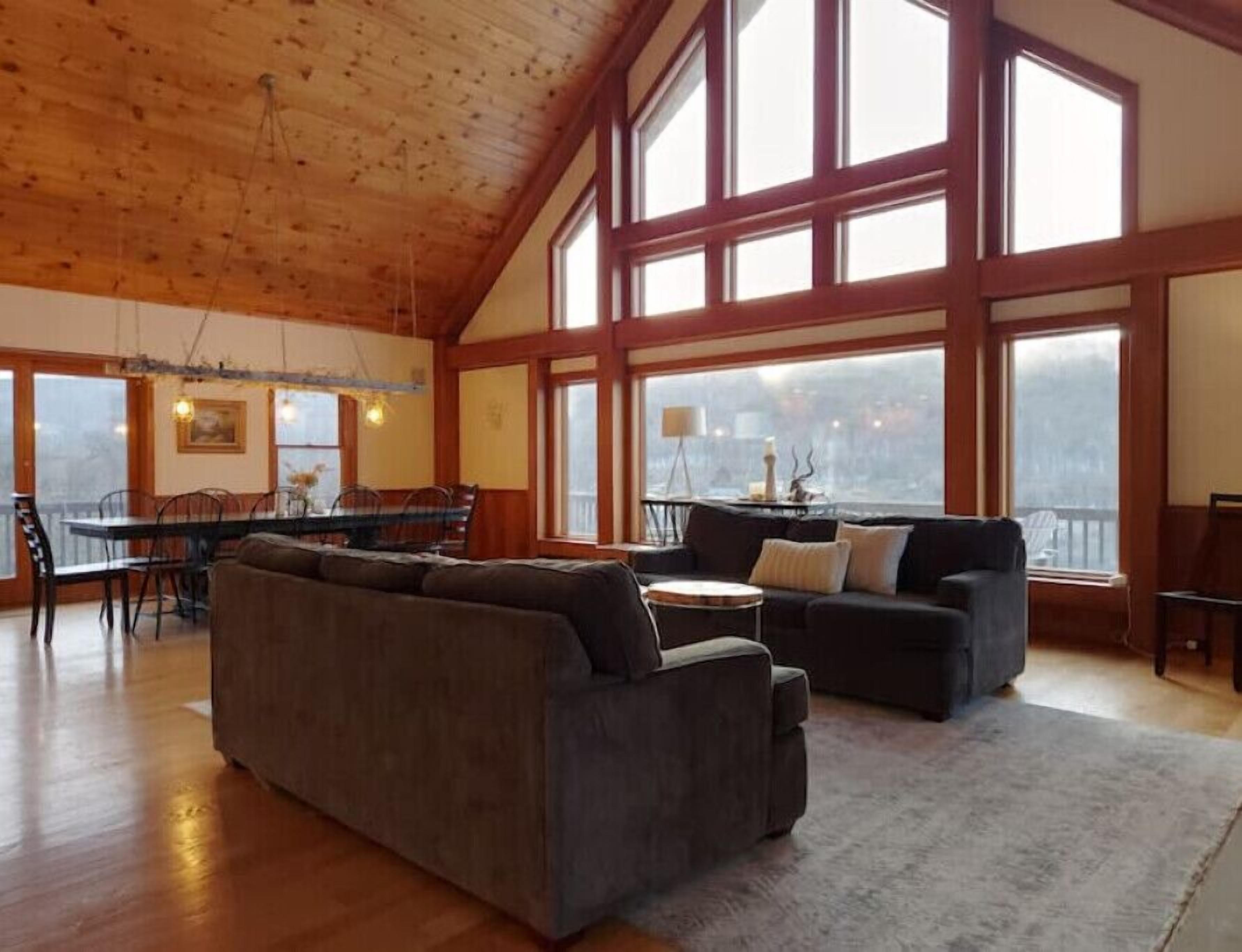 Chalet Overlooking Bristol Mountain Spectacular 6 bedroom Chalet with heated outdoor Pool, 6 person Hot Tub, giant Game Room, and convenient Home Office. Just 3 minutes from Bristol Mountain Ski Resort, there’s so much to enjoy all year round- skiing, fall foliage hikes, local bakery and restaurants, Finger Lakes wine tasting, and Canandaigua Lake. At Bristol View Chalet you’ll love the Finger Lak...