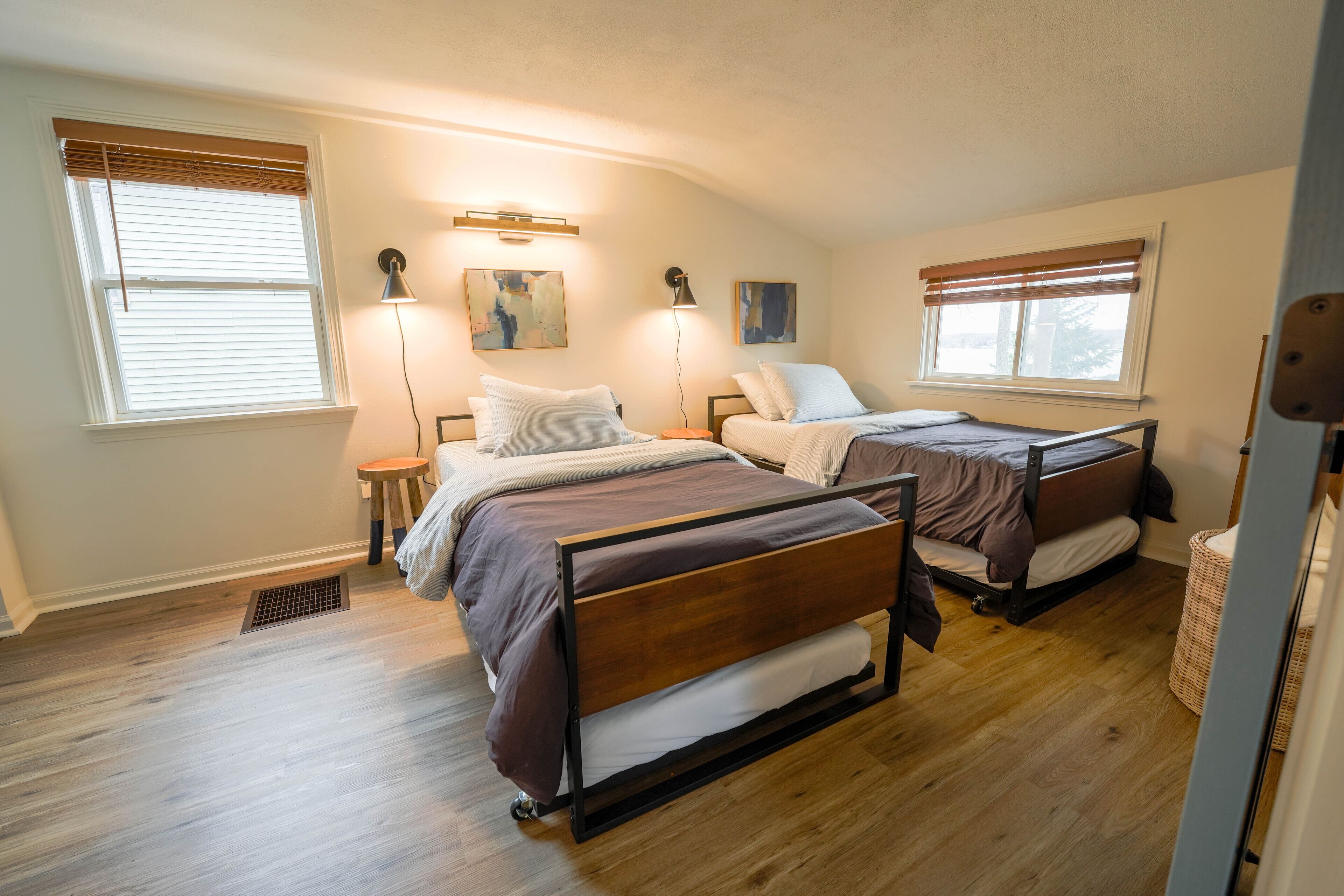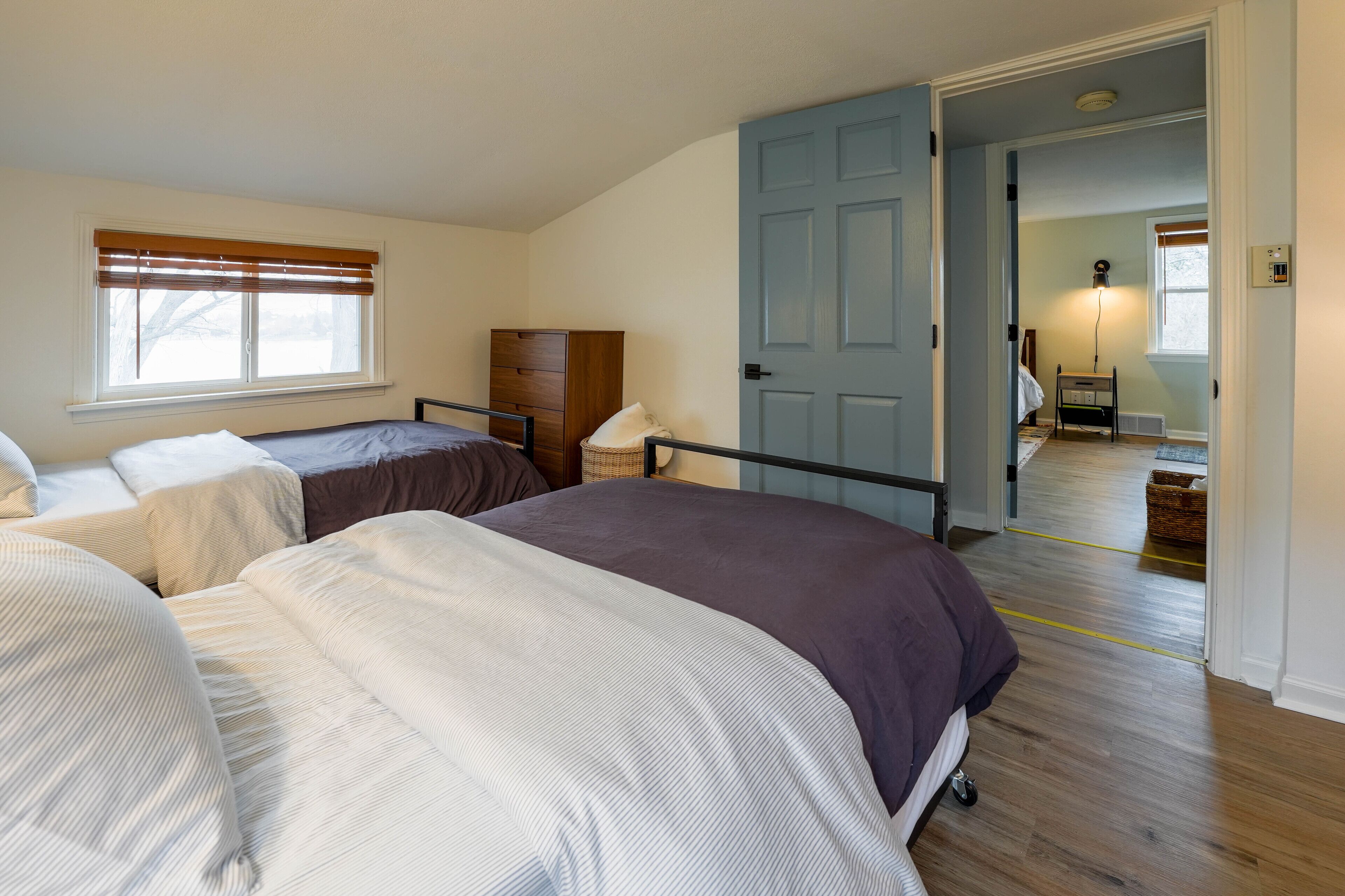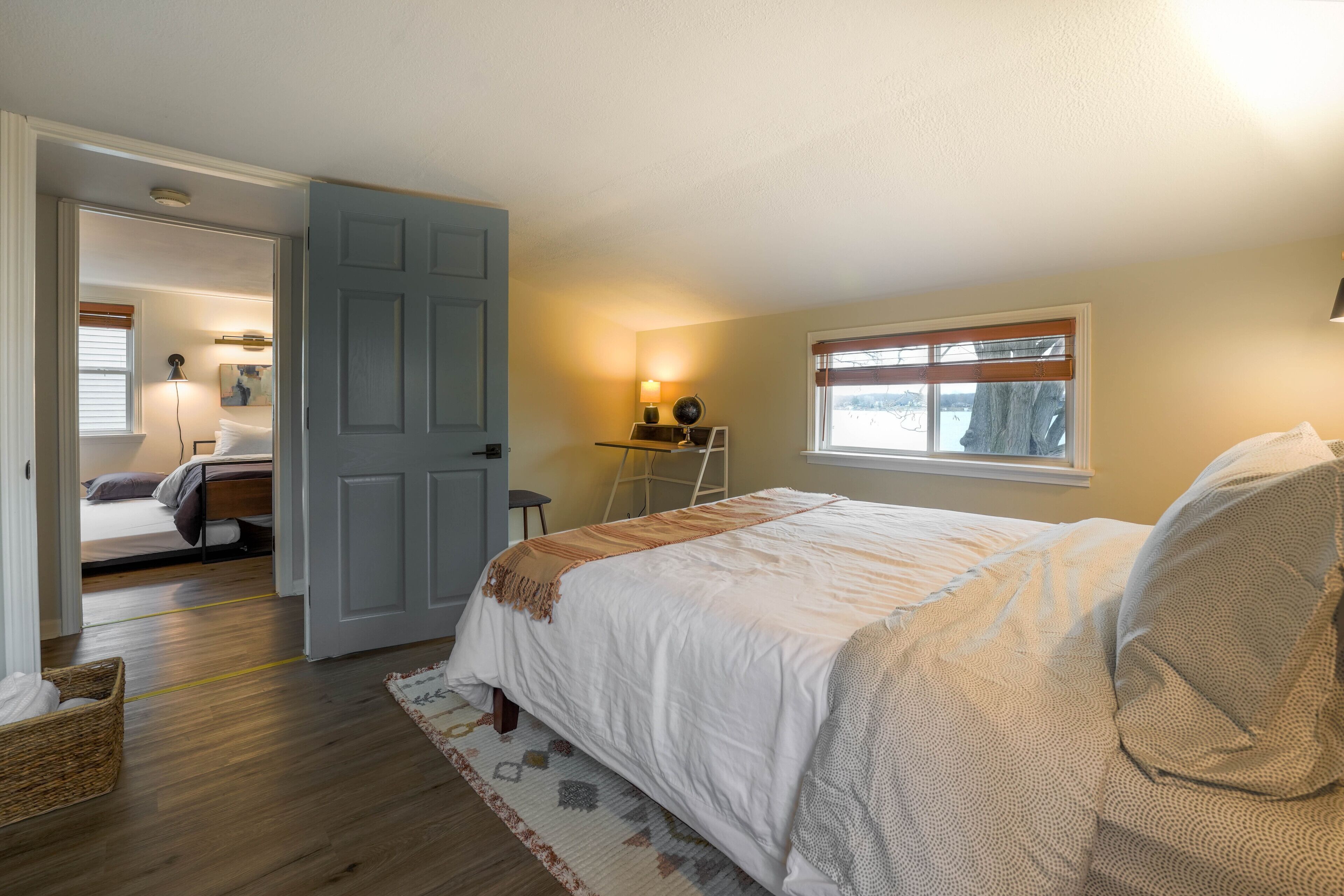 Newly Renovated Lakefront Cottage, Peaceful, Cozy Modern Farmhouse ~Dog Friendly Welcome to our serene Lake Tichigan retreat, where you'll be greeted by stunning views, beautiful wildlife such as bald eagles, swans, and seagulls, and a cozy home designed with your comfort in mind.Relax with your whole family, including your beloved dog, in this newly remodeled 3 bed, 3 bath modern farmhouse-style cottage. Unwind by the firepit next to the lake and enjoy breathtaking views from every bedroom.Our home is equipped with a king bed, fireplace, kids play area, board games, standing work desks, and more! It comfortably accommodates up to 8 people with 2 twin trundle beds, 2 twin beds, 1 queen bed, 1 king bed, and 1 pullout sofa bed.We take great pride in maintaining an exceptionally clean and sanitized environment for our guests. Our cozy house is ideally suited for families, offering the perfect blend of comfort and convenience. However, please note that the house is best suited for 6 adults and 2 kids, rather than 8 adults. Therefore, we kindly request that you send us a message prior to booking to ensure the accommodation is the best fit for your group.Experience the luxury of en suite bathrooms in both our Master bedroom and Queen bedroom. Our unique 3-bath setup ensures a comfortable stay for extended families or groups.Please be aware of the following unique aspects of your stay:- Please note both the standing shower in the mudroom and the shower in the queen room is on the smaller side.- Smoking is not permitted inside the house, and marijuana smoking is strictly prohibited on the premises.- As we are located by the lake, our water may have a distinct mineral scent. This is common in lake houses and is completely safe.- Please be mindful of our sewage system and avoid flushing anything other than toilet paper, as the city sewage by the lake is sensitive.- If you're interested in a leisurely outing on the lake, we offer pontoon boat rentals at $150 per night (only for summer season).- Kayaks and paddle boards are next to Cottage B and free for everyone to use. We have a total of 4 kayaks, one paddle board (adult size) and two paddle boards (kids size) all included in your stay. - Cornhole Toss Game only available for your backyard fun :)- During the May-June season, lake flies are abundant. They are harmless but can be an annoyance. They typically disappear within two weeks and are a food source for fish in the lake. It is important to keep windows and doors closed at night, as they are attracted to bright lights and can enter through screen doors.- Keypad: Enter the code and then press "Unlock." The code will be sent to you 2 days before check-in.- We are a dog family ourselves and understand how nice it is to bring them along. We welcome up to (2) dogs with a non-refundable pet fee of $55 per stay. If a Guest brings a dog and does not inform us, a $1,000 pet fee will apply. Please note: Violating our house rules may result in a $500 fine.Conveniently located:- 30 minutes from Alpine Valley / Music Valley- 30-40 minutes from metro Milwaukee- 40 to 1 hour from north Chicago suburbsCome and experience a relaxing getaway at our Lake Tichigan cottage, where we blend the best elements of our previous descriptions, including personal touches, luxurious amenities, and picturesque views, to create a memorable stay for you and your loved ones.