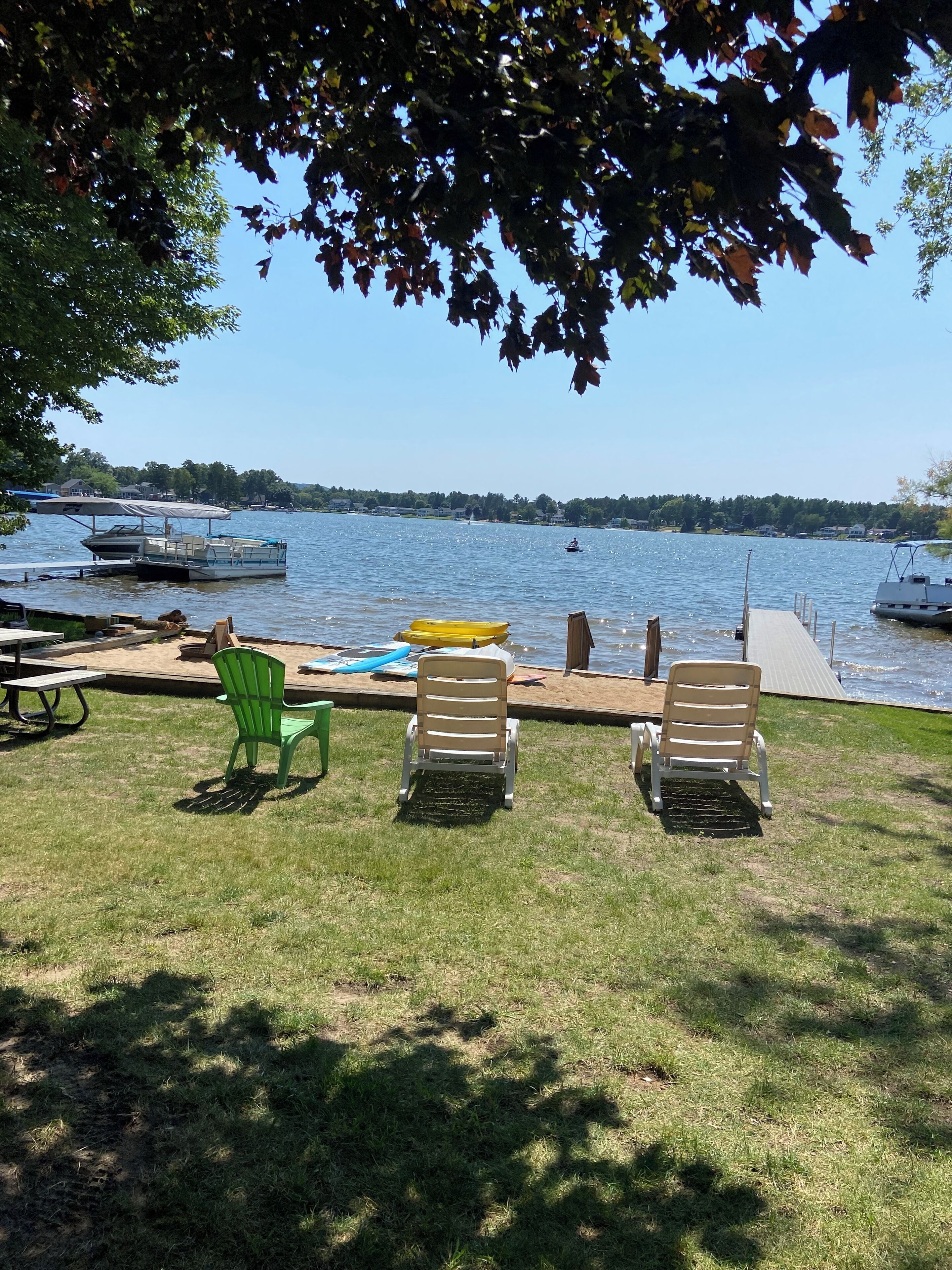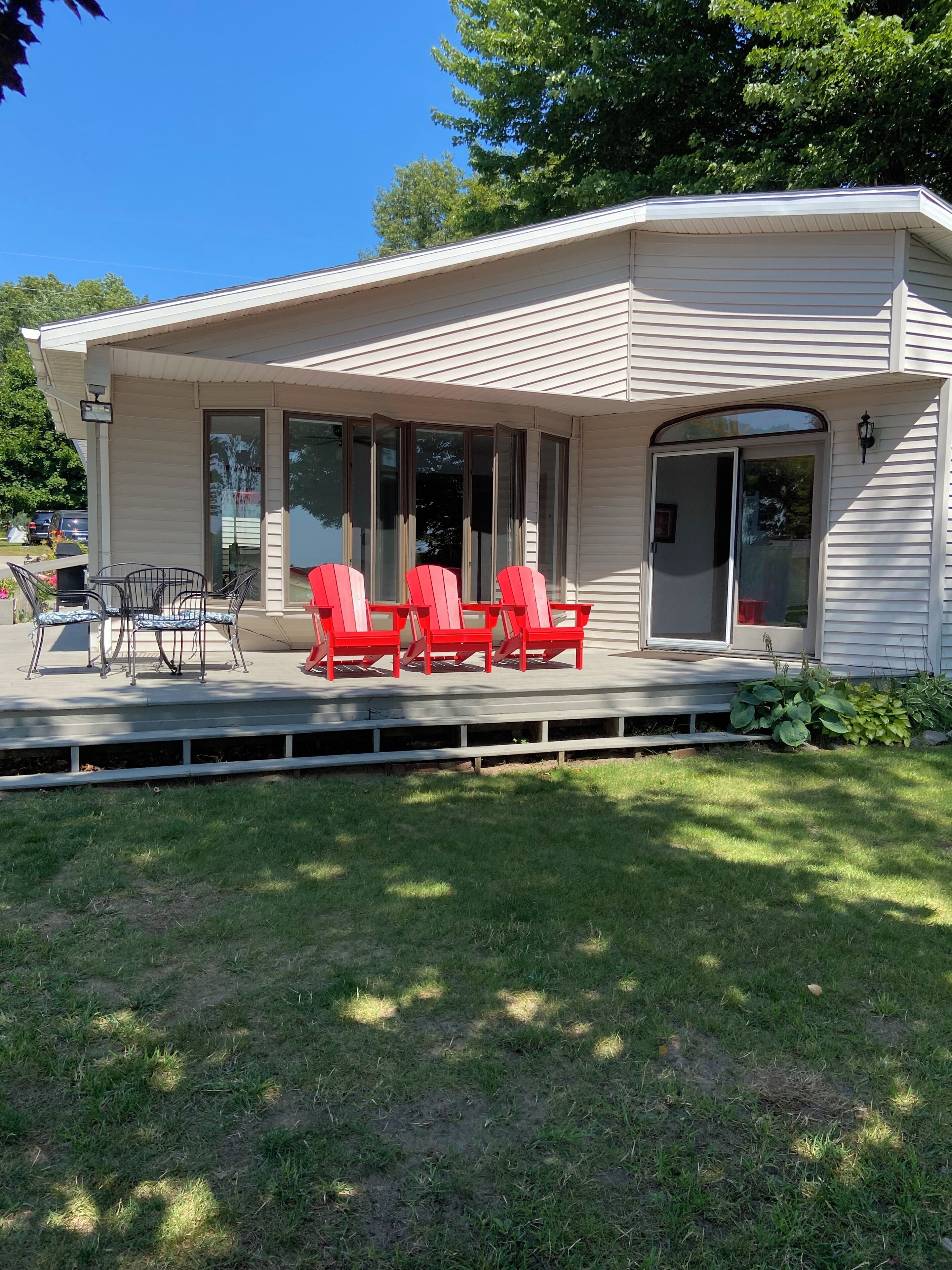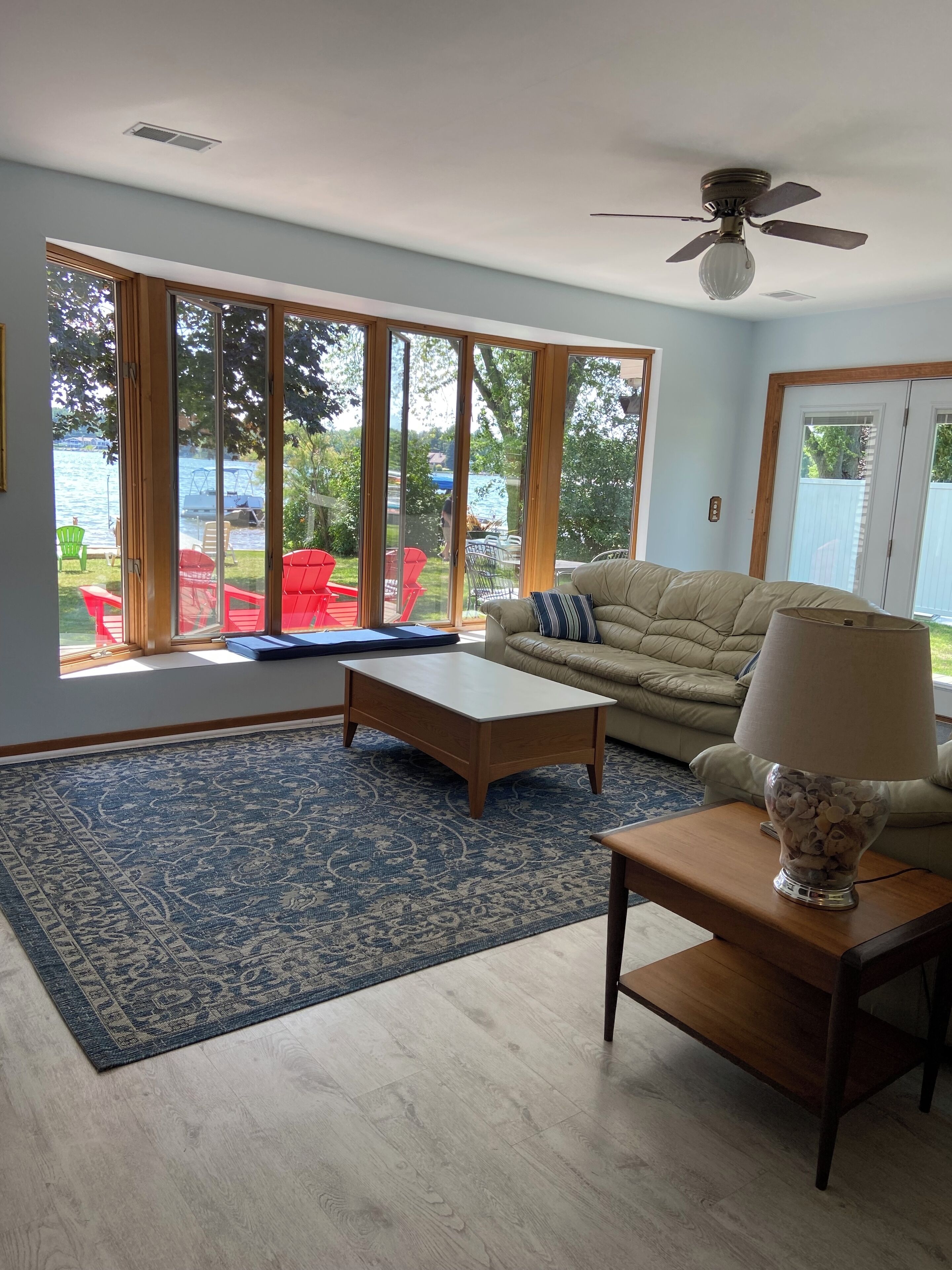 Ladd's Lake House - 3 Bedroom, 2 bath, lakefront, walkout ranch to sandy beach. Completely refurbished with queen size mattresses in two bedrooms, each with a private entrance. 3rd Bedroom is secure for children with a queen bunk down and a full up. Laminate flooring throughout. New paint when needed.55" LED in living room. 32" LED in master, 32” LCD in other adult bedroom,cable and high speed internet. Blue ray player provided. Apple TV.Fully equipped kitchen, blender, toaster, coffee pot, Kuerig coffee maker. Pots & pansWasher & dryer provided.Towels and sheets are furnished.All of our towels, bed linens and comforters are washed weekly.Check in is 4:00 PM Saturday, Check out is 11:00AM the following Saturday.JUNE THROUGH AUGUST REQUIRE A 7 NIGHT STAY!!