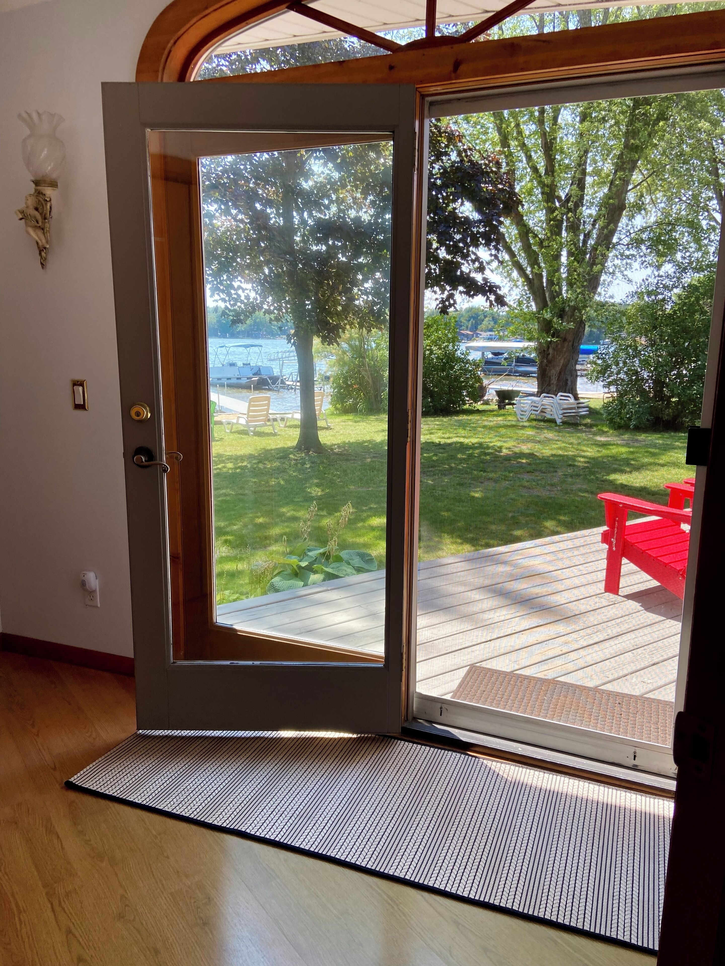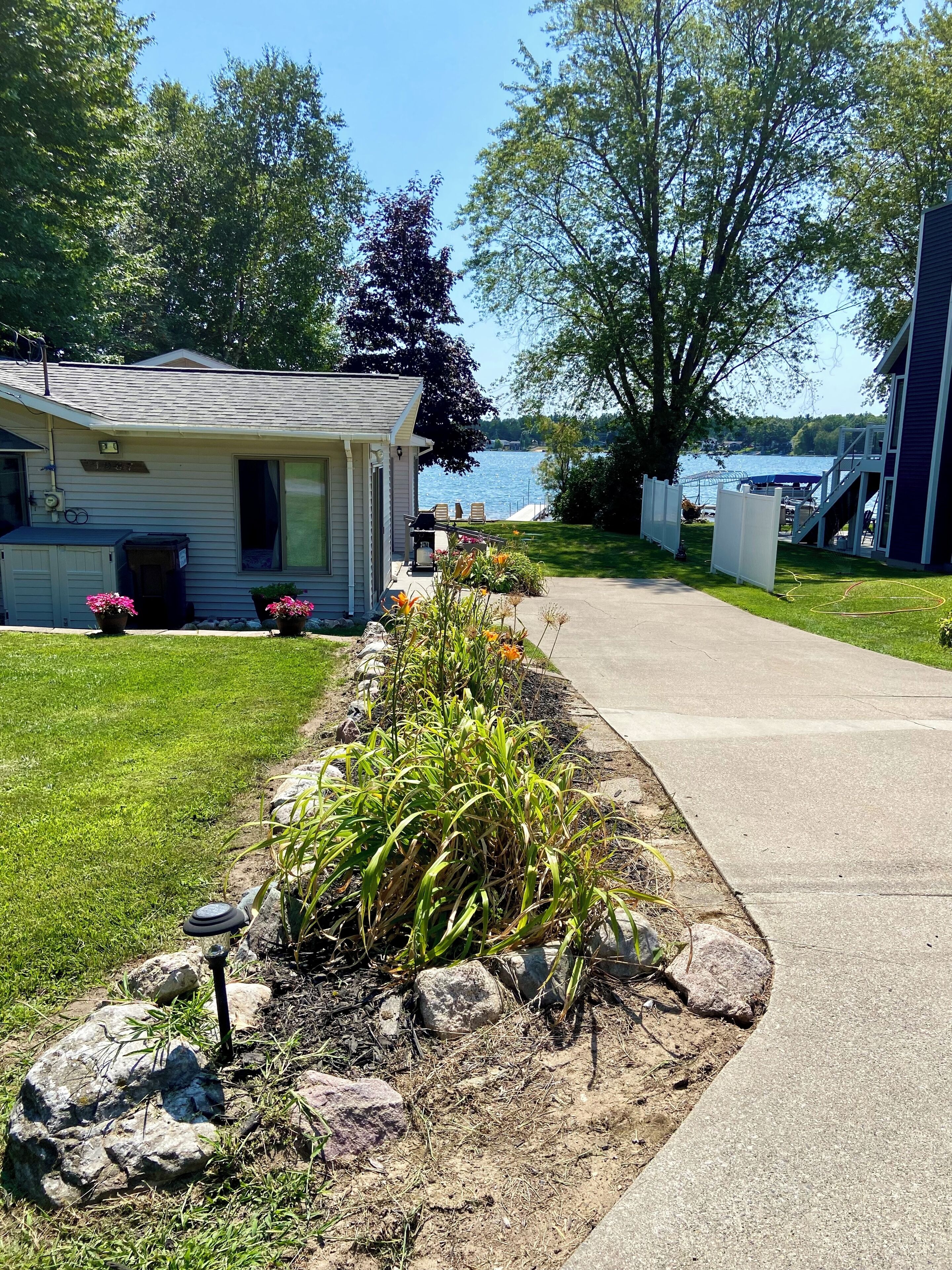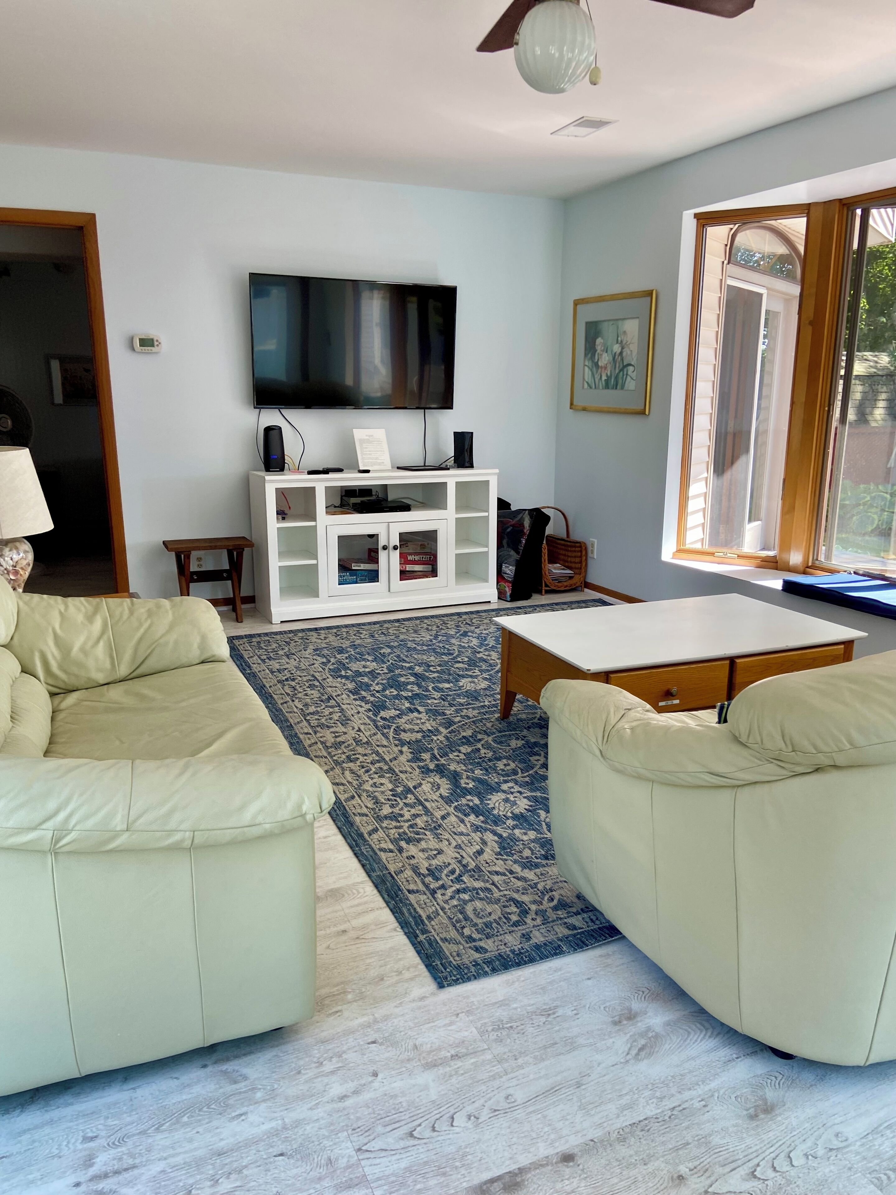 Ladd's Lake House - 3 Bedroom, 2 bath, lakefront, walkout ranch to sandy beach. Completely refurbished with queen size mattresses in two bedrooms, each with a private entrance. 3rd Bedroom is secure for children with a queen bunk down and a full up. Laminate flooring throughout. New paint when needed.55" LED in living room. 32" LED in master, 32” LCD in other adult bedroom,cable and high speed internet. Blue ray player provided. Apple TV.Fully equipped kitchen, blender, toaster, coffee pot, Kuerig coffee maker. Pots & pansWasher & dryer provided.Towels and sheets are furnished.All of our towels, bed linens and comforters are washed weekly.Check in is 4:00 PM Saturday, Check out is 11:00AM the following Saturday.JUNE THROUGH AUGUST REQUIRE A 7 NIGHT STAY!!