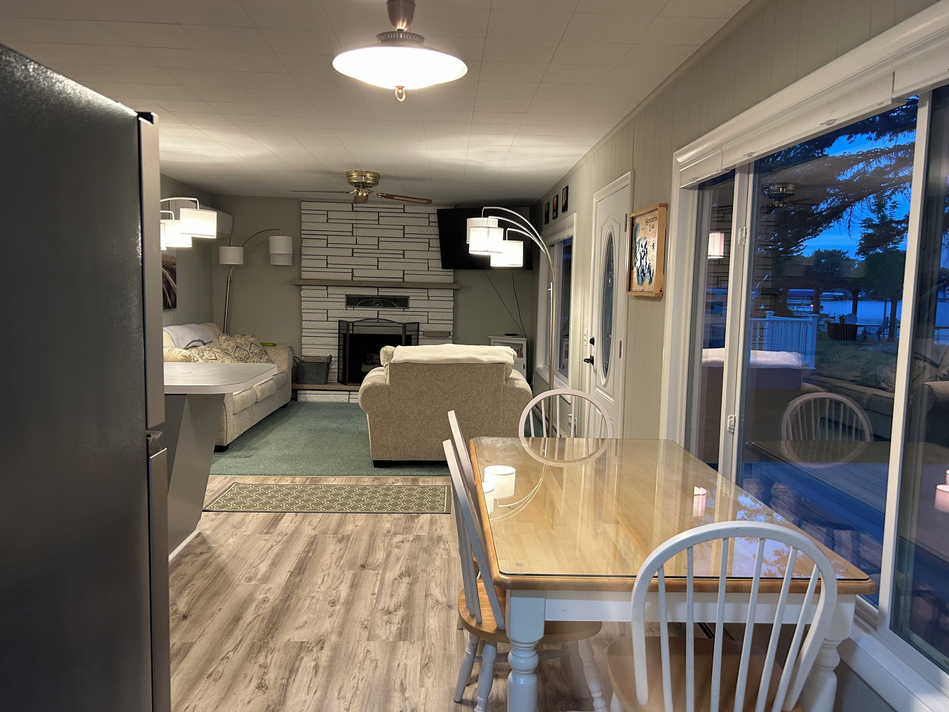 Tranquil Houghton Lake Cottage Escape to the sandy and serene East Bay beach on Houghton Lake with family and friends. Relax on the lakeside deck, build a fire and enjoy the views. Take advantage of the single car garage, three bedroom, one and a half bathrooms, fully equipped kitchen, dining room and living room while overlooking the largest inland lake in Michigan. Be sure to bring or rent water toys, as a private dock is available for your use. Located within the quaint town of Prudenville which offers numerous restaurants, shopping and fun activities within five minutes. Easy driving distance to Houghton Lake, Roscommon, Grayling, Gaylord, Cadillac, St. Helen and Mackinaw City.Many activities nearby include: water sports, indoor and outdoor golf, hiking, biking and skiing.Please respect the quiet hours of 11p - 8a.