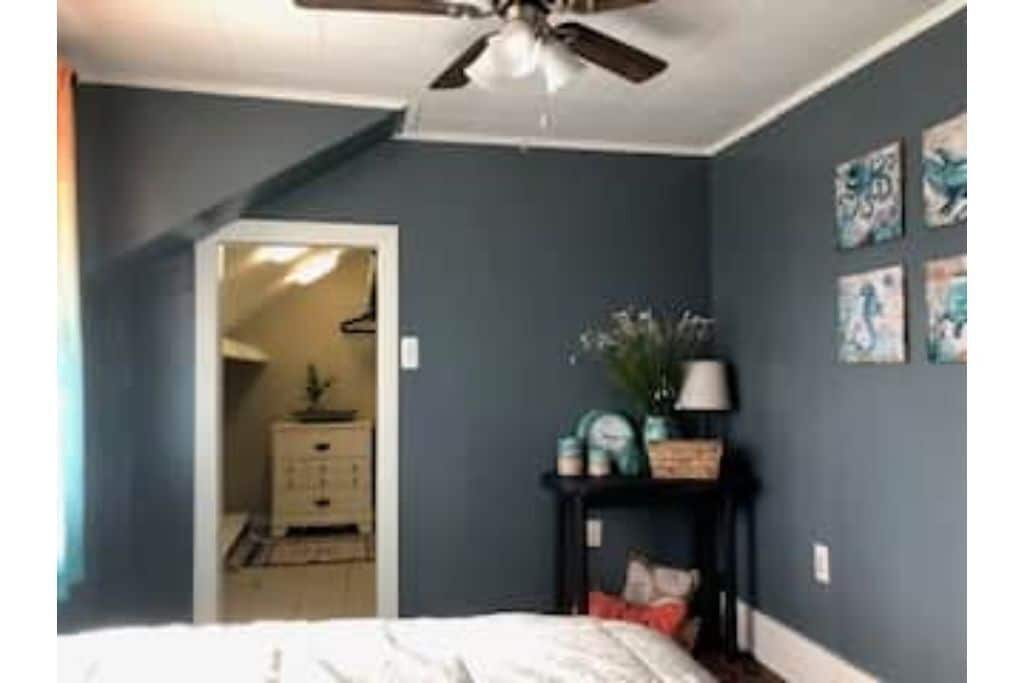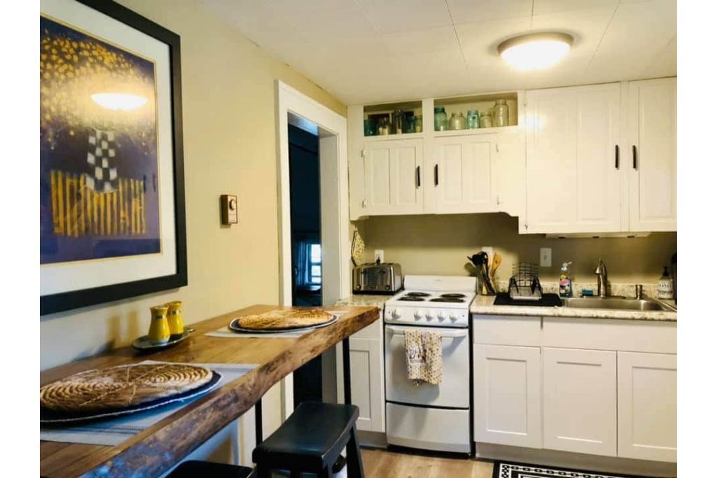 The Crooked House Located just a few blocks from the Algonac Municipal boat launch and just minutes from multiple DNR boat launches, this apartment is the perfect location for fishermen and boaters! Also just minutes away from Algonac State Park and Harsens Island, outdoor enthusiasts and kayakers will find ample opportunities to explore both on land and on the water! Algonac is a short 10 minute drive south from historic Marine City, where you will find many excellent restaurants and one of a kind shops downtown.This is an upstairs unit, and is accessable by outside stairs only. Please do not book if you are unable to comfortably walk up and down stairs!Located in a quiet neighborhood, this unit features a large living room to relax in. The bedroom offers a queen sized bed, there is a sleeping nook with a comfortable twin bed, and a small sofa bed in the living room. This comfortably accomodates 3-4 adults. The kitchen is completely stocked with everything you will need- microwave, kuerig, large refrigerator/freezer, toaster, dishes and cookware. There is a full bath with a shower. All linens and towels are provided. This unit does NOT have a washer/dryer. We offer a safe, no-contact stay for your safety and comfort. Pets are NOT allowed. No smoking. Algonac is located at the southern end of the St. Clair river and offers a wide variety of opportunities to enjoy the water! Watch freighters pass by, take the ferry to Harsens Island, kayak, canoe, book a fishing charter, or bring your own boat. This rental is NOT waterfront, but is walking distance to the boat launch and riverside park. Perfect for fishermen!! We have 45 feet of parking for your vehicle and boat and can provide a plug in for your boat if needed.