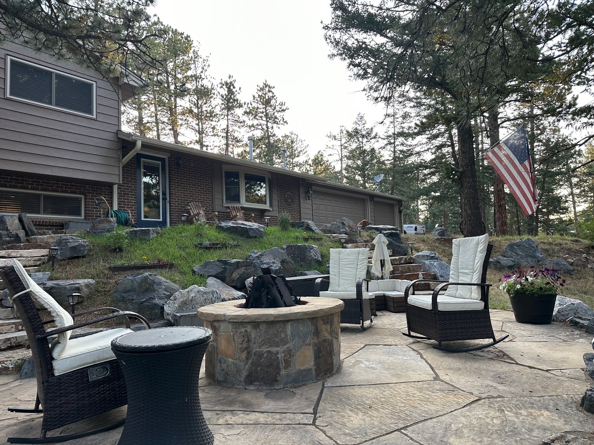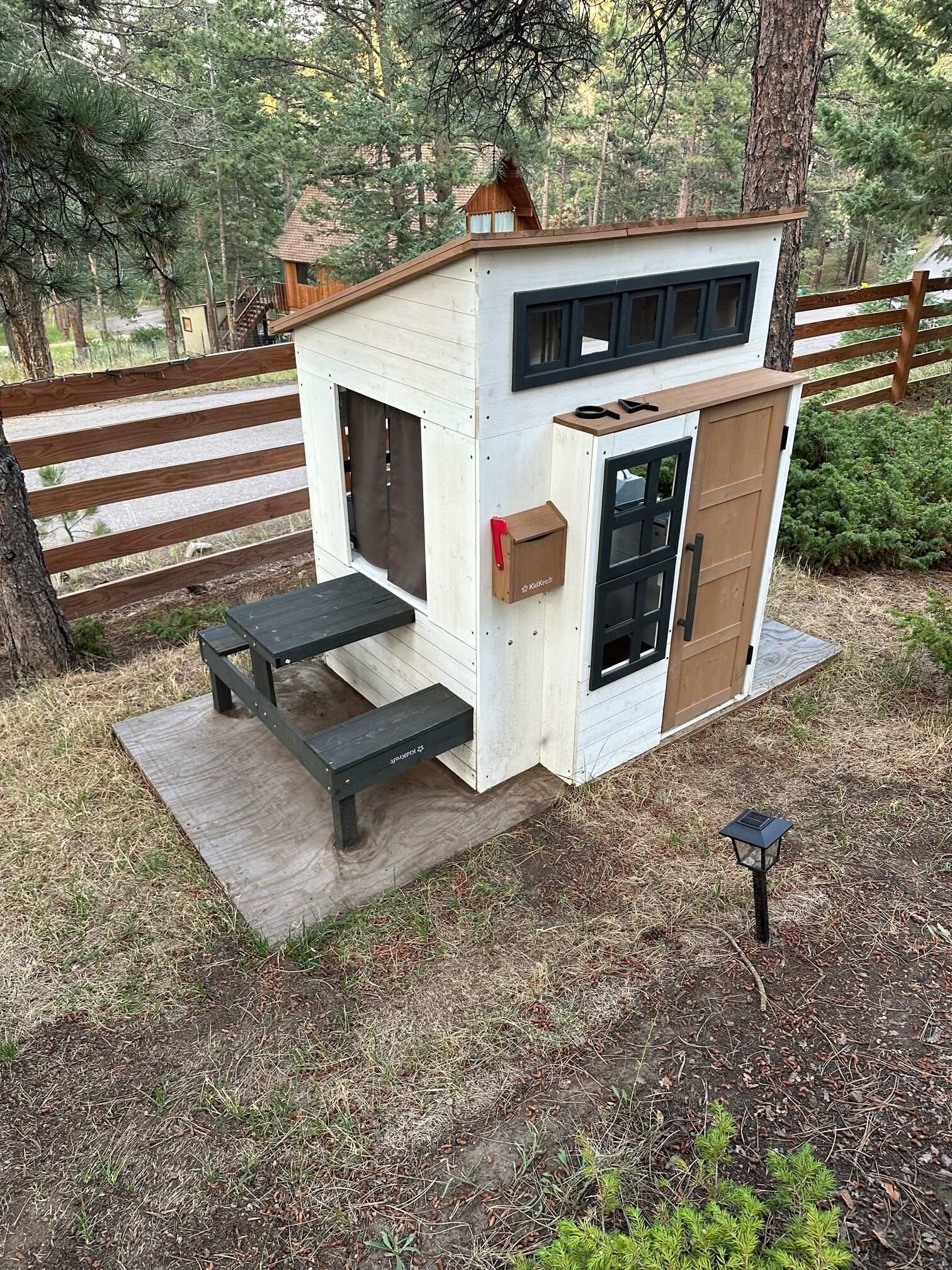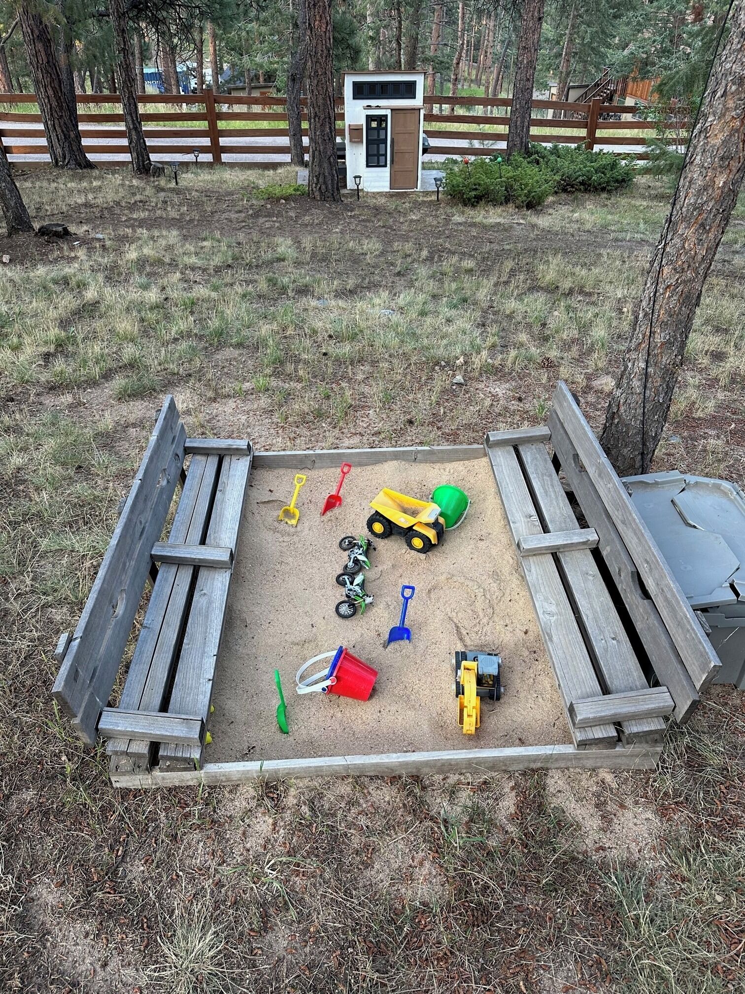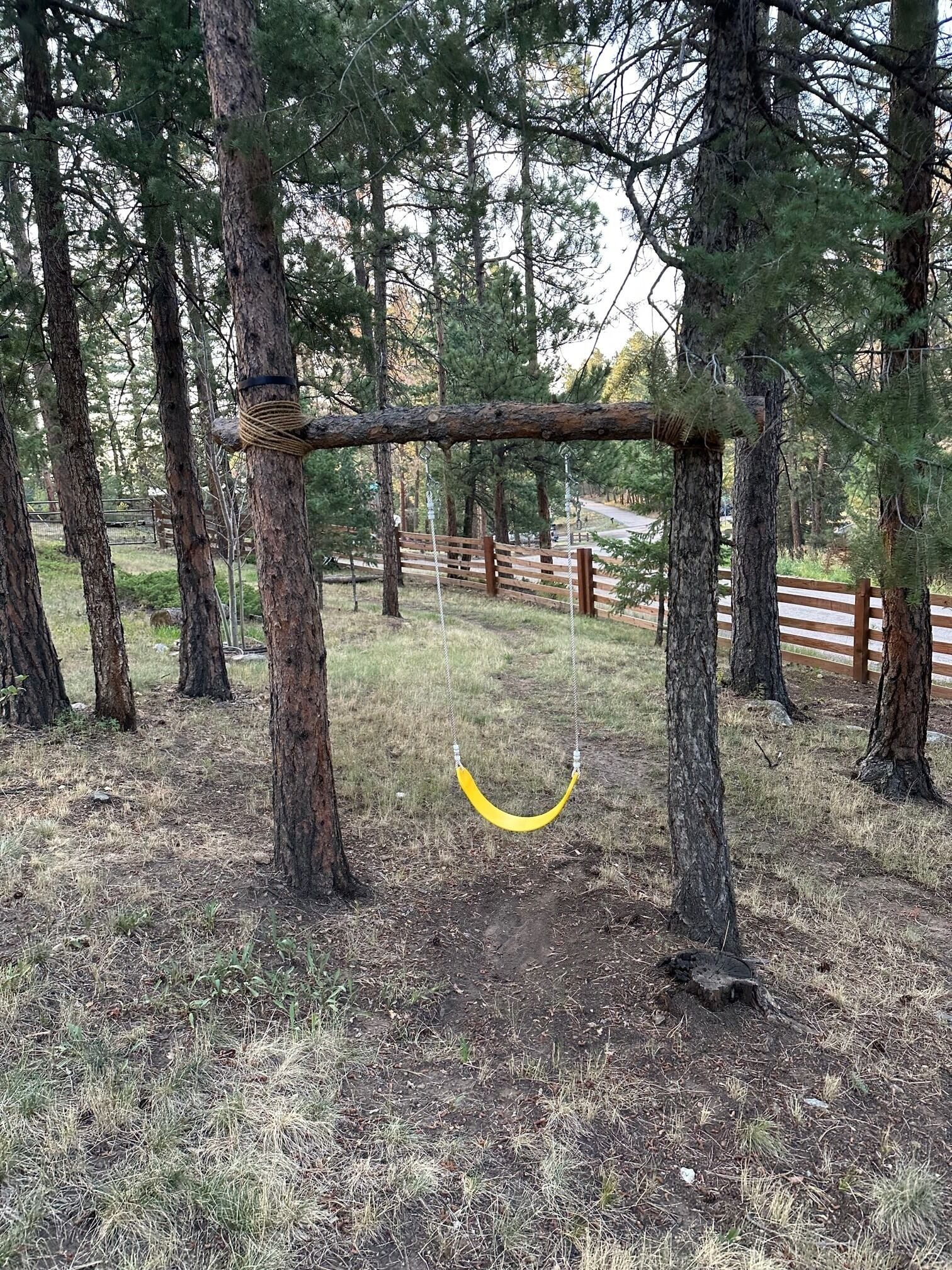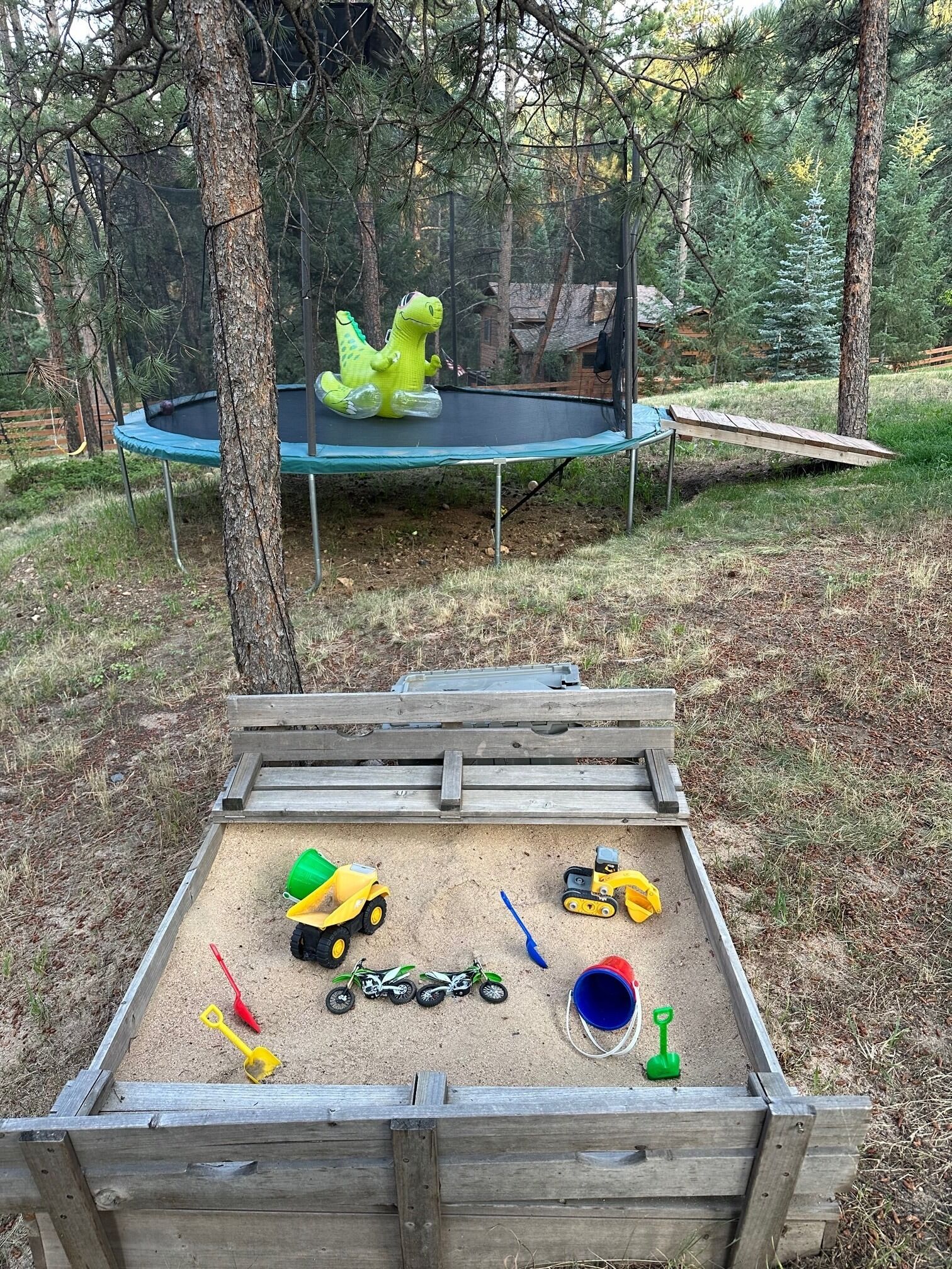 Kid and Dog Friendly Private Family Mountain Retreat with Great WiFi and Cell Beautiful Kid and Dog Friendly Family Mountain Getaway with Great WiFi and Cell Reception in Fantastic Location in North Evergreen with Quick I70 Access.1 Hour to Skiing, 15 Minutes to Red Rocks, 30 Minutes to Downtown Denver, 45 Minutes to Airport, and 10 Minutes to Evergreen Lake. World Class Mountain Biking and Hiking Right Out the Door.Property Description:4 bedroom 2 bath single family home with ¾ acre fully fenced yard designed for kids and dogs to roam and play. Comfortable home surrounded by pine trees with beautiful patio spaces and access to nearby trails and parks.House Layout:Tri level home with three bedrooms and a bathroom upstairs, living and kitchen on ground level and another living room and flex room with a bed and bathroom in the basement. Downstairs living room has dedicated office area with desk, dual monitors, printer, etc... Mudroom with washer, dryer, dog bed and extra large dog door access to the fully fenced yard. No access to garage as it is used as owners closet. Outside you will find a flagstone patio with gas fire pit overlooking a kids area with trampoline, play house, swings, sandbox, and strider bike track. Out back is another flagstone patio with outdoor dining area including a bbq grill and Traeger smoker.Amenities:General: Firepit, BBQ, Smoker, Fireplaces, Outdoor Dining Area, Highspeed Wifi, Home Office, Smart TVs, Robust Kitchen SuppliesBaby Items: Pack n Play Crib, Inflatable Kids Mattress, High Chair, Baby Cups and SilverwareKid items: Trampoline, Playhouse, Sandbox, Strider Bike Track, Swings, Kids Patio SeatingDog Items: Dog Door (XL), Indoor and Outdoor Dog Beds, Mudroom Dog RoomImportant:30 day minimum stay due to county restrictions. Must have 4x4 or AWD and good tires for winter bookings. We are not far off the highway, and the neighborhood roads are plowed by county, but this is in the mountains where weather and hills impact travel.