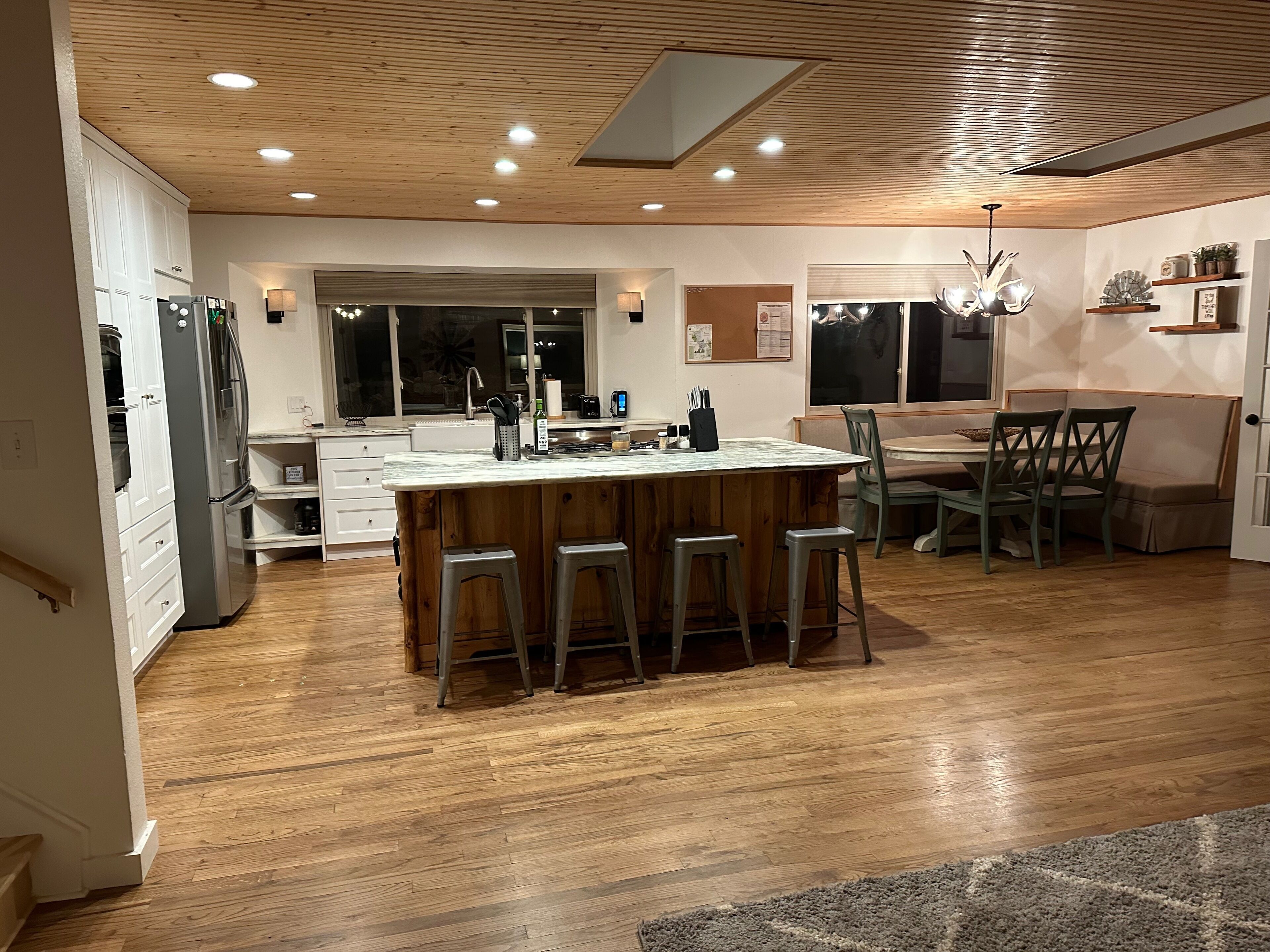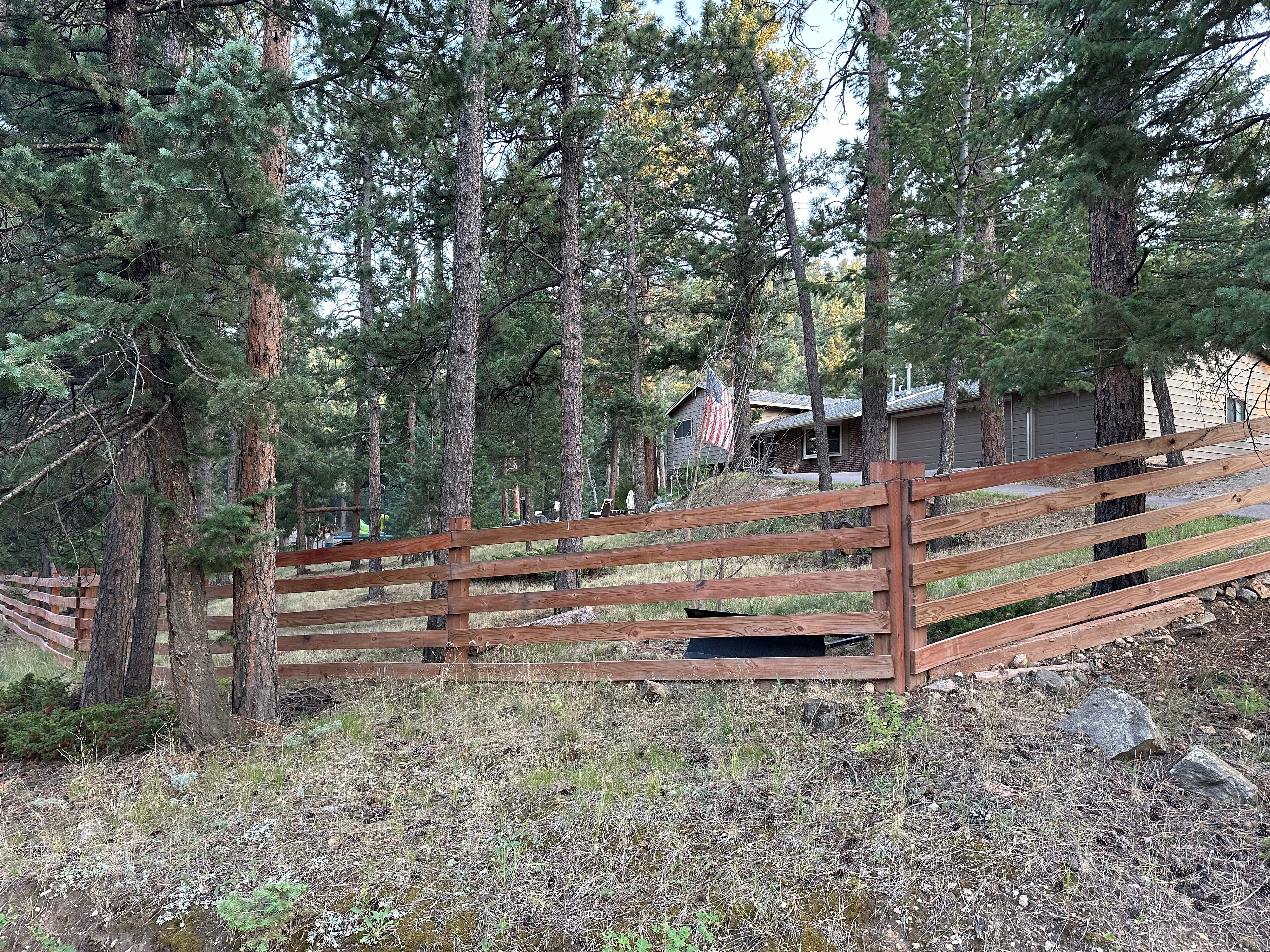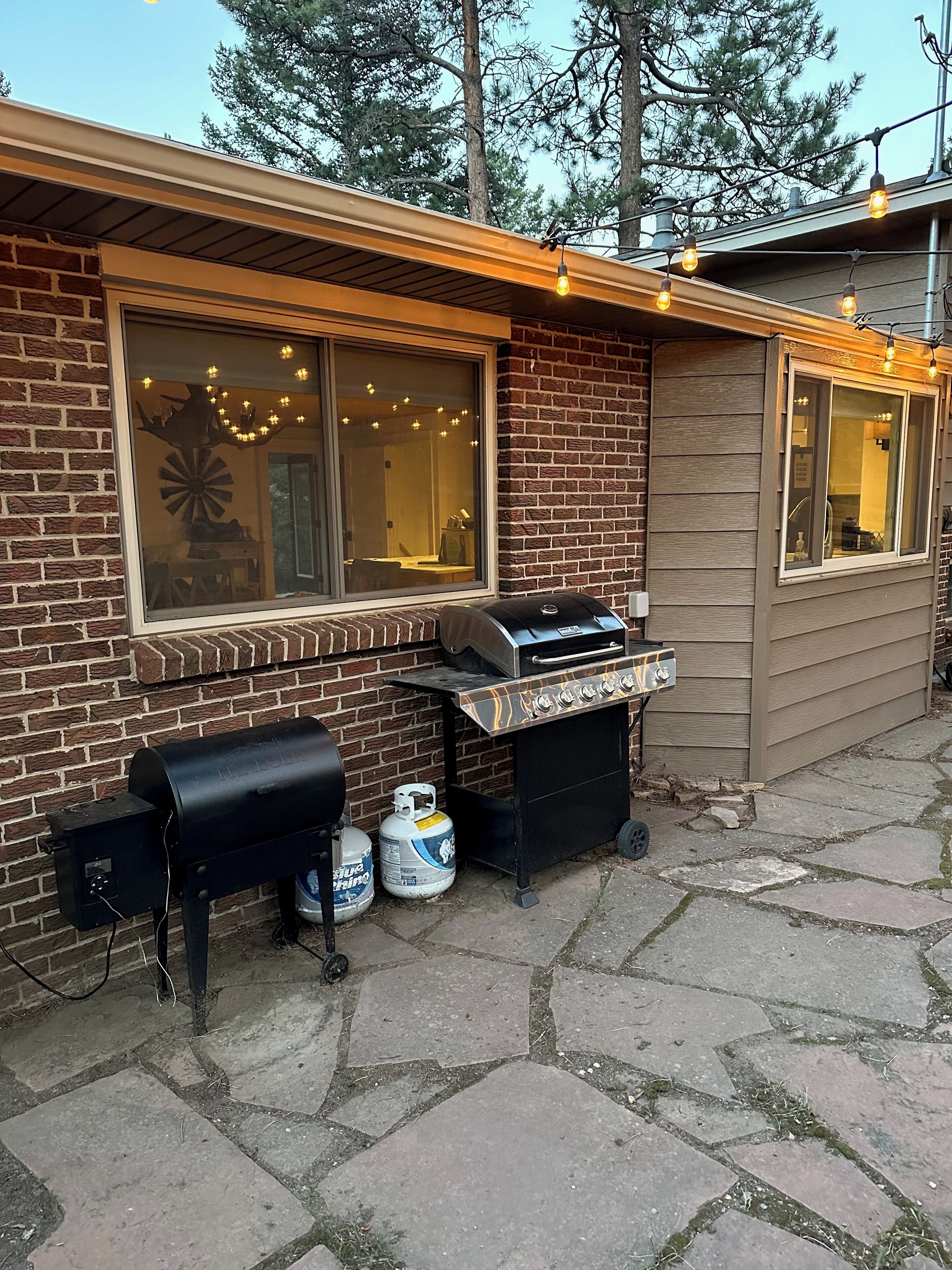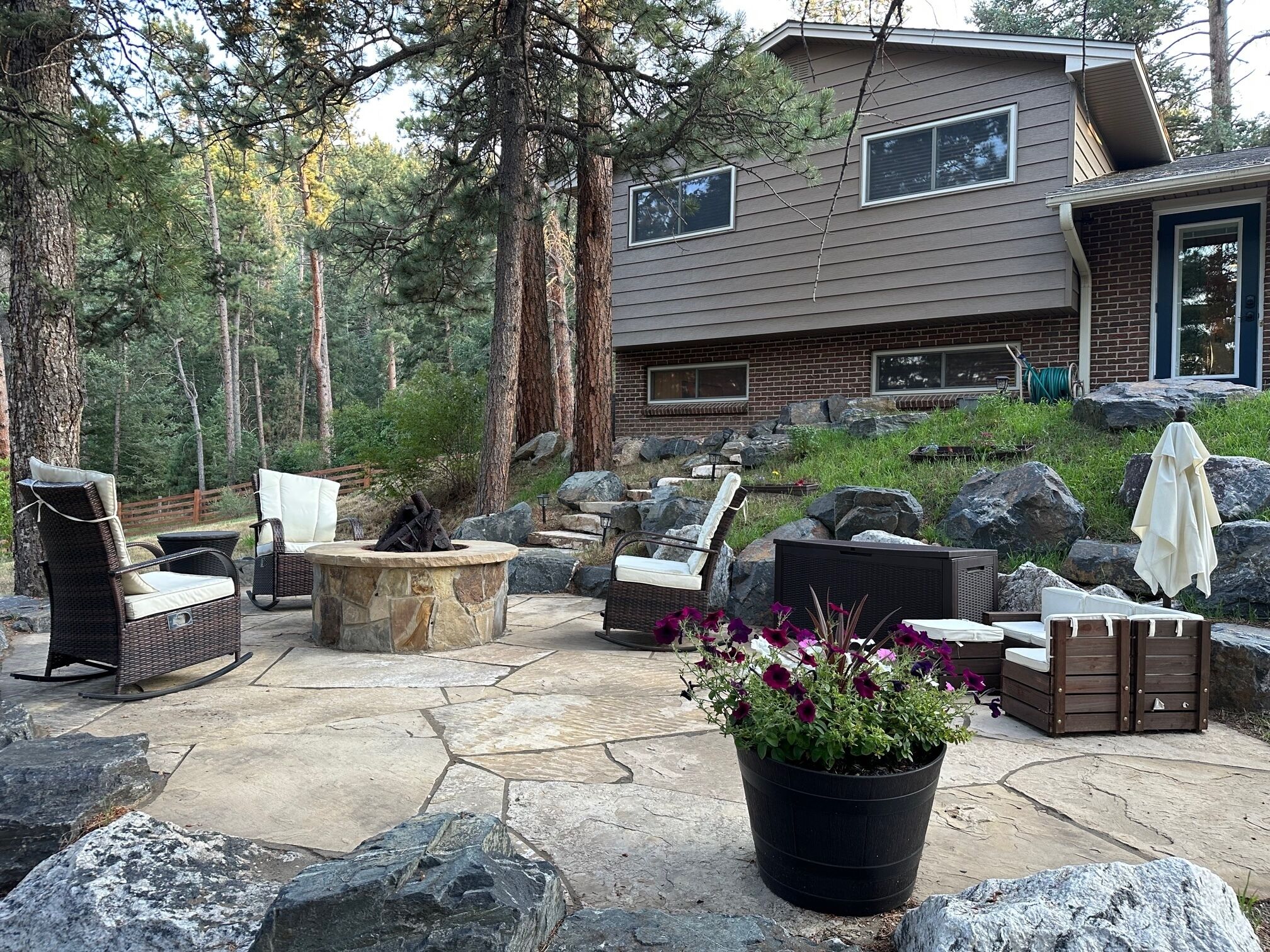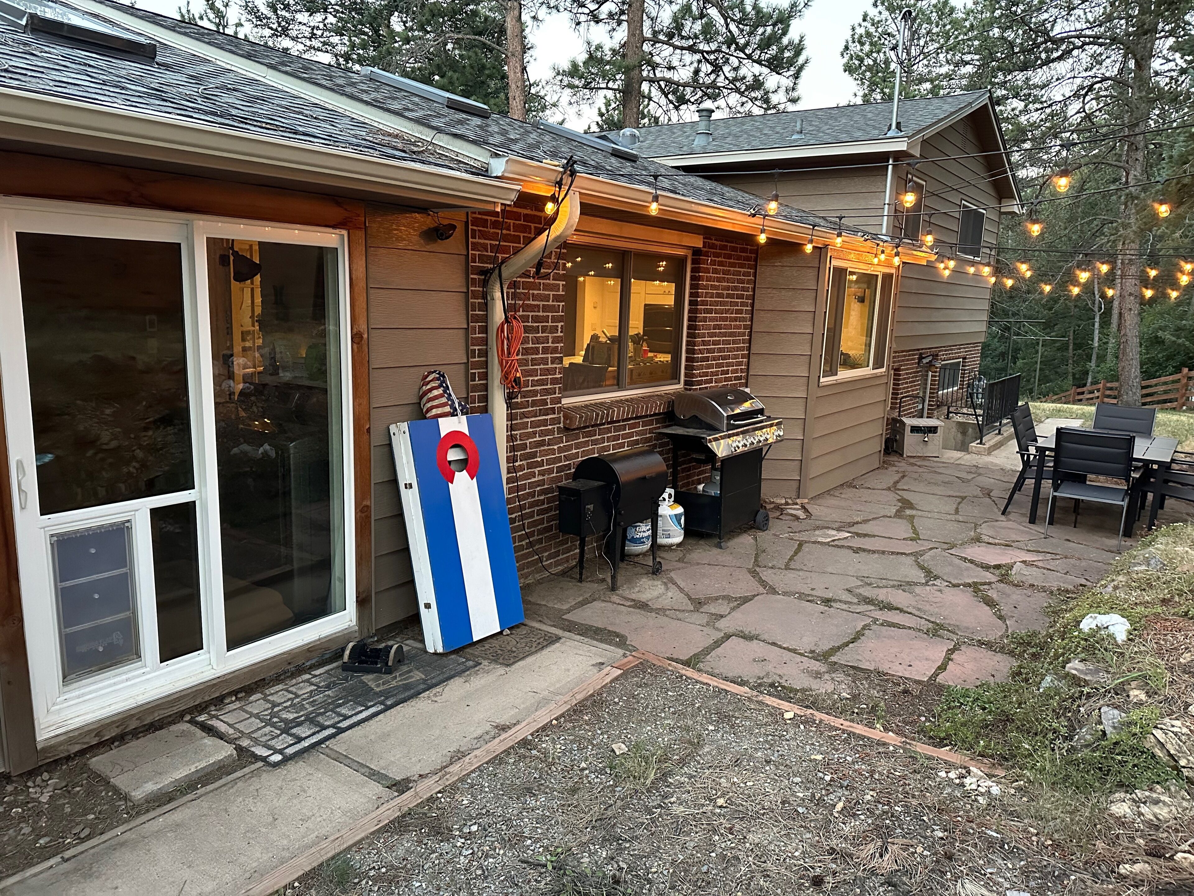 Kid and Dog Friendly Private Family Mountain Retreat with Great WiFi and Cell Beautiful Kid and Dog Friendly Family Mountain Getaway with Great WiFi and Cell Reception in Fantastic Location in North Evergreen with Quick I70 Access.1 Hour to Skiing, 15 Minutes to Red Rocks, 30 Minutes to Downtown Denver, 45 Minutes to Airport, and 10 Minutes to Evergreen Lake. World Class Mountain Biking and Hiking Right Out the Door.Property Description:4 bedroom 2 bath single family home with ¾ acre fully fenced yard designed for kids and dogs to roam and play. Comfortable home surrounded by pine trees with beautiful patio spaces and access to nearby trails and parks.House Layout:Tri level home with three bedrooms and a bathroom upstairs, living and kitchen on ground level and another living room and flex room with a bed and bathroom in the basement. Downstairs living room has dedicated office area with desk, dual monitors, printer, etc... Mudroom with washer, dryer, dog bed and extra large dog door access to the fully fenced yard. No access to garage as it is used as owners closet. Outside you will find a flagstone patio with gas fire pit overlooking a kids area with trampoline, play house, swings, sandbox, and strider bike track. Out back is another flagstone patio with outdoor dining area including a bbq grill and Traeger smoker.Amenities:General: Firepit, BBQ, Smoker, Fireplaces, Outdoor Dining Area, Highspeed Wifi, Home Office, Smart TVs, Robust Kitchen SuppliesBaby Items: Pack n Play Crib, Inflatable Kids Mattress, High Chair, Baby Cups and SilverwareKid items: Trampoline, Playhouse, Sandbox, Strider Bike Track, Swings, Kids Patio SeatingDog Items: Dog Door (XL), Indoor and Outdoor Dog Beds, Mudroom Dog RoomImportant:30 day minimum stay due to county restrictions. Must have 4x4 or AWD and good tires for winter bookings. We are not far off the highway, and the neighborhood roads are plowed by county, but this is in the mountains where weather and hills impact travel.