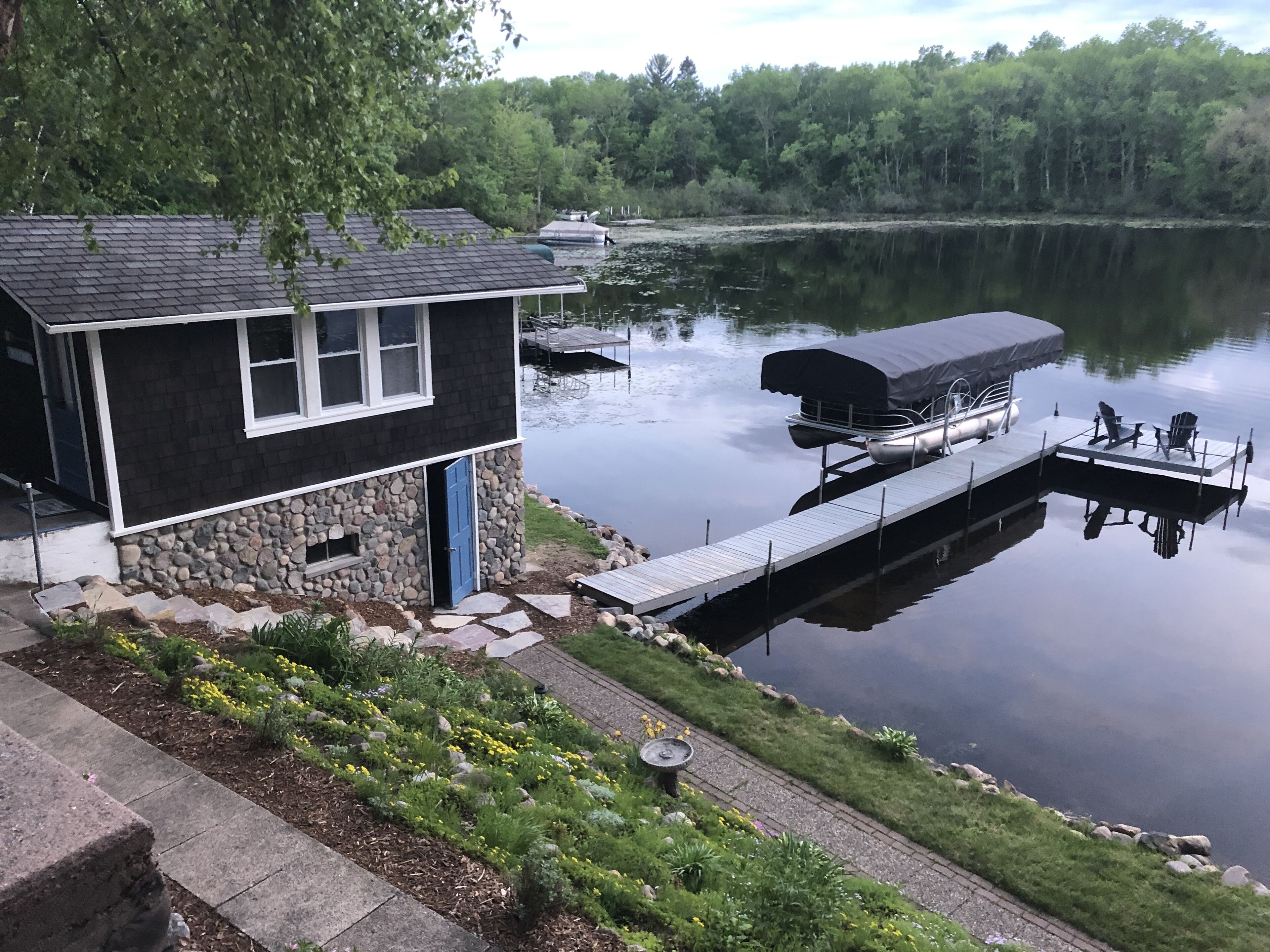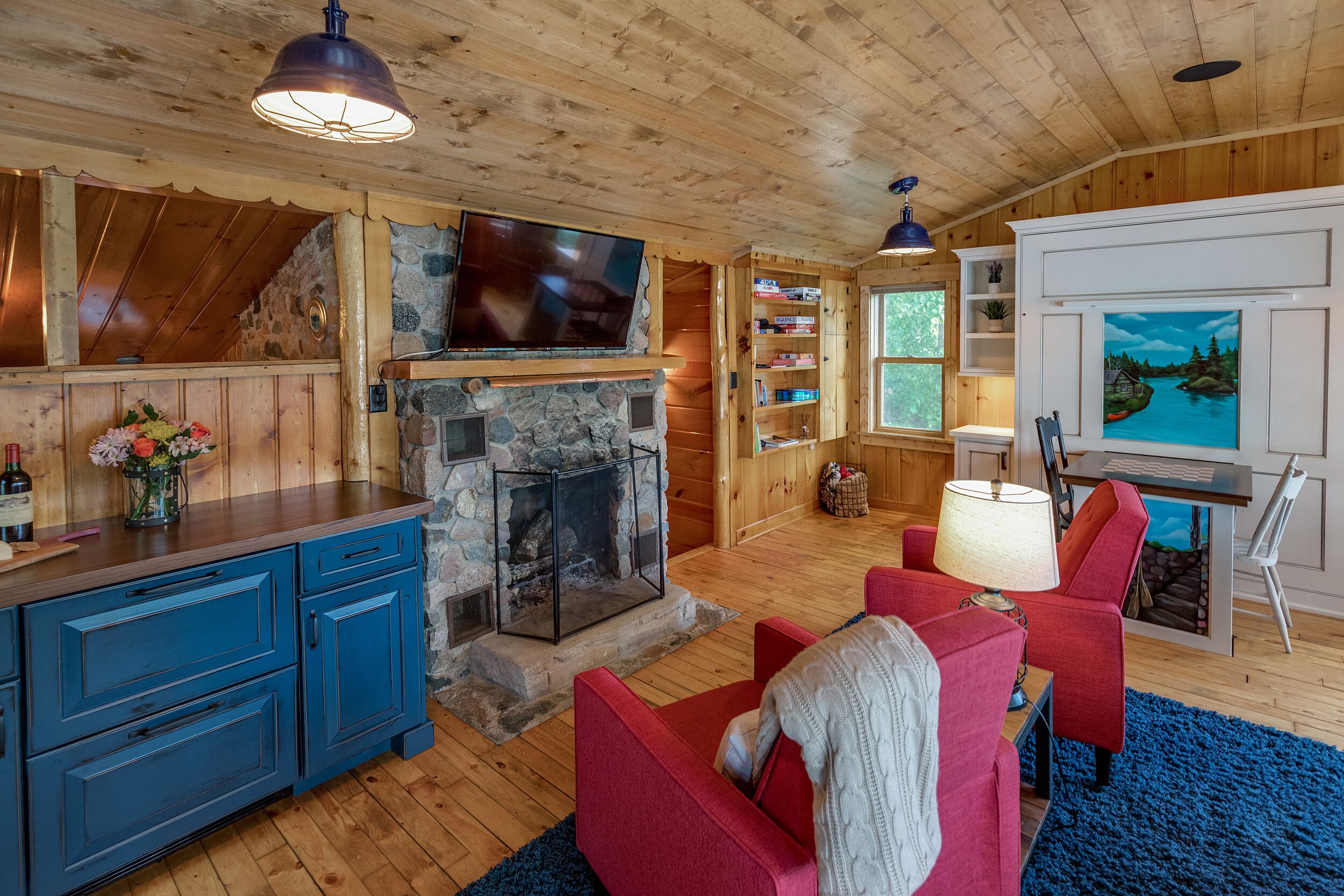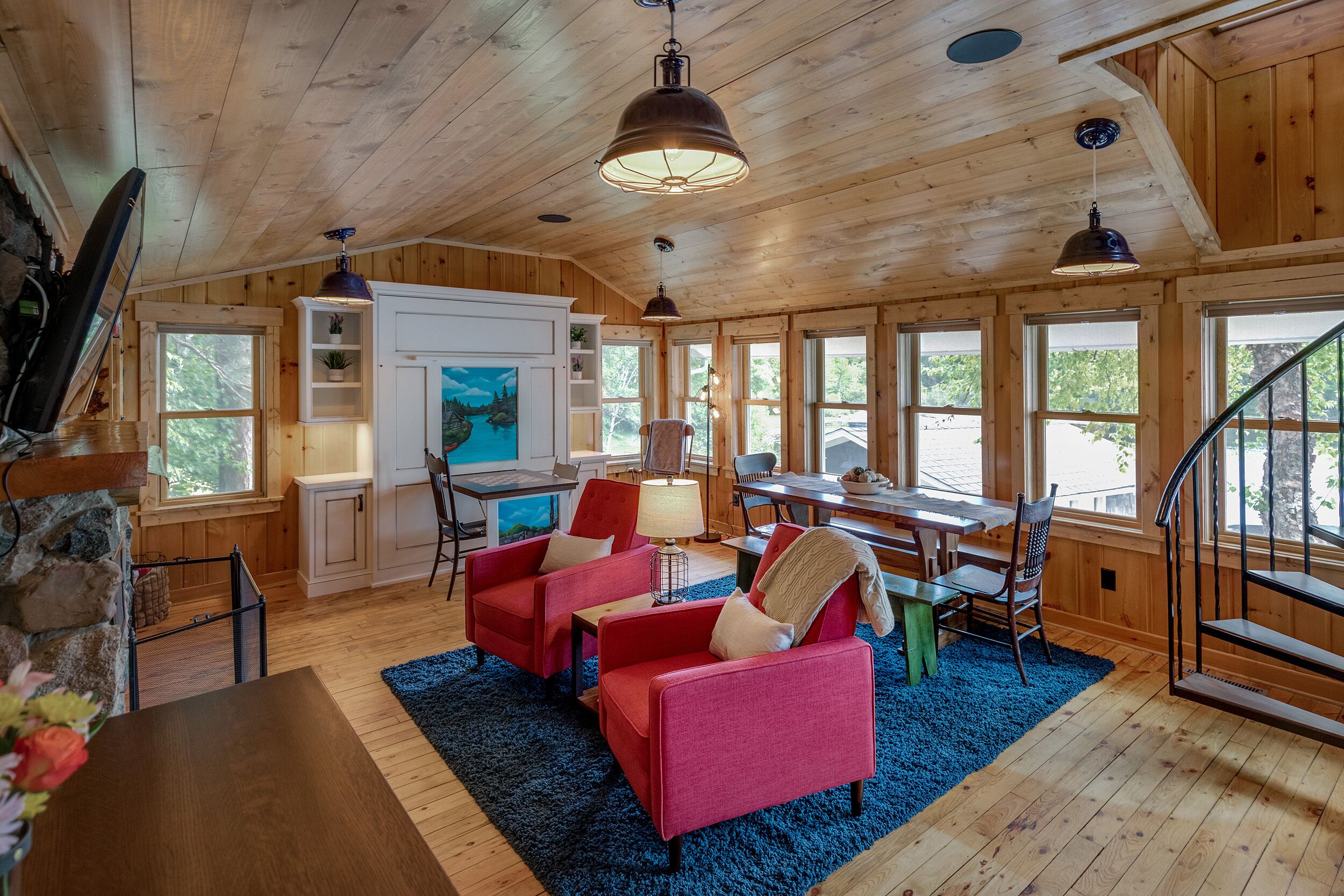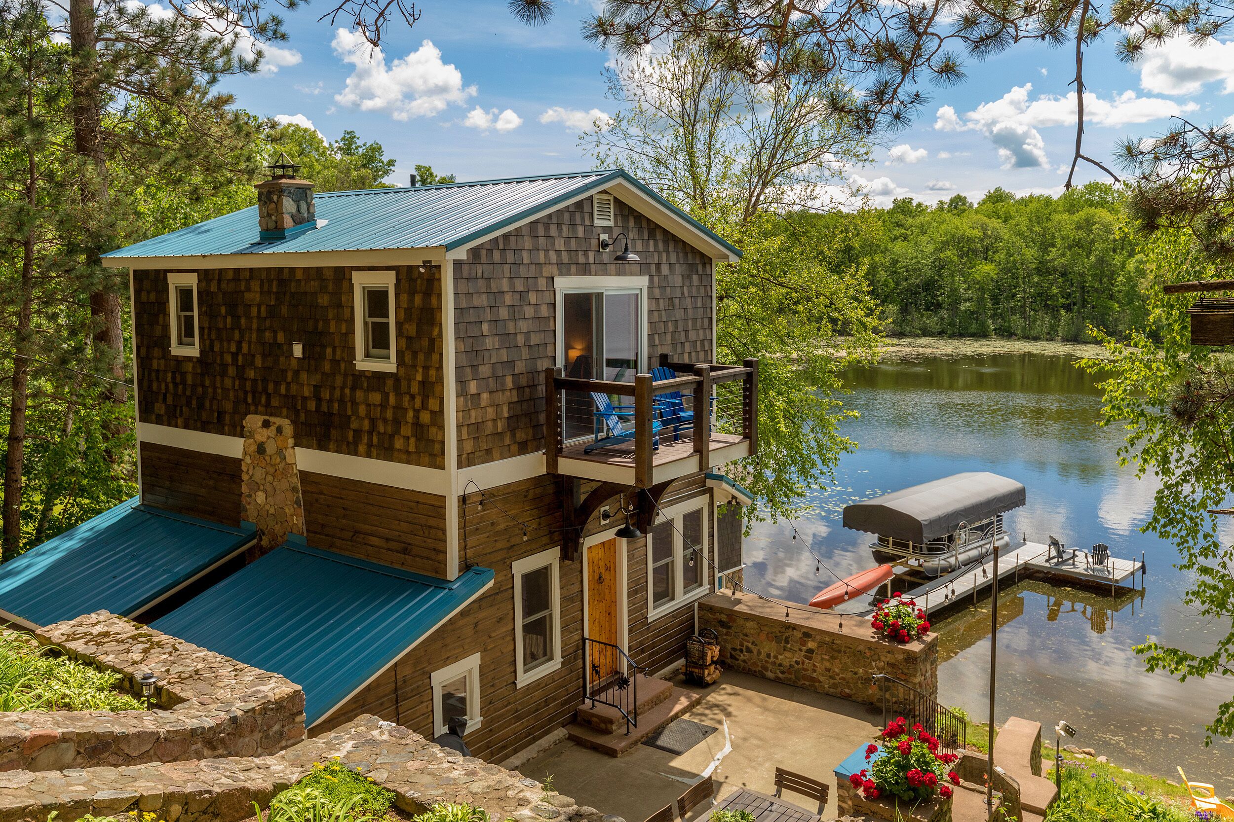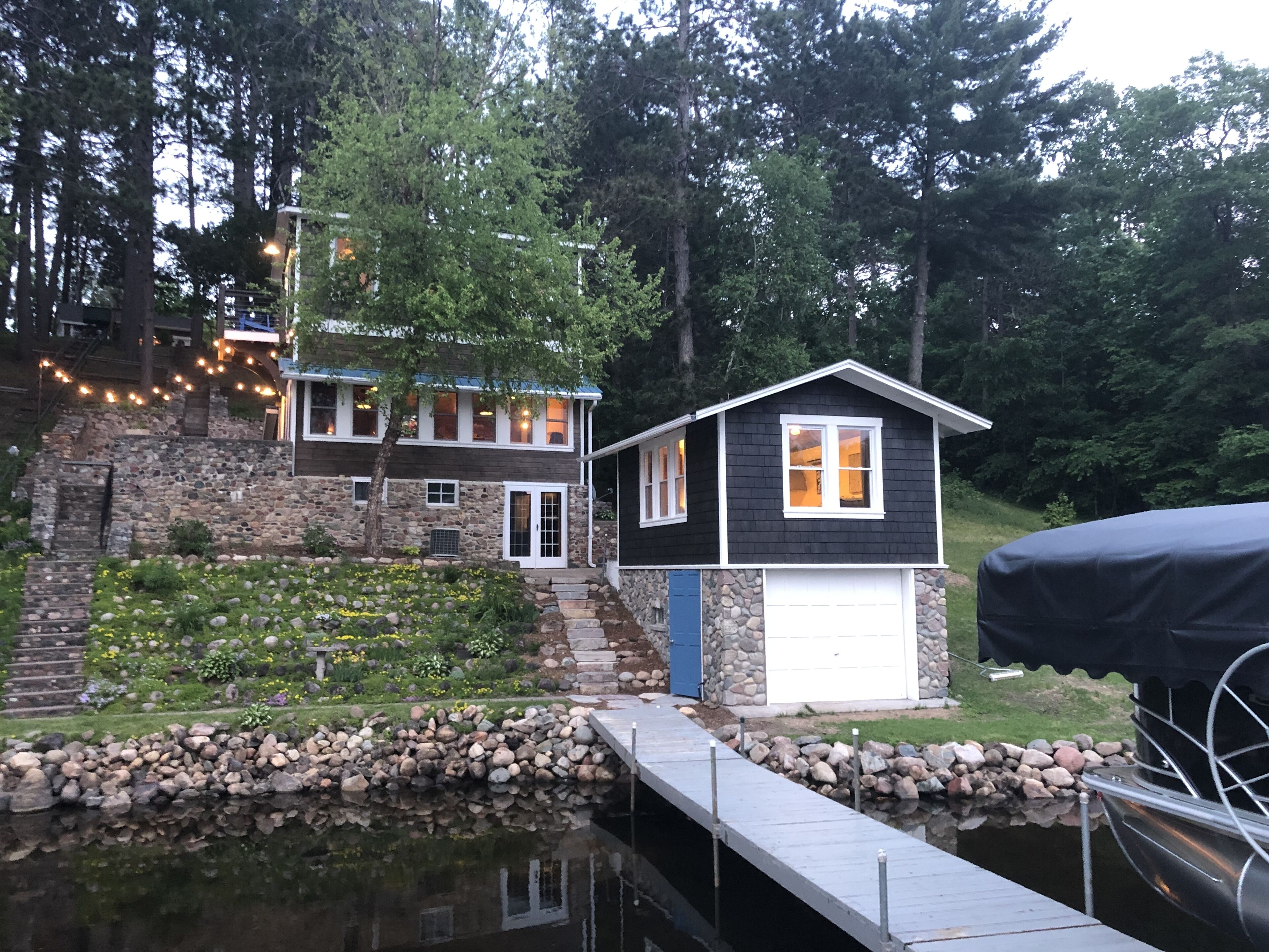 Quaint Cabin on Sibley Lake PONTOON INCLUDED thru mid-October. Look no further if a true Minnesota cabin experience is what you're after. Once you arrive, the path to the "Stairway to Heaven" will quickly make you realize why you made the trek Up North. This 1940’s cabin was fully renovated in the winter of 2018 and is essentially brand new inside and out, but the charm of the original cabin has been maintained and is evident throughout. You get the true cabin feel as you enter the main level which combines the family room and dining area for an open, yet cozy feel. The wood-burning fireplace on the main level will warm you up quickly on those cooler nights (firewood included). Enjoy meals at the dining room table or grab a book and snuggle up in front of the fireplace or on the built-in bench; all while overlooking Brown's Bay. This level also includes a custom-made Murphy bed that converts to a game table for chess and checkers matches. The quaint kitchen packs all of the amenities you could need, including stainless steel appliances along with a double-drawer beverage fridge. The main level also includes a full bathroom with a walk-in tiled shower and additional storage.The excitement builds as you head up the spiral stairs to the master bedroom, your expectations will most definitely be met as you feel on top of the world all while overlooking Sibley Lake from every angle. You can head out onto the balcony to enjoy a morning cup of coffee or an evening glass of wine and take in amazing sunset views. The master bathroom has been fully remodeled to include a farmhouse sink, walk-in tiled shower with glass doors and jetted sprays. You will not want to get out of bed in the morning as you will wake up and want to take in all of the beauty that surrounds this room.As you head back down the spiral staircase, you will then head outside down the exterior staircase into the lower level of the house where you will find Bob’s bar, a perfect spot to hang out with your friends and family or sit and relax and enjoy a movie or game on the flat screen TV. This room also has a leather couch that pulls out into a queen-size bed to allow for additional sleeping space.As you head out of the lower level you will walk across the patio to the upper boat house. This will likely be the kids or maybe the parents favorite place to hang out as it will feel like their little getaway space. The boathouse has built-in bunk beds, along with a day bed for comfortable sleeping. You will feel like you are sleeping on the water as the boathouse is situated just steps away from the lakeshore. As you head out of the cabin, you are just steps away from the dock that is perfect for fishing, swimming, and relaxing. Head out for a cruise around the lake or to the sand bar on the 2019 Sylvan fish and cruise pontoon (rental of cabin includes the pontoon boat). Everyone loves a good campfire and s'mores, so the shoreline also boasts a firepit and Adirondack chairs to enjoy the fire and the lake views on those beautiful Minnesota summer evenings. Finally, the cedar sauna house and patio are a perfect place to begin or end your day. With beautiful views of Sibley Lake, relax and enjoy some quiet time away from all the hustle and bustle. For those that like to stay connected or to not miss the Wild, Twins, Vikings, United, or T-Wolves games, both the main and lower-level bar have high-definition TV’s with DirectTV or streaming with free fast Wi-Fi. This property is perfect for a family, or an extended family, or a couple’s getaway. Upon reservation confirmation you will receive a complete list of what to bring, so you are prepared for your time at the lake. Please feel free to inquire with any questions you may have and will promptly reply. We pride ourselves on maintaining our property and keep it in excellent condition, we are certain we will exceed your expectations in this regard. Since we also live across the lake from the cabin, should any questions or issues arise we can respond quickly.NOTE: There are a number of stairs on the property as you will see in the photos. We purchased the cabin from folks in their 90’s so we believe these stairs keep you young. There is a tram conveniently located to help bring supplies and luggage up and down and is available for use spring, summer, and fall (not winter due to snow). The tram is NOT available to transport people. NOTE: The pontoon is in the water, and use is included in the stated rental rates, from approximately mid-May to mid-October.NOTE: The main cabin includes a central air heating and cooling system. The bunkhouse includes a ductless split that provides both heat and cooling.