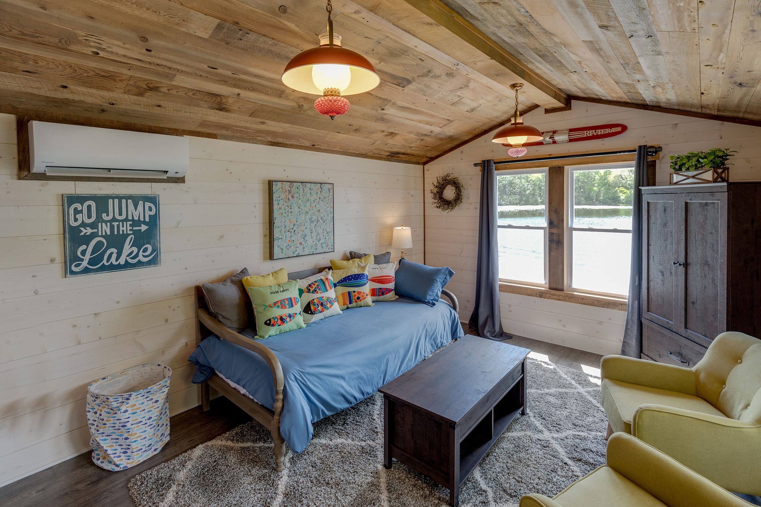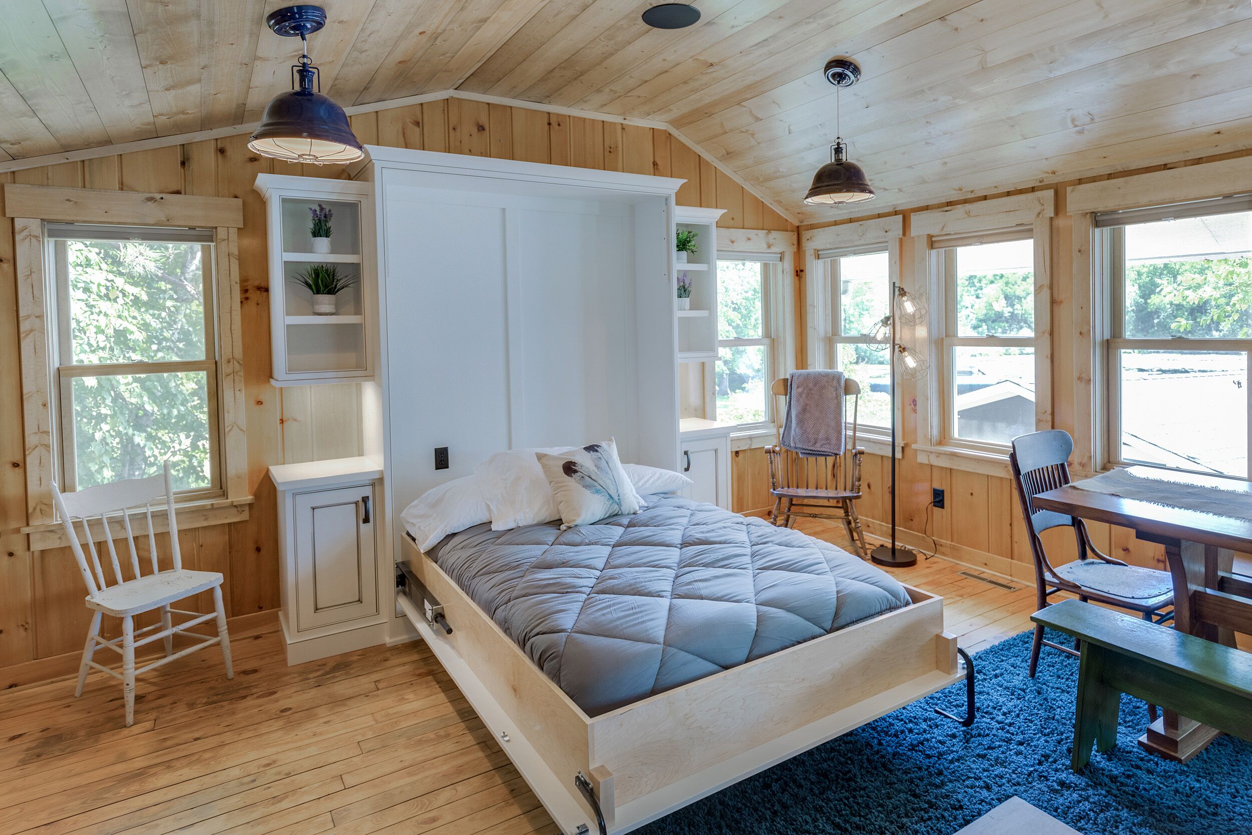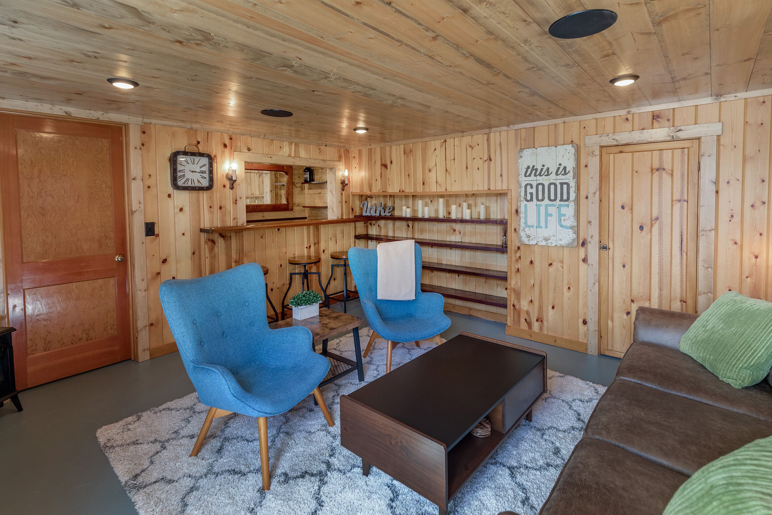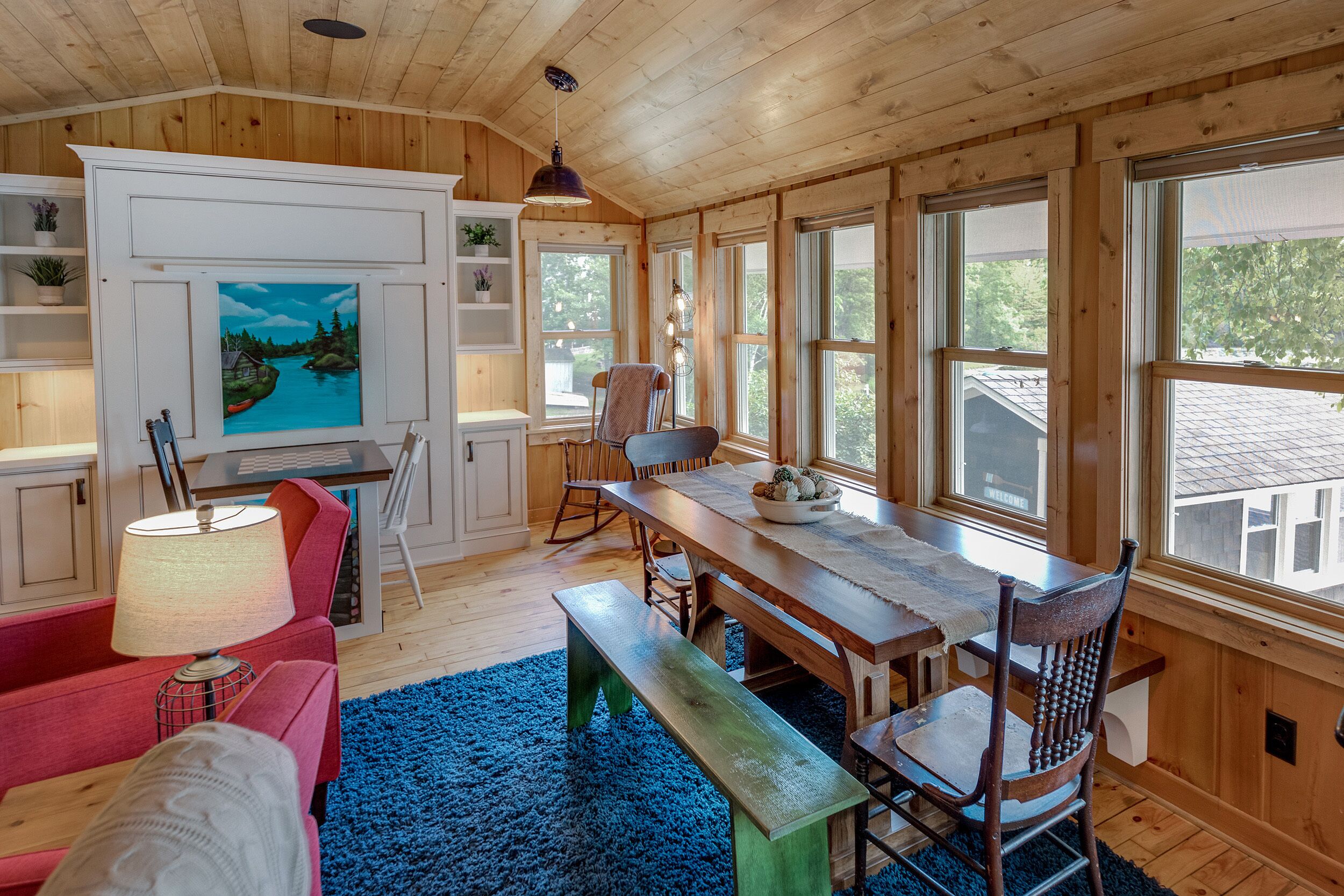 Quaint Cabin on Sibley Lake PONTOON INCLUDED thru mid-October. Look no further if a true Minnesota cabin experience is what you're after. Once you arrive, the path to the "Stairway to Heaven" will quickly make you realize why you made the trek Up North. This 1940’s cabin was fully renovated in the winter of 2018 and is essentially brand new inside and out, but the charm of the original cabin has been maintained and is evident throughout. You get the true cabin feel as you enter the main level which combines the family room and dining area for an open, yet cozy feel. The wood-burning fireplace on the main level will warm you up quickly on those cooler nights (firewood included). Enjoy meals at the dining room table or grab a book and snuggle up in front of the fireplace or on the built-in bench; all while overlooking Brown's Bay. This level also includes a custom-made Murphy bed that converts to a game table for chess and checkers matches. The quaint kitchen packs all of the amenities you could need, including stainless steel appliances along with a double-drawer beverage fridge. The main level also includes a full bathroom with a walk-in tiled shower and additional storage.The excitement builds as you head up the spiral stairs to the master bedroom, your expectations will most definitely be met as you feel on top of the world all while overlooking Sibley Lake from every angle. You can head out onto the balcony to enjoy a morning cup of coffee or an evening glass of wine and take in amazing sunset views. The master bathroom has been fully remodeled to include a farmhouse sink, walk-in tiled shower with glass doors and jetted sprays. You will not want to get out of bed in the morning as you will wake up and want to take in all of the beauty that surrounds this room.As you head back down the spiral staircase, you will then head outside down the exterior staircase into the lower level of the house where you will find Bob’s bar, a perfect spot to hang out with your friends and family or sit and relax and enjoy a movie or game on the flat screen TV. This room also has a leather couch that pulls out into a queen-size bed to allow for additional sleeping space.As you head out of the lower level you will walk across the patio to the upper boat house. This will likely be the kids or maybe the parents favorite place to hang out as it will feel like their little getaway space. The boathouse has built-in bunk beds, along with a day bed for comfortable sleeping. You will feel like you are sleeping on the water as the boathouse is situated just steps away from the lakeshore. As you head out of the cabin, you are just steps away from the dock that is perfect for fishing, swimming, and relaxing. Head out for a cruise around the lake or to the sand bar on the 2019 Sylvan fish and cruise pontoon (rental of cabin includes the pontoon boat). Everyone loves a good campfire and s'mores, so the shoreline also boasts a firepit and Adirondack chairs to enjoy the fire and the lake views on those beautiful Minnesota summer evenings. Finally, the cedar sauna house and patio are a perfect place to begin or end your day. With beautiful views of Sibley Lake, relax and enjoy some quiet time away from all the hustle and bustle. For those that like to stay connected or to not miss the Wild, Twins, Vikings, United, or T-Wolves games, both the main and lower-level bar have high-definition TV’s with DirectTV or streaming with free fast Wi-Fi. This property is perfect for a family, or an extended family, or a couple’s getaway. Upon reservation confirmation you will receive a complete list of what to bring, so you are prepared for your time at the lake. Please feel free to inquire with any questions you may have and will promptly reply. We pride ourselves on maintaining our property and keep it in excellent condition, we are certain we will exceed your expectations in this regard. Since we also live across the lake from the cabin, should any questions or issues arise we can respond quickly.NOTE: There are a number of stairs on the property as you will see in the photos. We purchased the cabin from folks in their 90’s so we believe these stairs keep you young. There is a tram conveniently located to help bring supplies and luggage up and down and is available for use spring, summer, and fall (not winter due to snow). The tram is NOT available to transport people. NOTE: The pontoon is in the water, and use is included in the stated rental rates, from approximately mid-May to mid-October.NOTE: The main cabin includes a central air heating and cooling system. The bunkhouse includes a ductless split that provides both heat and cooling.