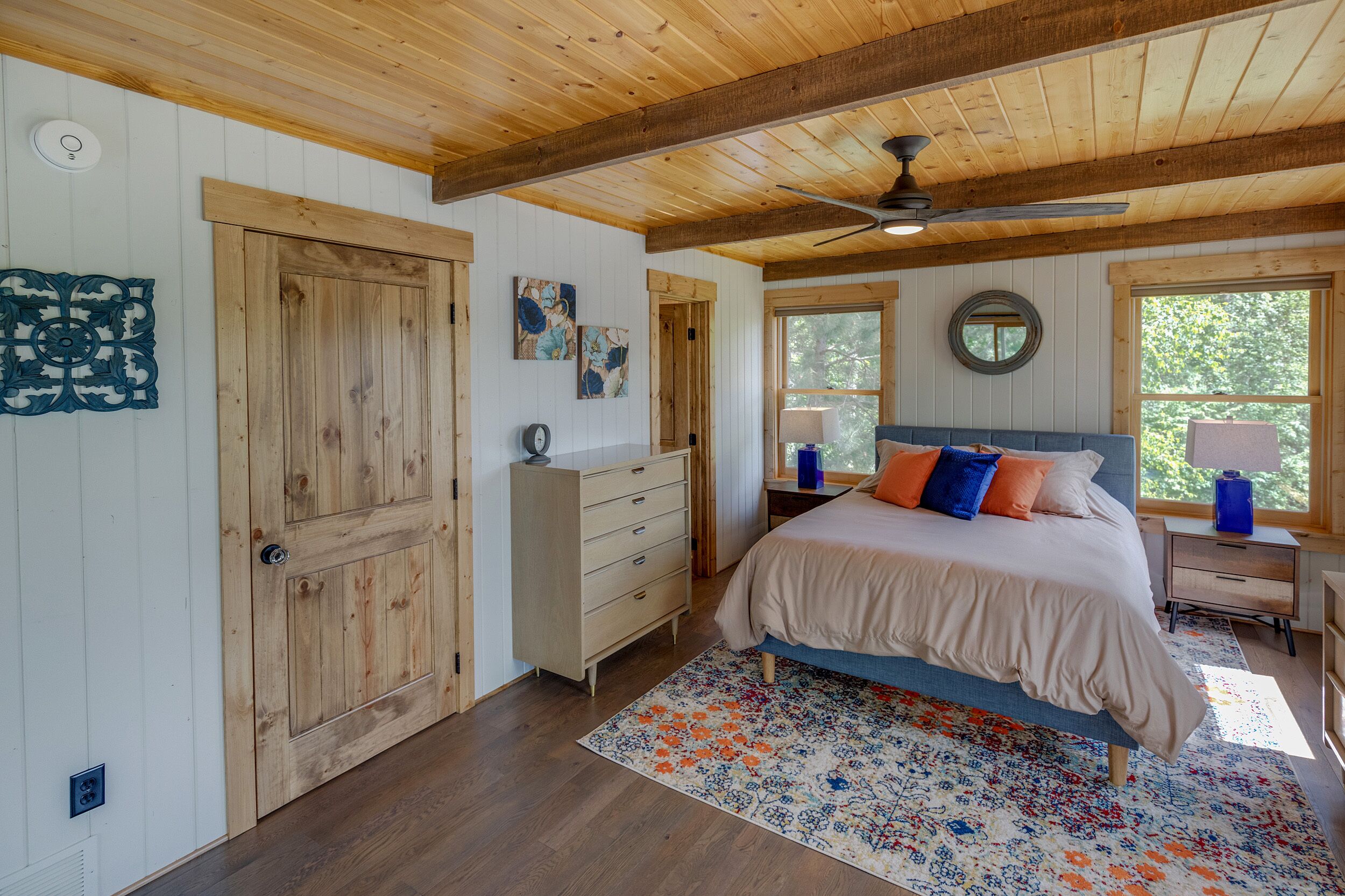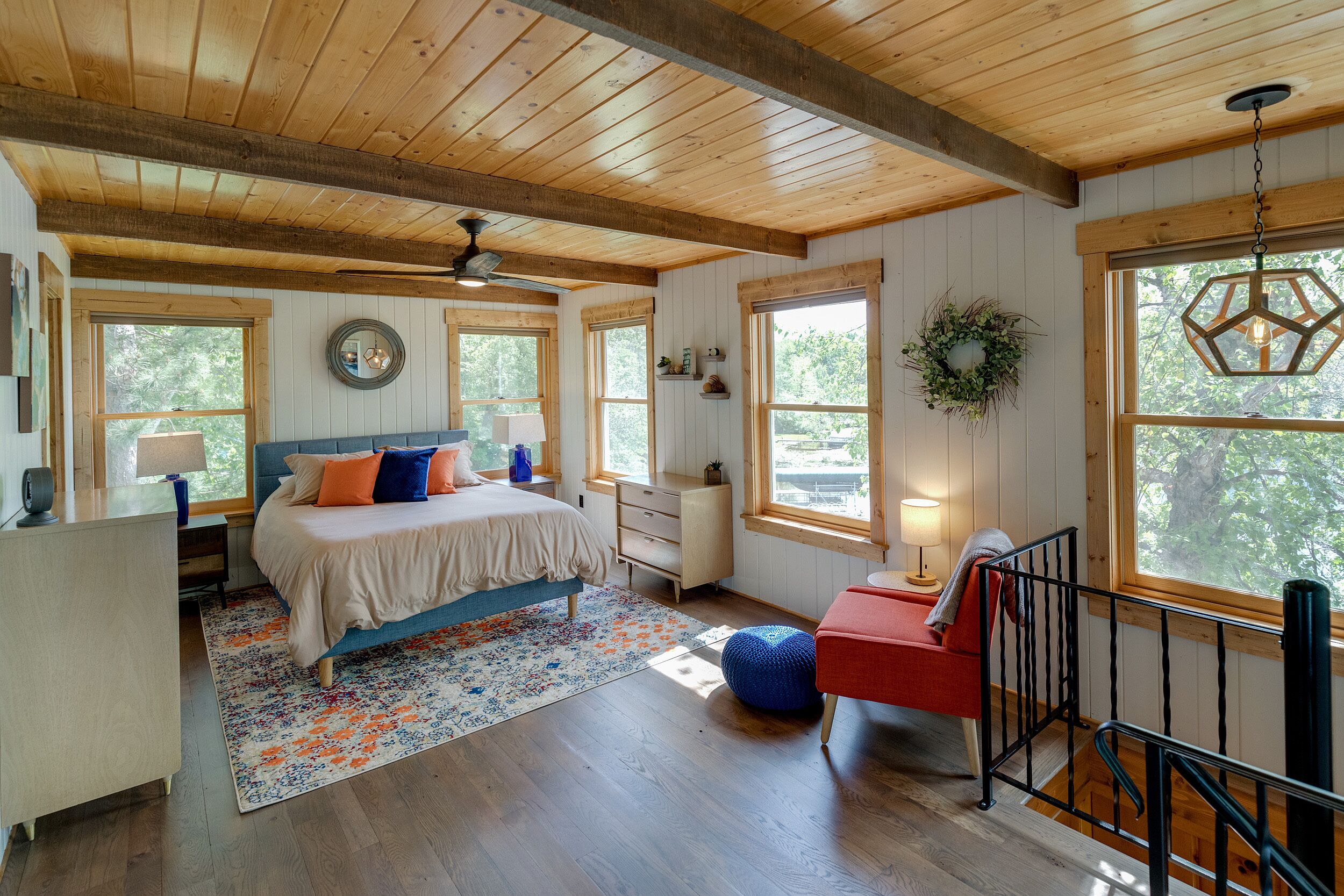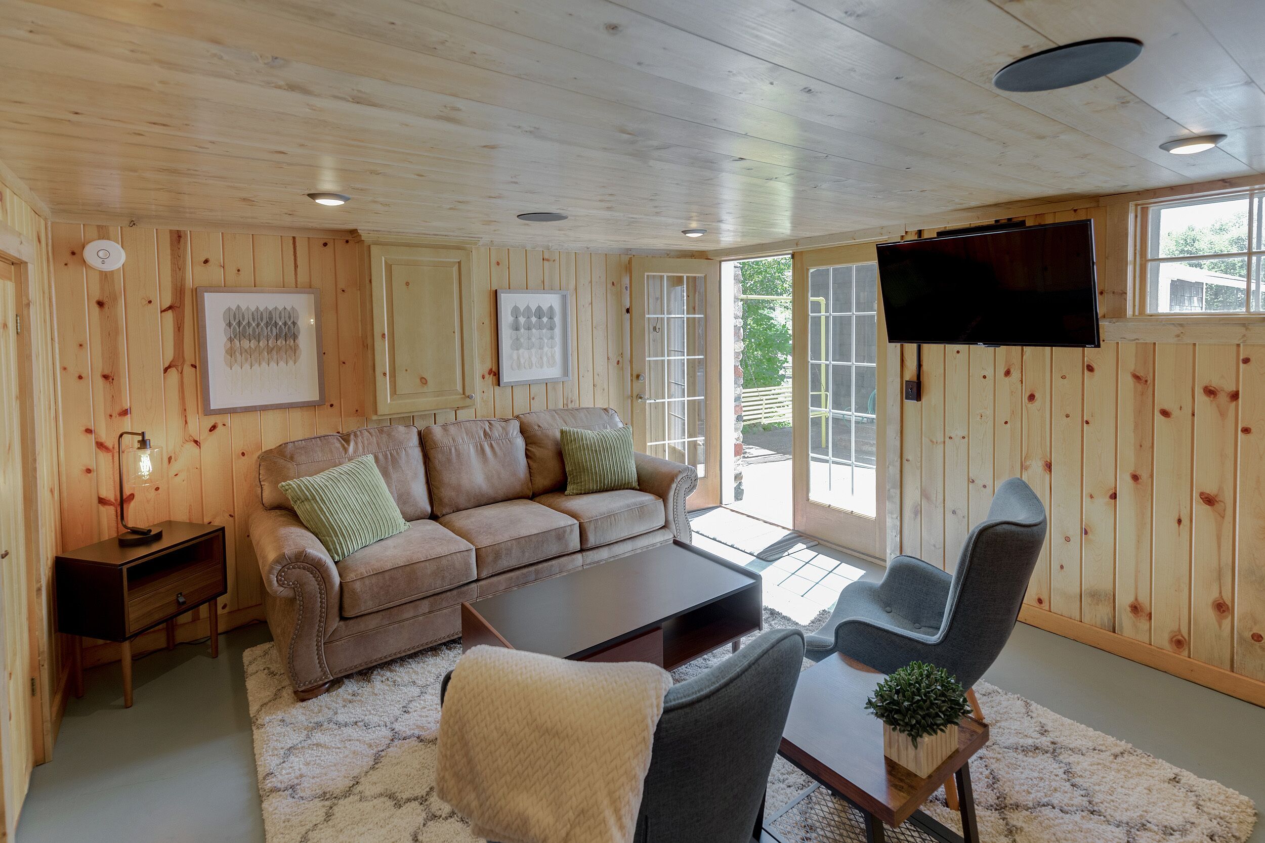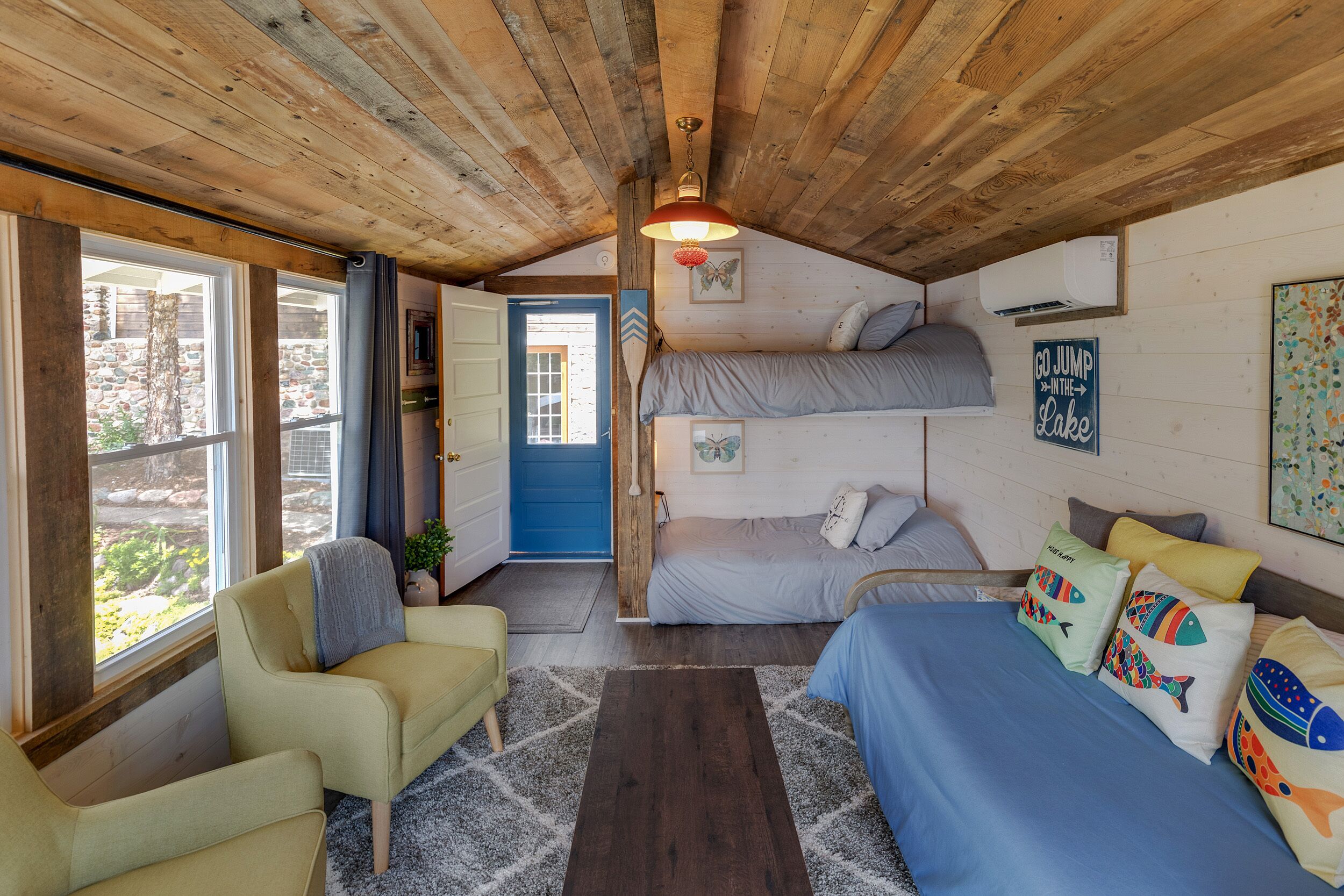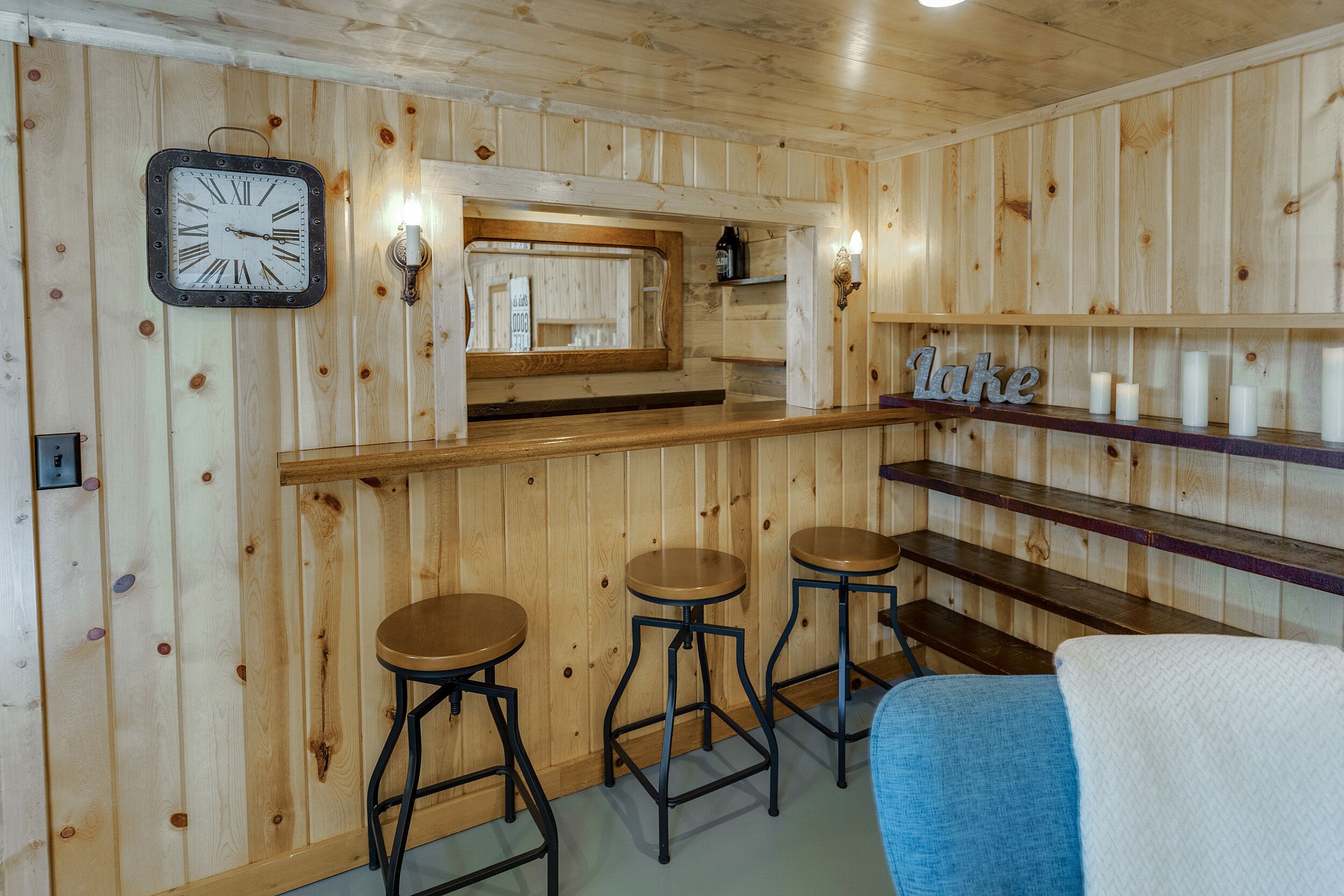 Quaint Cabin on Sibley Lake PONTOON INCLUDED thru mid-October. Look no further if a true Minnesota cabin experience is what you're after. Once you arrive, the path to the "Stairway to Heaven" will quickly make you realize why you made the trek Up North. This 1940’s cabin was fully renovated in the winter of 2018 and is essentially brand new inside and out, but the charm of the original cabin has been maintained and is evident throughout. You get the true cabin feel as you enter the main level which combines the family room and dining area for an open, yet cozy feel. The wood-burning fireplace on the main level will warm you up quickly on those cooler nights (firewood included). Enjoy meals at the dining room table or grab a book and snuggle up in front of the fireplace or on the built-in bench; all while overlooking Brown's Bay. This level also includes a custom-made Murphy bed that converts to a game table for chess and checkers matches. The quaint kitchen packs all of the amenities you could need, including stainless steel appliances along with a double-drawer beverage fridge. The main level also includes a full bathroom with a walk-in tiled shower and additional storage.The excitement builds as you head up the spiral stairs to the master bedroom, your expectations will most definitely be met as you feel on top of the world all while overlooking Sibley Lake from every angle. You can head out onto the balcony to enjoy a morning cup of coffee or an evening glass of wine and take in amazing sunset views. The master bathroom has been fully remodeled to include a farmhouse sink, walk-in tiled shower with glass doors and jetted sprays. You will not want to get out of bed in the morning as you will wake up and want to take in all of the beauty that surrounds this room.As you head back down the spiral staircase, you will then head outside down the exterior staircase into the lower level of the house where you will find Bob’s bar, a perfect spot to hang out with your friends and family or sit and relax and enjoy a movie or game on the flat screen TV. This room also has a leather couch that pulls out into a queen-size bed to allow for additional sleeping space.As you head out of the lower level you will walk across the patio to the upper boat house. This will likely be the kids or maybe the parents favorite place to hang out as it will feel like their little getaway space. The boathouse has built-in bunk beds, along with a day bed for comfortable sleeping. You will feel like you are sleeping on the water as the boathouse is situated just steps away from the lakeshore. As you head out of the cabin, you are just steps away from the dock that is perfect for fishing, swimming, and relaxing. Head out for a cruise around the lake or to the sand bar on the 2019 Sylvan fish and cruise pontoon (rental of cabin includes the pontoon boat). Everyone loves a good campfire and s'mores, so the shoreline also boasts a firepit and Adirondack chairs to enjoy the fire and the lake views on those beautiful Minnesota summer evenings. Finally, the cedar sauna house and patio are a perfect place to begin or end your day. With beautiful views of Sibley Lake, relax and enjoy some quiet time away from all the hustle and bustle. For those that like to stay connected or to not miss the Wild, Twins, Vikings, United, or T-Wolves games, both the main and lower-level bar have high-definition TV’s with DirectTV or streaming with free fast Wi-Fi. This property is perfect for a family, or an extended family, or a couple’s getaway. Upon reservation confirmation you will receive a complete list of what to bring, so you are prepared for your time at the lake. Please feel free to inquire with any questions you may have and will promptly reply. We pride ourselves on maintaining our property and keep it in excellent condition, we are certain we will exceed your expectations in this regard. Since we also live across the lake from the cabin, should any questions or issues arise we can respond quickly.NOTE: There are a number of stairs on the property as you will see in the photos. We purchased the cabin from folks in their 90’s so we believe these stairs keep you young. There is a tram conveniently located to help bring supplies and luggage up and down and is available for use spring, summer, and fall (not winter due to snow). The tram is NOT available to transport people. NOTE: The pontoon is in the water, and use is included in the stated rental rates, from approximately mid-May to mid-October.NOTE: The main cabin includes a central air heating and cooling system. The bunkhouse includes a ductless split that provides both heat and cooling.