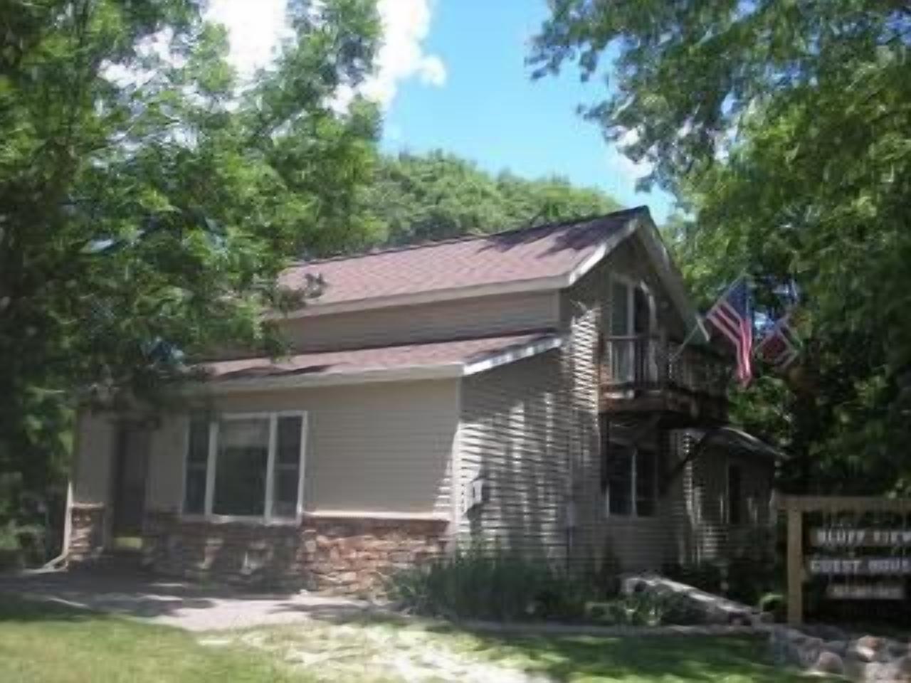 Bluff View Guest House This modern rental home provides privacy and comfort, with central air and fans. It includes two bedrooms, one with a queen bed and the other with two twin beds, along with a large great room, with a queen size memory foam mattress and a gas fireplace, plus a complete kitchen with dishes and dishwasher. The master bedroom has a walkout balcony; and, there's a 12'X20' deck,...