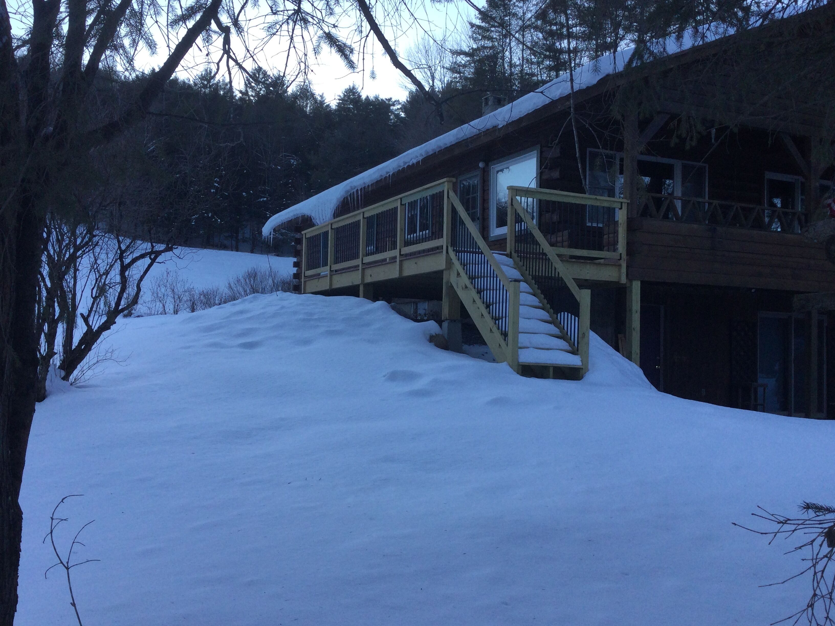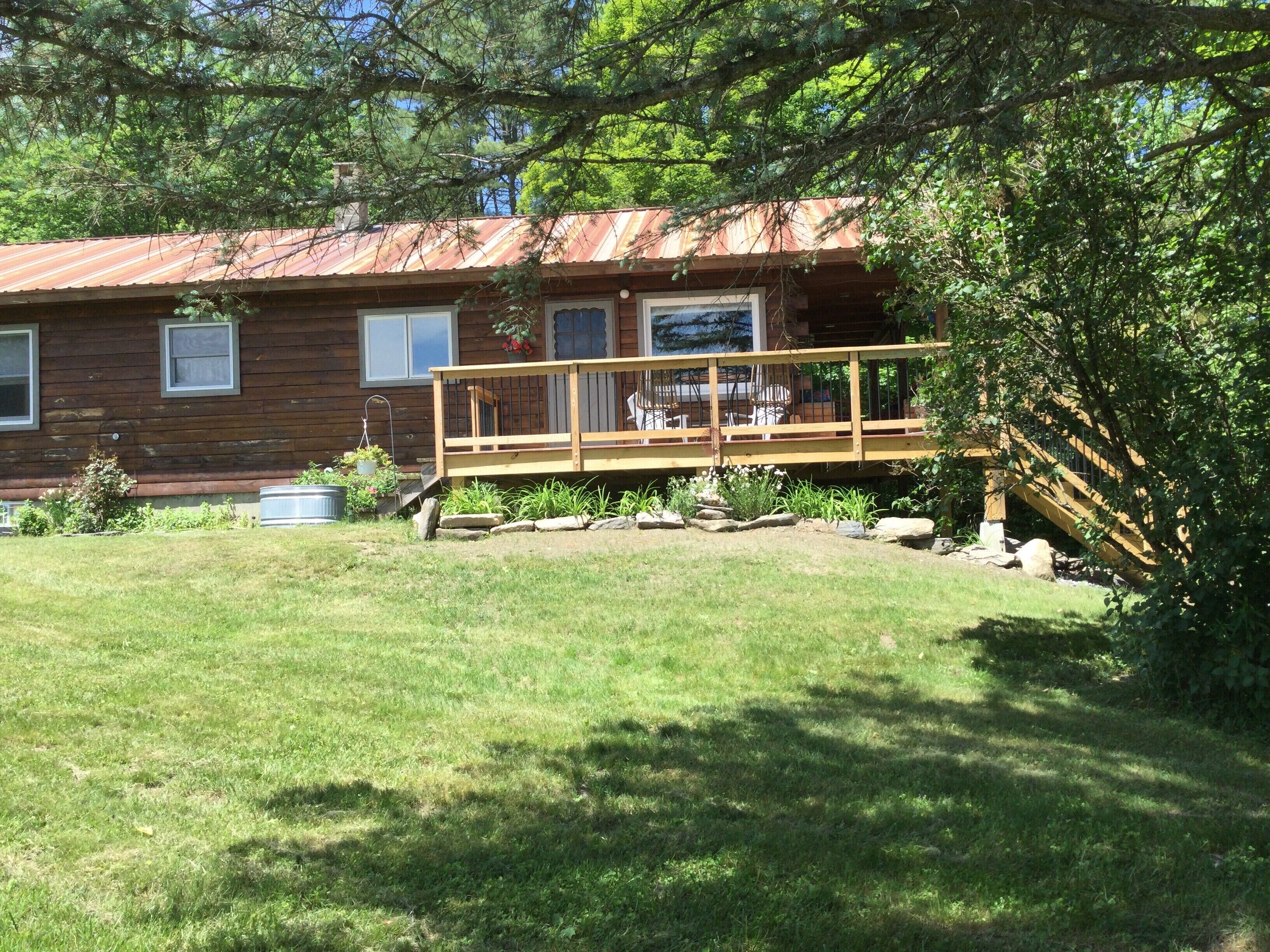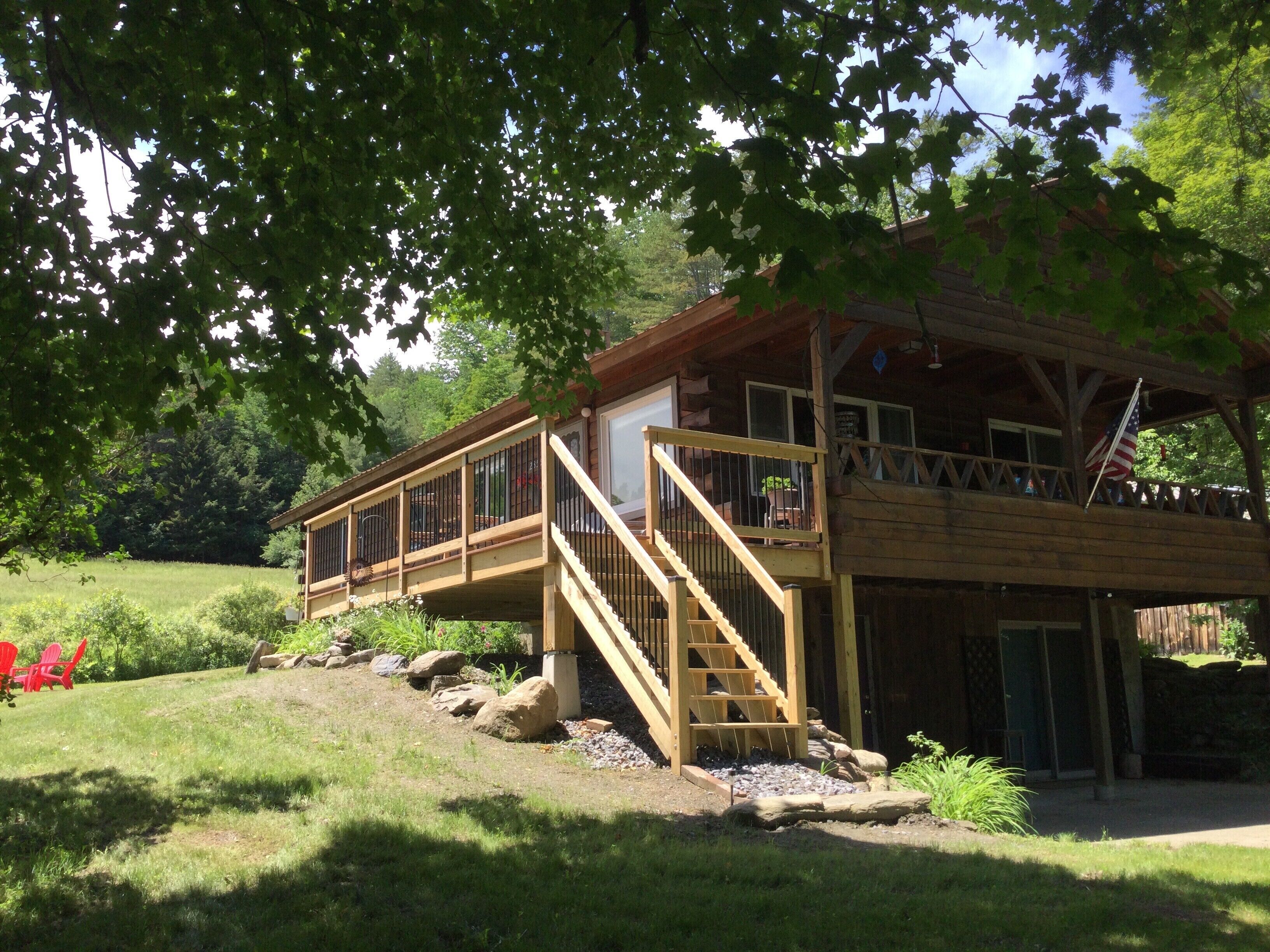 Log cabin located in a quiet hollow in central VT Our cabin has a good sized covered porch to enjoy the outdoors yet be protected from the weather. It also has a great open deck to enjoy meals, star gazing and our spectacular fire fly display while sipping your beverage of choice. Open concept design helps guest enjoy there time together. Bedrooms are good sized quiet and comfy. Bathroom is roomy...