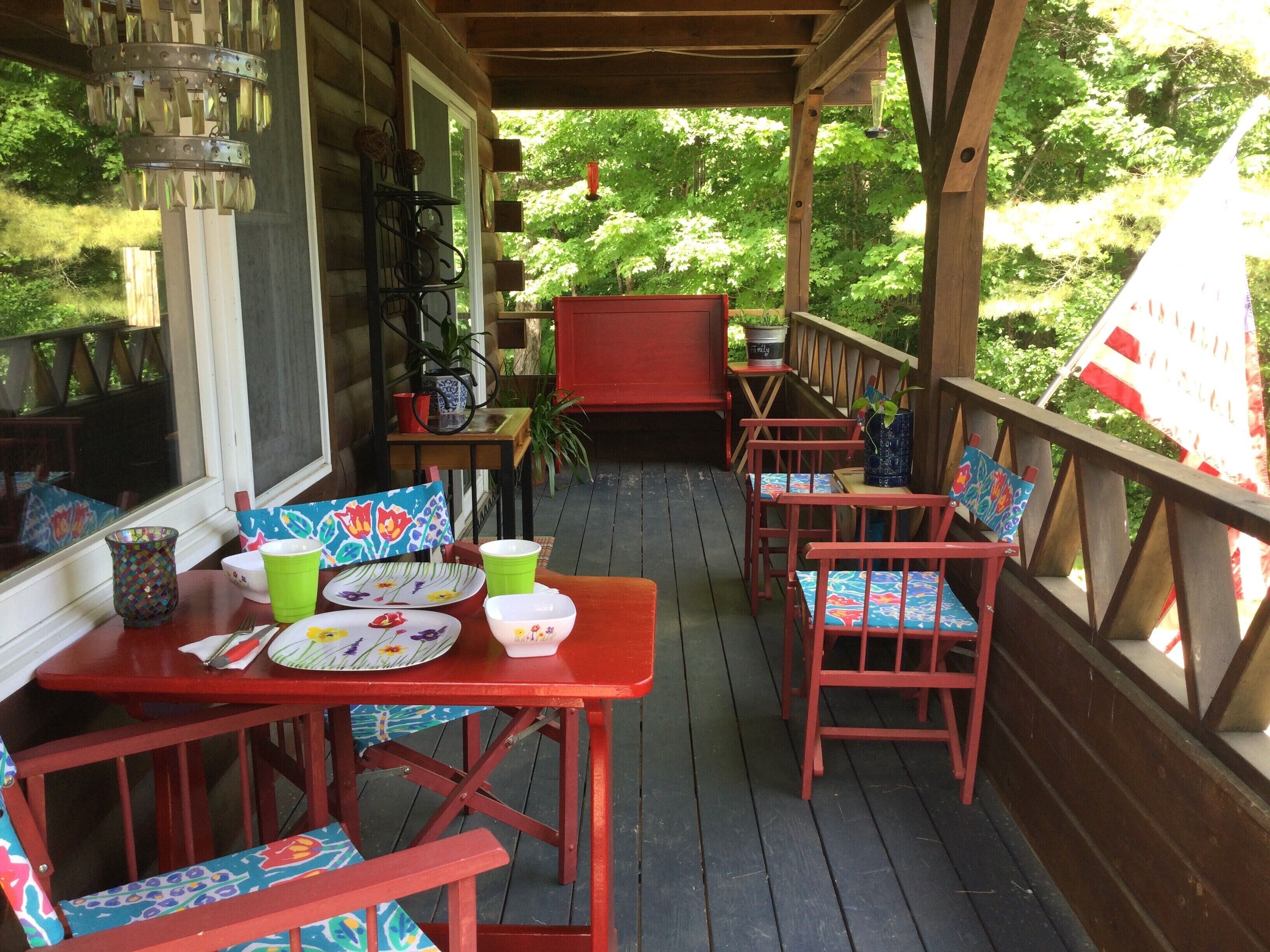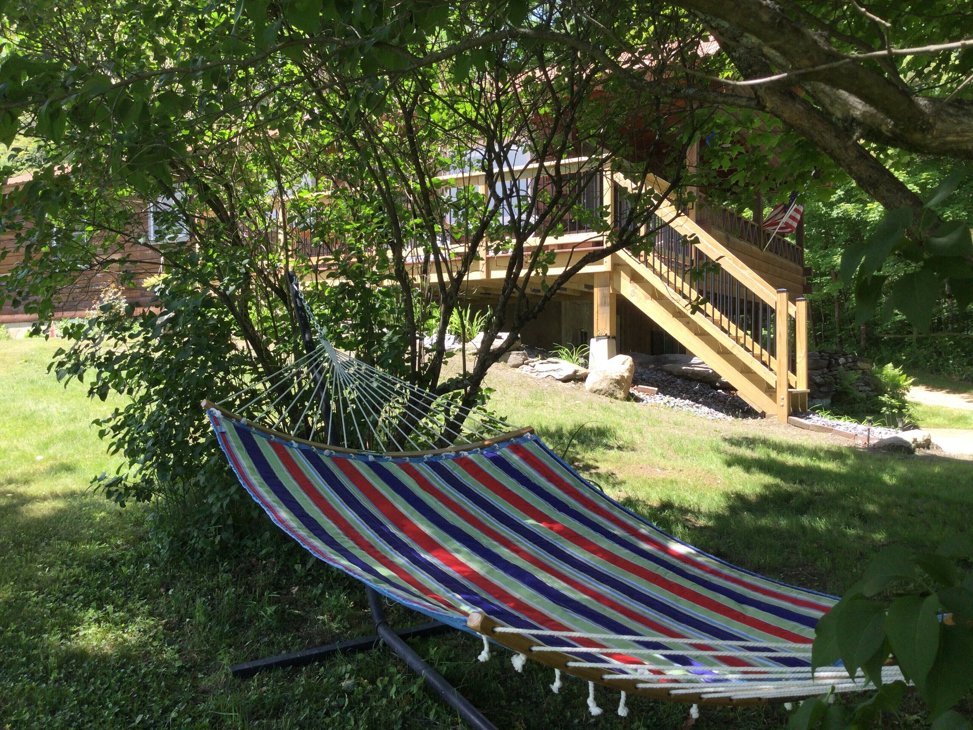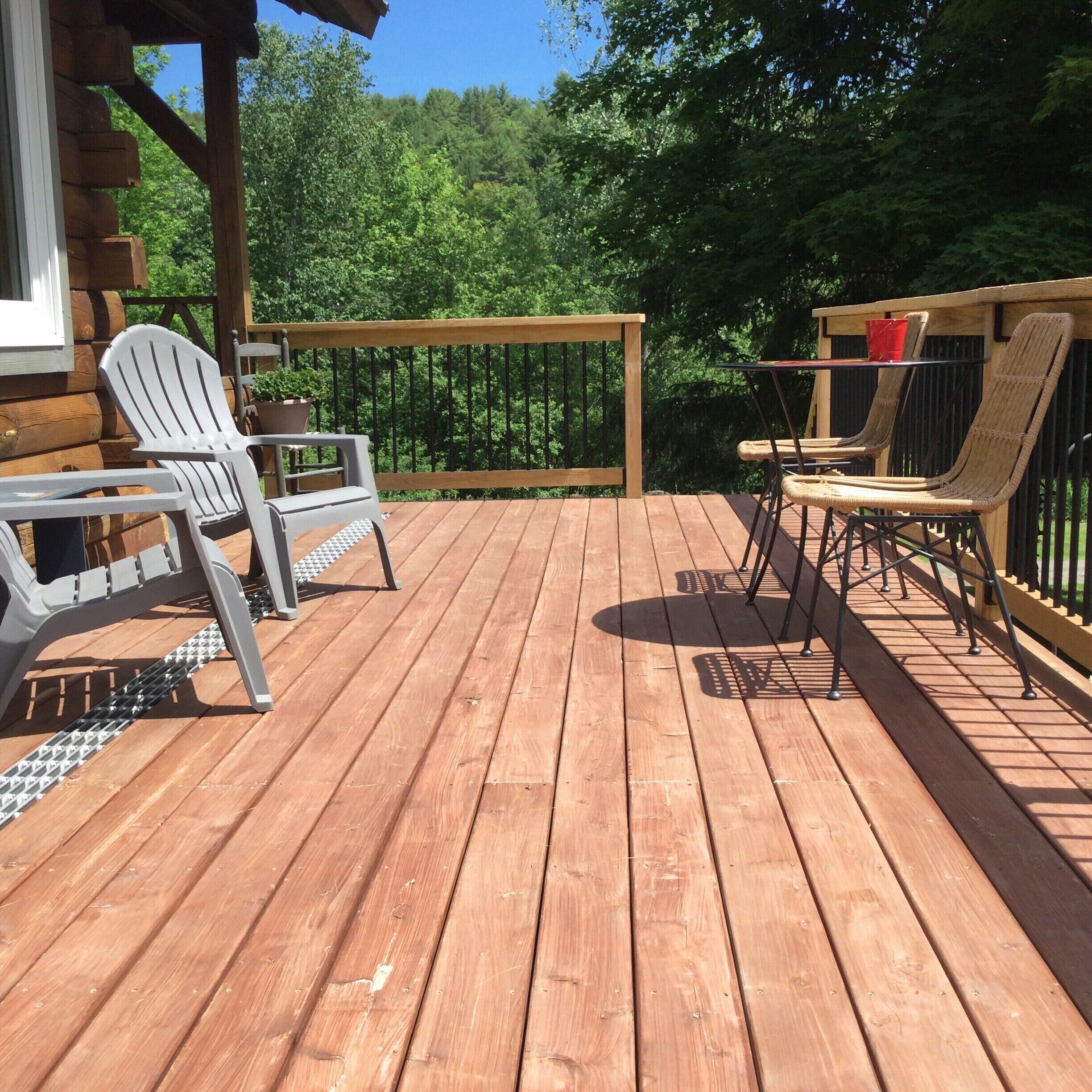 Log cabin located in a quiet hollow in central VT Our cabin has a good sized covered porch to enjoy the outdoors yet be protected from the weather. It also has a great open deck to enjoy meals, star gazing and our spectacular fire fly display while sipping your beverage of choice. Open concept design helps guest enjoy there time together. Bedrooms are good sized quiet and comfy. Bathroom is roomy...