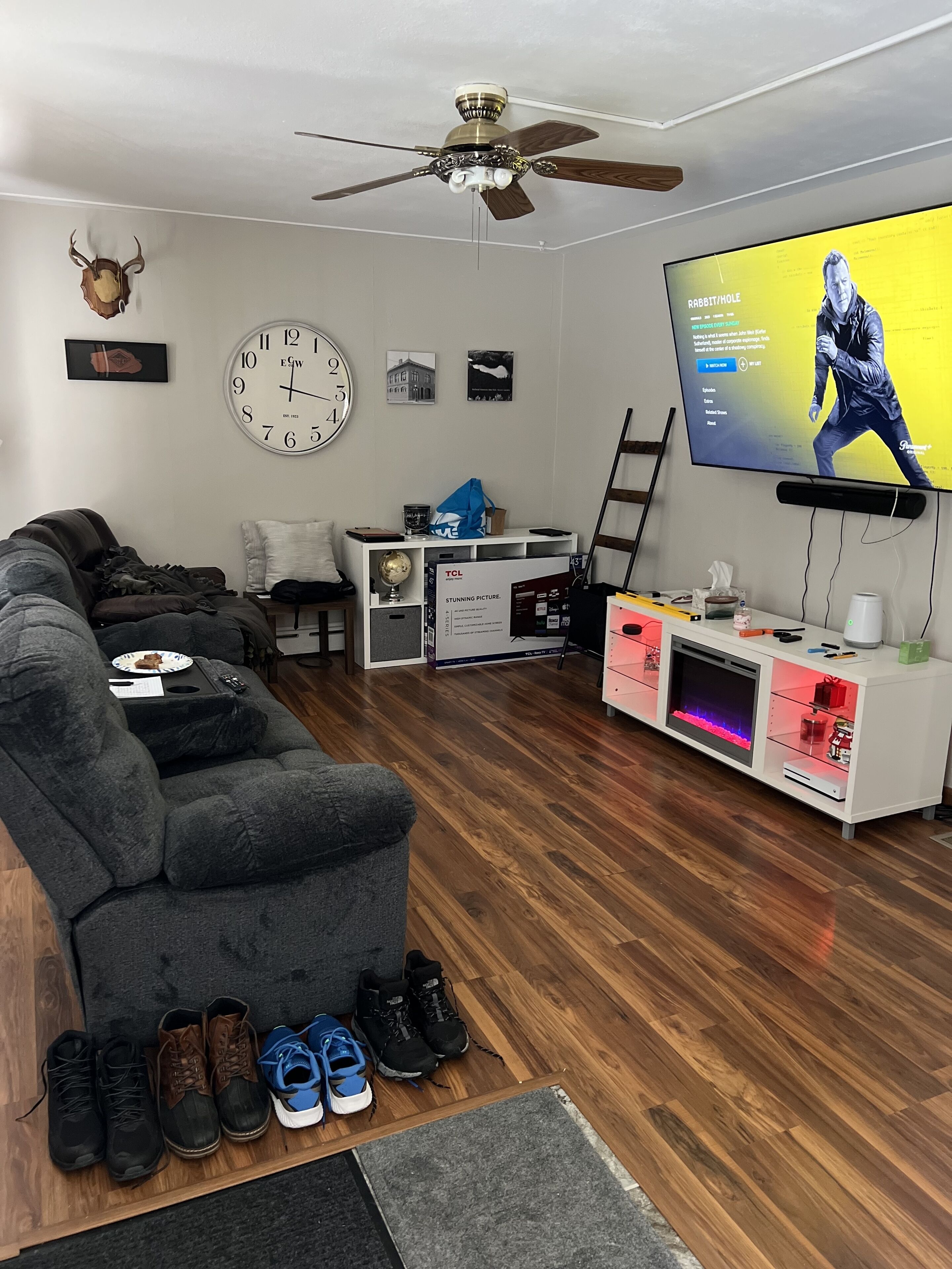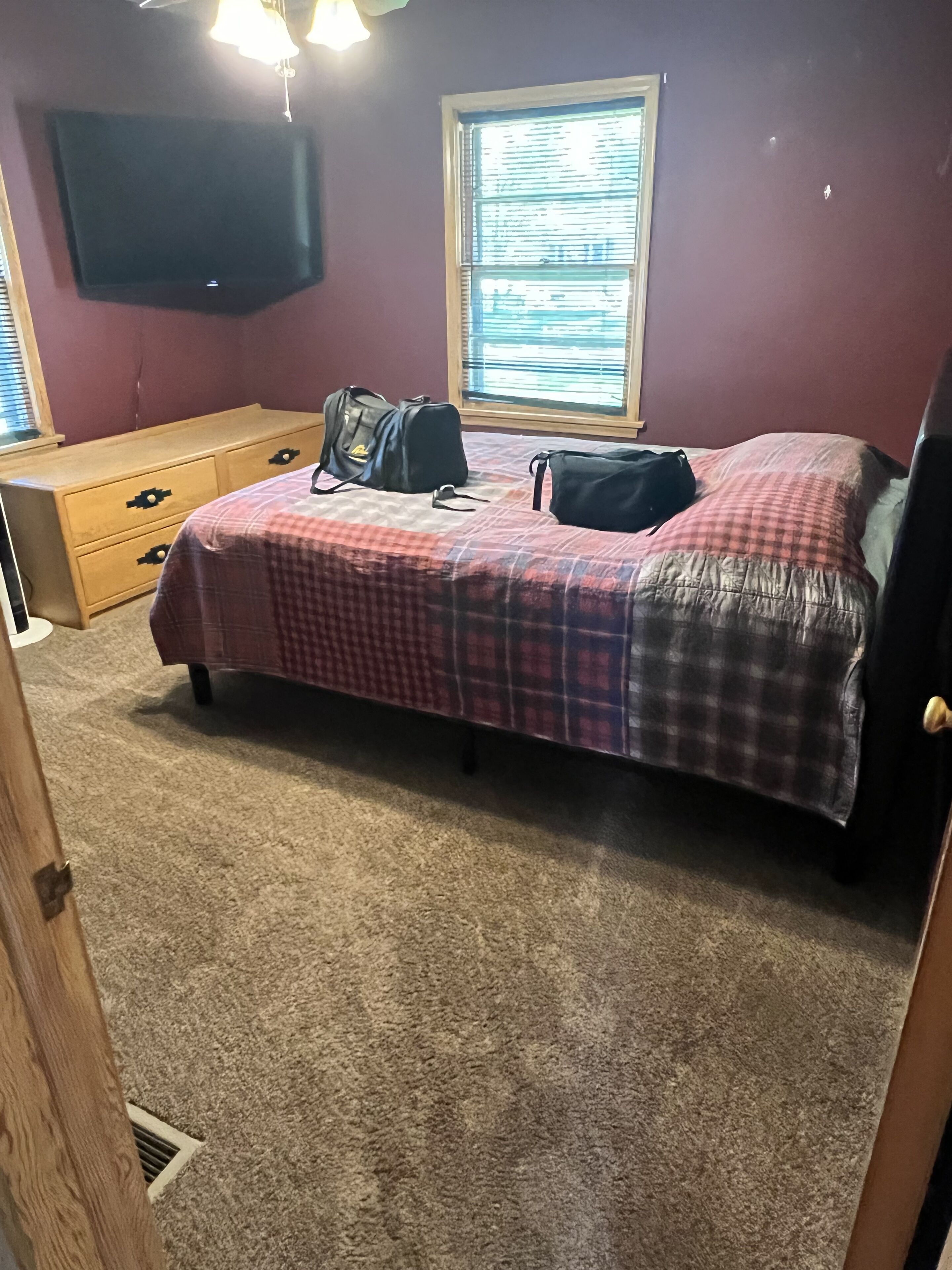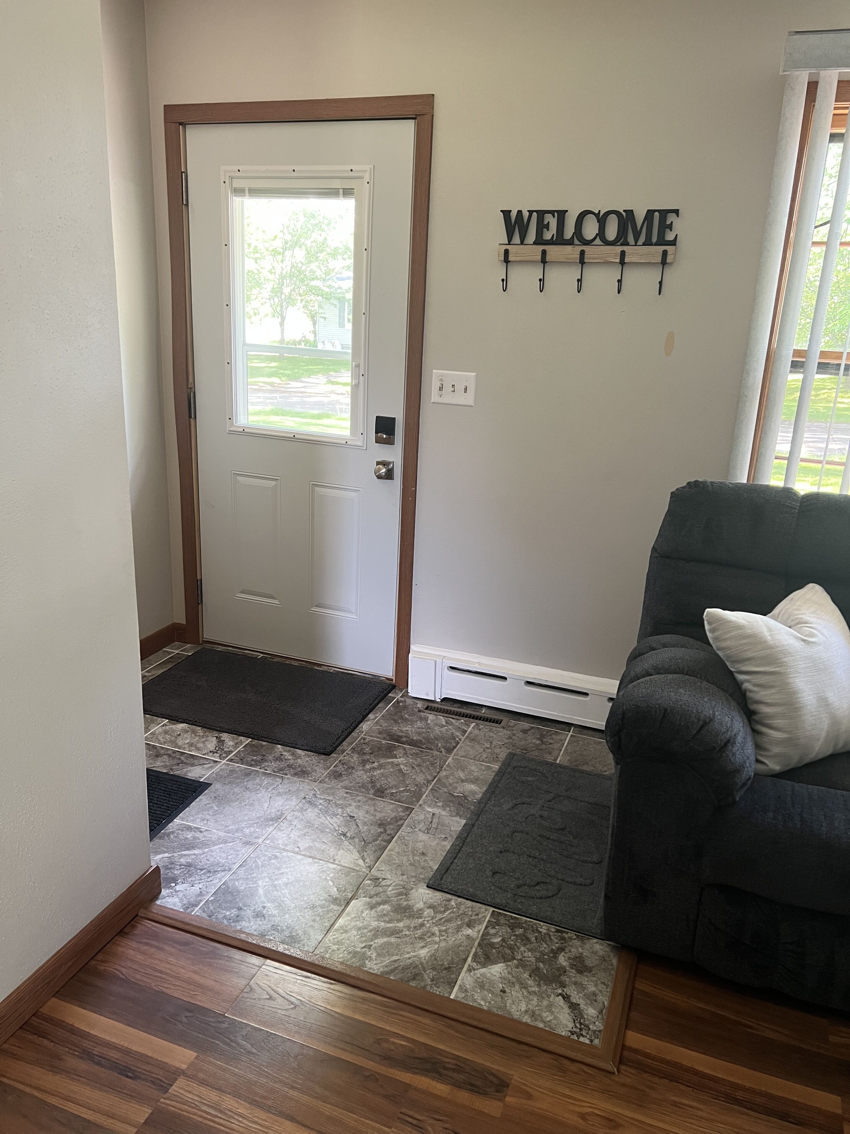 Comfy Residential And Freshly Updated Home on the Edge of Town! Relax with the whole family at this peaceful place to stay. 2-bedroom residential home in quiet neighborhood on the edge of town. Full upstairs bedroom, downstairs bedroom, bathroom on main floor and in basement. Living room with flat screen TV, couch, recliner, office room, kitchen, basement with full access to laundry, central air, full backyard with fire pit, attached garage, full front yard.The house has had many updates including new TV’s in living room and garage, fully finished garage with bar, fully accessible 2-person sauna, shower, and toilet in the basement. The basement floors are also painted and completed. I also have my home professionally cleaned and that is why you see the cleaning fee.
