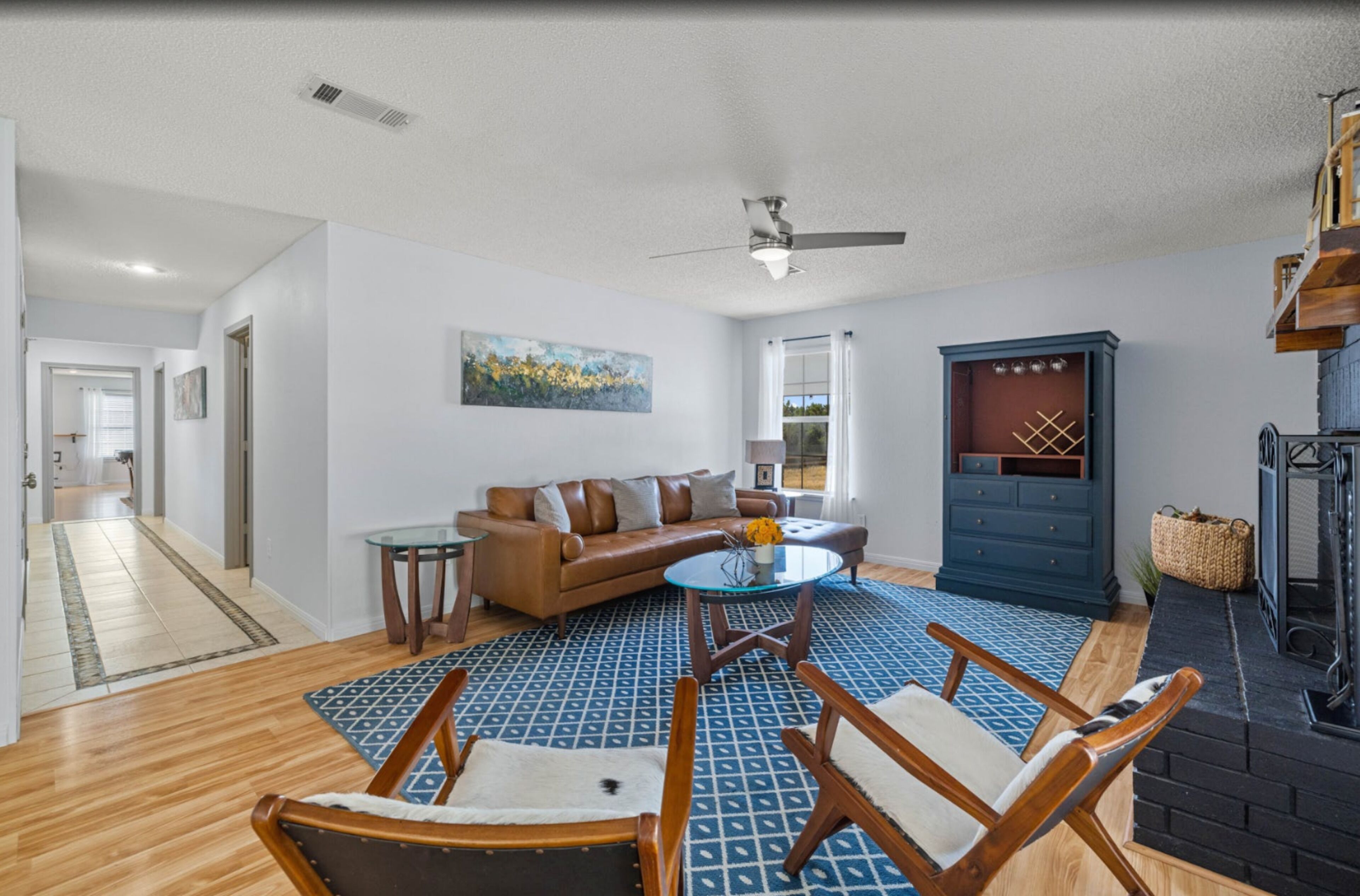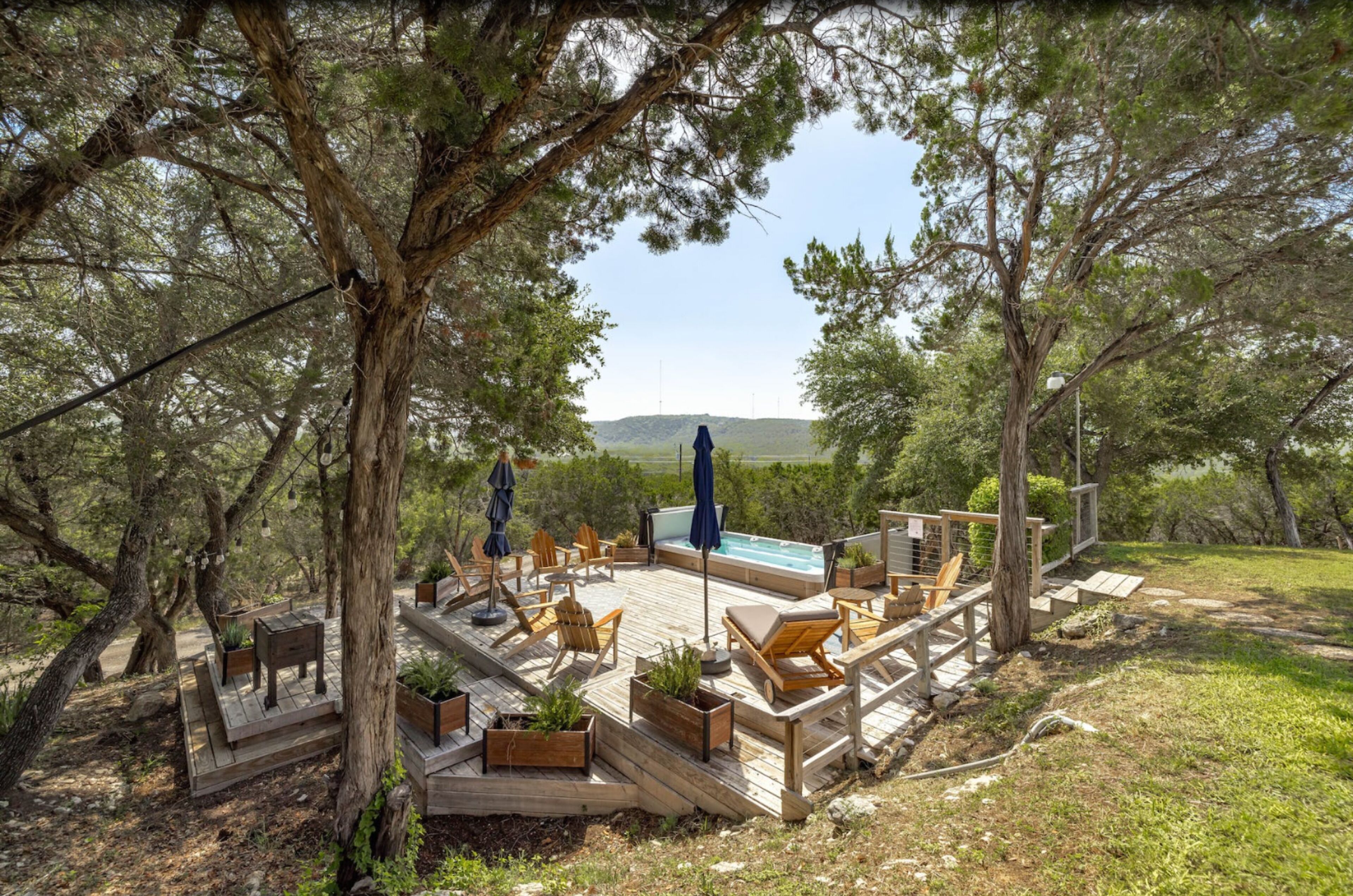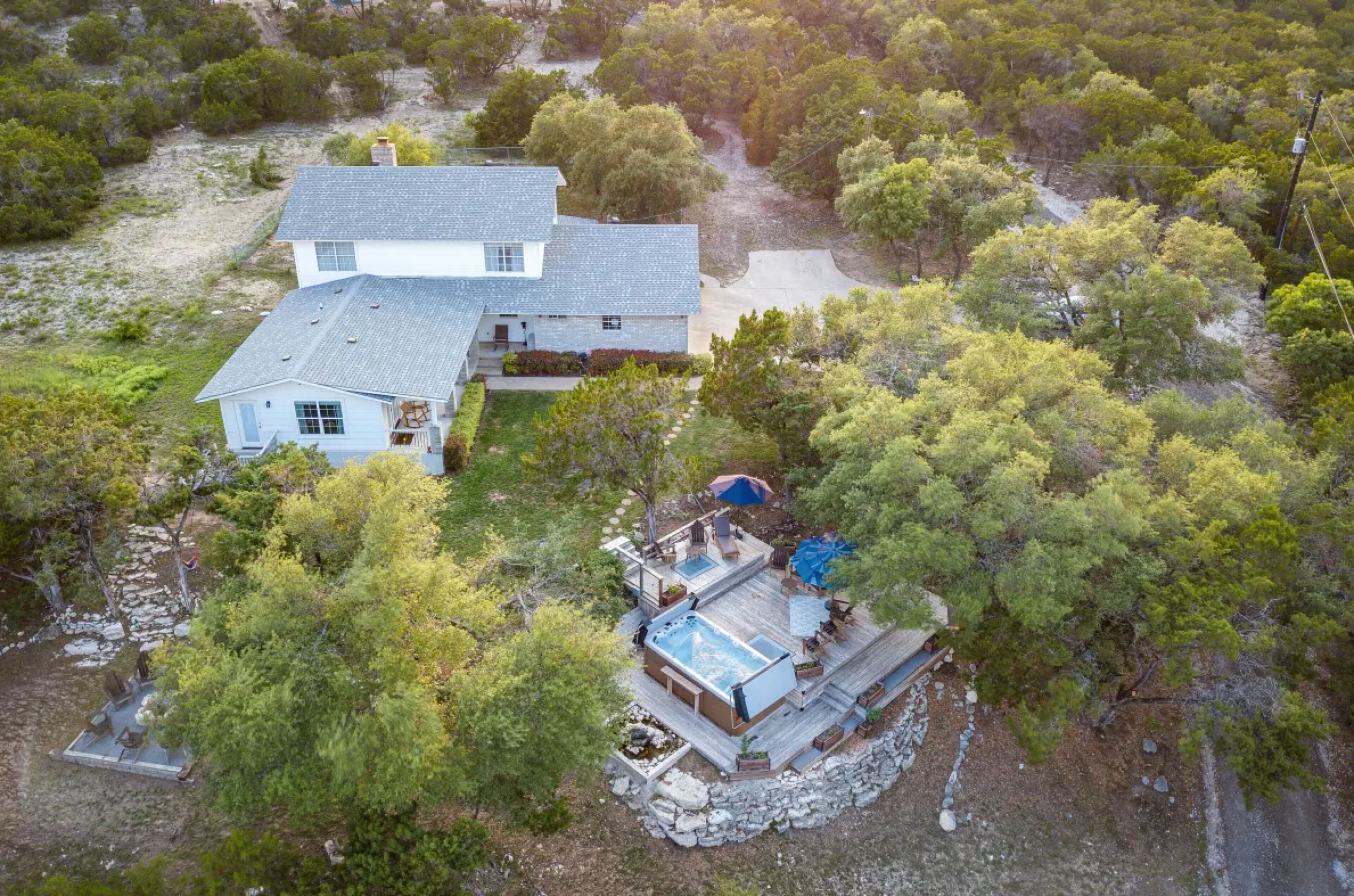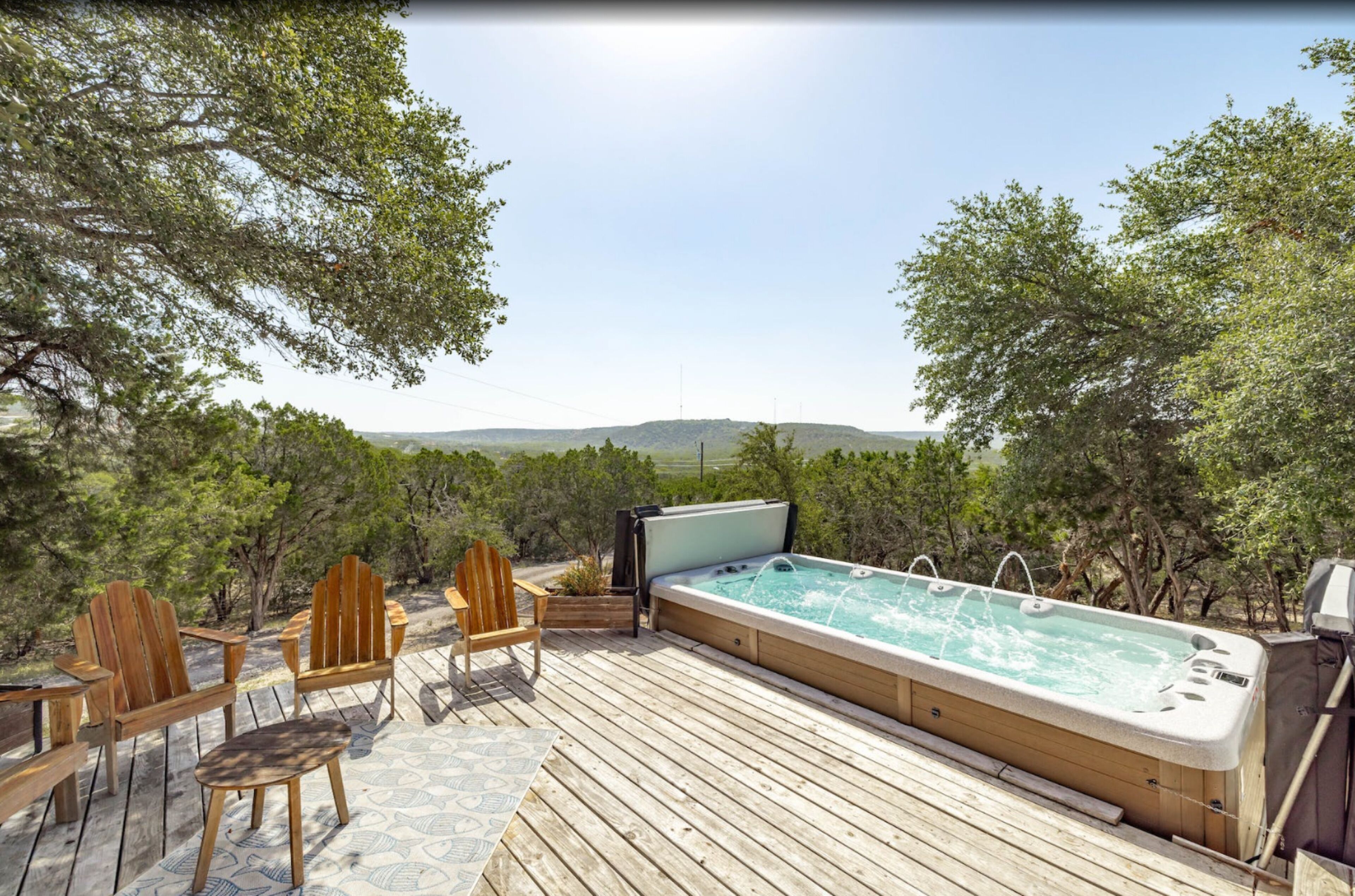 Surrounded by hills + xll spa + pool table + game room + two master rooms You're sure to fall in love with the Texas Hill Country's breathtaking scenery, abundant wildlife, and star-speckled nights when you stay at 'Falcon's Nest,’ a 4-bedroom, 3-bathroom vacation rental! Located on an 8-acre property, this 2-story house sits near the Colorado River and features a game room, modern furnishings, and a swim spa that overlooks the scenic landscape. This getaway is ideal for gathering with your loved ones and creating memories to share for years to come.The space8-Acre Property | Game Room | 2,800 sq ftBedroom 1: King Bed | Bedroom 2: King Bed, Full Bed | Bedroom 3: Full Bed | Bedroom 4: 2 Full Beds w/ Twin Trundle BedsBIRDWATCH: Peregrine Falcons, Prairie Falcons, Red-Tailed Hawks, Golden Eagles, Great Horned Owls, Barred OwlsOUTDOOR LIVING: Furnished deck w/ 10-person swim spa, bistro lighting, sun umbrella & views, front yard w/ picnic table, charcoal grill, 3 hammocks, tree swing chair, fire pit & seating, 2 covered patios w/ seating & rocking chairs, fenced backyard, basketball hoopINDOOR LIVING: 2 living areas, wood-burning fireplace, Smart TV, exercise bike, pool table & dartboard, dining table, modern furnishingsKITCHEN: Stainless steel appliances, dishwasher, fridge, oven, 4-burner stovetop, microwave, breakfast bar w/ seating, blender, Keurig coffee maker, tea kettle, toaster, cooking basics, dishware & flatwareGENERAL: Free WiFi (100 Mbps), keyless entry, central heating & A/C, washer/dryer, linens/towels, complimentary toiletries, beach chairs/towels, laundry detergent, trash bags & paper towelsFAQ: Stairs required to access, 4 exterior security cameras (facing out), other rental on-sitePARKING: Driveway (5 vehicles)PROPERTY: There are two completely separated homes on the 8 acres. Each with its own swim spa and exterior space. they are 250 feet away from each other.Guest accessYour host will provide app links to the gate and door.Other things to noteThis property has been listed for one year through a third-party site which doesn't allow us to 'take' our 5-star reviews when suspending the membership. You can see some of the reviews in the photos.