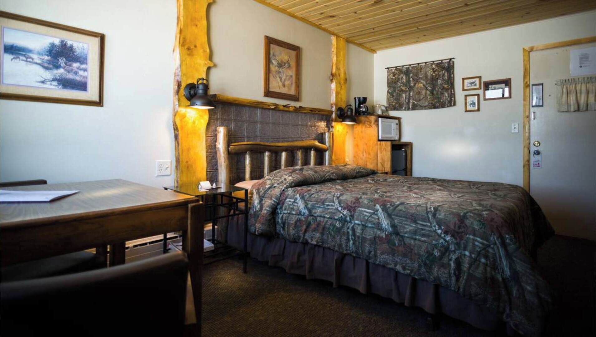 Relax and overlook the lake in Room 7 - The Buckhorn - Curriers Lakeview Lodge Guests who have visited us were related to Otto Rindlisbacher who owned a local watering hole and tourist attraction called the Buckhorn. It was filled with hunting and logging memorabilia. Deer visit the property.In the summer, come relax on our private swimming area or take one of the complimentary paddle boats, canoe...