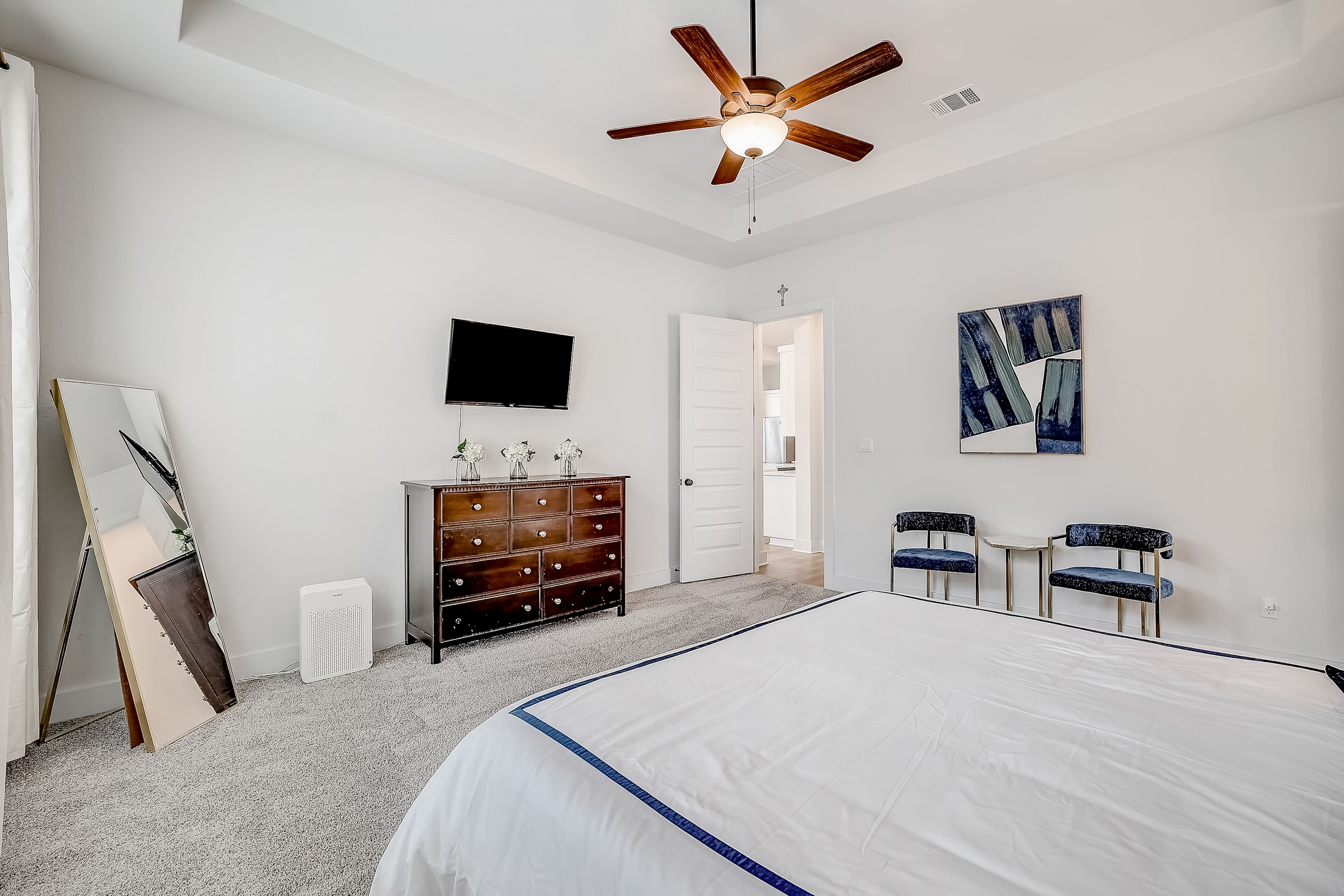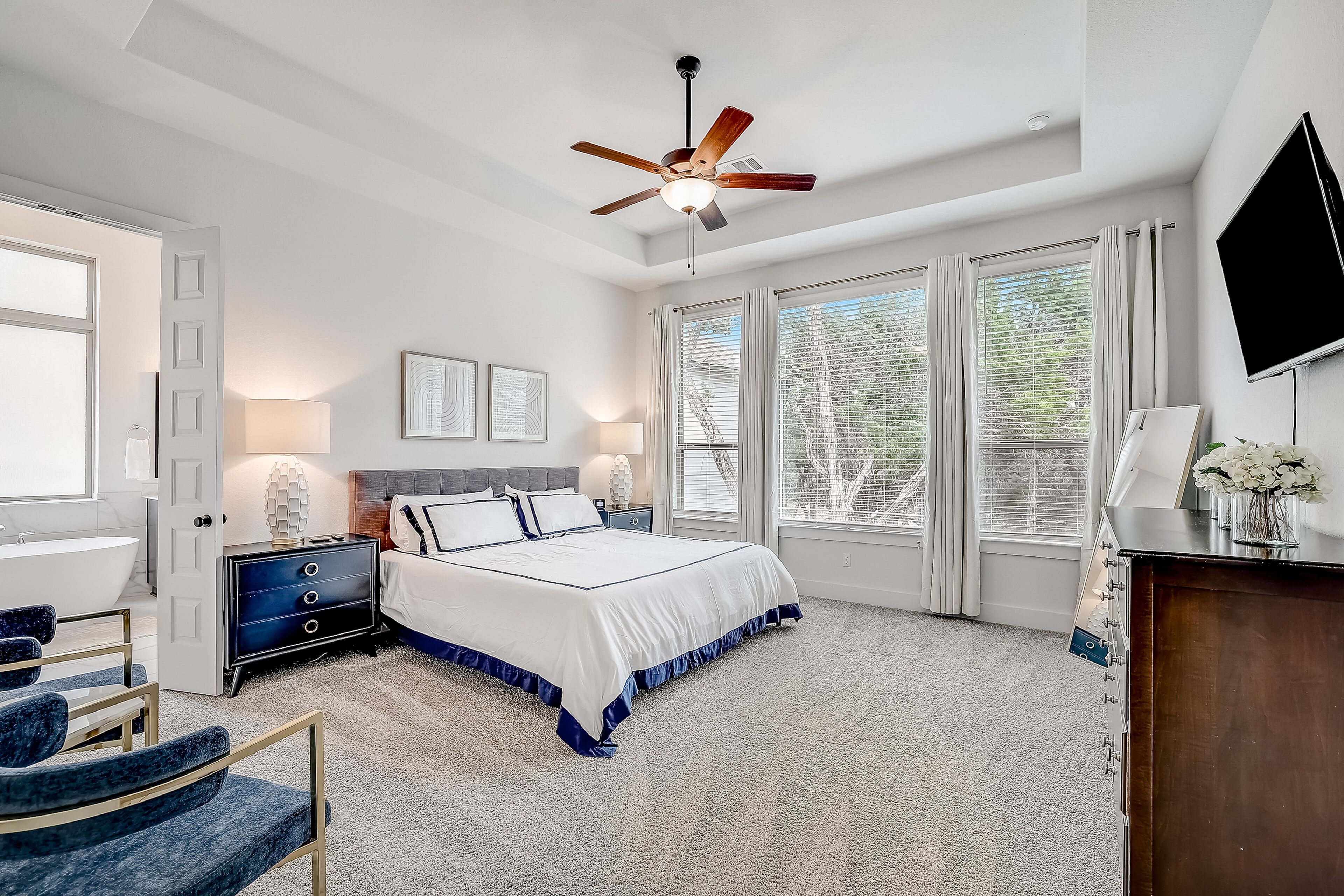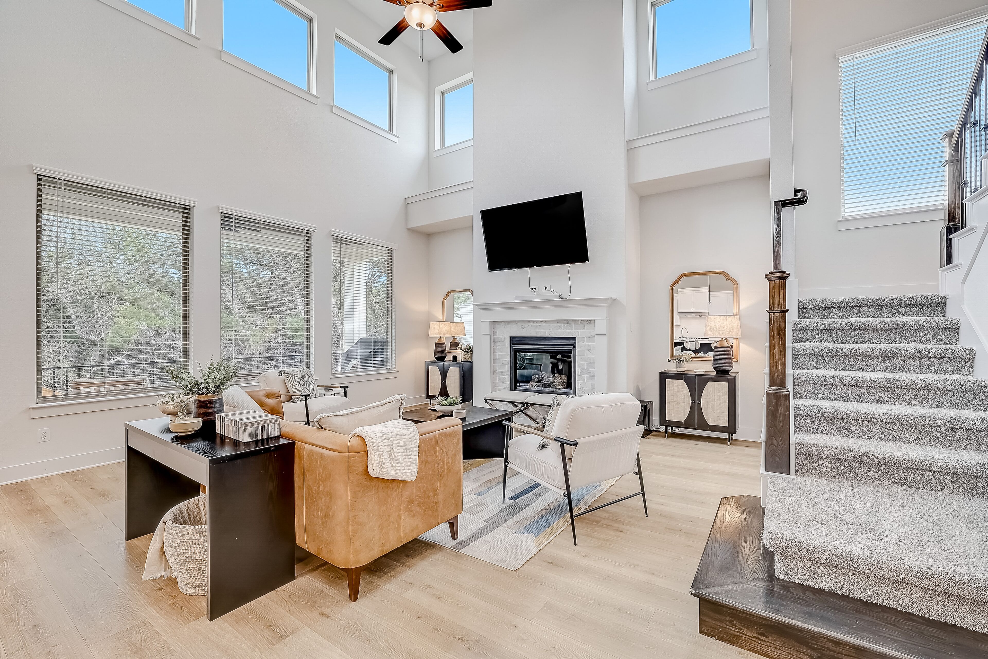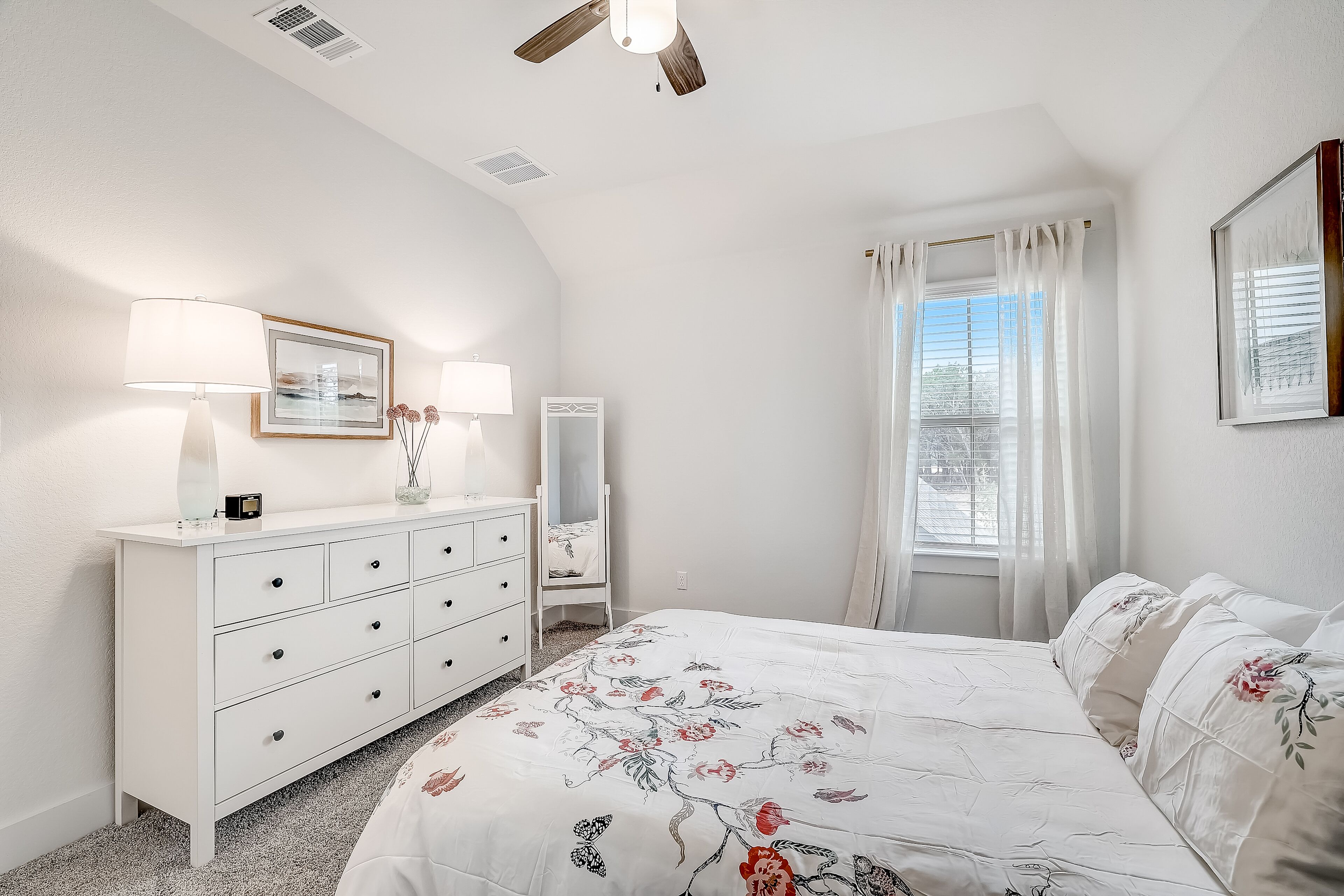 Inviting 2-story home near the water with grill, patio, streaming, books, AC Perfect DestinationOur calendar is updated in real-time & our nightly rates are accurately displayed. Simply enter your desired dates and click 'Book Now!'Come and create everlasting memories with your loved ones at this two-story home in Jonestown, Texas. Get ready to embrace the tranquillity of country living while residing in a family-friendly haven near Devil's Cove and the Colorado River. The charming city of Lago Vista is within four miles of your home, boasting great dining options, markets, boat ramps, and marinas.When you book this darling home, you are also granted access to the community's two outdoor pools where you can take a refreshing dip, and playgrounds. There is also a nearby lake where you can swim.This home boasts two levels full of comfort and great amenities, providing you all with a fantastic spot to call 'home' while on vacation. Enjoy tranquil evenings sitting on your patio or grilling delicious treats using the gas BBQ. On cooler evenings, curl up indoors with a good book, indulge in a couple of rounds of board games, or turn on the streaming-enabled TV for a movie marathon. Not to mention, there's a fully-equipped kitchen complete with a coffee maker so you can whip up appetizing breakfasts or enjoy late-night snacks. As a plus, the kitchen features all stainless steel appliances and a built-in double oven. Meanwhile, a private washer/dryer keeps things tidy and comfortable, and for temperature control, there's central AC. Working or studying remotely is now a reality with the designated office, furnished with a gorgeous corner desk and a desk chair.The splendid main suite is on the first level and boasts a smart TV and an en suite bathroom with a walk-in shower, two vanities, and a stylish soaking tub. From here, you also have access to a spacious walk-in closet. There is a second bedroom with an en suite bathroom on this level as well. Upstairs you can find two additional bedrooms and a private, lofted living area with inviting furniture, a smart TV, and a chessboard.COMMUNITY AMENITIES-Two outdoor pools-PlaygroundsTHINGS TO KNOWDrought conditions will affect the water levels for this property so please know that the pictures in the listing may not reflect the true level of water during your stay. We are not able to give refunds or cancellations due to low water levels.If you are bringing a dog on your trip, the pet fee is already included in your quote when selecting ‘Yes’ to pets. No more dogs are allowed.Parking notes: There is free parking available for 3 vehicles.Security camera details: ring doorbellDamage waiver: The total cost of your reservation for this Property includes a nightly damage waiver fee, plus tax if applicable (the “Damage Waiver”). (A discount may be applied for stays of 28 nights or longer, if permitted.) The Damage Waiver covers you for up to $3,000 of accidental damage to the Property or its contents (such as furniture, fixtures, and appliances) as long as you report the incident to the host prior to checking out. The Damage Waiver fee eliminates the need for a traditional security deposit.More information can be downloaded from the "Rental Agreement" on the checkout page.Due to local laws or HOA requirements, guests must be at least 25 years of age to book. Guests under 25 must be accompanied by a parent or legal guardian for the duration of the reservation.