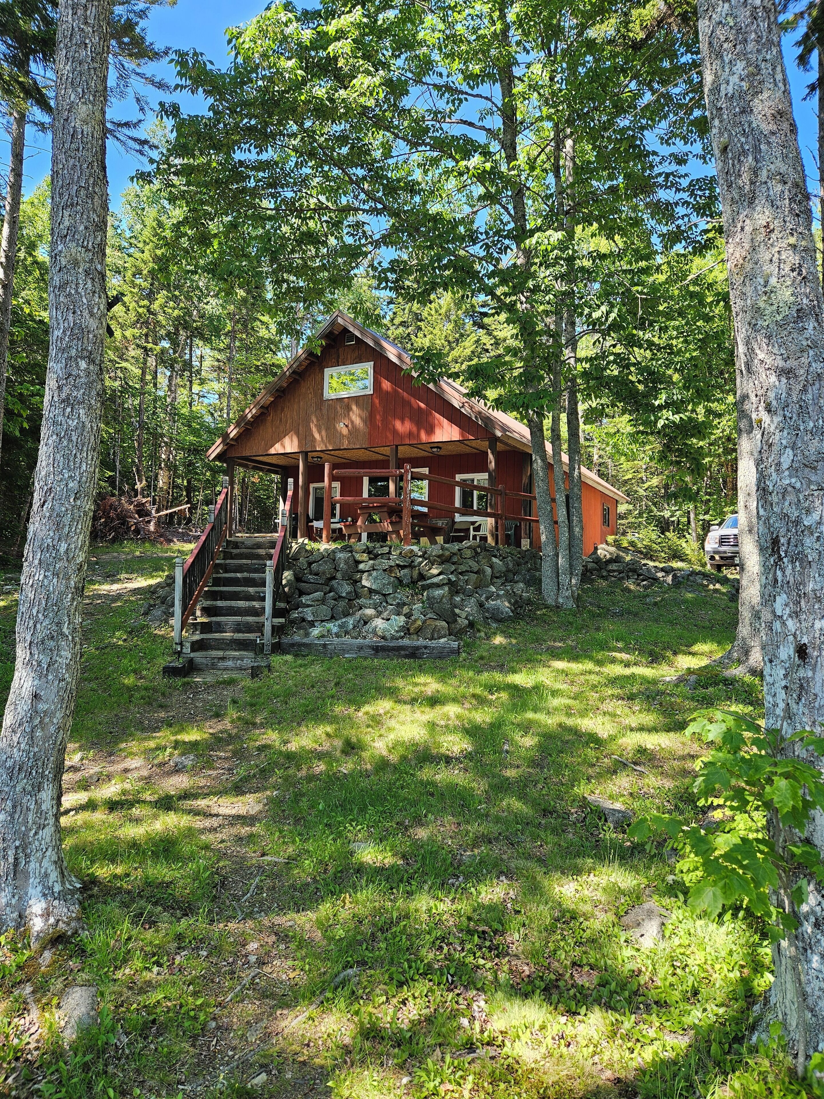 Weekly Rental on pristine Cathance Lake in Cooper Maine Available until Oct. 15 Private camp on pristine Cathance Lake with newly renovated bathroom and kitchen. There is a nice stairwell towards the shore and fire pit near the water.One bedroom on 1st floor and two bedroom on 2nd floor and also a loft facing the lake. Two of the bedrooms are upstairs and one is downstairs. It also has a fold out couch in the living room. Available July 6 to Sept 30. It has a dishwasher, washer and dryer, stand up shower, vanity. My camp is adjacent to this one and i would be your closest neighbor at about 250' away with woods in between. The other neighbor is over 300' away on the other side and is completely out of sight.