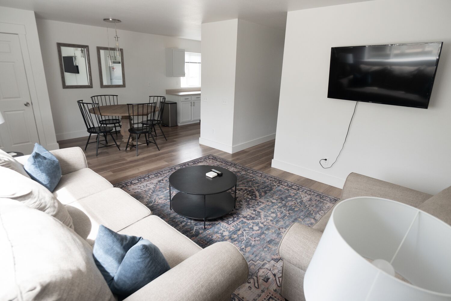 RIVER ROCK CONDO - Safe location This clean and cozy 2 bed, 1 bath floor level unit is minutes from I-90 and 5 miles from Bozeman Airport. The condo is equipped with everything you need for a good night sleep. We make sure to maintain an extremely clean unit and disinfect after each and every stay. Premium bedding, smart tv, wifi, high speed internet, and coffee/tea bar are only a few of our many amenities. This unit is the perfect base camp for a small family or couples looking to visit the Gallatin Valley.*There is an exterior security camera at the entrance of this property.