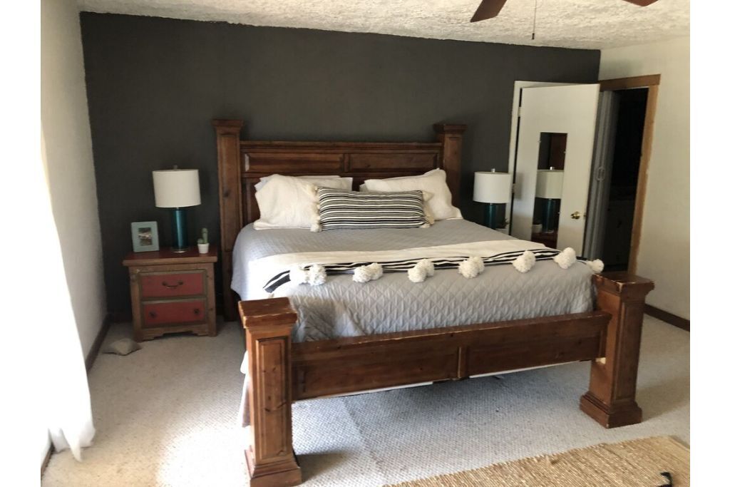 Beautiful home in a private country setting overlooking the San Saba River. Private 2 story riverside home with a large Common area including a pool table, wood stove and kitchen. relax on the second story deck overlooking the San Saba River . Wildlife on property includes whitetail deer, birds, racoons, turkey and much more.We Do not at the time have TV or internet. This is a very peaceful setting and have not needed it. Upstairs Sleeping area:Bedroom 1 Main Bedroom King Bed and 1 Full Size FutonBedroom 2 1 Queen Bed, 3 Twin BedsBedroom 3 1 Full Bed Downstairs:Common Room 2 Full Size Futon SofasThe property has two Cabins adjacent to the house that may be rented in addition at $100/nigh. please contact the owner for request and informationeach cabin has 1 queen bed/1 bath/kitchenette.