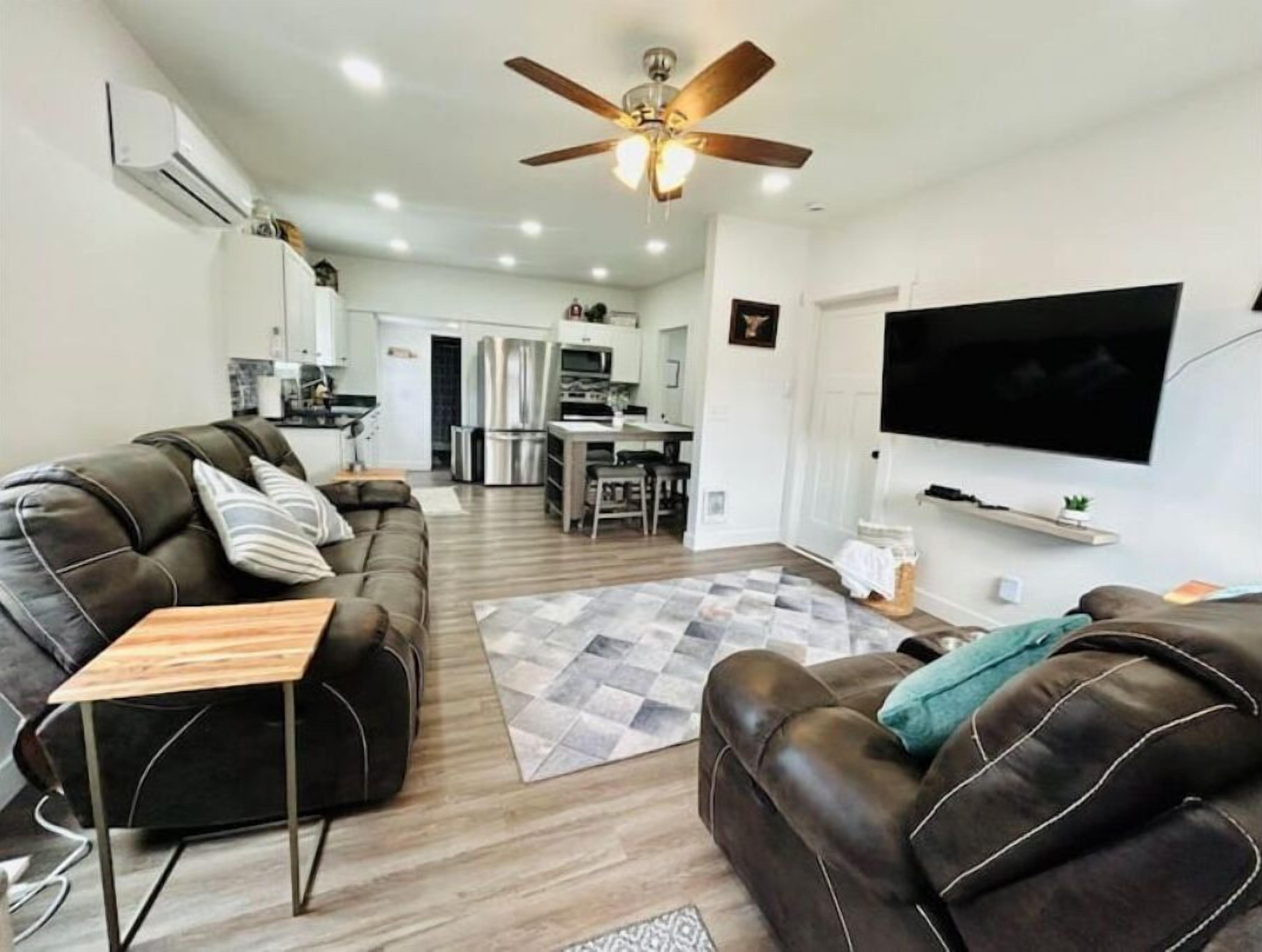Modern Central Blackfoot Living About this spaceBeautiful Cozy Modern 3 bedroom 1 bathroom house with dual vanity. Guest can enjoy a large Private Patio with gas grill and large lawn area. Central Location in Blackfoot, walking distance to numerous shops, restaurants and bars in Downtown. Close to the East Idaho Fairgrounds and Hospital. House has mini split Central AC and heating plus additional...