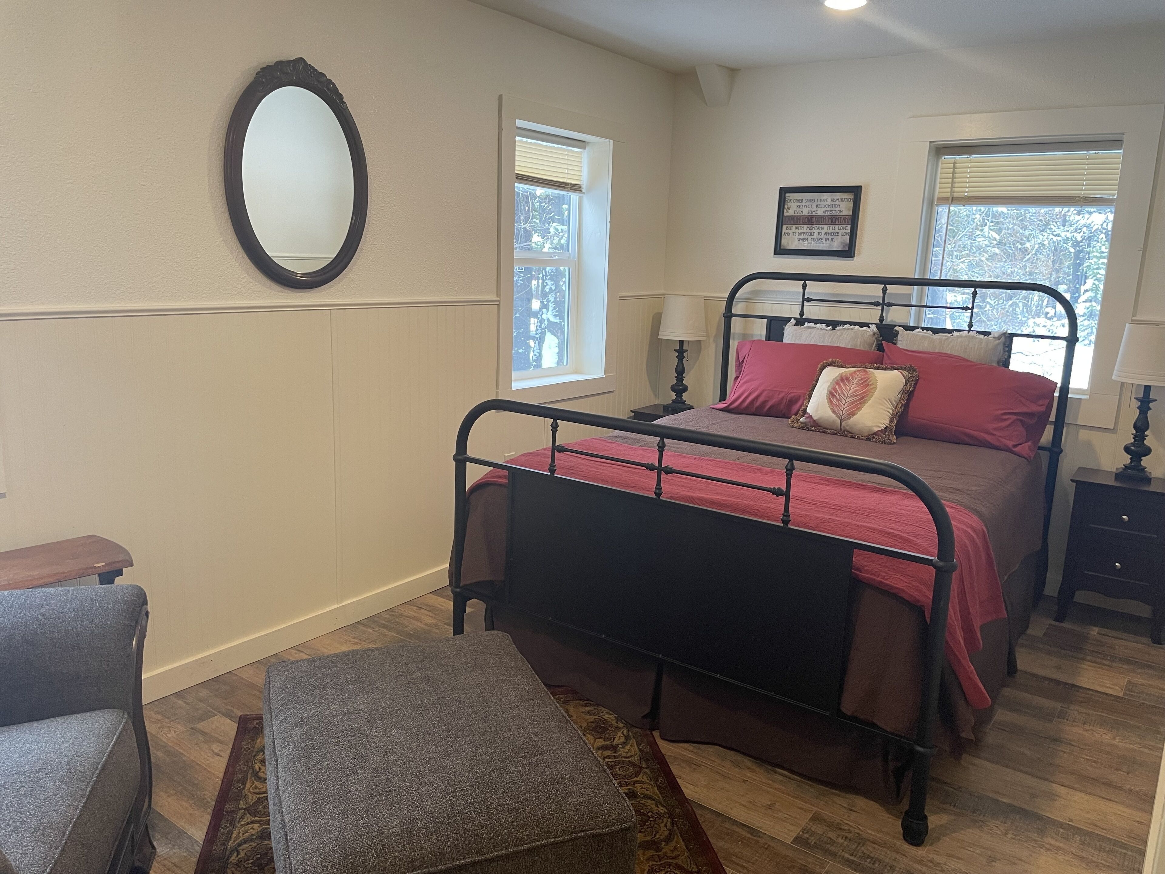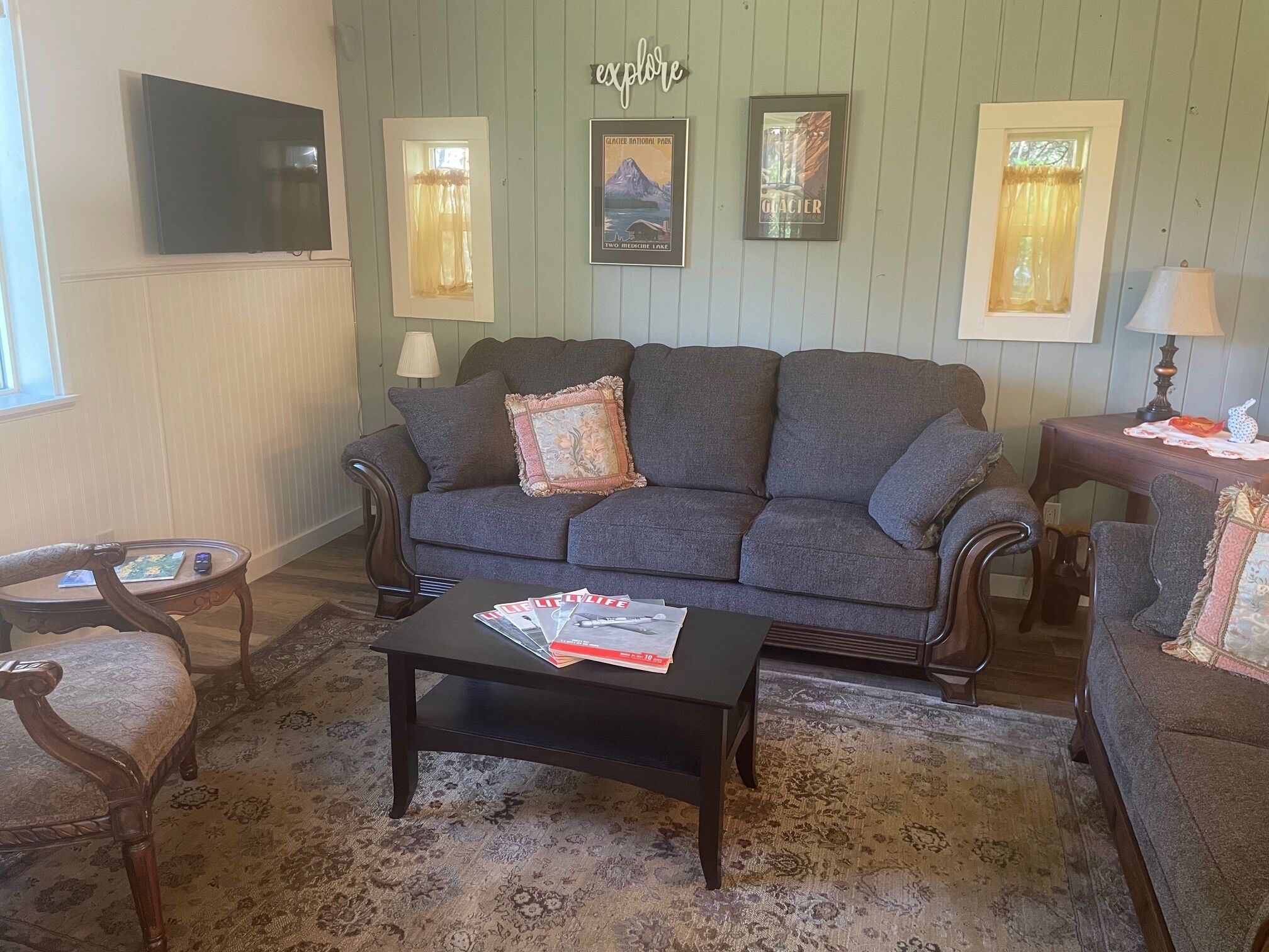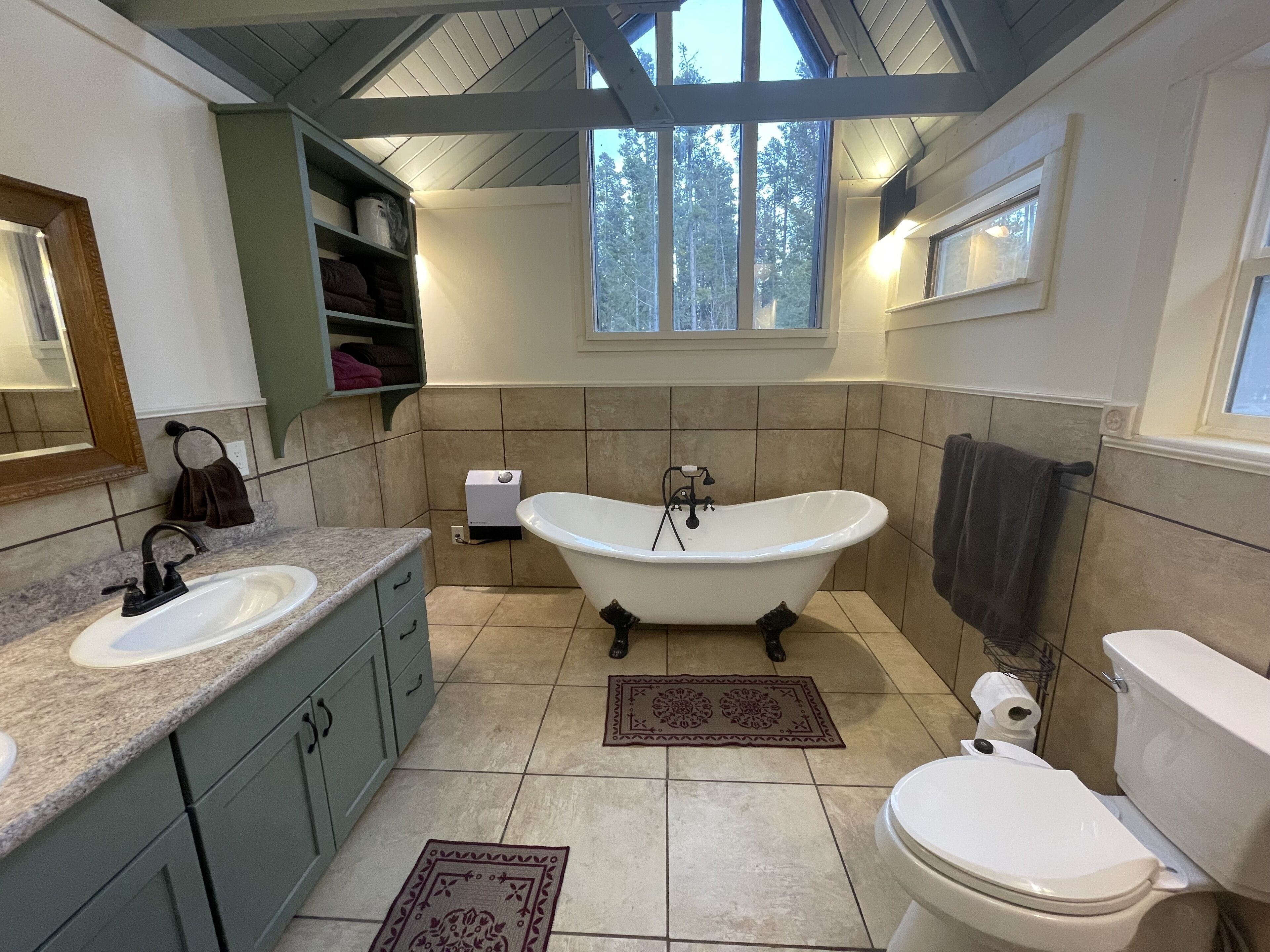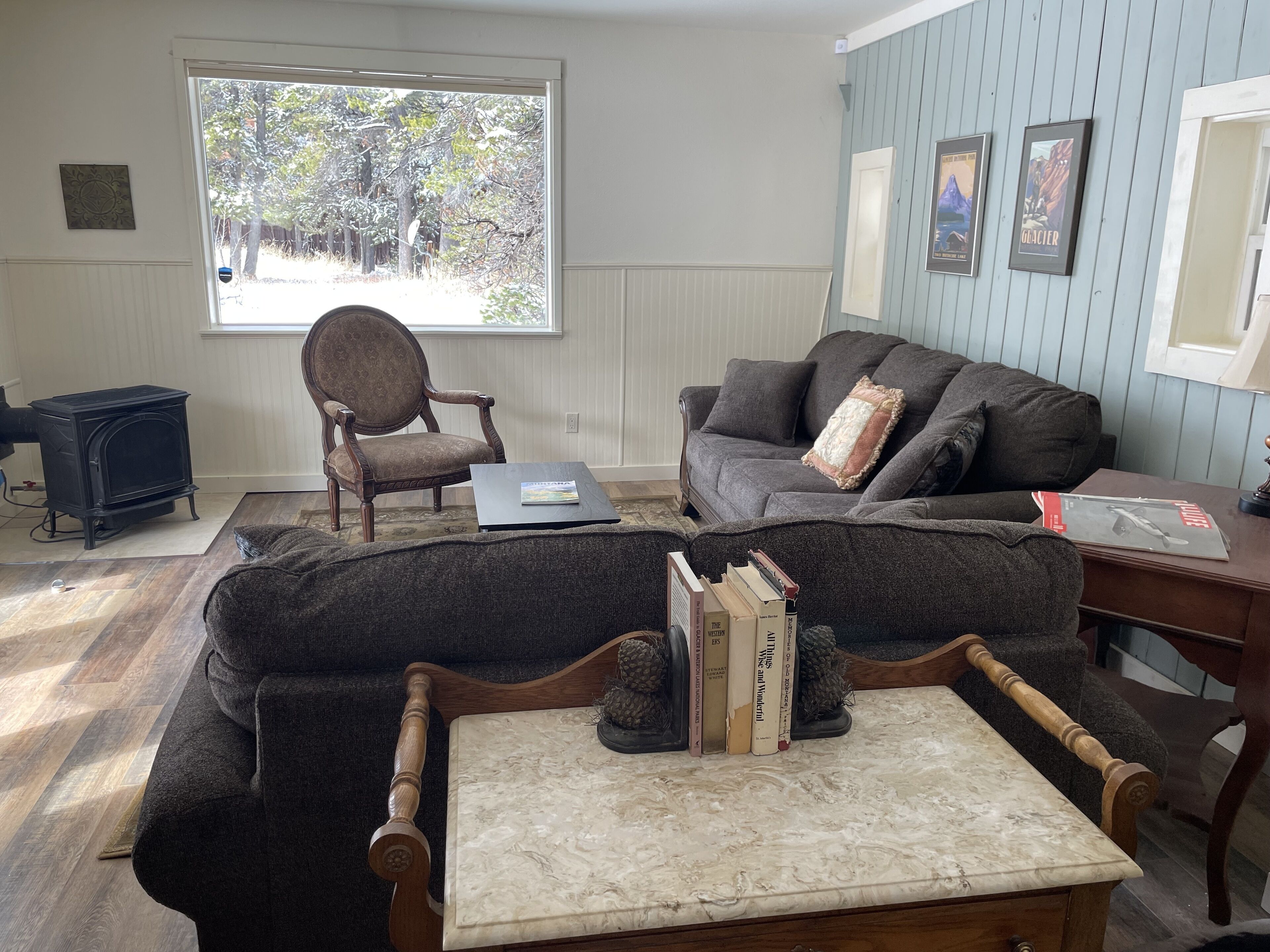 The Pinecone Cottage East Glacier Park The Pinecone Cottage is located in East Glacier Park within walking distance to Glacier Park Lodge, art galleries, restaurants and gift shops....a stone's throw from the 9th hole on the golf course and a ten minute drive to Two Medicine Lake, the east entrance to Glacier National Park. This newly remodeled 2 bedroom, 1 bath cottage offers a private backyard with awesome views. Relax after hiking or traveling with a soak in the cast iron clawfoot bathtub or take a long shower in the large shower. French doors open out from living room to backyard for your relaxing enjoyment. Cook your dinner while you soak in the mountain view. Enjoy your morning beverage in the mountain air. Iron beds and furnishings provide a rustic modern setting. While you are here you can enjoy hiking, fishing, wildlife viewing, boat rides, evening ranger programs, nature hikes, fireside chats at the Lodge and many scenic roads like the Going to the Sun Road. Please check with the Glacier National Park website to see when roads are open and if which ones need permits. Welcome!