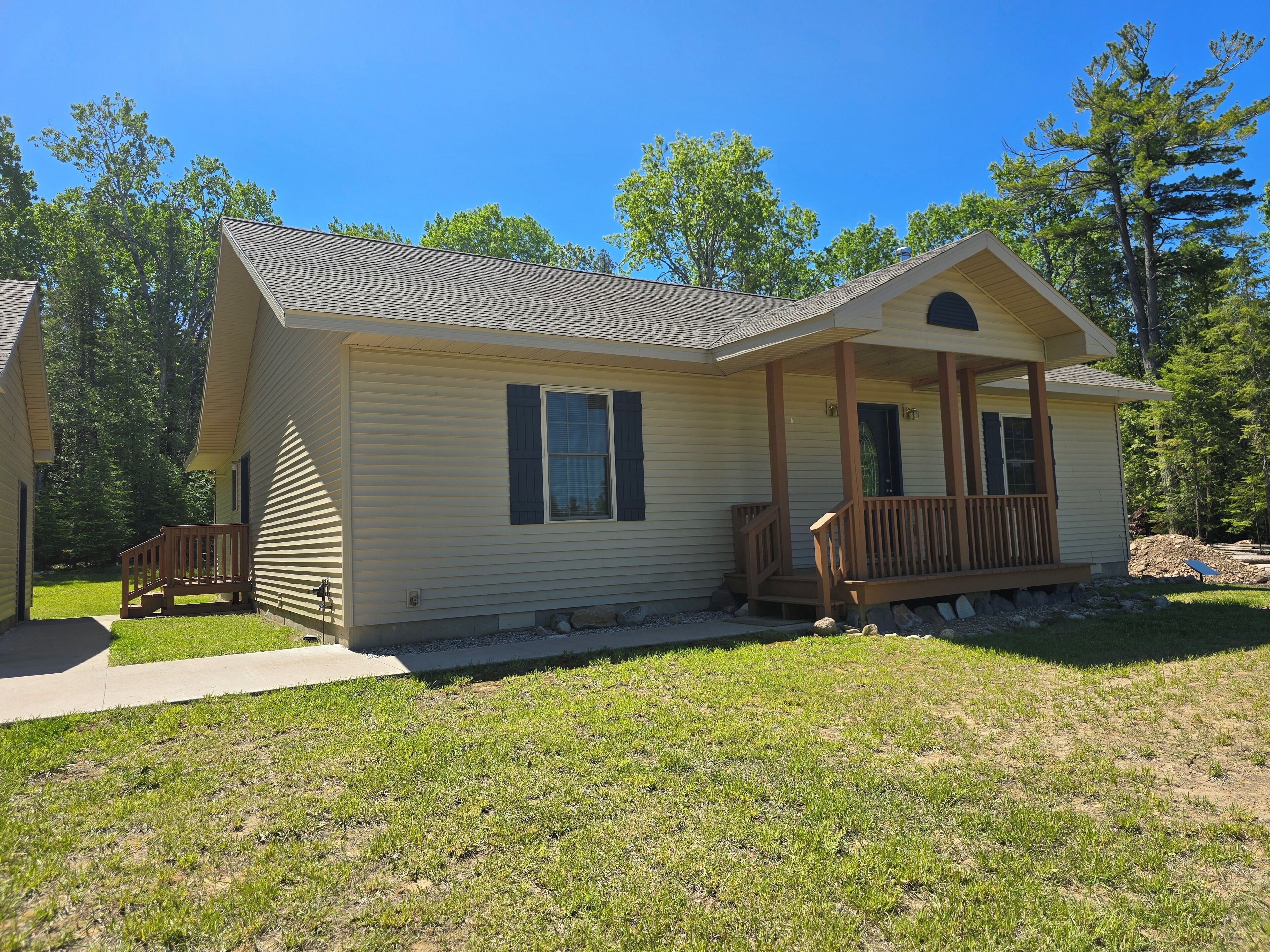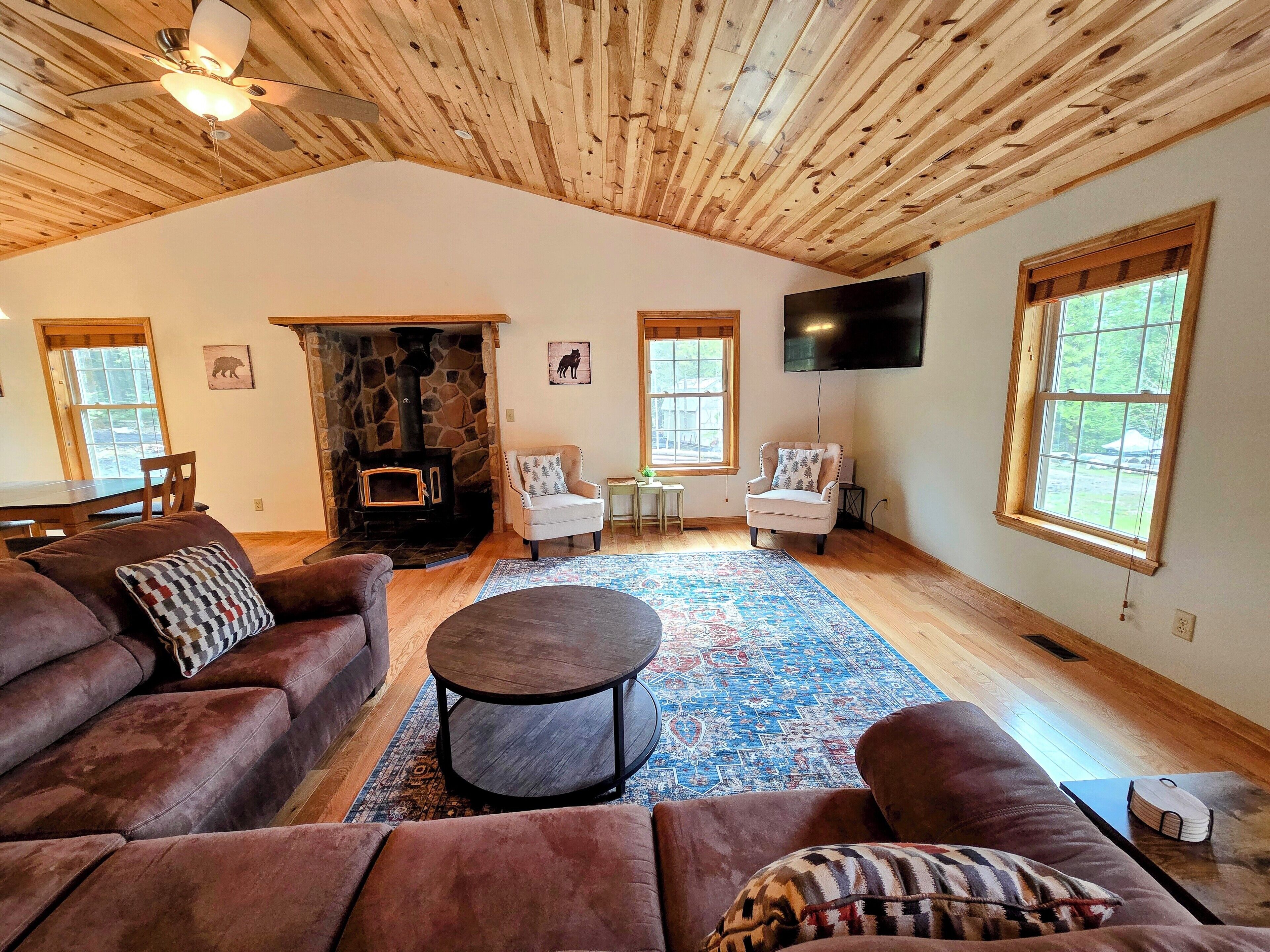 Drummond Island Vacation Homes - Cozy Cottage Cozy Cottage - Tourist RoadGreat location for Island Exploring!Prime Location! Located on Tourist Road, this newly constructed home offers an open floor plan, making conversation a breeze. This home has 2 Bedrooms and 2 full bathrooms and will sleep 6 comfortably.The living room and kitchen are hardwood floors and cedar cathedral ceilings. This great room is large and comfortable and offers a wood stove fireplace for chilly evenings. Charmingly furnished with everything you will need during your stay. The front bedroom features 2 Queen beds, back bedroom features 1 Queen and a slider to the backyard. This cozy cottage also offers a laundry room. The private backyard has a fire pit for relaxing and recapping the day's adventures.This home is centrally located with easy access to trails, beaches, hiking, biking. If fishing, boating etc is your thing you are on the right side of the island boat rentals and boat ramps available within a few miles. If you have a large group we have a beautiful rental across the road that sleeps 10.If you are coming to Drummond Island to ride the trails, you can ride the roads to the trailheads from this home. Side x Side’s and ATV’s are NOT permitted on M134/Channel Road. · If you are making this reservation within 24 hours of arrival please call for check in instructions.· Check-In after 4 PM. Check-Out by 9 AM. Check in at Drummond Island Hotel & Vacation Homes, 34834 S Townline Road. We will provide you with directions and keys.· Any fees associated with processing a credit card will NOT be refunded if you cancel your reservation.· Pets welcome. Pet reservation is required. Please read our Pet Policy. Two Dog max. A $50 per pet fee will be added by Property Manager. · All reservations have a 30 Day Cancellation Policy.