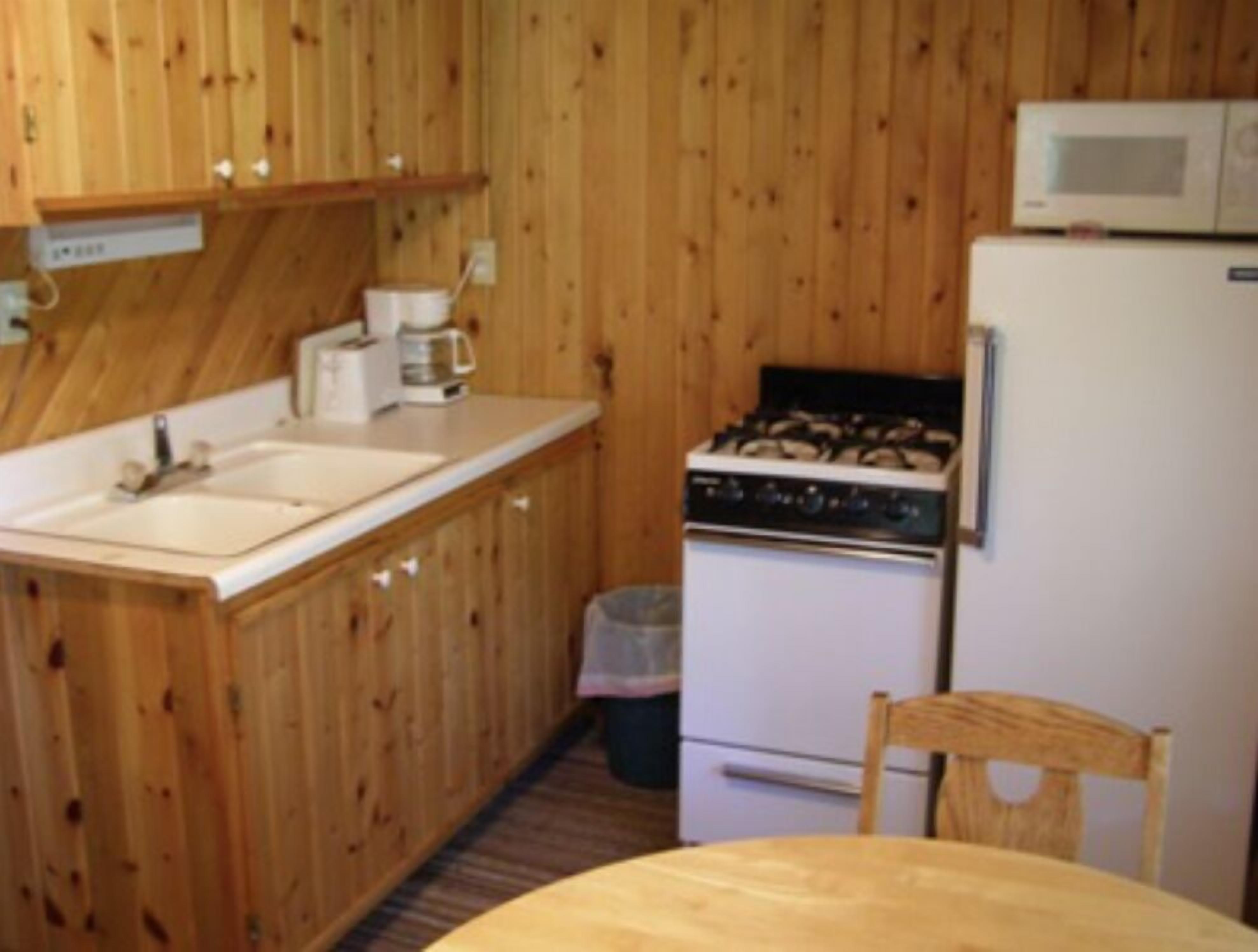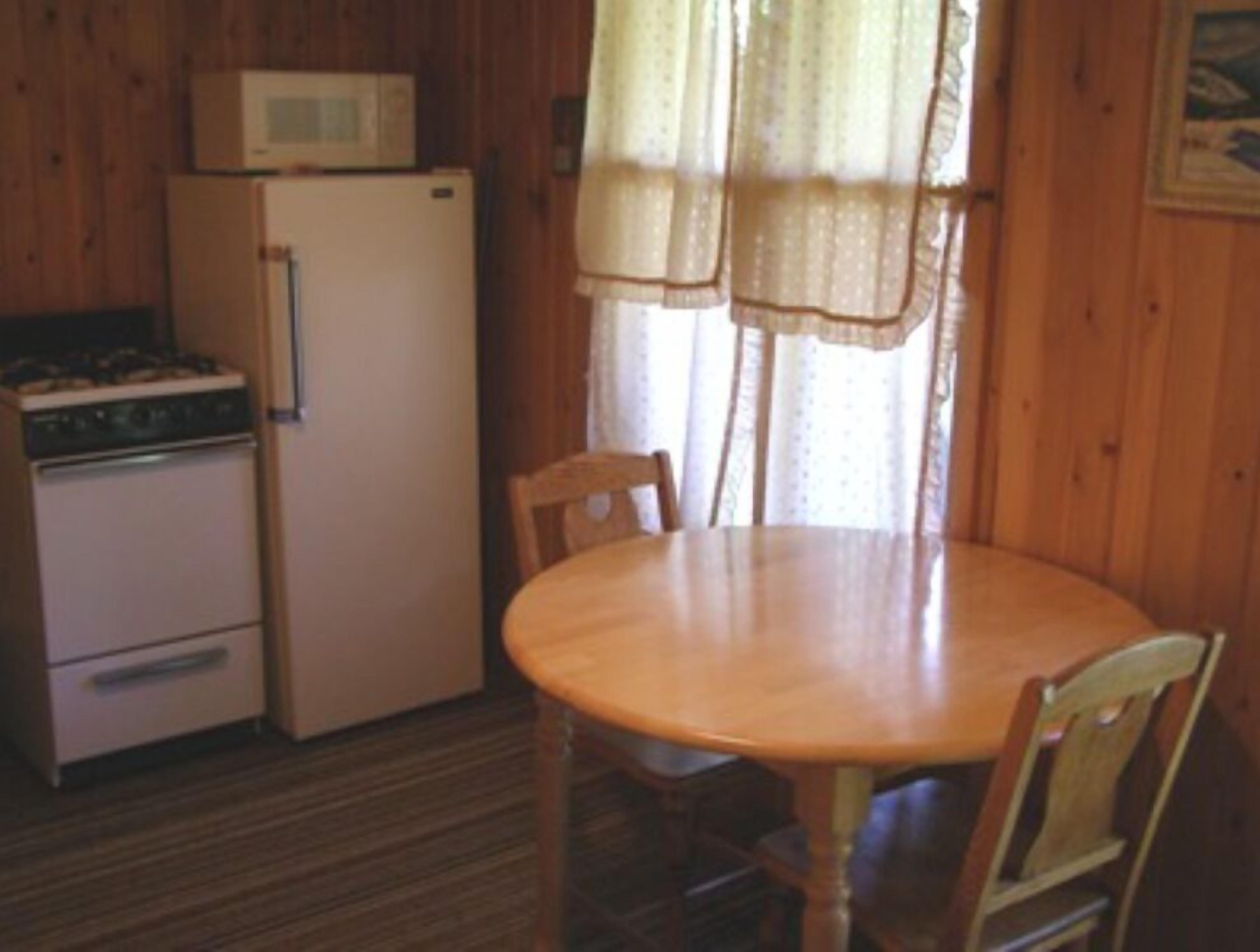 Papins Resort Little Cabin "The honeymoon cabin"One room cabin with a queen bed in the middle and small kitchen. 2 people maximum.Bathroom with a stand-up shower. No living area, only a dinette set.This cabin is a short walk from the water has a view of the water. Private firepit, charcoal grill, and picnic table.Fully furnished kitchens with dishes, utensils, pots & pans, glasses, cups, etc., mi...