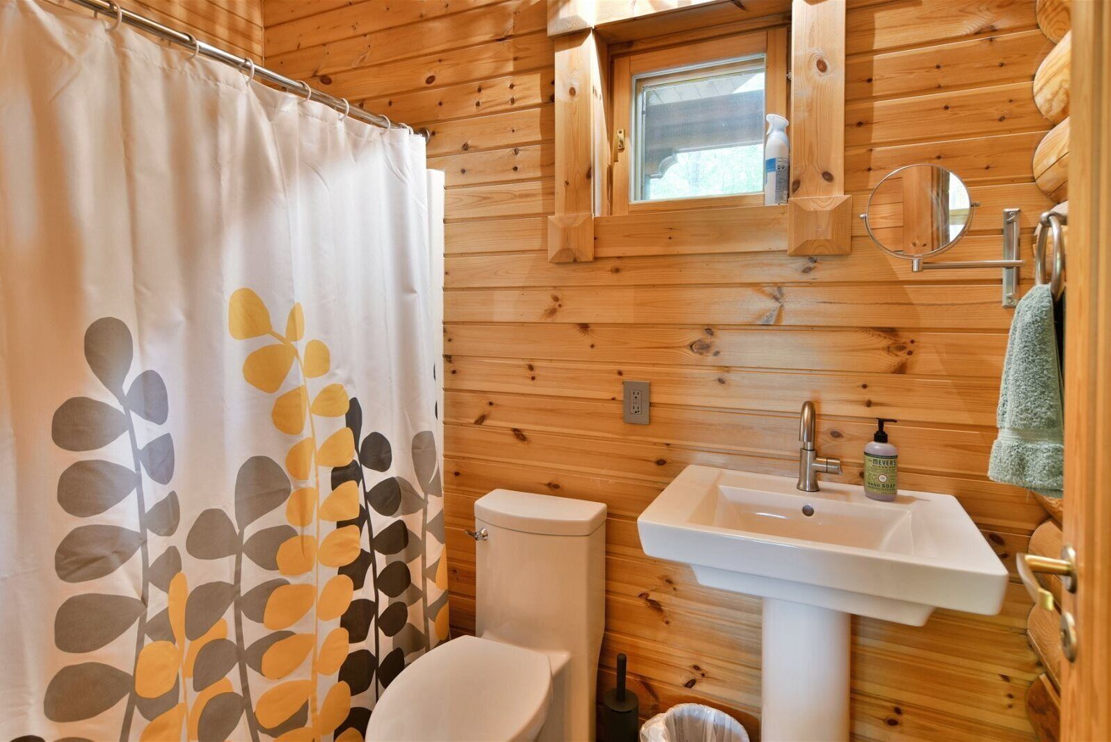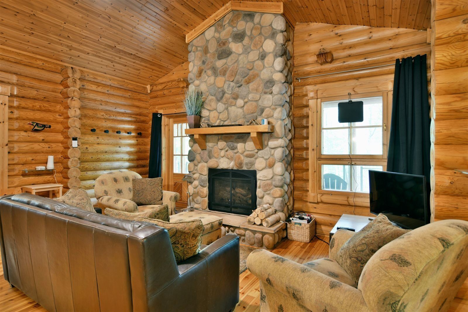 The Bike Cabin | 2 Bed, 2 Bath Prime location for outdoor enthusiasts! Bike for miles from your front door on beautiful tree-lined roads. A few miles away go riding through the nationally recognized CAMBA mountain bike trails and when the day is done there is a bike washing station at the cabin. Or check out the area hiking trails and world-class Birkebeiner Trail cross-country skiing, just a short drive away.Snowmobile and ATV enthusiasts - a spacious, easy-in, separate trailer parking area is located at the cabin. Come and check out some of the most beautiful trails in the state!Enjoy the natural beauty that surrounds this unique log cabin on the 2 extra-large covered decks, catch some sun on the south-facing patio, or gather around the rocked firepit area. Even Fido will find a little freedom in the large fenced-in backyard so he can enjoy outdoor time with you while you're relaxing on the deck or grilling up a meal!Inside, The Bike Cabin features 2 spacious bedrooms, one has a workstation if you need to work while you're here, and both have their own full bathroom ensuite. A cozy living room complete with a fireplace and a fully equipped kitchen.From Drummond, many fun Day Trips are close by including Bayfield, Apostle Islands, Area Waterfalls, Hayward's Main Street District, Fishing Hall of Fame, Duluth's Canal Park, and North Shore.This special retreat is the perfect place to relax and renew!Please Note:Rate based on 4 people, this includes Adults and Children. There is a $25.00 charge per person per night, up to a maximum occupancy of 5 people.Towels and are not provided, please bring bath, swimming and kitchen towels.There is a light blanket on the bed with fresh linens and pillows. If you prefer a heavier blanket, please bring one along with you.Pets are allowed. $20 per pet per night maximum of 2 pets.There are outside security cameras in use.Anyone with a trailer, use the trailer parking area to the north of the driveway.Do not bring the trailer up the driveway.