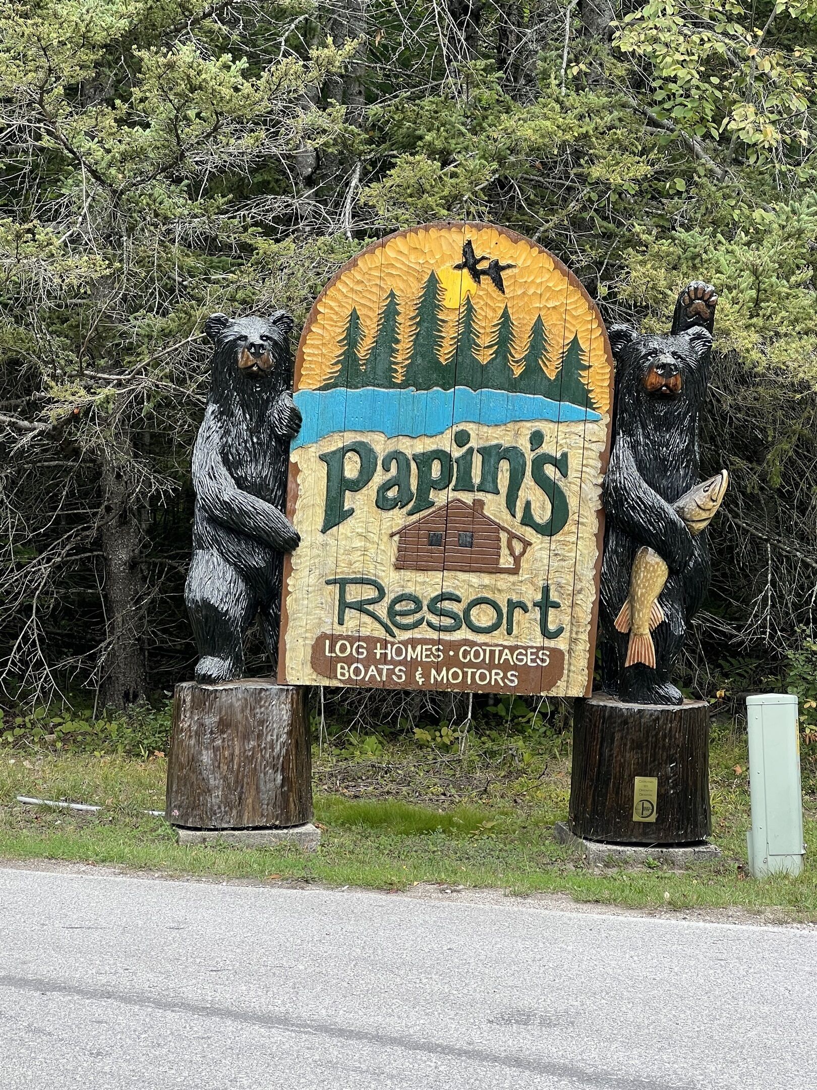 Papins Resort Cabin #1 3-bedroom waterfront with a wood fireplaceLarge front lawn overlooking our marina.Firepit right out front. Amazing sunset view!!Bedroom 1 has a queen, bedroom 2 has a double and a twin, bedroom 3 has a double. 7 people maximum. Fully furnished kitchens with dishes, utensils, pots & pans, glasses, cups, etc., microwaves, coffee makers, toasters, refrigerators/freezers, ovens/stoves, private bathrooms with showers, satellite TV, charcoal grills, and of course, heat! All cabins have access to, or their own, firepit. We have firewood available to purchase. We do not supply bath towels. Wi-Fi is available in the office 24/7.We sell night crawlers, bagged ice, bottled water & pop, some snacks, and more (cash based).Our resort is Dog friendly (with prior approval): $15/day/pet (limit 2 house-trained dogs per cabin), Keep on lead when outside, clean up waste immediately, do not leave alone in cabin, keep off furniture and bedsInquire for full set of pet rules. ATV friendly / Boat / Trailer Friendly - Inquire for specifics