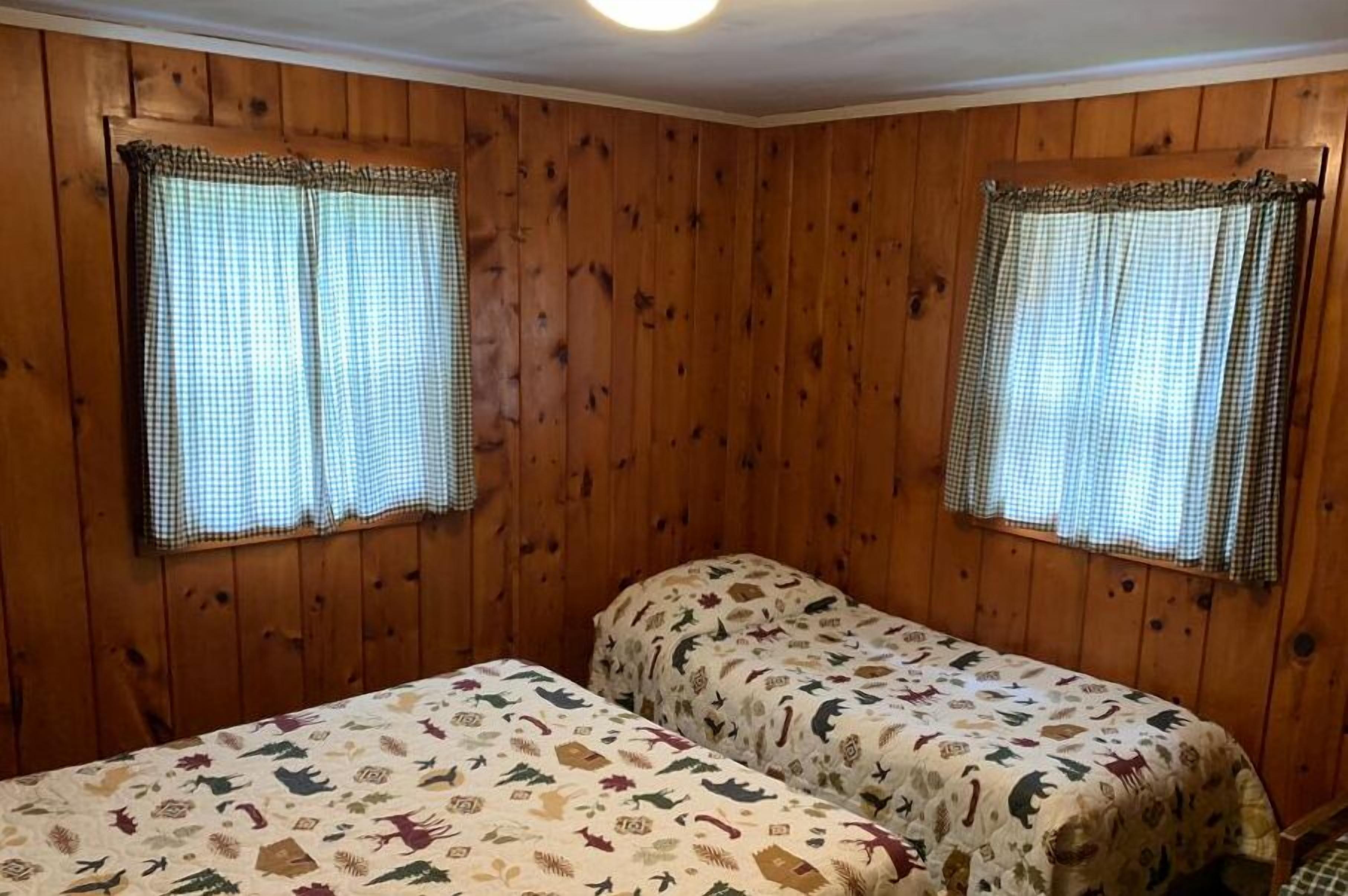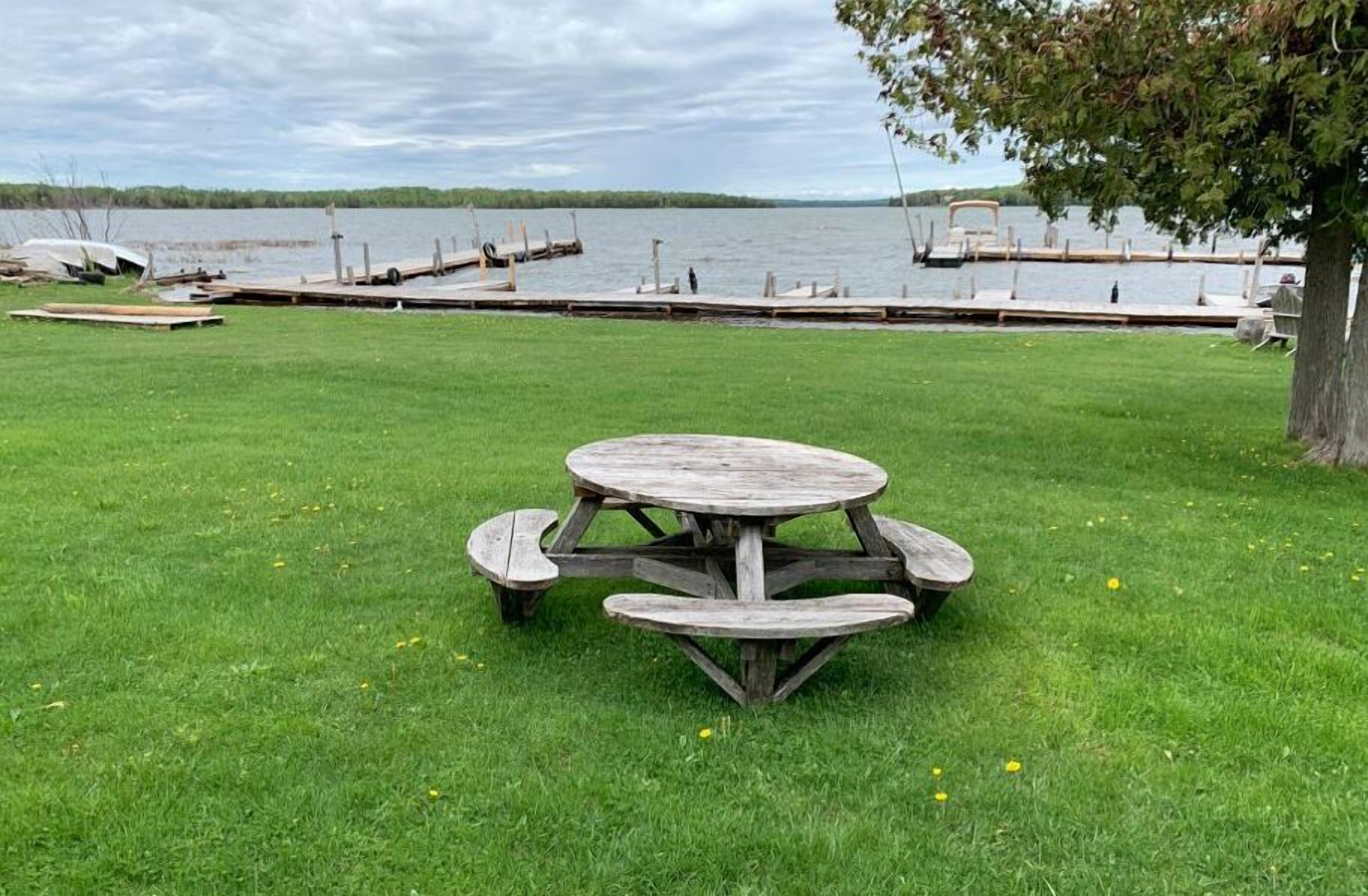 Papins Resort Cabin #1 3-bedroom waterfront with a wood fireplaceLarge front lawn overlooking our marina.Firepit right out front. Amazing sunset view!!Bedroom 1 has a queen, bedroom 2 has a double and a twin, bedroom 3 has a double. 7 people maximum. Fully furnished kitchens with dishes, utensils, pots & pans, glasses, cups, etc., microwaves, coffee makers, toasters, refrigerators/freezers, ovens...