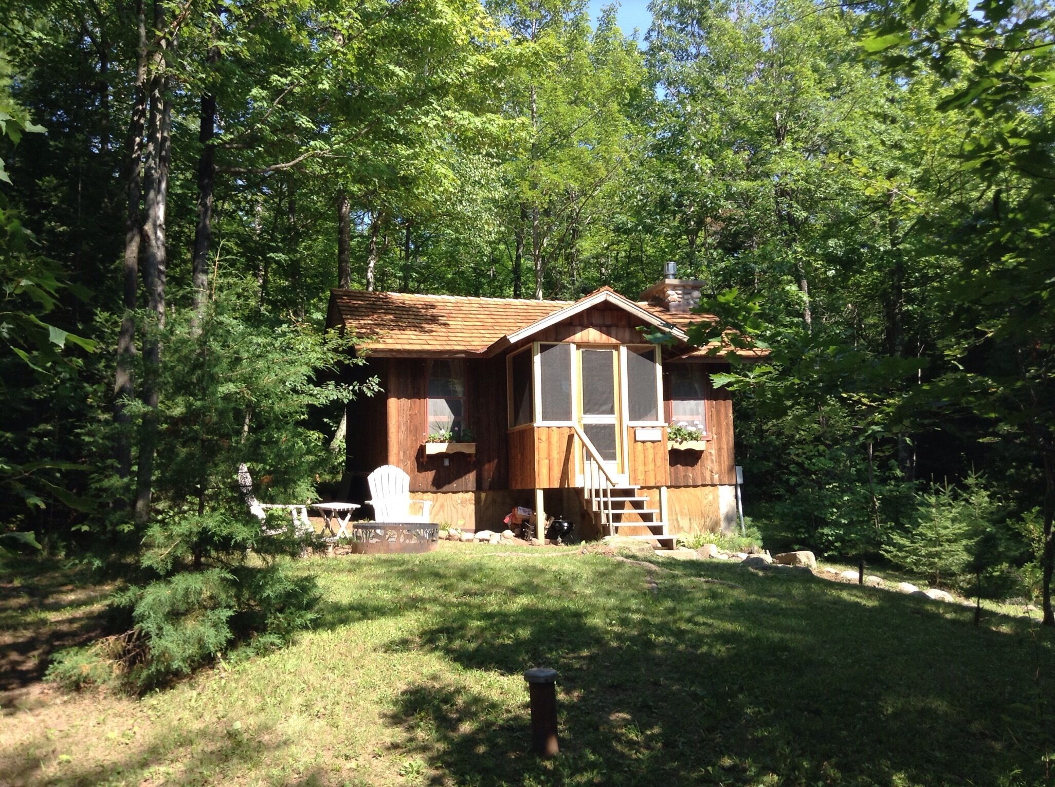Romantic Log Cabin Nestled in Wooded Setting on Lake Wilipyro This charming cabin is perfect for a solitary retreat or a romantic getaway for two. This lovely year-round log cabin is one of seven cabins on eight secluded, wooded acres with 950 feet of frontage on a crystal clear 77 acre Lake Wilipyro. Also surrounded by the Chequamegon National Forest. Your vacation rental includes a canoe. There is an outdoor grill, fire pit and a picnic table. The cabin has a cozy gas fireplace in the living room area to warm you on chilly Northwoods evenings. The romantic cabin for two has a comfortable double bed. Please bring your own personal towels while on vacation. This unique northwoods vacation cabin includes a kitchen with a stove, refrigerator, microwave and utensils. The living room area with fireplace also has two hand-made custom wood rocking chairs for the perfect northwoods experience. Relax and read a book or watch the wildlife. There is a wood-fired sauna on the property that is a separate building from the main cabin. Great for that relaxing vacation getaway experience. Hear the haunting cry of the loons and the lap of the waves at water's edge. There will be an additional room tax fee of 4% added on to each reservation.Keywords: Condo