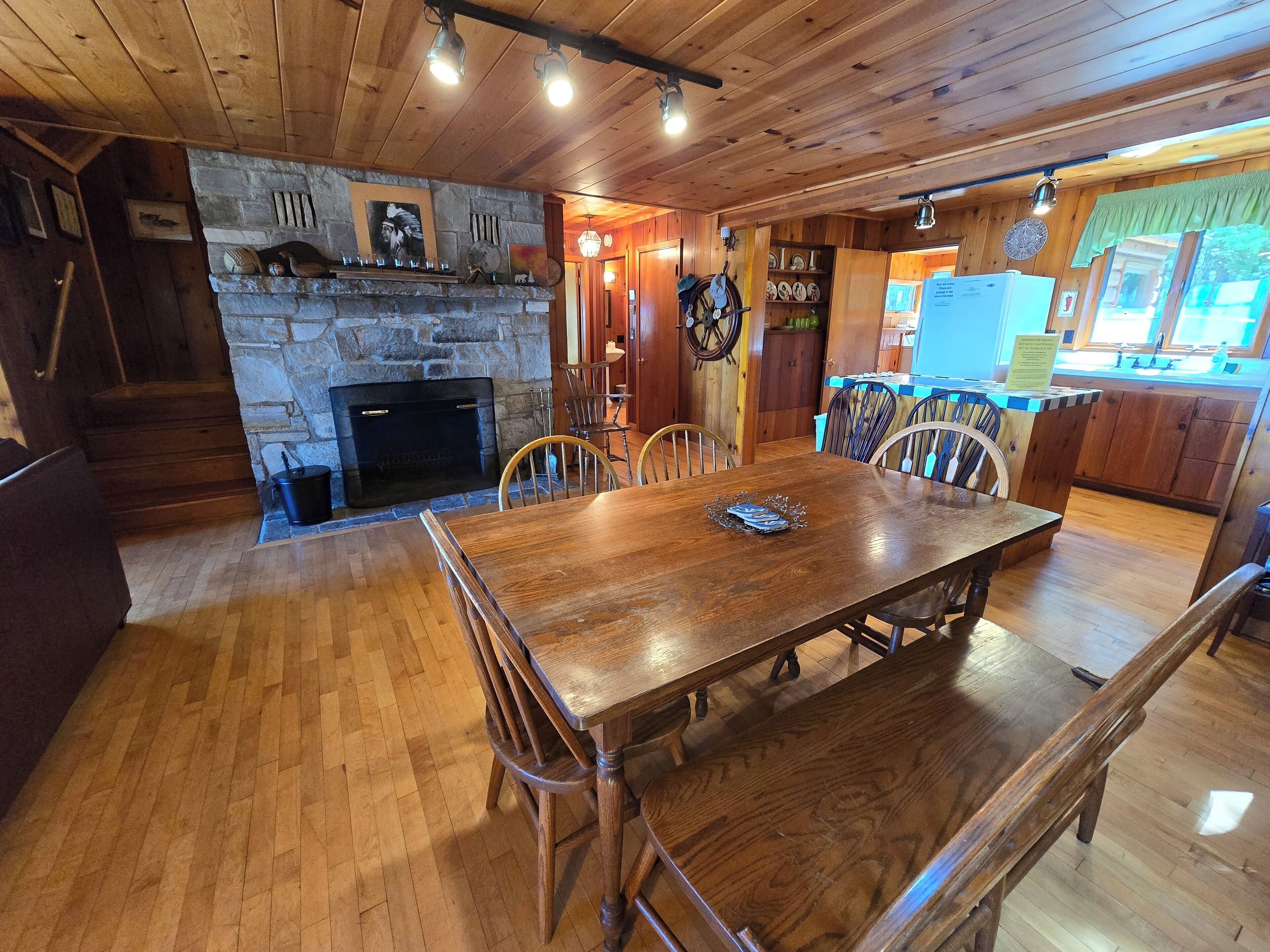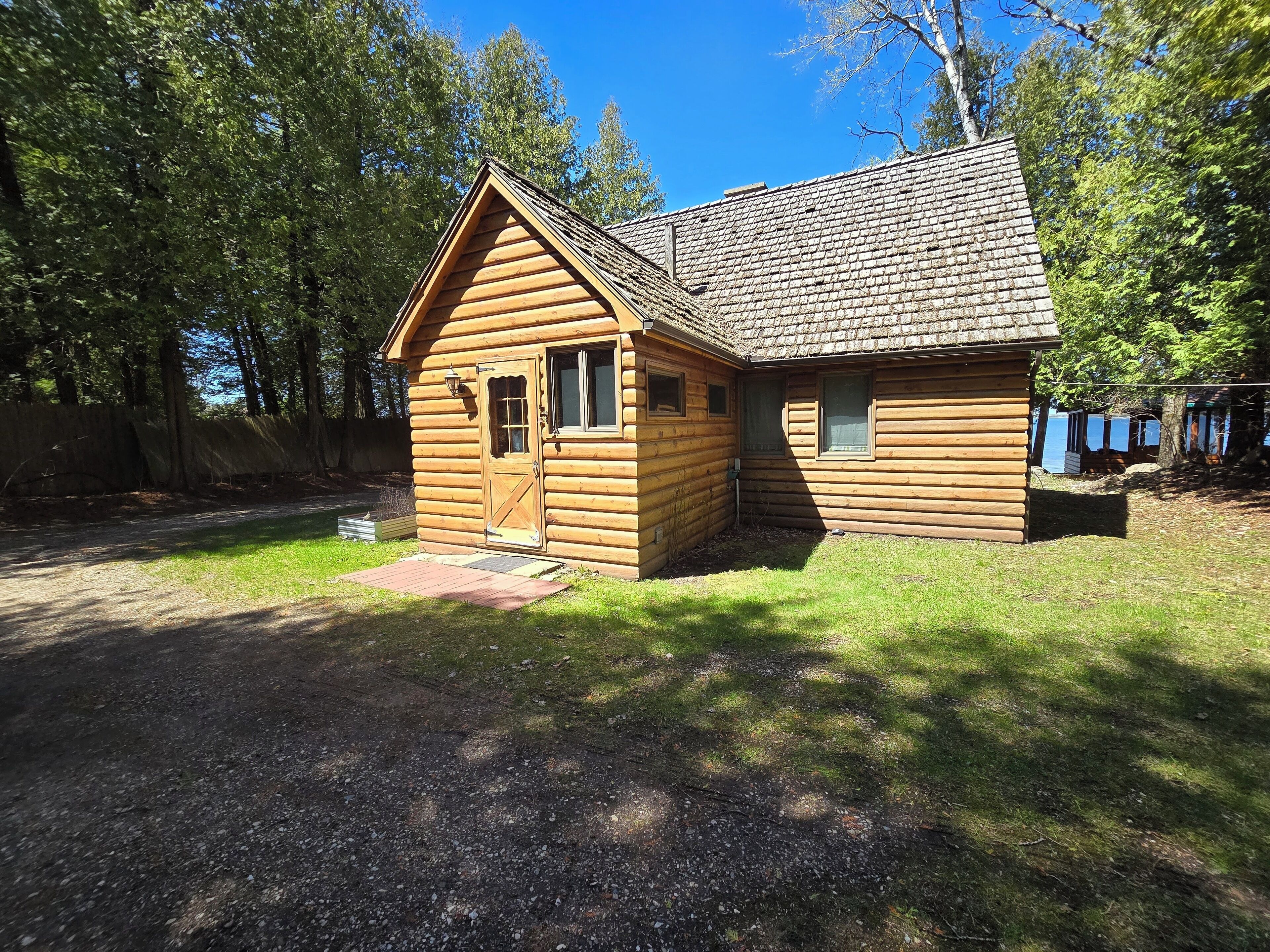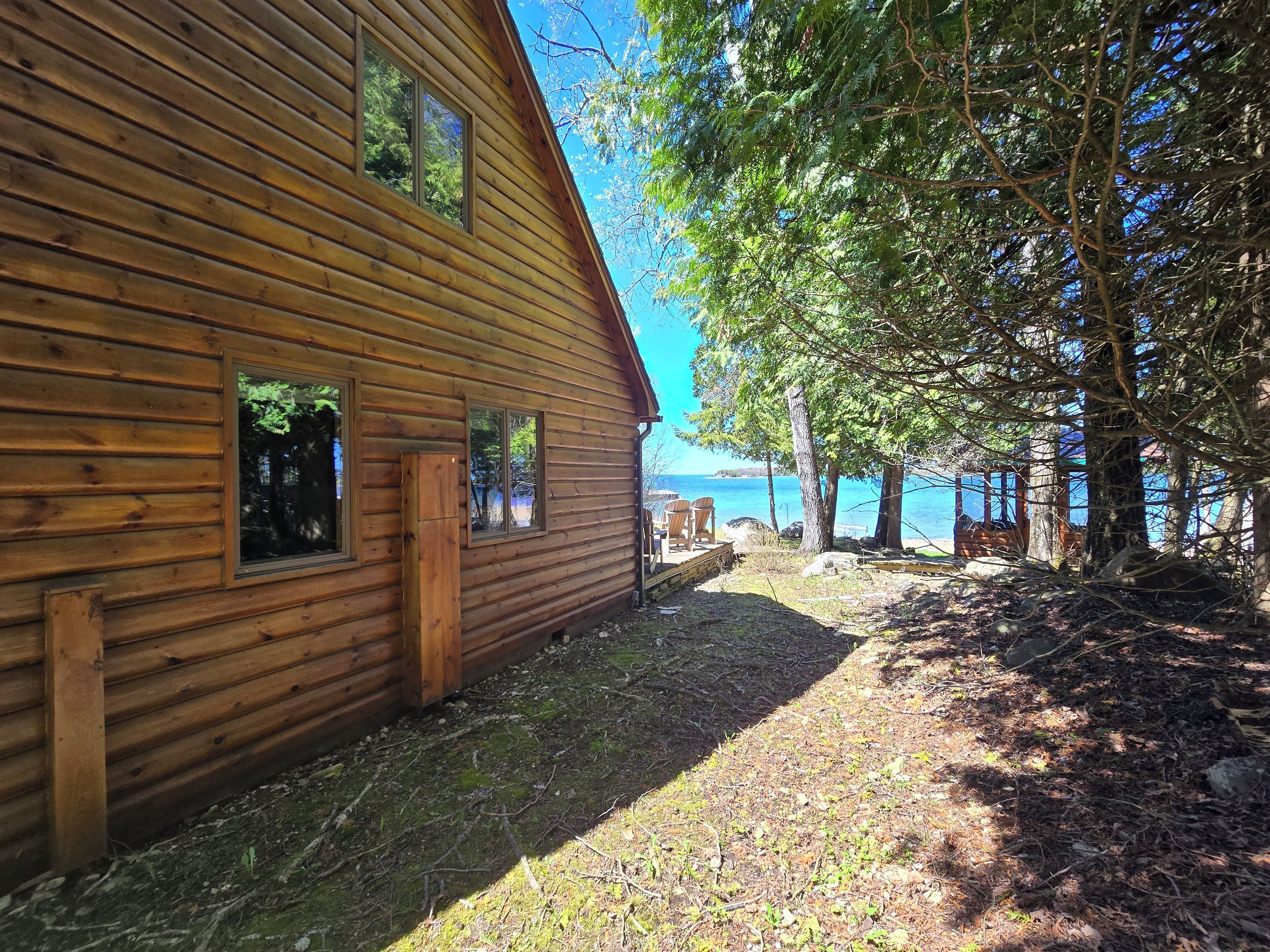 Drummond Island Hotel & Vacation Homes - Camp McGinnis Cedar shake shingles will catch your eye the moment you pull into the drive. A beautiful limestone fireplace will warm the hearth on those cool evenings as well as refresh the soul after a long day of play. The hardwood floors and wide pine tongue and groove paneling adds to the nostalgia this home offers. The screened gazebo is the perfect place to sit and watch the sunset or play a game or two. This is a place where memories are made!This four-bedroom home comfortably sleeps 8. The main floor Master features a queen size bed. The main floor bath is large with a walk-in shower. Bedroom two is located upstairs and offers two twin beds. Bedroom three is also upstairs and features two twin beds. Bedroom four is accessed thru bedroom three and features a full bed with lake view. The shared upstairs bath features a shower.· If you are making this reservation within 24 hours of arrival please call for check in instructions.· Check-In after 4 PM. Check-Out by 9 AM. Check in at Drummond Island Hotel & Vacation Homes, 34834 S Townline Road. We will provide you with directions.· Any fees associated with processing a credit card will NOT be refunded if you cancel your reservation.· Pets welcome. Pet reservation is required. Please read our Pet Policy. Two Dog max. A $50 per pet fee will be added by Property Manager. · All reservations have a 30 Day Cancellation Policy.