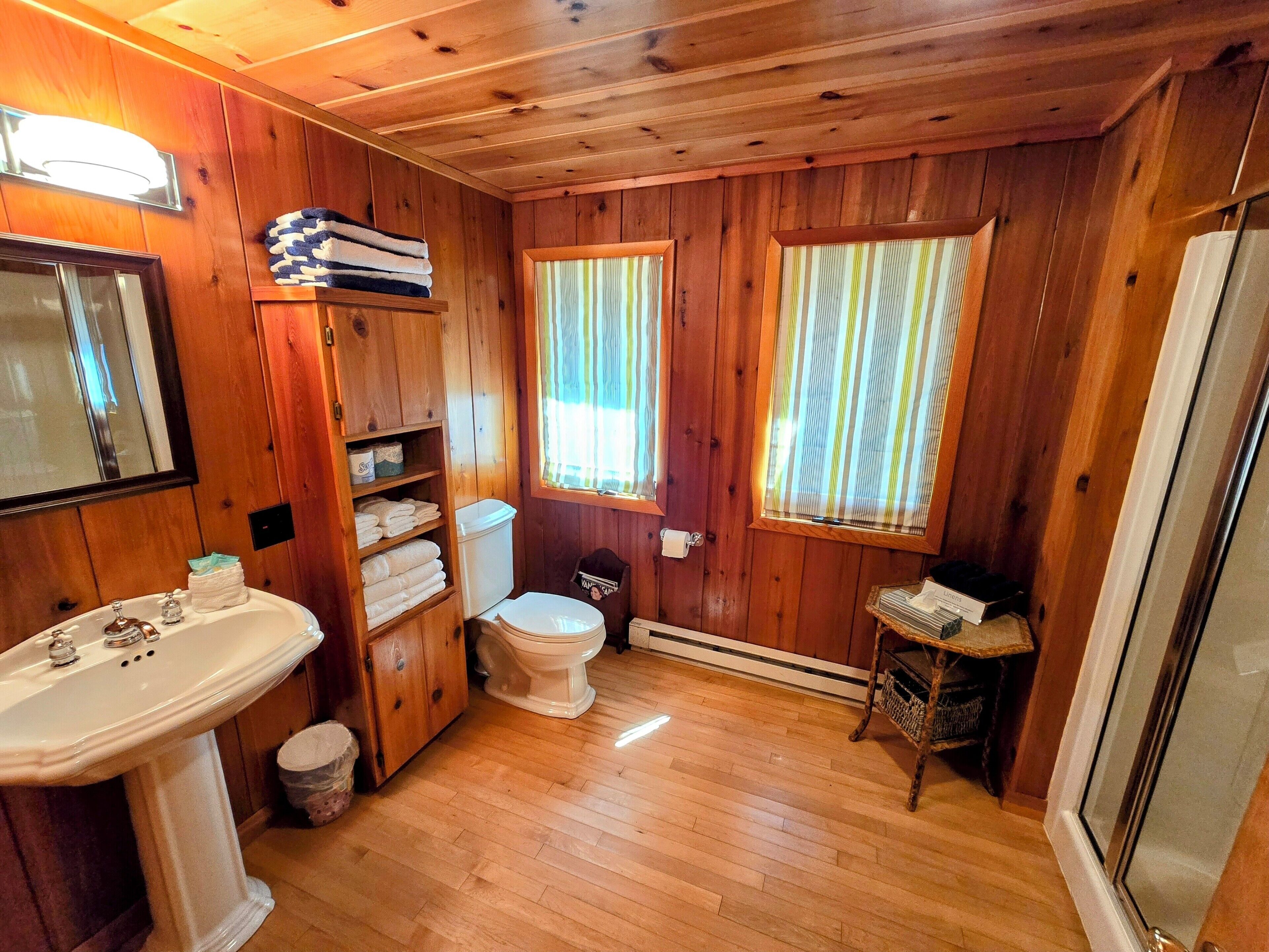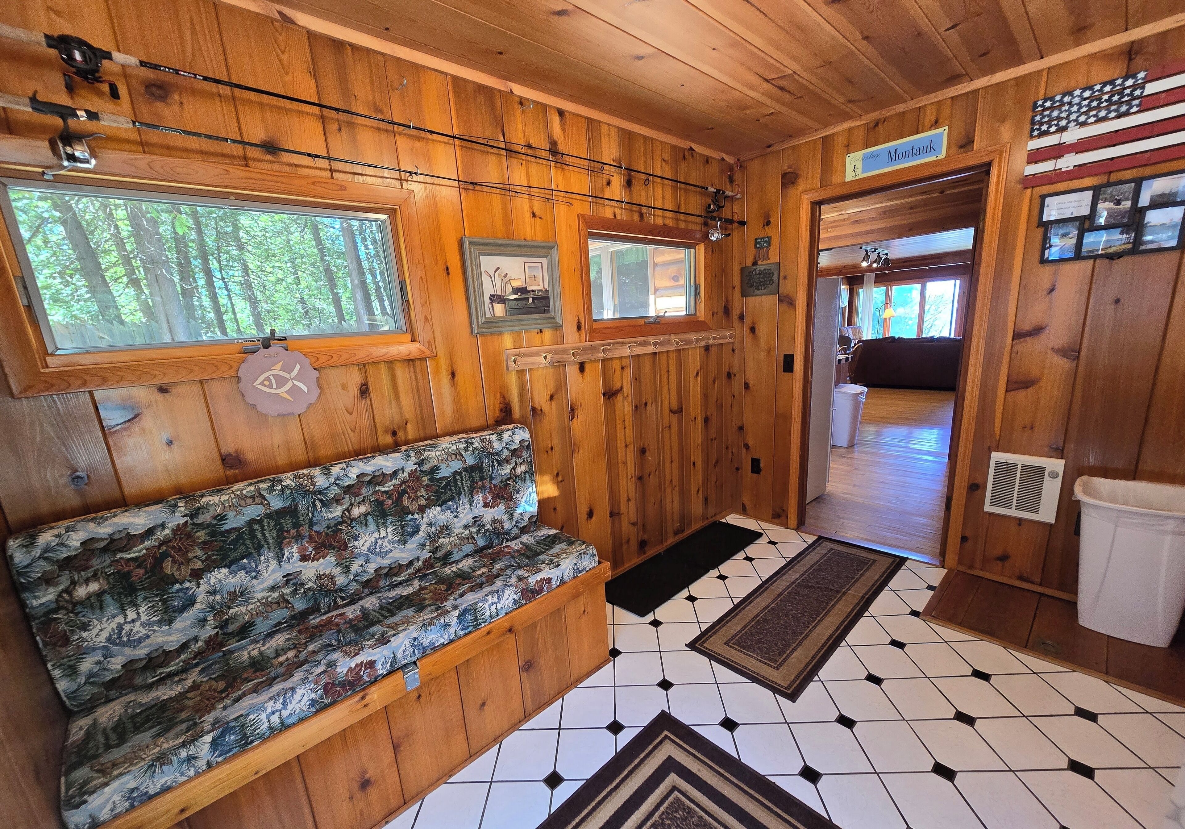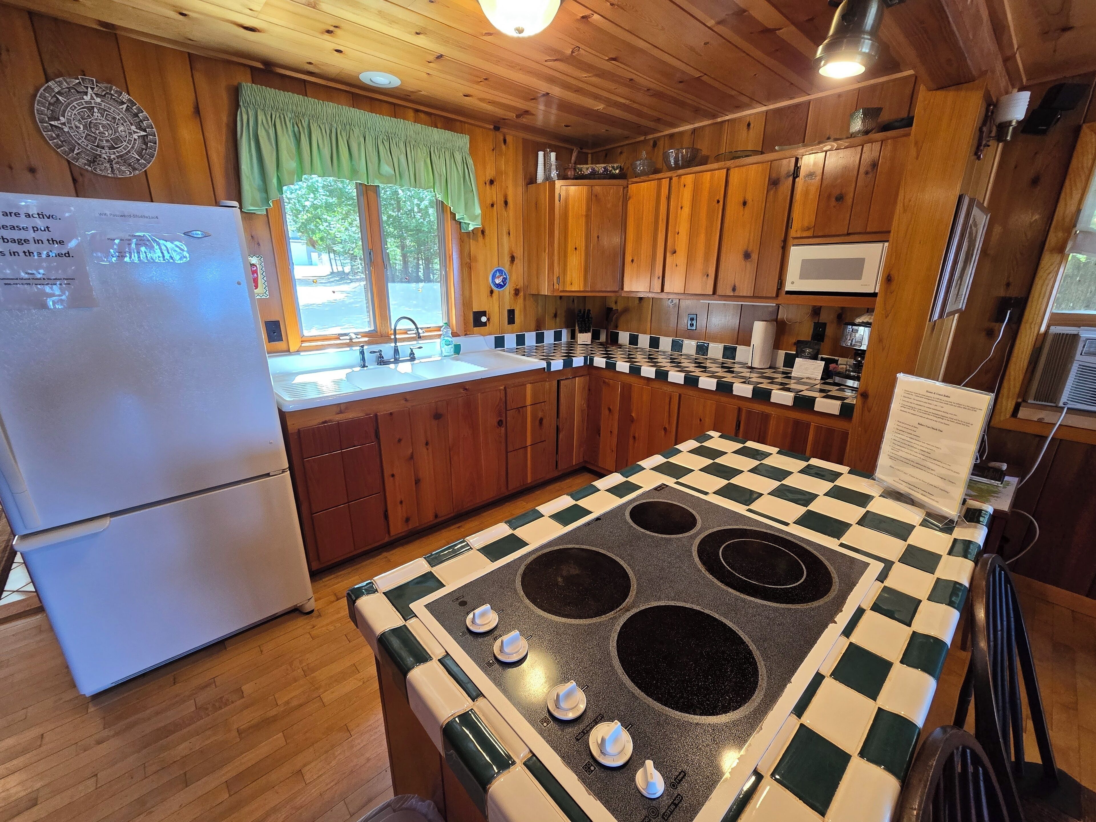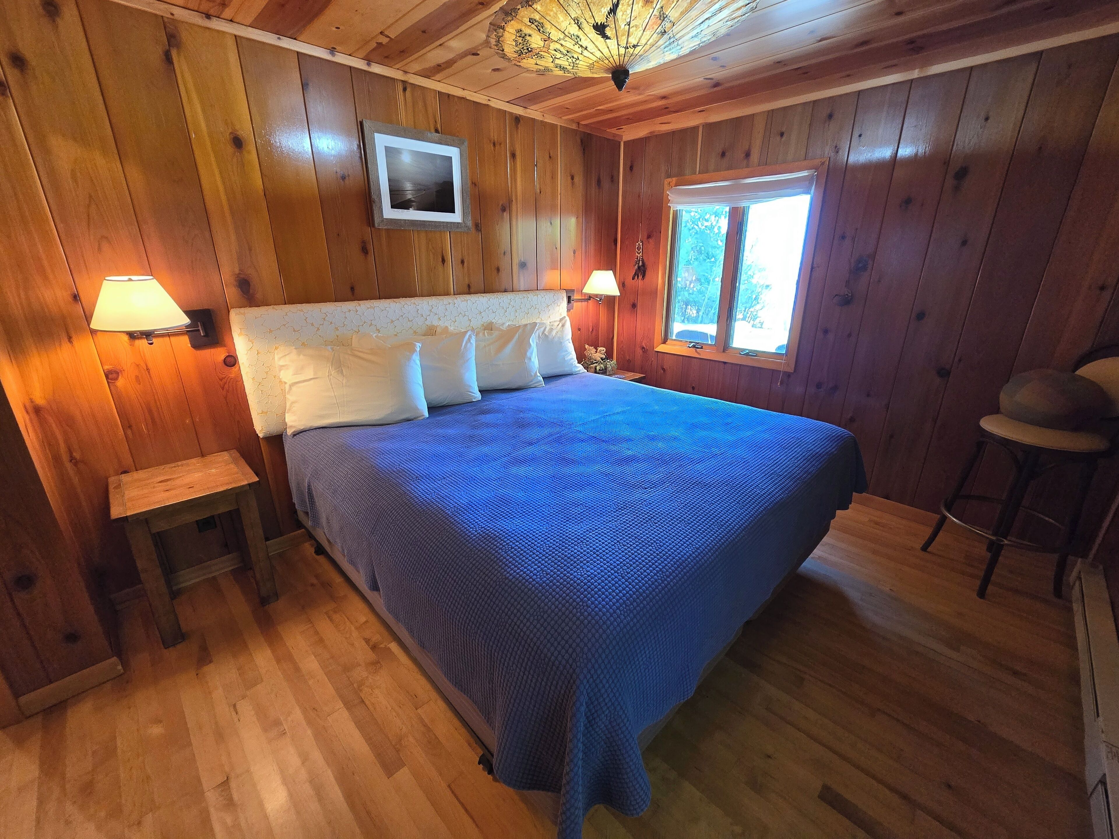 Drummond Island Hotel & Vacation Homes - Camp McGinnis Cedar shake shingles will catch your eye the moment you pull into the drive. A beautiful limestone fireplace will warm the hearth on those cool evenings as well as refresh the soul after a long day of play. The hardwood floors and wide pine tongue and groove paneling adds to the nostalgia this home offers. The screened gazebo is the perfect place to sit and watch the sunset or play a game or two. This is a place where memories are made!This four-bedroom home comfortably sleeps 8. The main floor Master features a queen size bed. The main floor bath is large with a walk-in shower. Bedroom two is located upstairs and offers two twin beds. Bedroom three is also upstairs and features two twin beds. Bedroom four is accessed thru bedroom three and features a full bed with lake view. The shared upstairs bath features a shower.· If you are making this reservation within 24 hours of arrival please call for check in instructions.· Check-In after 4 PM. Check-Out by 9 AM. Check in at Drummond Island Hotel & Vacation Homes, 34834 S Townline Road. We will provide you with directions.· Any fees associated with processing a credit card will NOT be refunded if you cancel your reservation.· Pets welcome. Pet reservation is required. Please read our Pet Policy. Two Dog max. A $50 per pet fee will be added by Property Manager. · All reservations have a 30 Day Cancellation Policy.