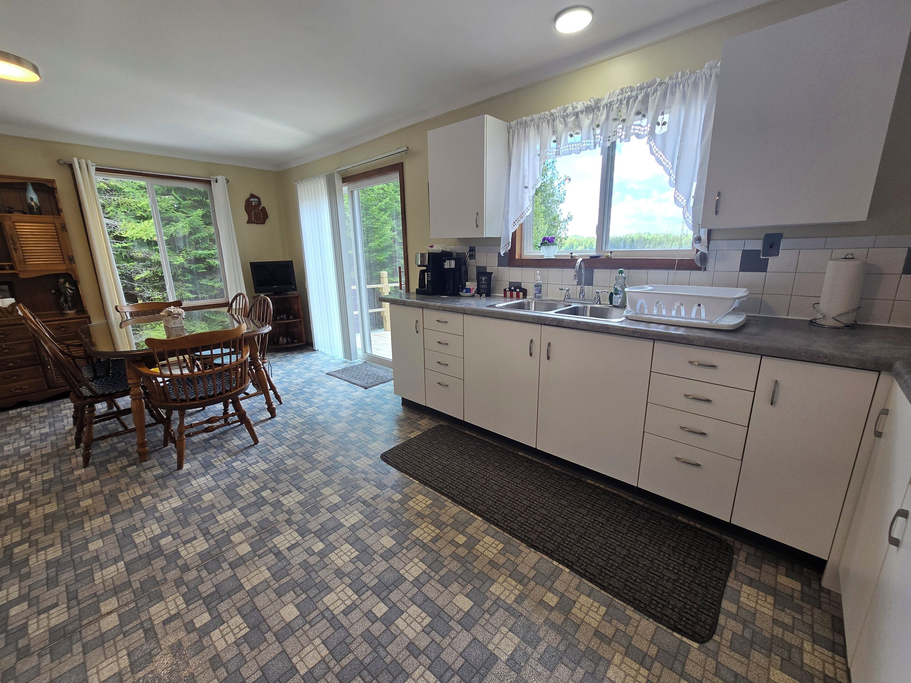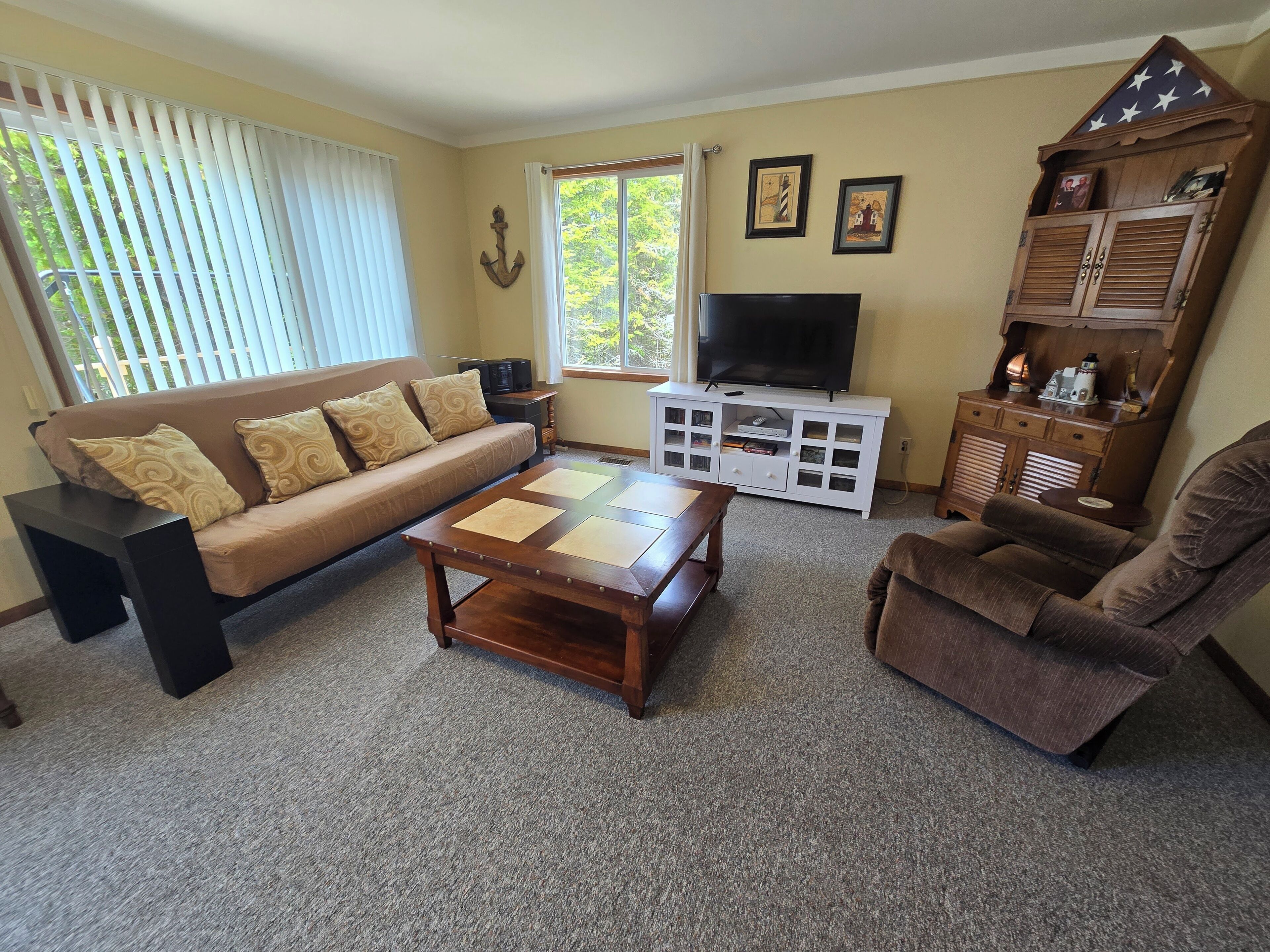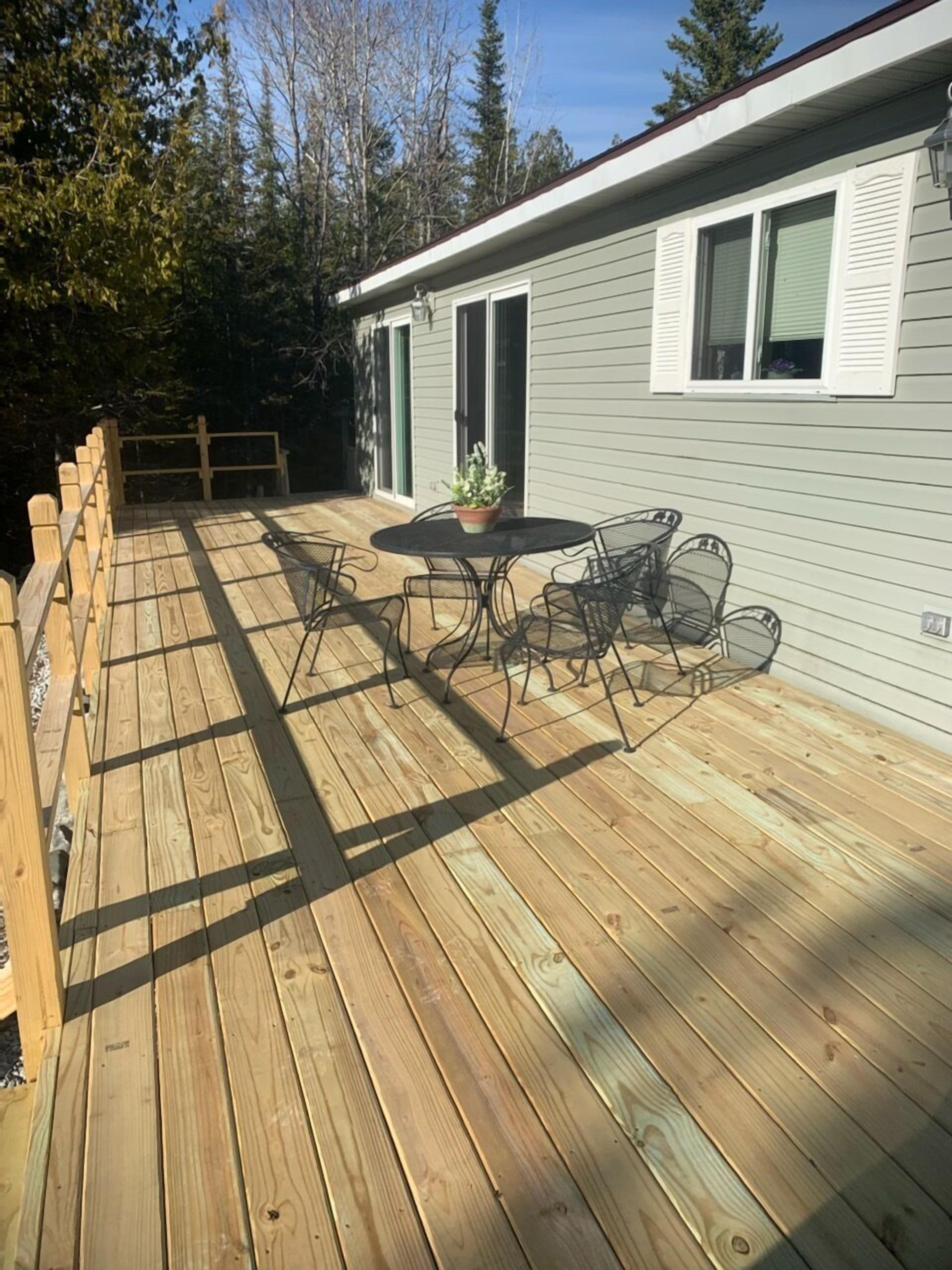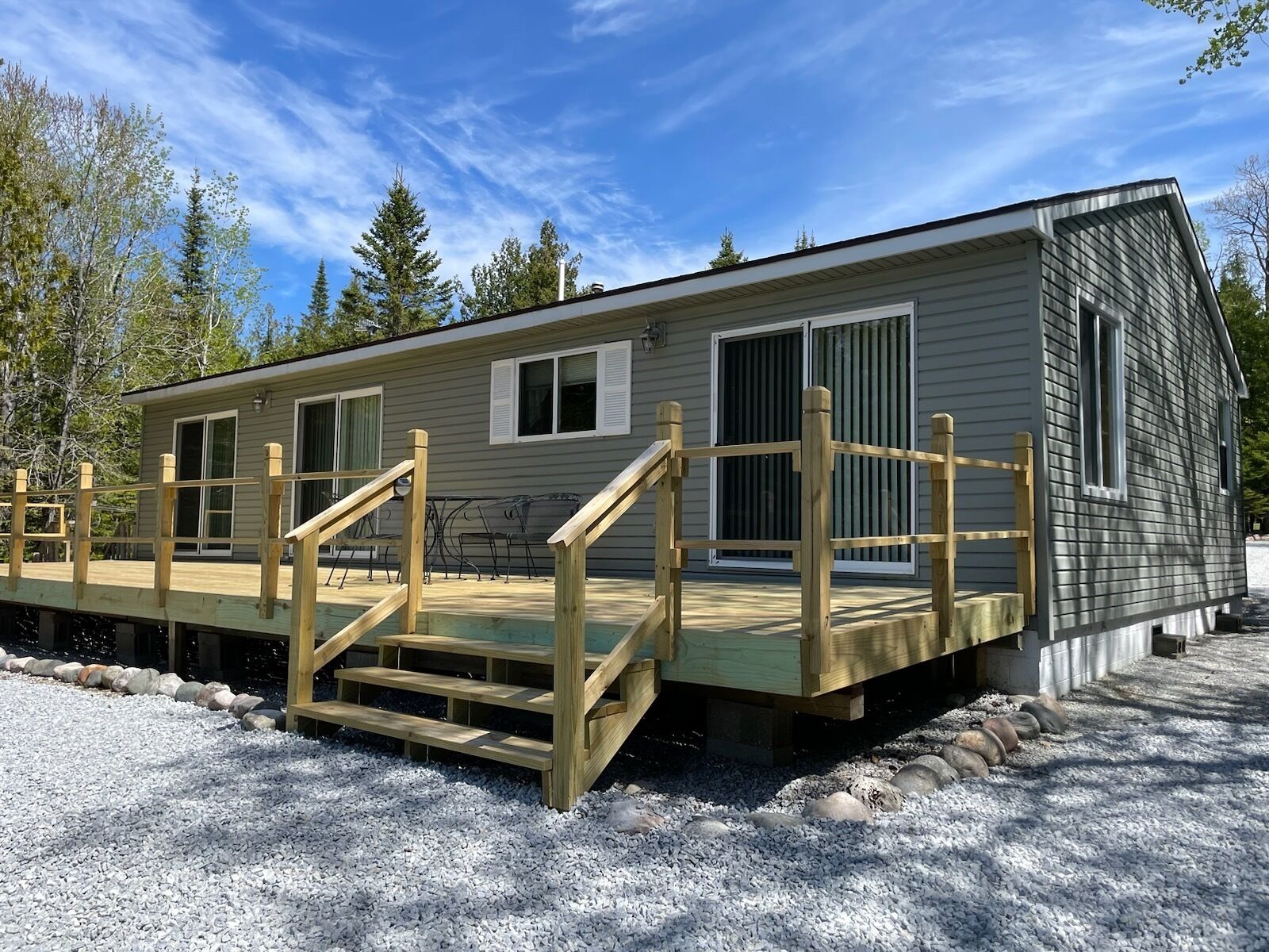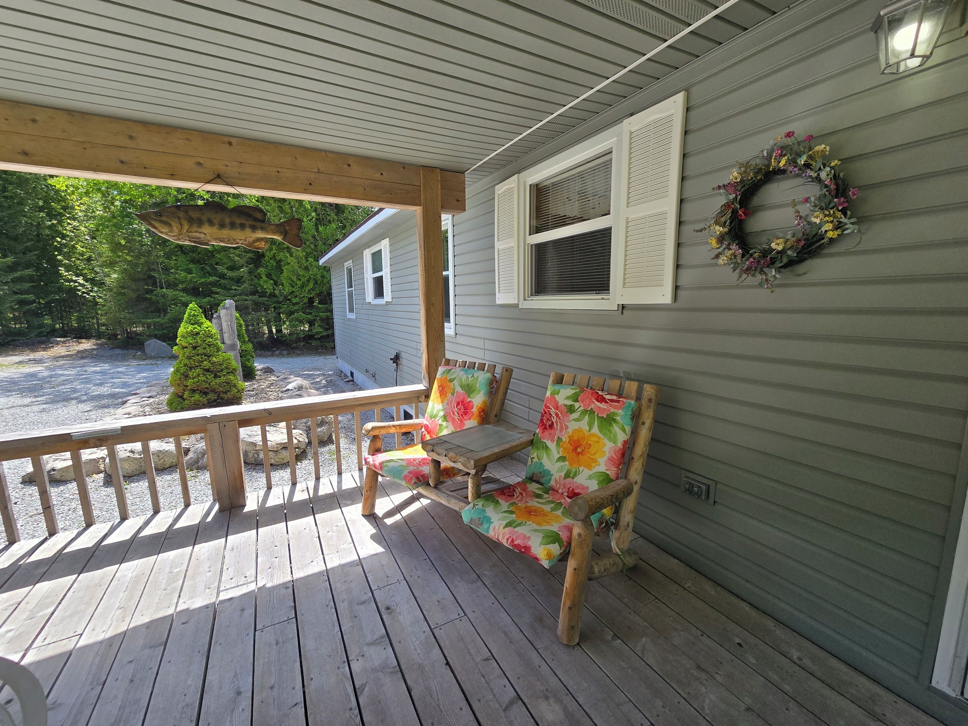 Drummond Island Hotel & Vacation Homes - Memory Maker Bay Sunsets, Freighter views & Relaxation Drummond Island is all about Making Memories that last lifetimes and often for generations. Such is the case with Memory Maker Bay this home is located in beautiful Fairview Cove. Amazing sunsets, freighter views and relaxation are the name of the game.This is a 2 bedroom, 1.5 Bathroom home. Bedroom 1 has a Queen bed, Bedroom 2 also has a queen bed. There are 2 futons in the living room. Allowing this house to sleep 8. The kitchen is expansive and perfect for lots of people gathering for a meal. The kitchen and living room look out to the water. The house has a deck across the entire front for lots of outdoor relaxing.There is a large front yard and a dock that would accommodate a small fishing boat or pontoon due to shallow water (2-3 feet at the end of the dock). This home also has 2 kayaks to explore the bay. There is a firepit on the water side. If it happens to be windy or rainy you can enjoy the outdoors on the covered porch on the back of the home.If you have a larger group the home next door – Fairview Cove, sleeps 10 and is also in our rental programIf you are coming to Drummond Island to ride the trails, you will need to trailer to the trailhead from this home. Side x Side’s and ATV’s are NOT permitted on M134/Channel Road. AT A GLANCE: Bedrooms:2 Bedrooms, Sleeps 8Bedroom 1 = 1 QueenBedroom 2 = 1 QueenLivingroom = 2 FutonsBathrooms:1.5 Bathrooms · If you are making this reservation within 24 hours of arrival please call for check in instructions.· Check-In after 4 PM. Check-Out by 9 AM. Check in at Drummond Island Hotel & Vacation Homes at 34834 S Townline Road. We will provide you with keys & directions.· Any fees associated with processing a credit card will NOT be refunded if you cancel your reservation.· This home is NOT Pet Friendly