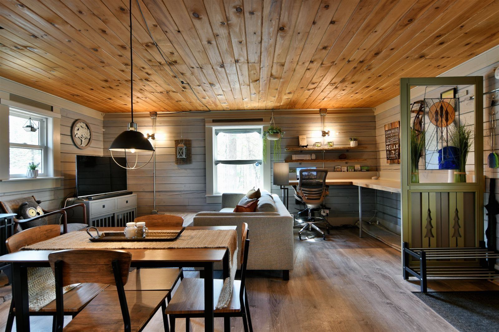 Little Gem Cottage | 1 Bed, 1 Bath Surround yourself with the tranquility and beauty of the forest. This adorable stand-alone studio is the perfect place to relax and enjoy nature. You'll find a bedroom area, full bath, kitchenette, living space, and a nice workspace. Even a covered porch for some front porch sitting. The whole cottage is inviting with functionality and an artistic flair.There are miles and miles of road biking right out your door. If you like off-road bicycling the Cable area has some of the best trails in the state. Nearby day trips include many waterfall hikes, Hayward, the quaint town of Bayfield, the Apostle Islands, Duluth's Canal Park, and Minnesota's North Shore. There are several area lakes for fishing, kayaking, and canoeing. Crystal Clear Lake Owen has picnic grounds and a beach area open to the public just 15 minutes away.This cottage is truly a Little Gem that you will want to return to again and again.PLEASE NOTERate based on 2 people, this includes adults and children. There is a $25.00 charge per person per night, up to a maximum occupancy of 3 people.Towels are not provided, please bring bath, swimming and kitchen towels.There is a light blanket on the bed with fresh linens and pillows. If you prefer a heavier blanket, please bring one along with you.Pets are allowed. $20 per pet per night maximum of 2 pets.There are outside security cameras in use.