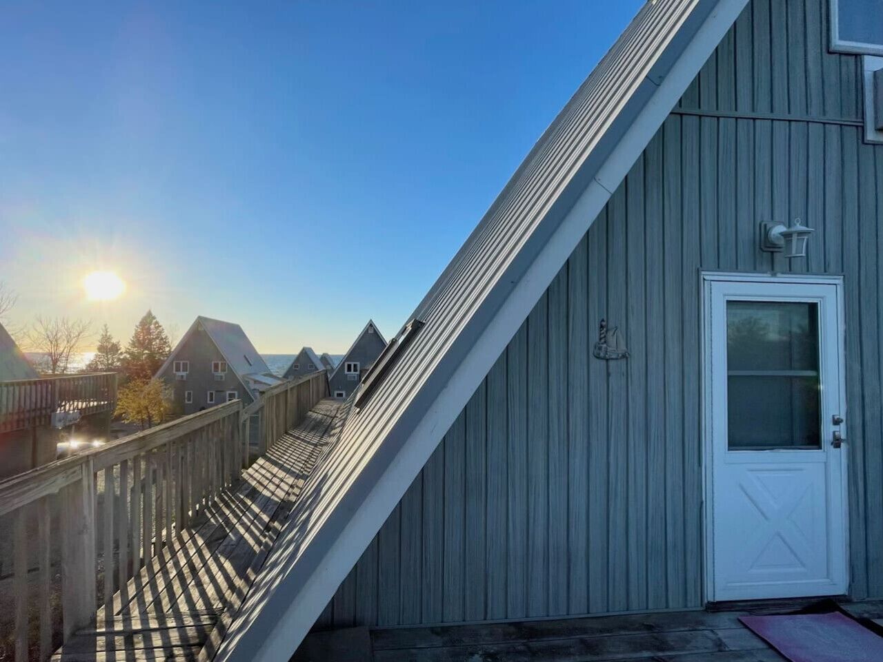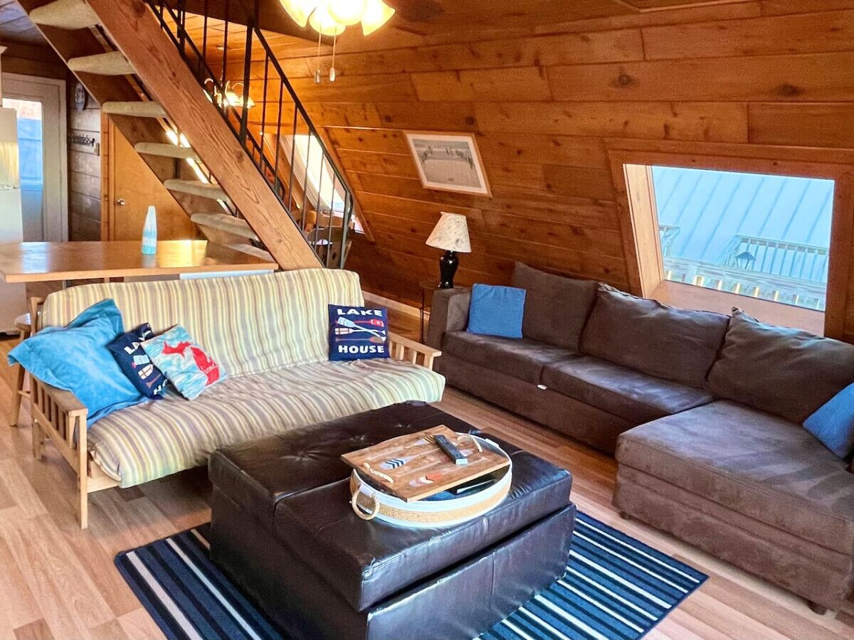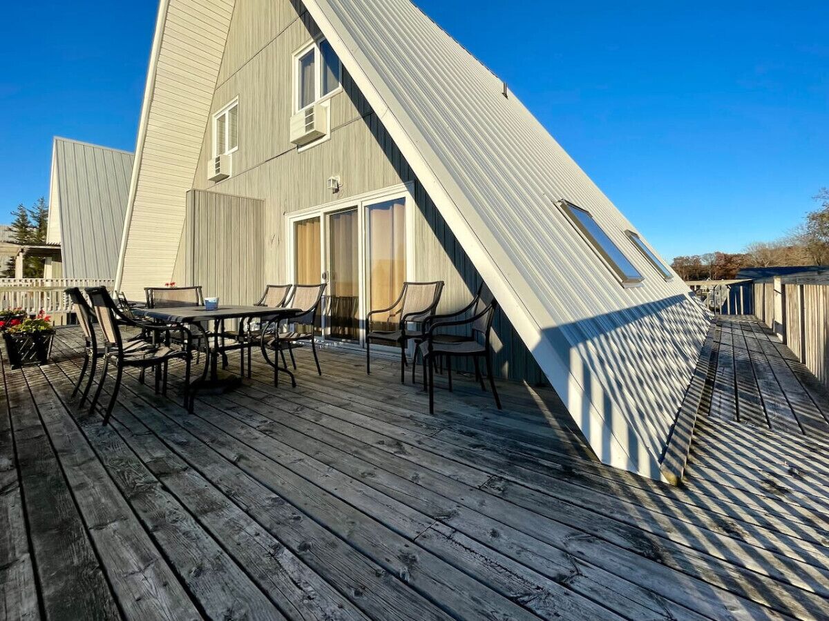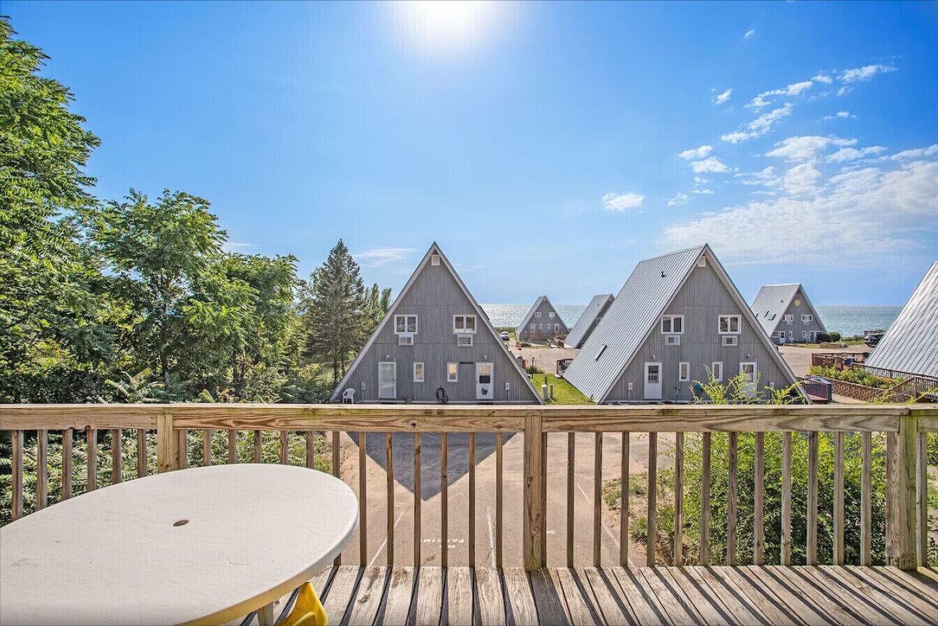 Lakefront Chalet #29 w/ Beach Access, Pools, Sport Courts, Fishing Pond & more! Welcome to Chalet on the Lake Unit 29, a haven where awe-inspiring views of the lake meet comfort and convenience. This charming Chalet features 2 bedrooms and 1 bath, providing the perfect retreat for a lakeside getaway. Inside, find a fully stocked kitchen ready for your culinary adventures. Plenty of seating in the living area ensures everyone can relax comfortably. Enjoy modern amenities with included WiFi and Cable TV, allowing you to stay connected or unwind after a day of lakeside adventures.Enjoy breathtaking moments on its unique, generous-sized decks that offer unparalleled vistas of Lake Michigan. The front deck is adorned with a full-sized table and six chairs, creating an ideal setting for al fresco dining with a panoramic view. The back deck features a picnic table, perfect for entertaining your family and friends in the fresh air. Just steps away from the private beach, you'll have the opportunity to sink your toes in the sand and bask in the sun. Additionally, the Chalet is conveniently located up the hill from the pools, sand volleyball courts, shuffleboard courts, playgrounds, and tennis courts, providing endless options for recreation. As part of the community amenities, Chalet on the Lake offers a variety of outdoor activities, including sports courts with pickleball, basketball, volleyball, horseshoes, and tennis. Little ones can explore the three nearby playgrounds, and fishing enthusiasts can cast their lines into the peaceful pond. Explore nearby attractions in St. Joseph, New Buffalo, Stevensville, and other quaint towns, each offering big-box stores and unique shopping districts. Indulge your taste buds at charming restaurants, farmer's markets, wineries, and breweries. For entertainment, the Four Winds Casino and a variety of golf courses are just a short drive away.Book your lakeside retreat and create lasting memories in this charming Chalet, where every moment is framed by stunning lake views and endless possibilities for relaxation and recreation.